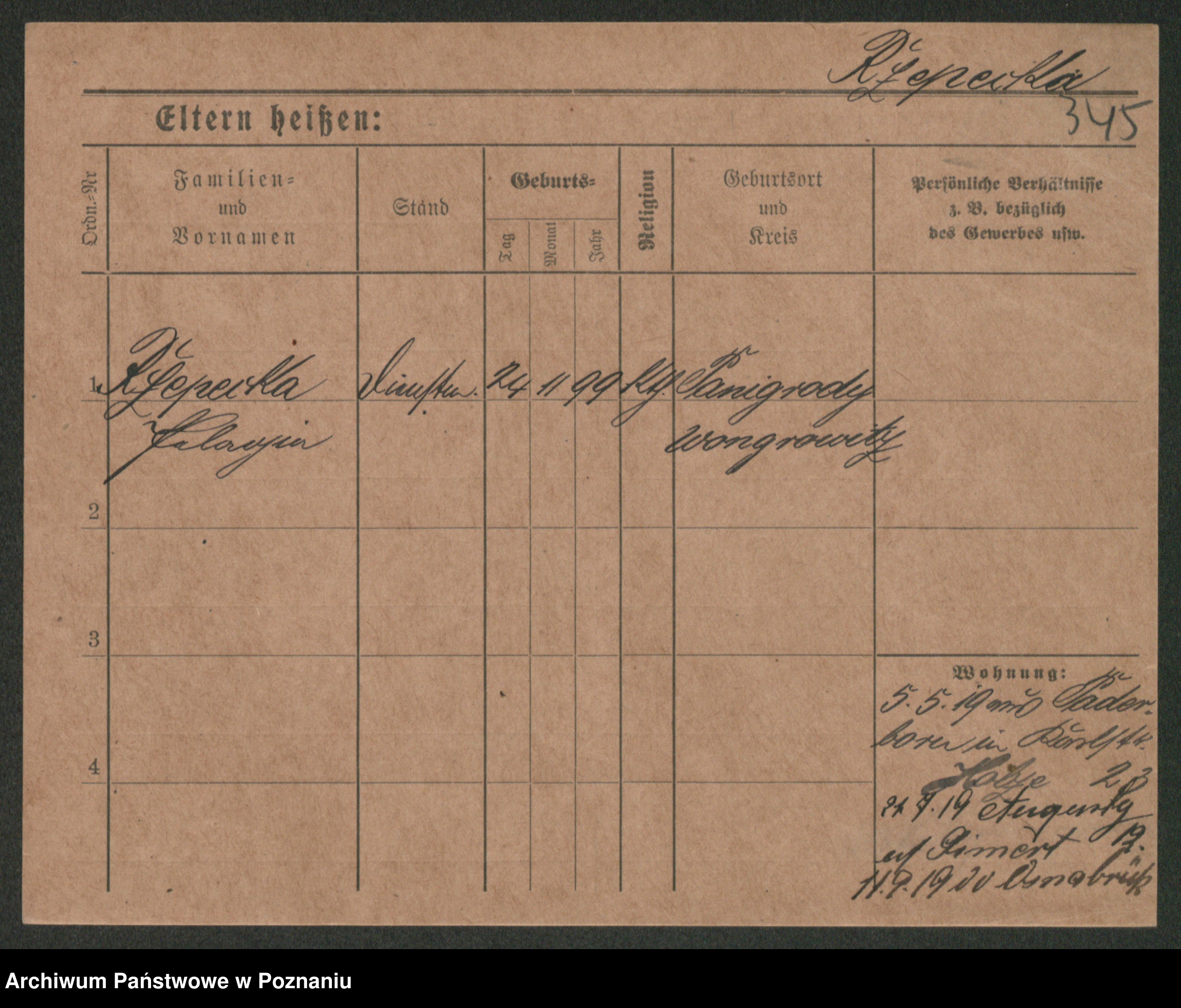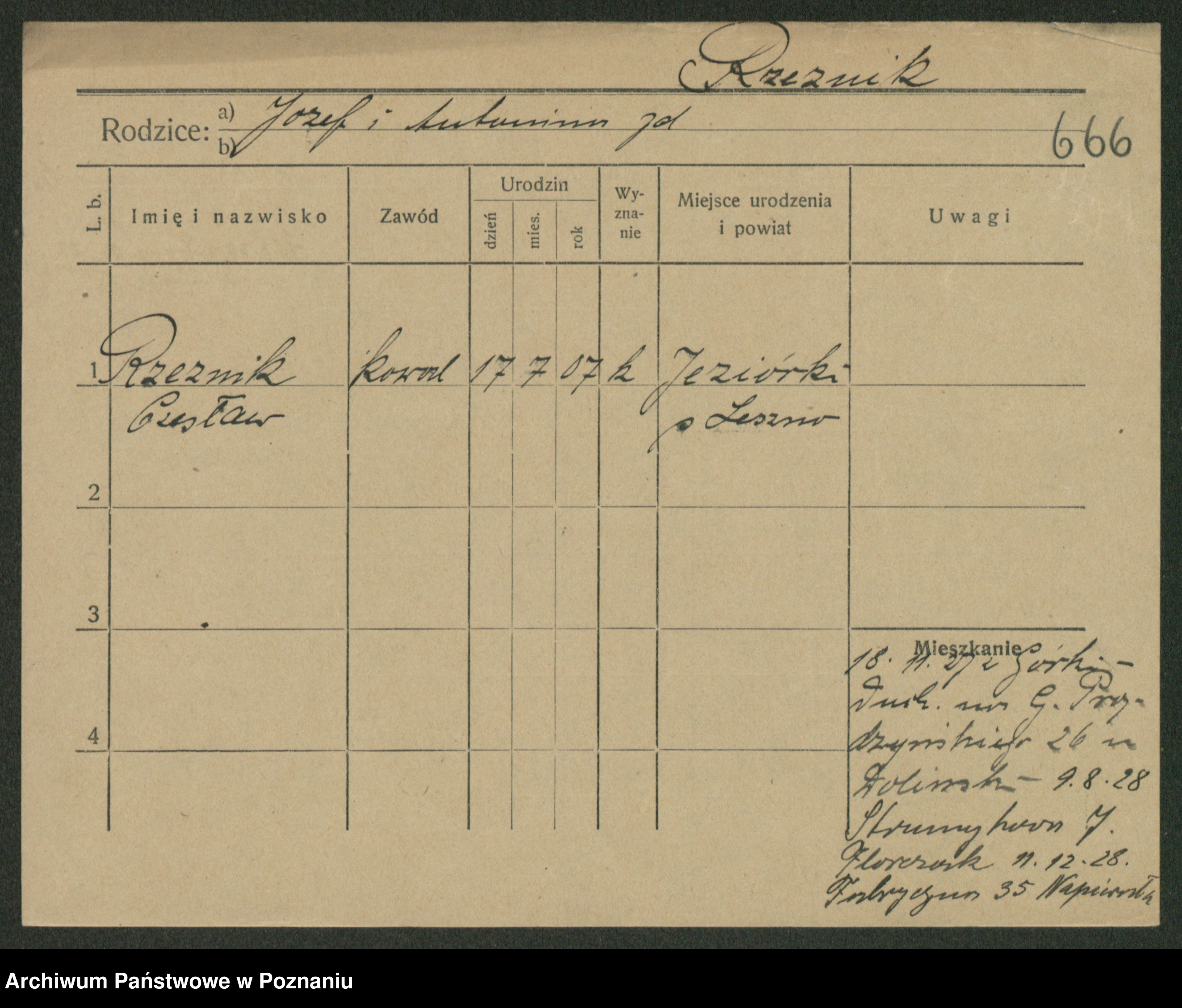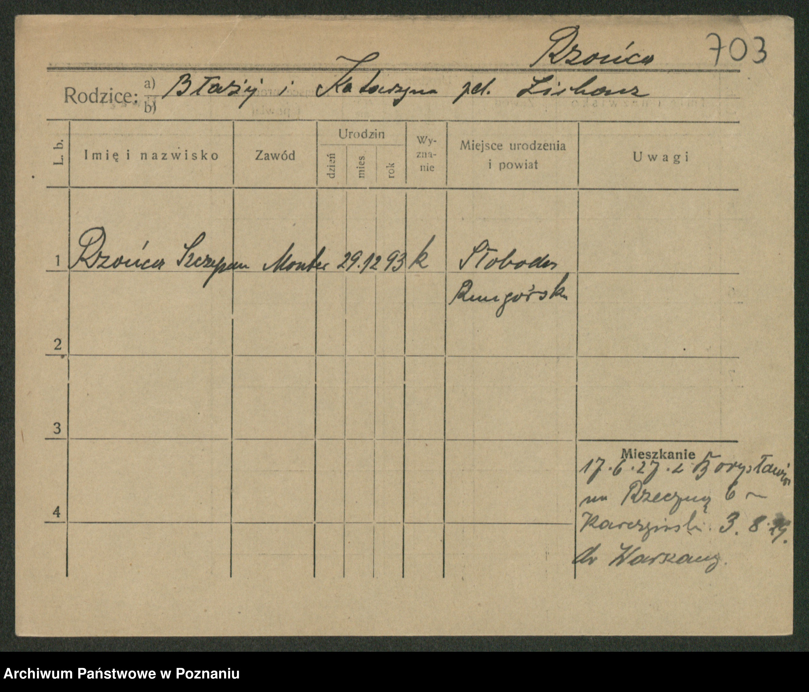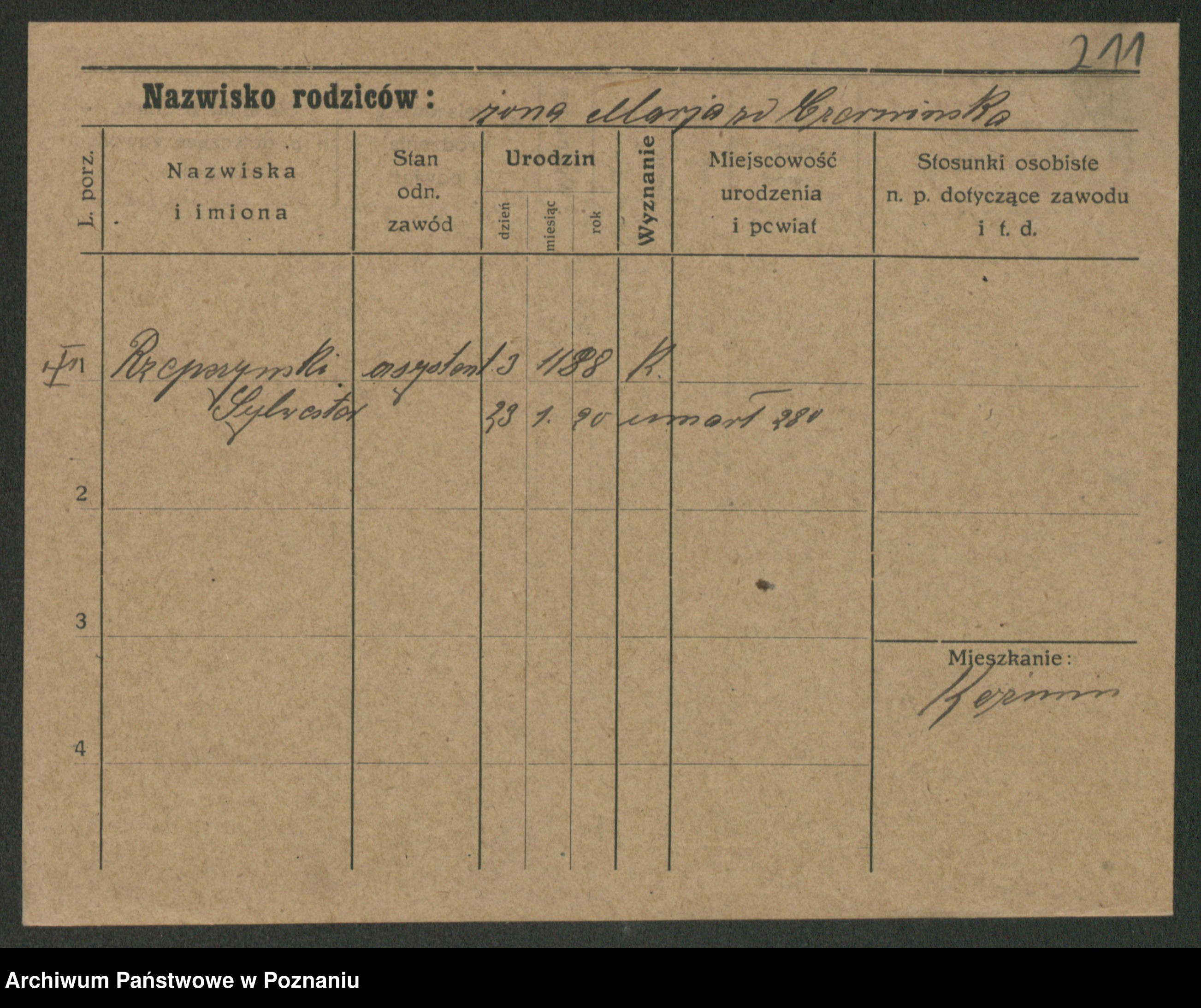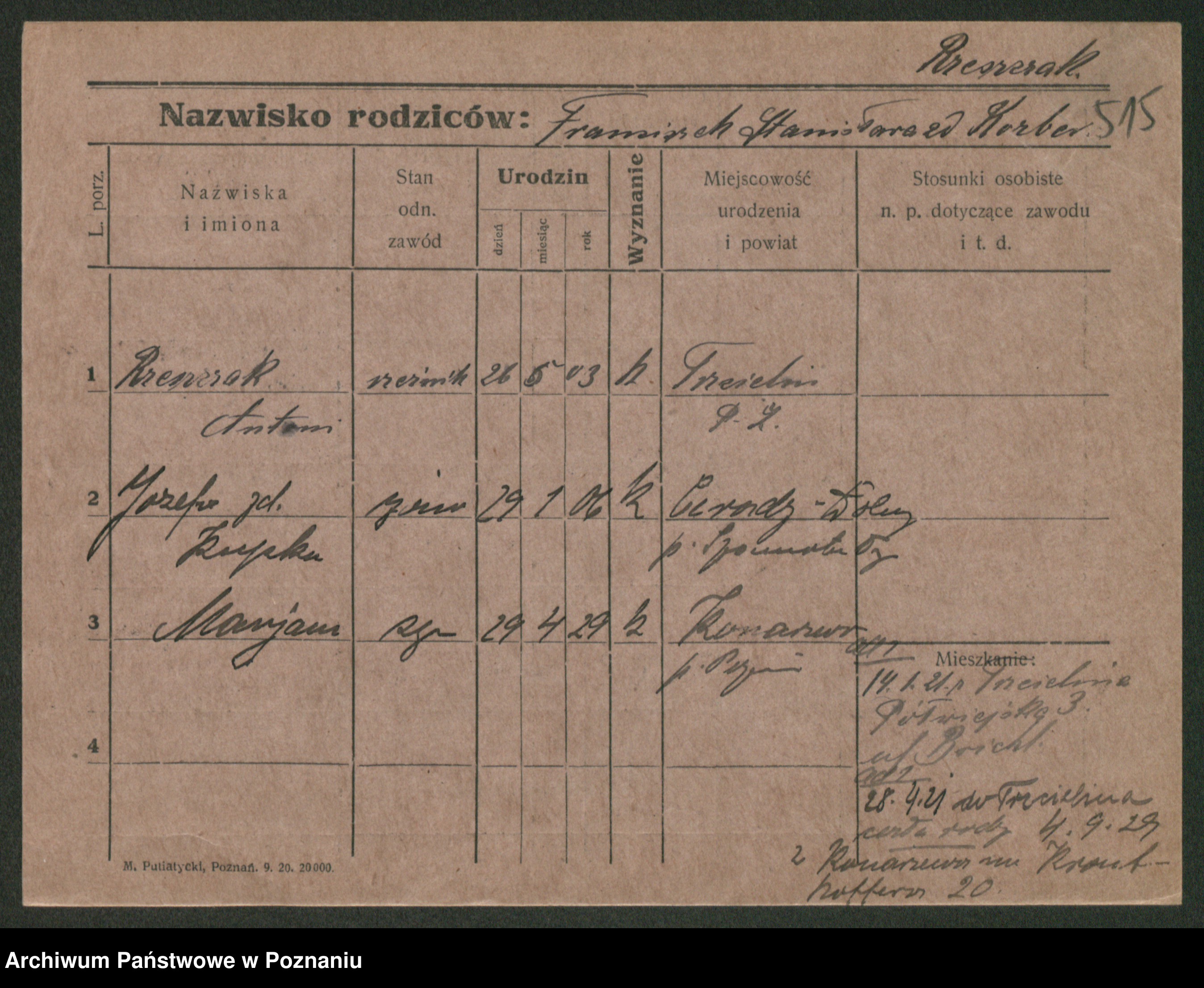 Podgląd karty osobowej dostępny jest po kliknięciu na nazwisko lub ikonkę karty. Można dokonywać powiększenia (ikony na górze) lub przechodzić między kolejnymi skanami (strzałki po bokach).