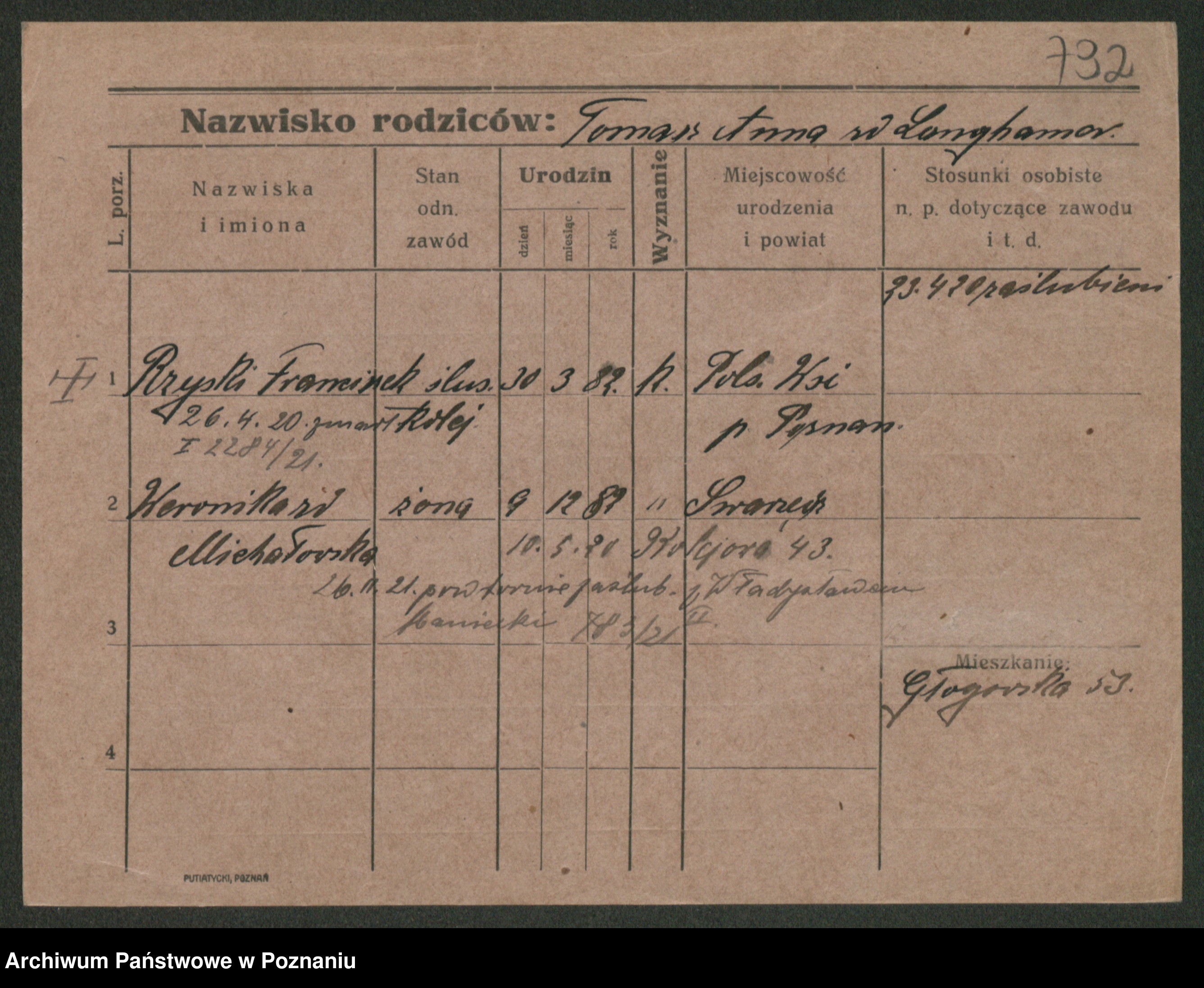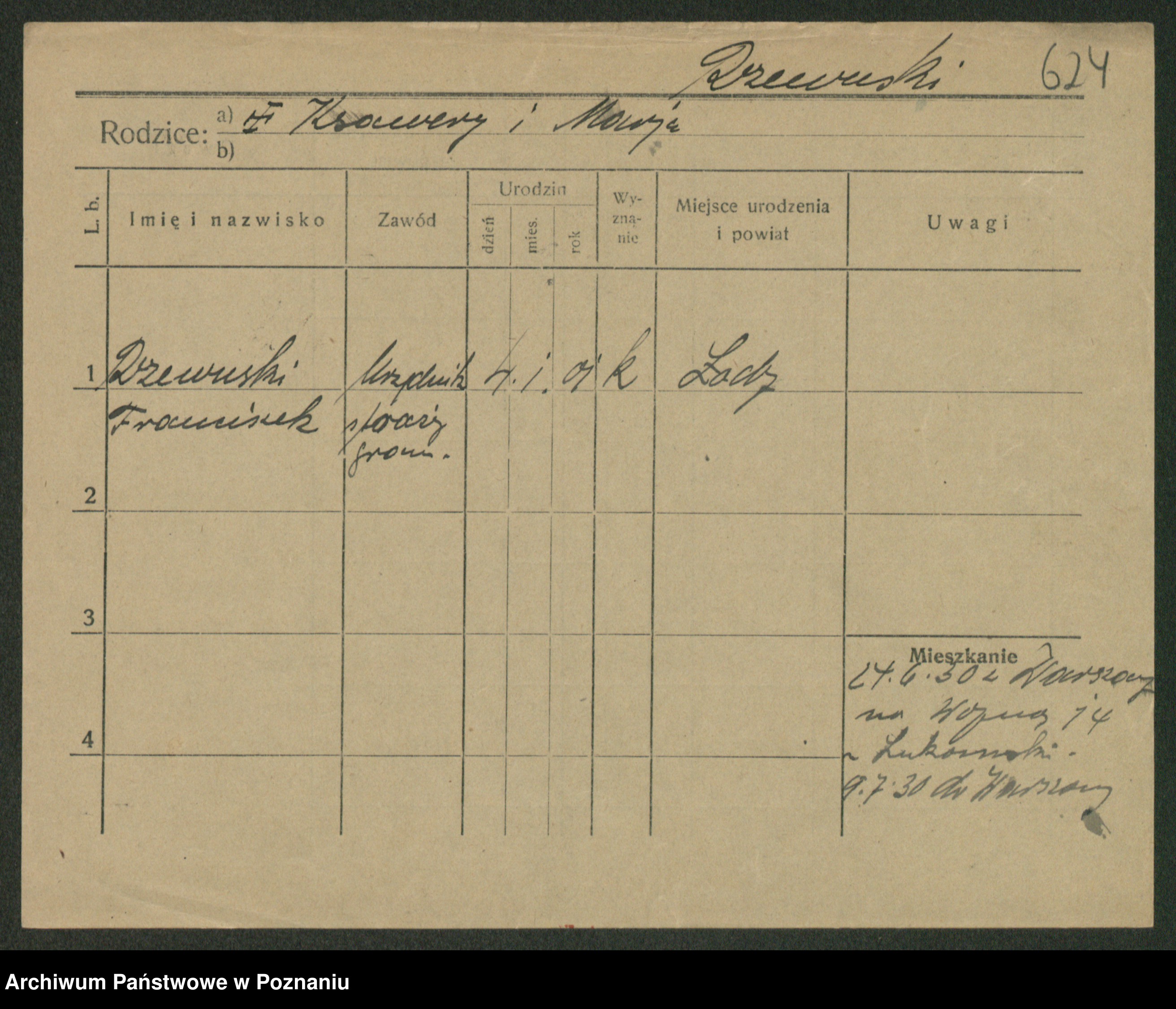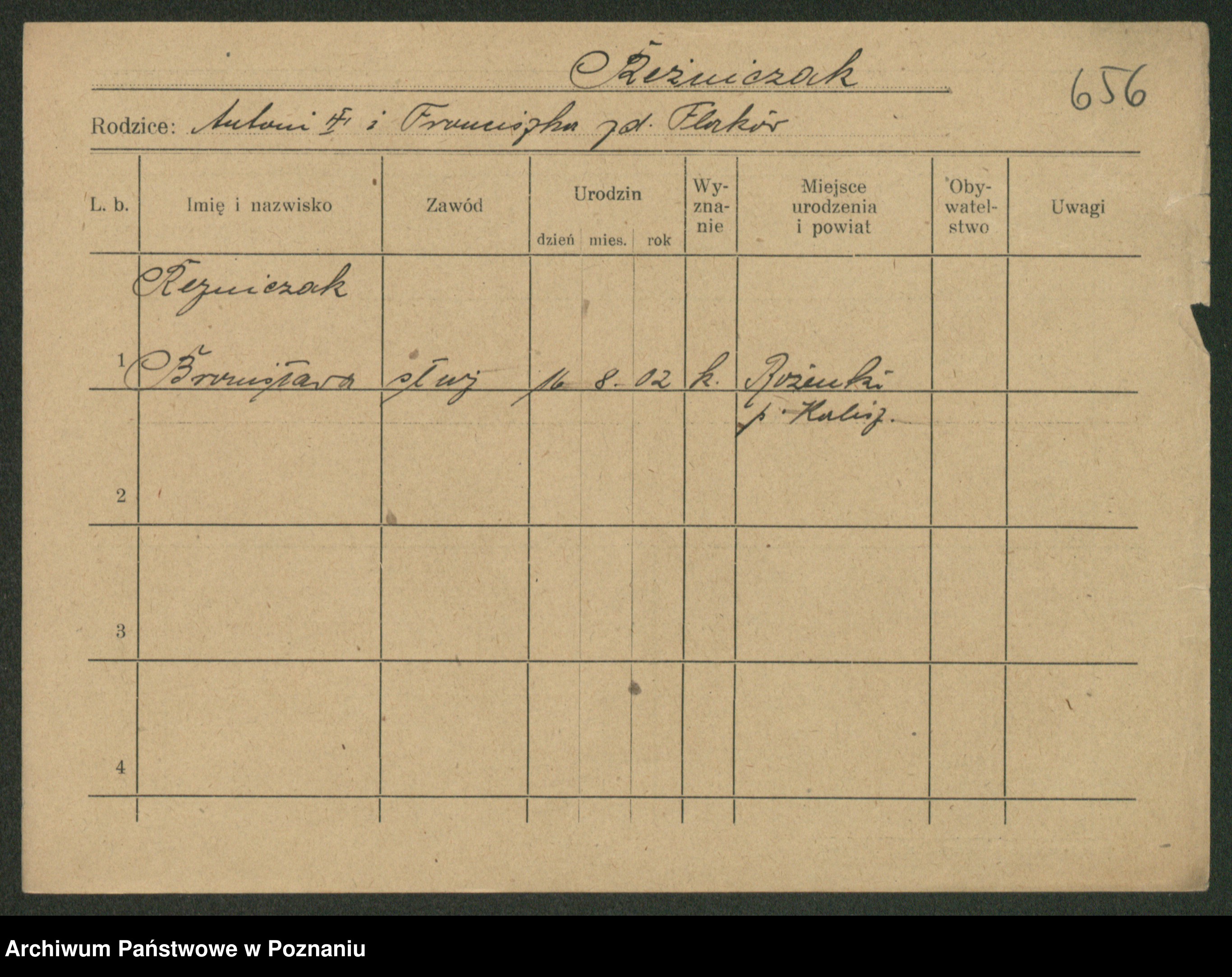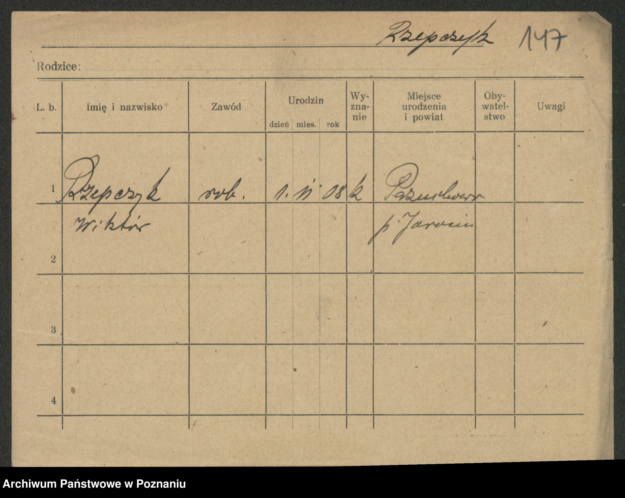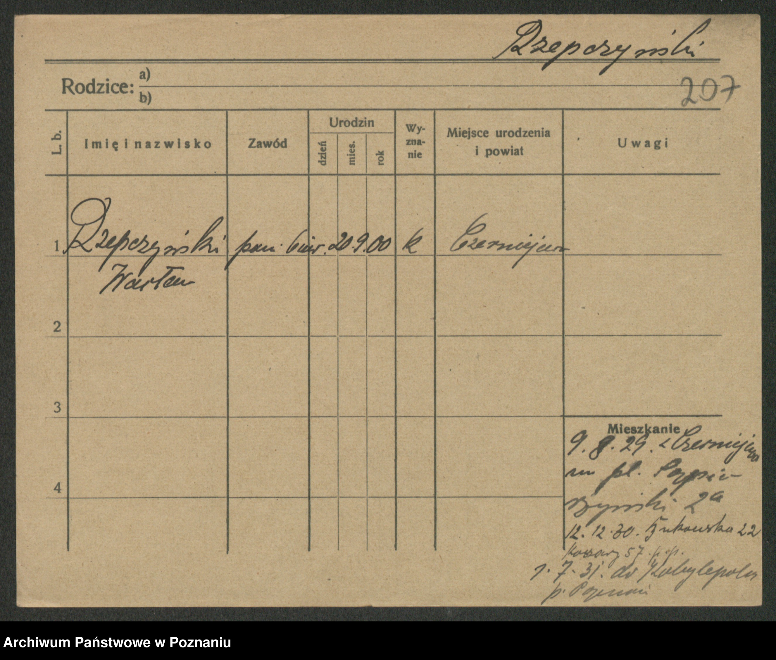 Podgląd karty osobowej dostępny jest po kliknięciu na nazwisko lub ikonkę karty. Można dokonywać powiększenia (ikony na górze) lub przechodzić między kolejnymi skanami (strzałki po bokach).