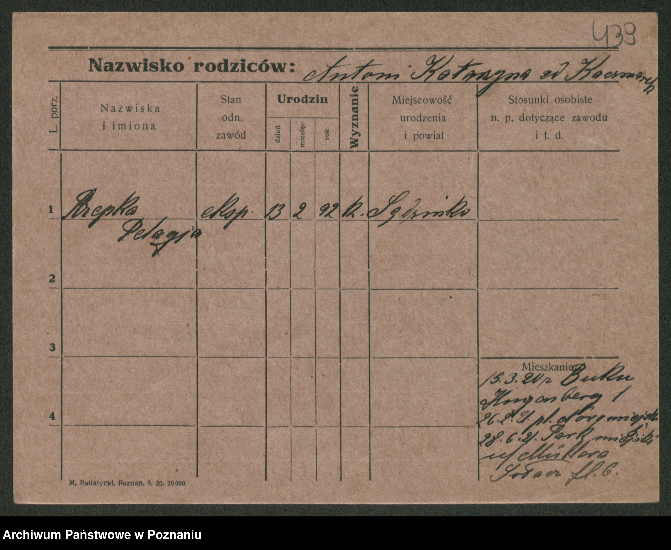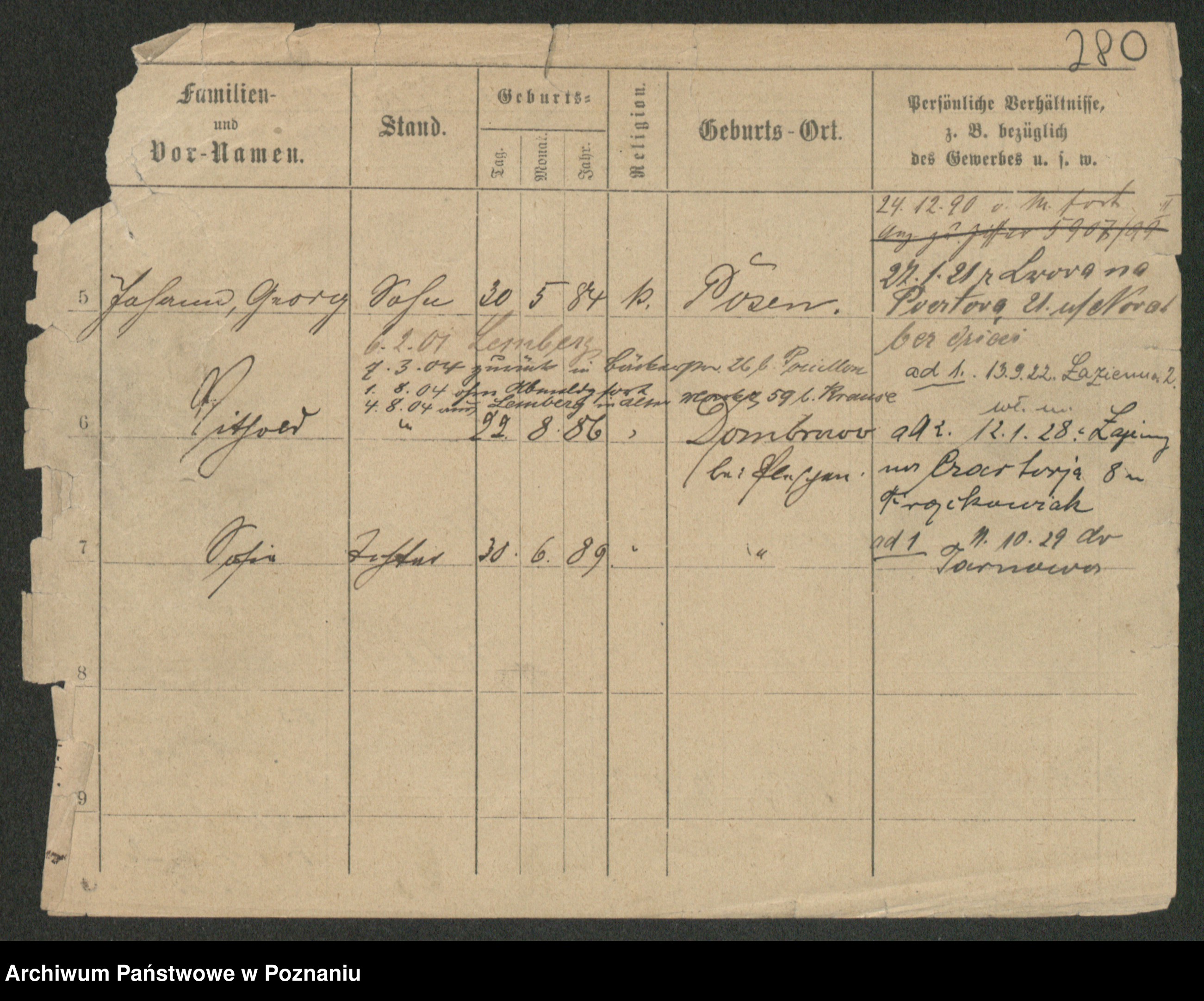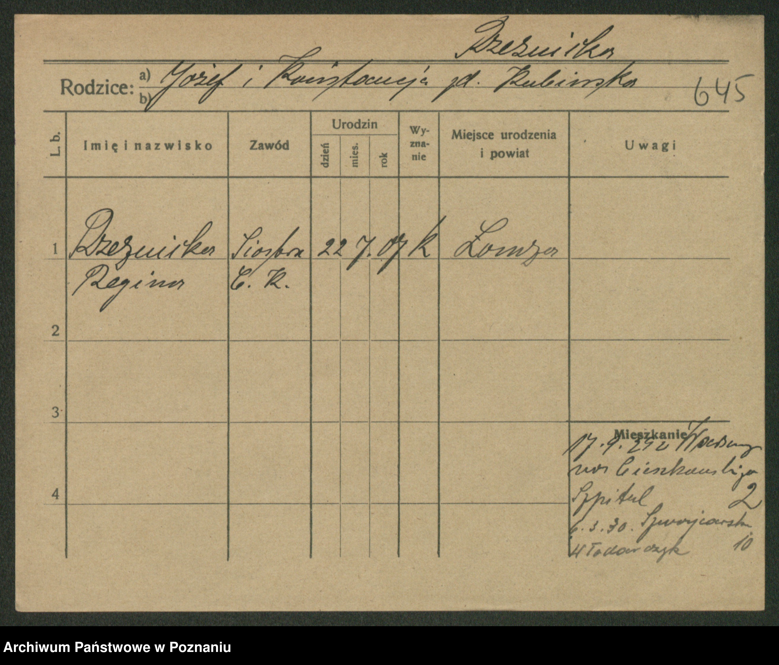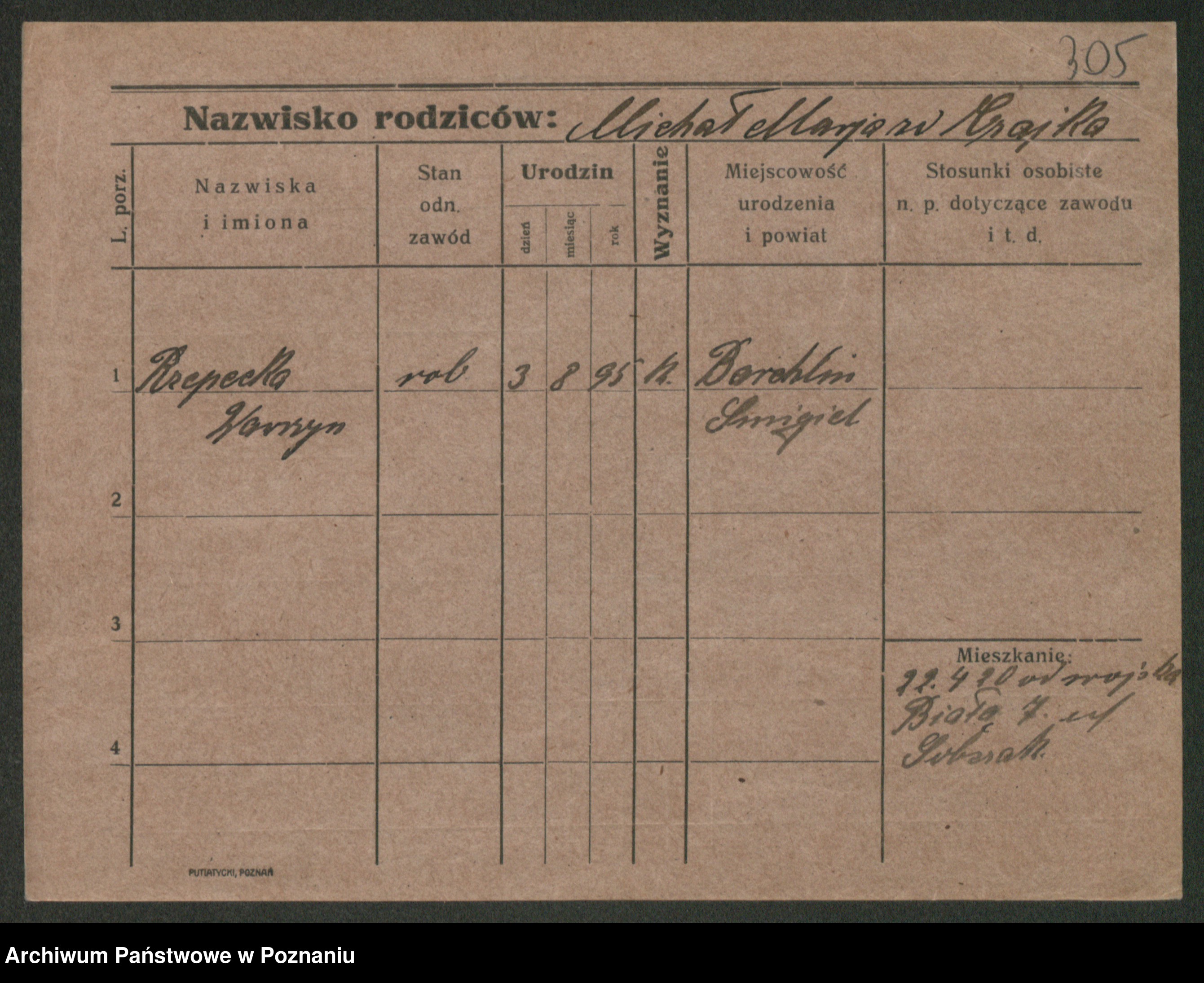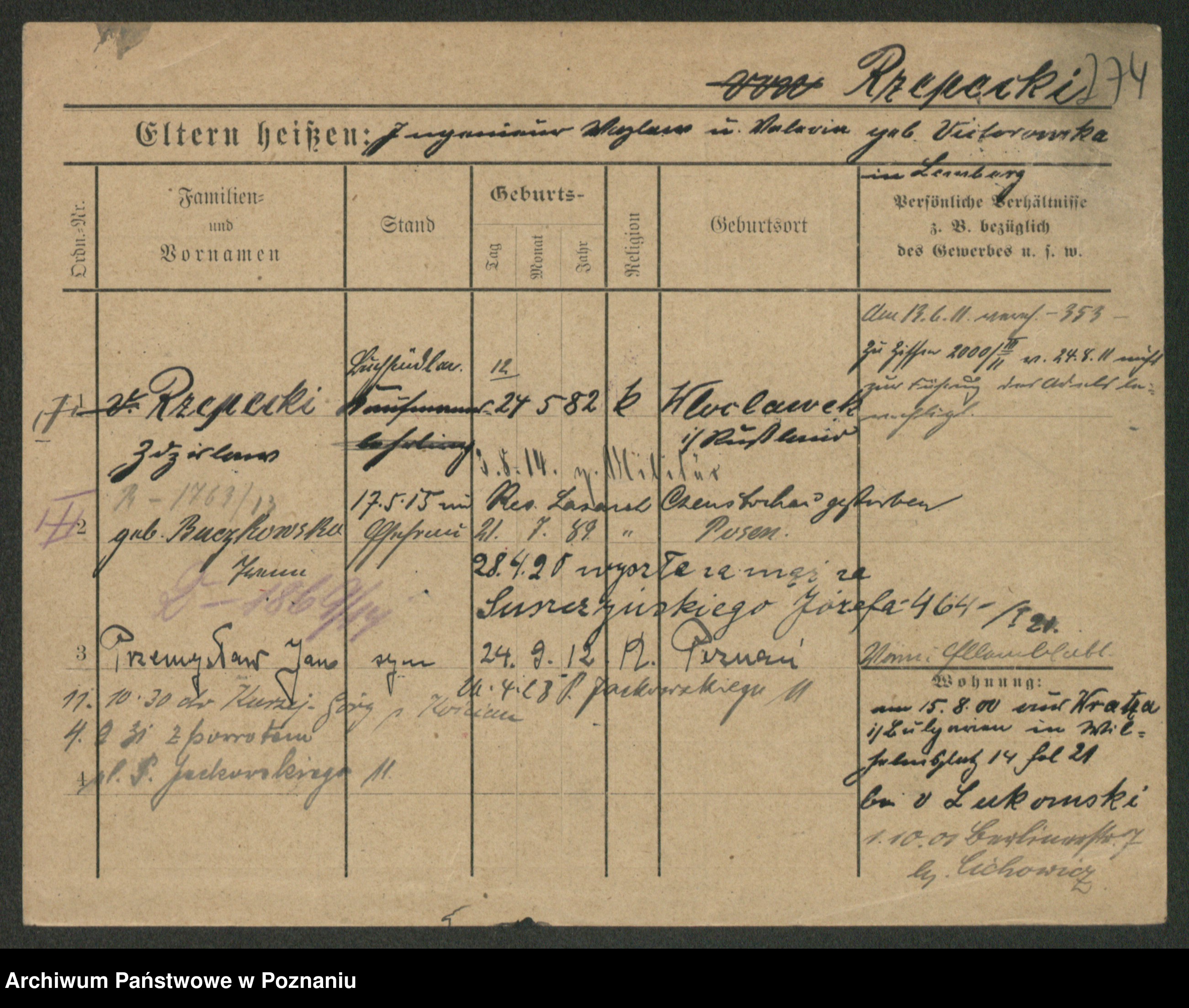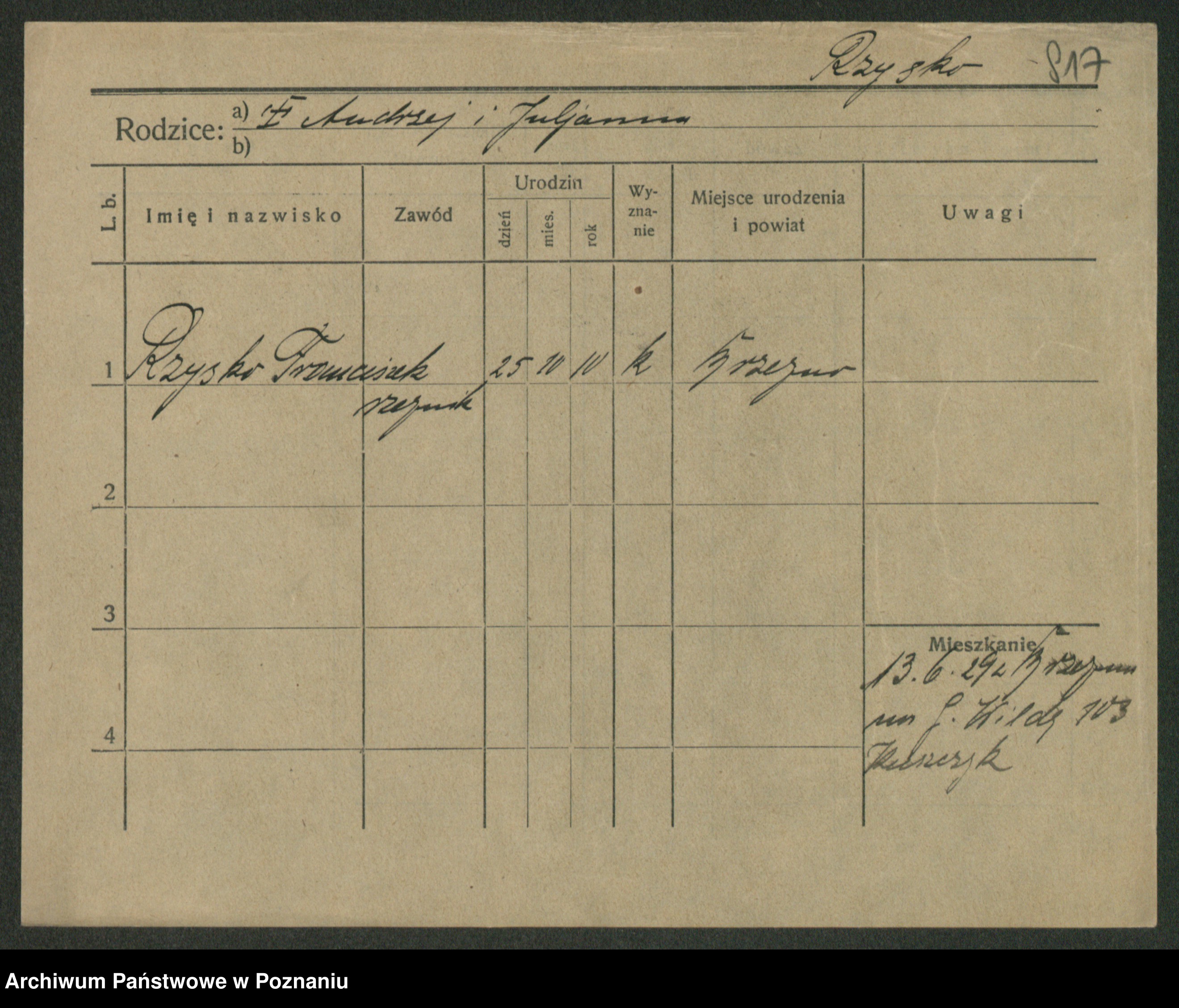 Podgląd karty osobowej dostępny jest po kliknięciu na nazwisko lub ikonkę karty. Można dokonywać powiększenia (ikony na górze) lub przechodzić między kolejnymi skanami (strzałki po bokach).