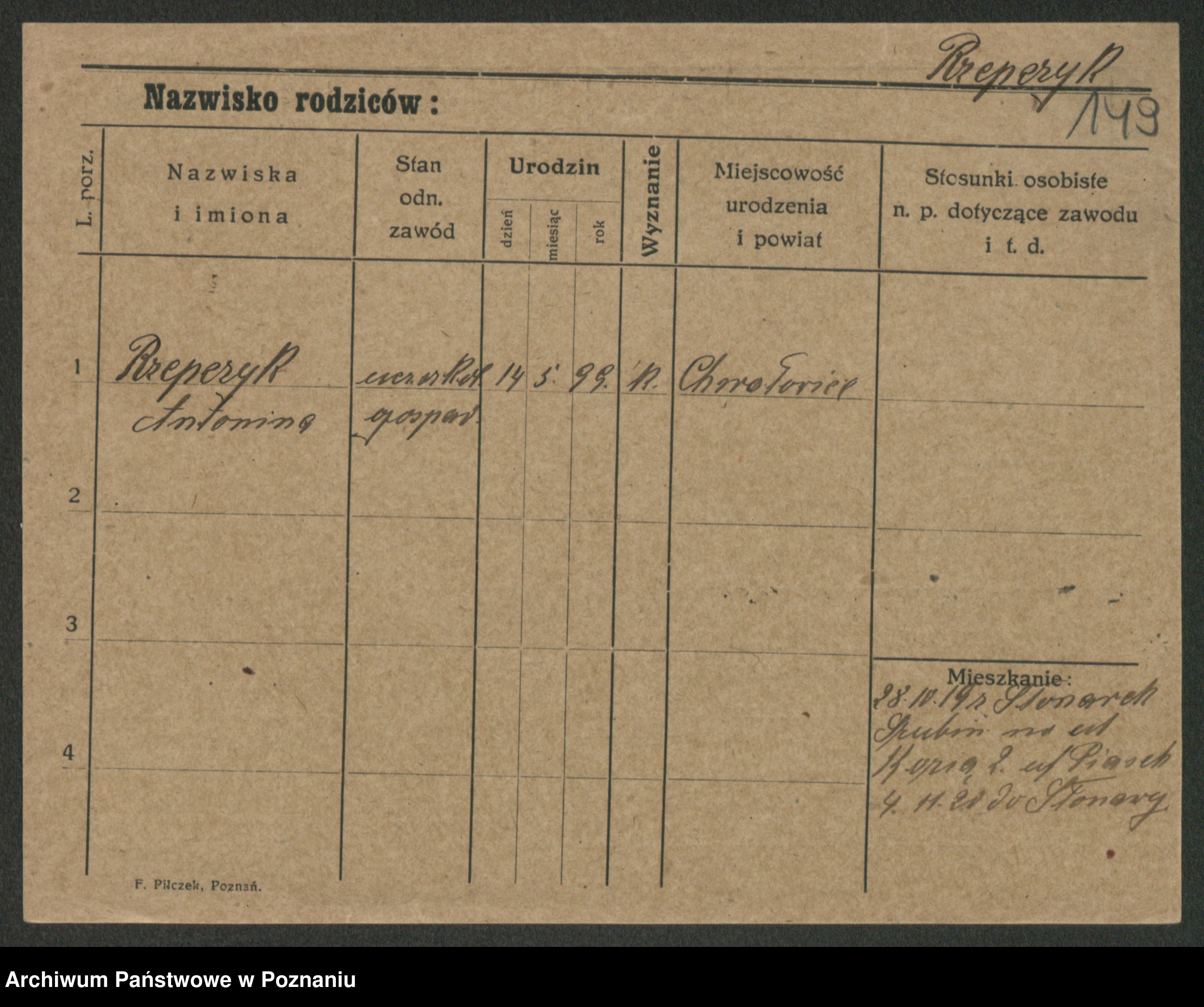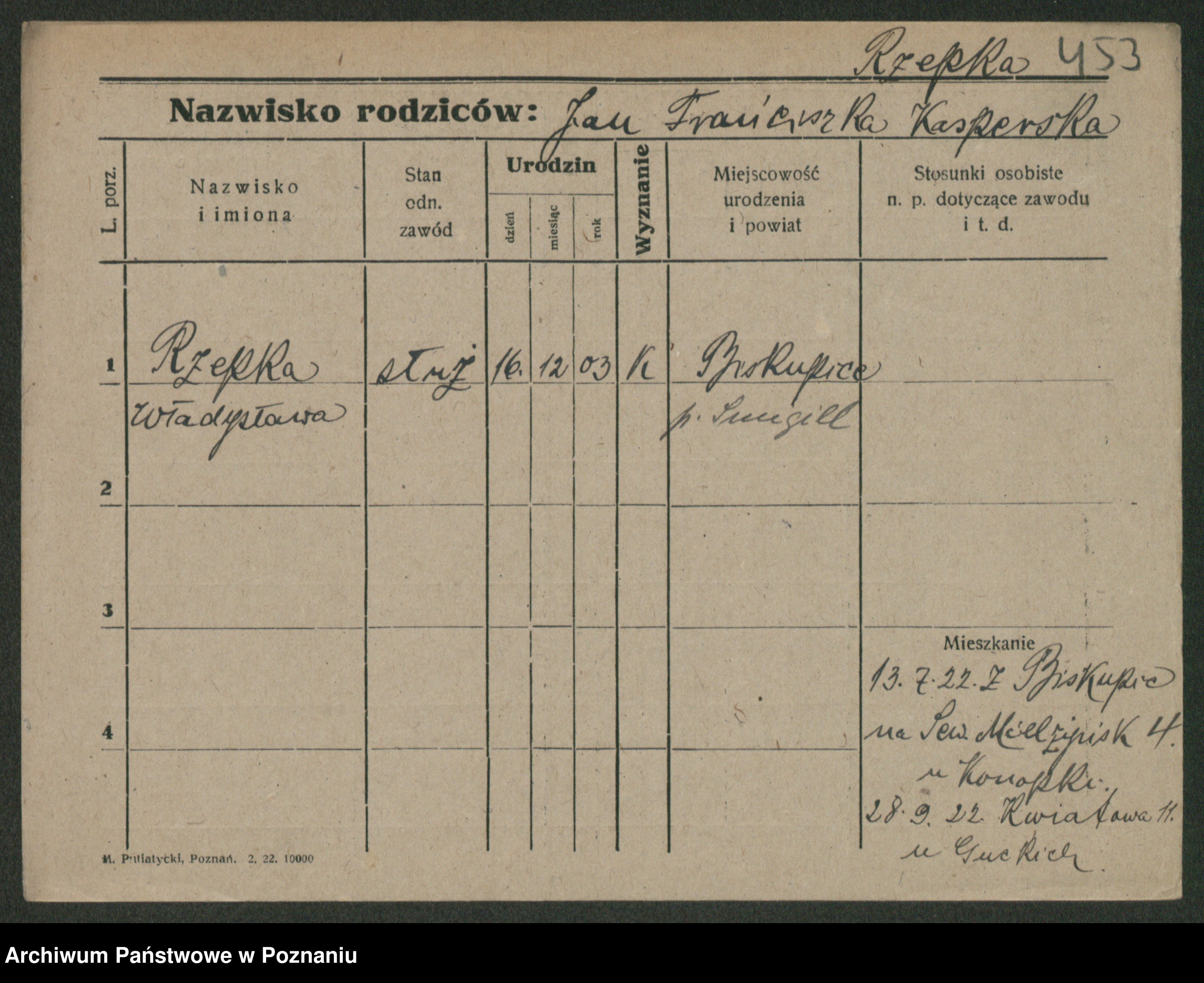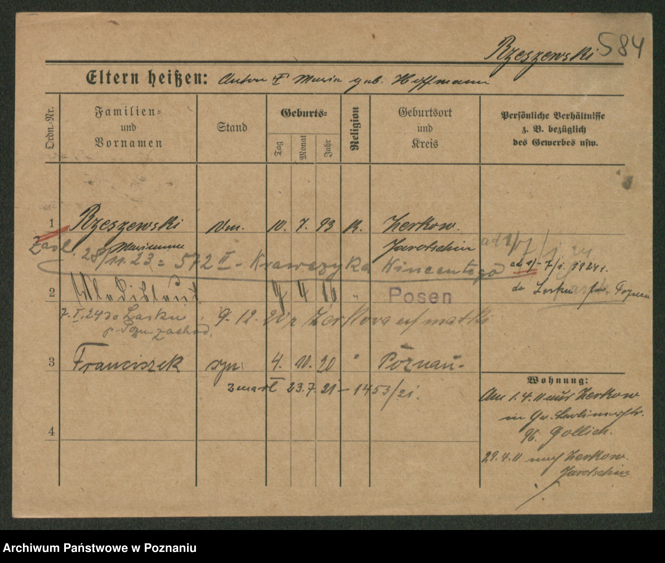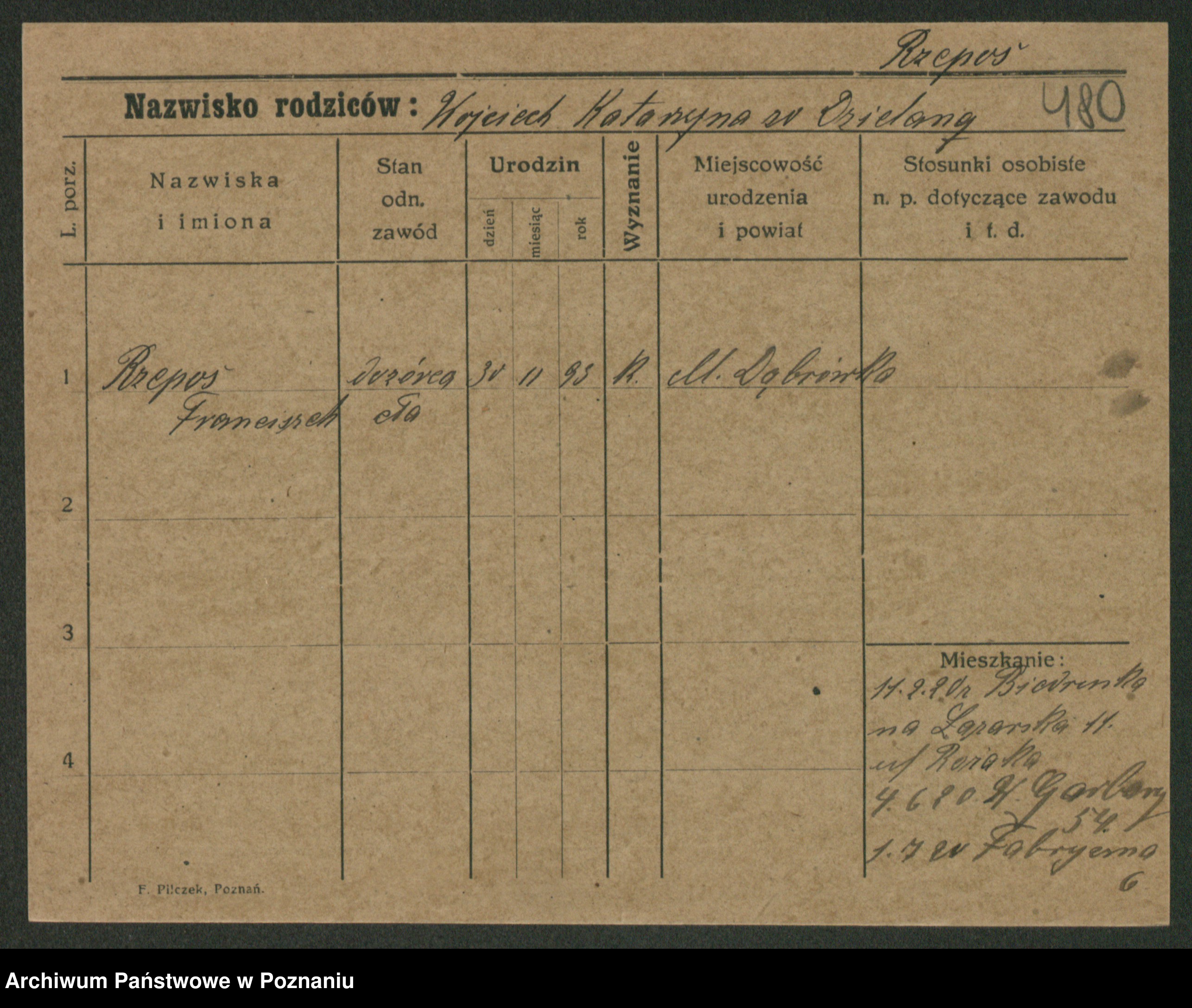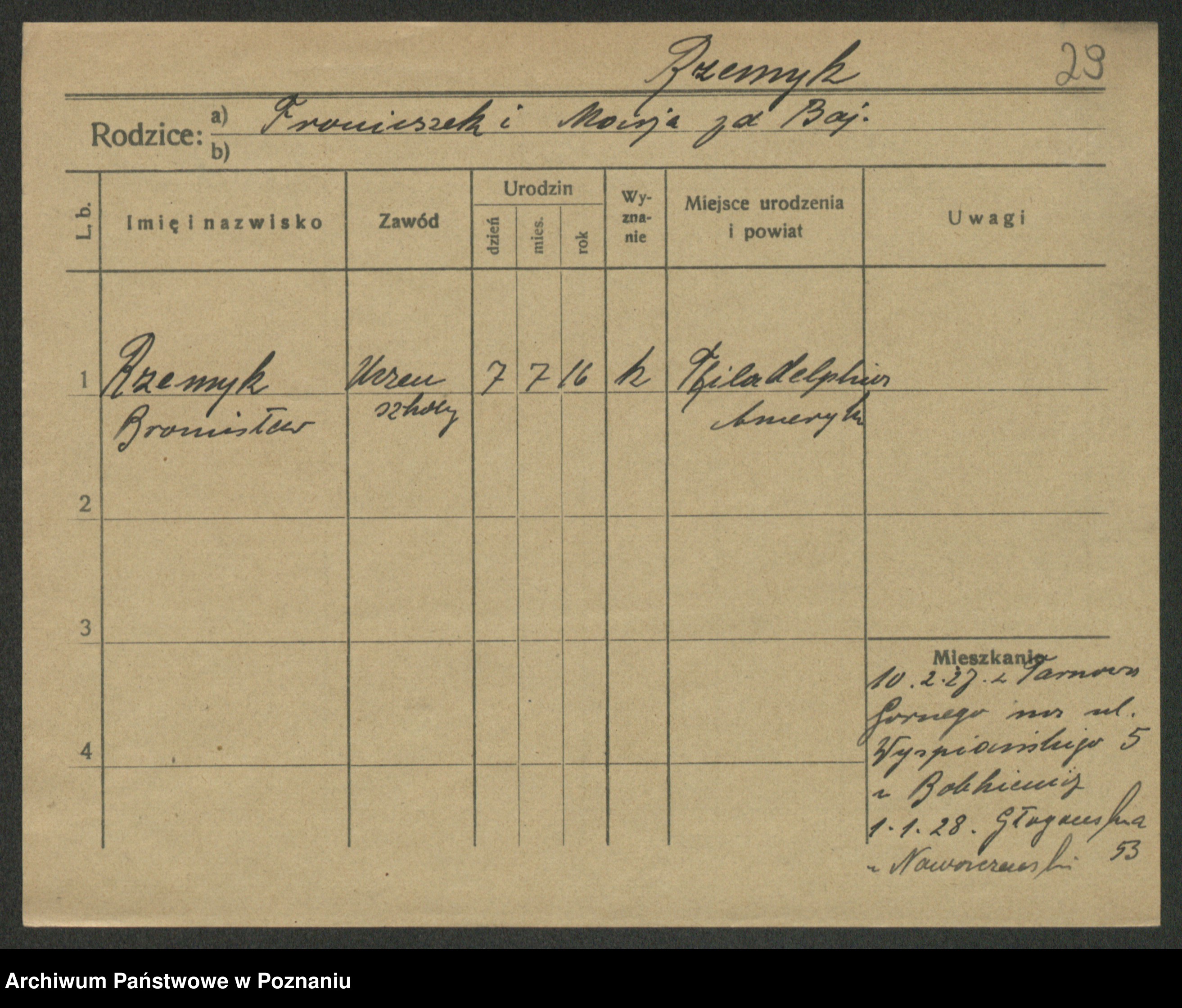 Podgląd karty osobowej dostępny jest po kliknięciu na nazwisko lub ikonkę karty. Można dokonywać powiększenia (ikony na górze) lub przechodzić między kolejnymi skanami (strzałki po bokach).