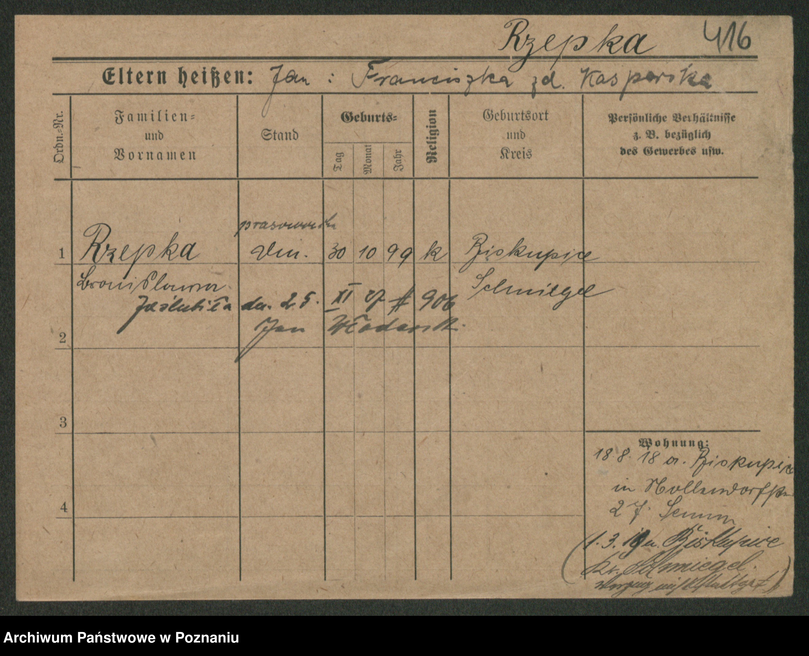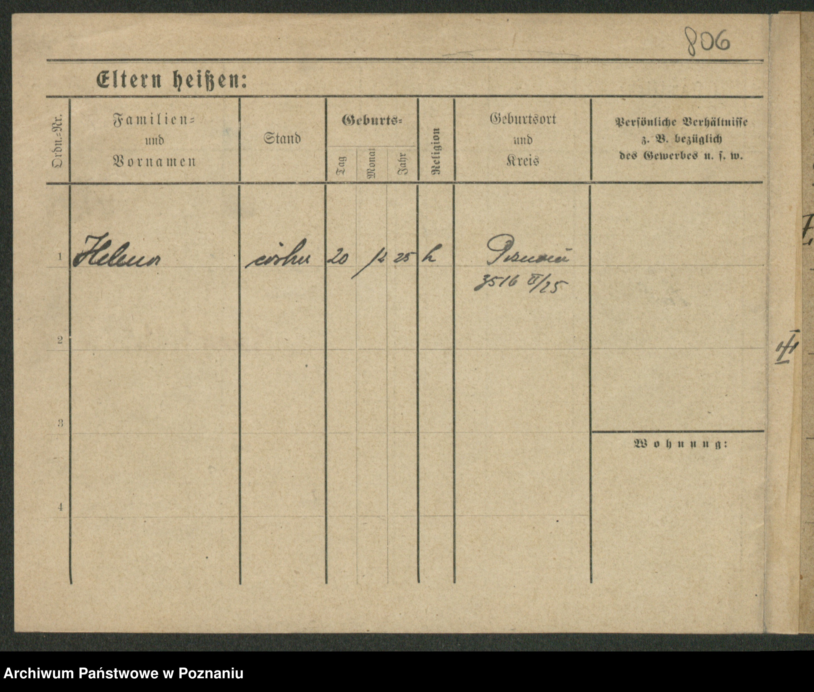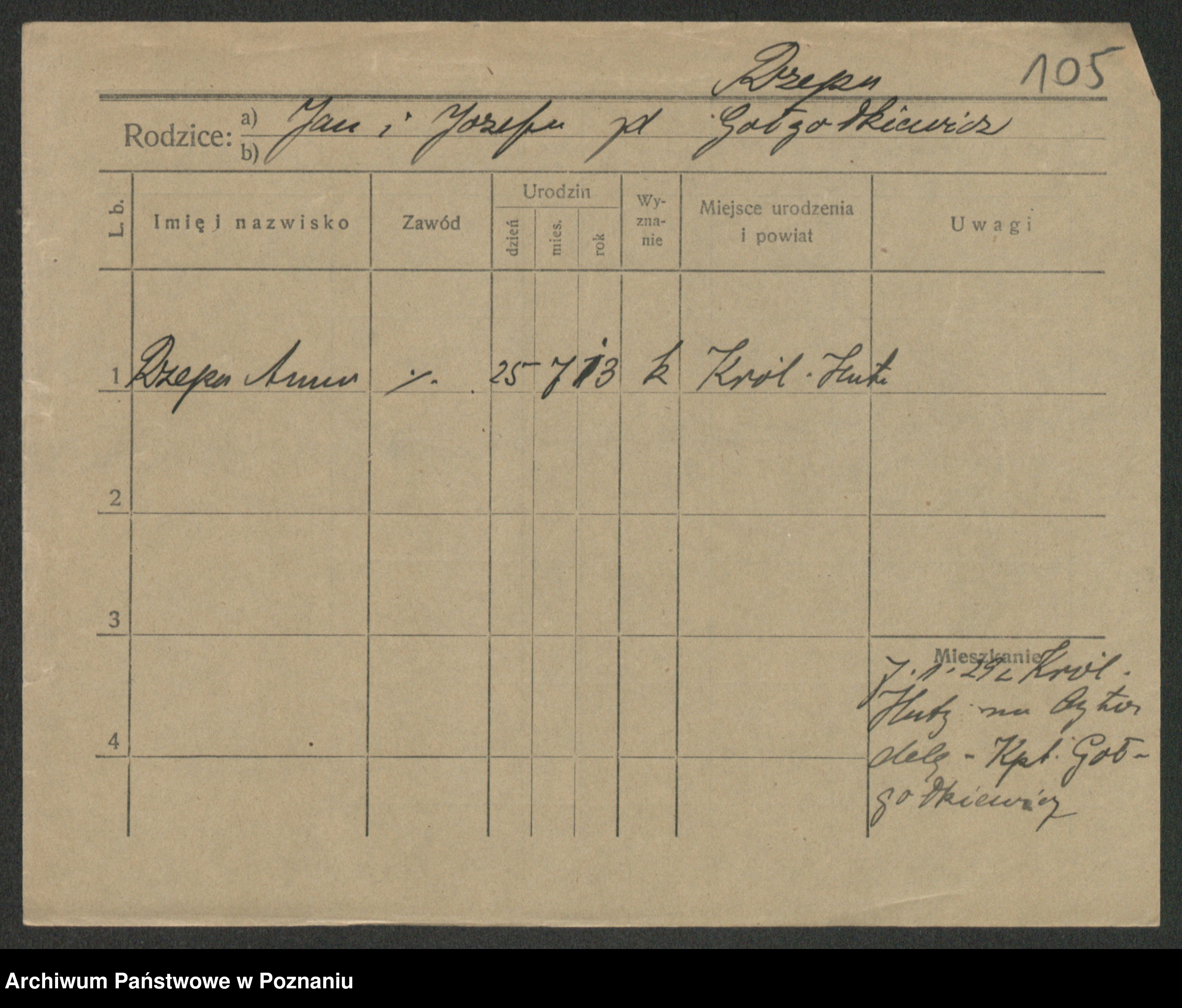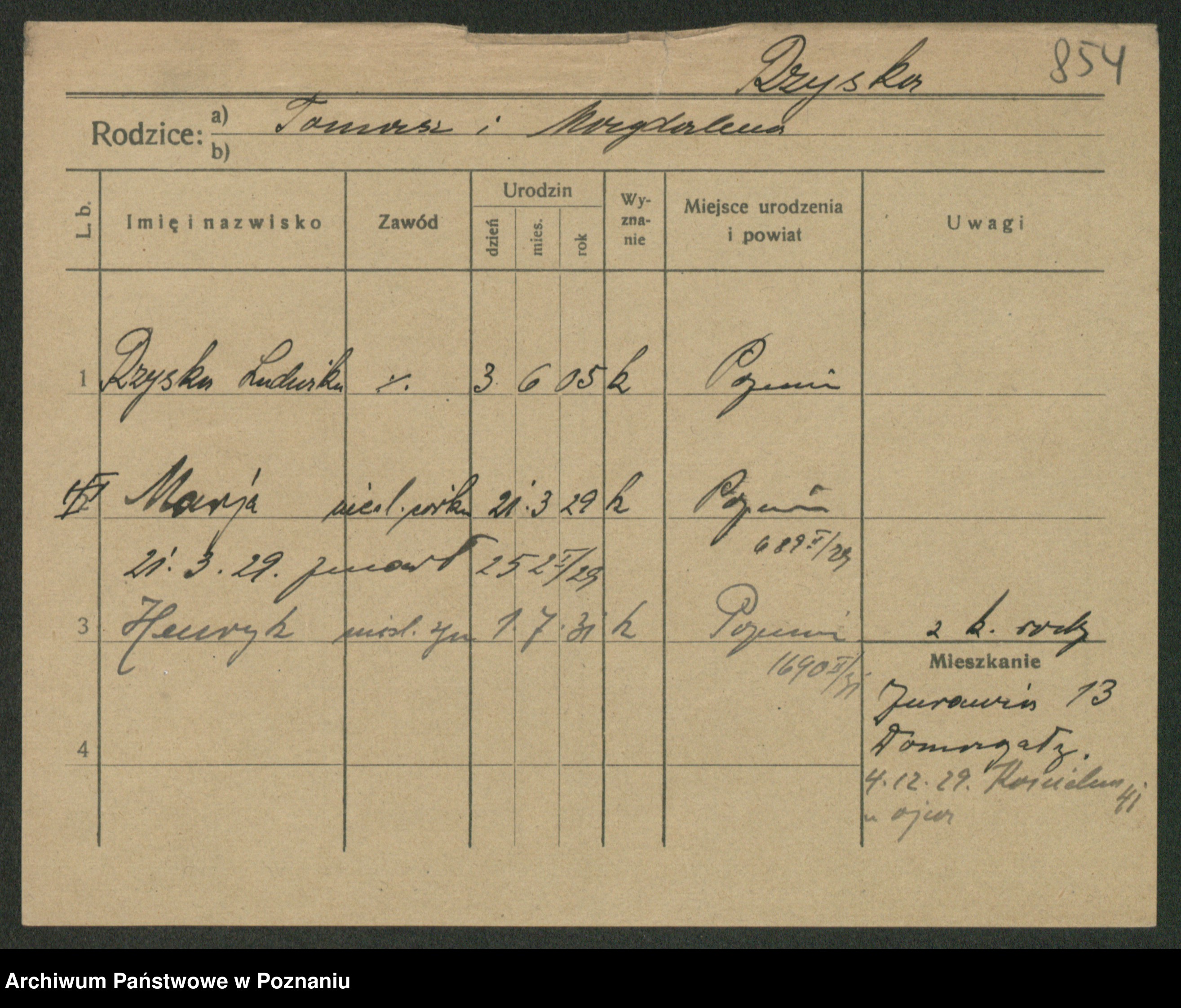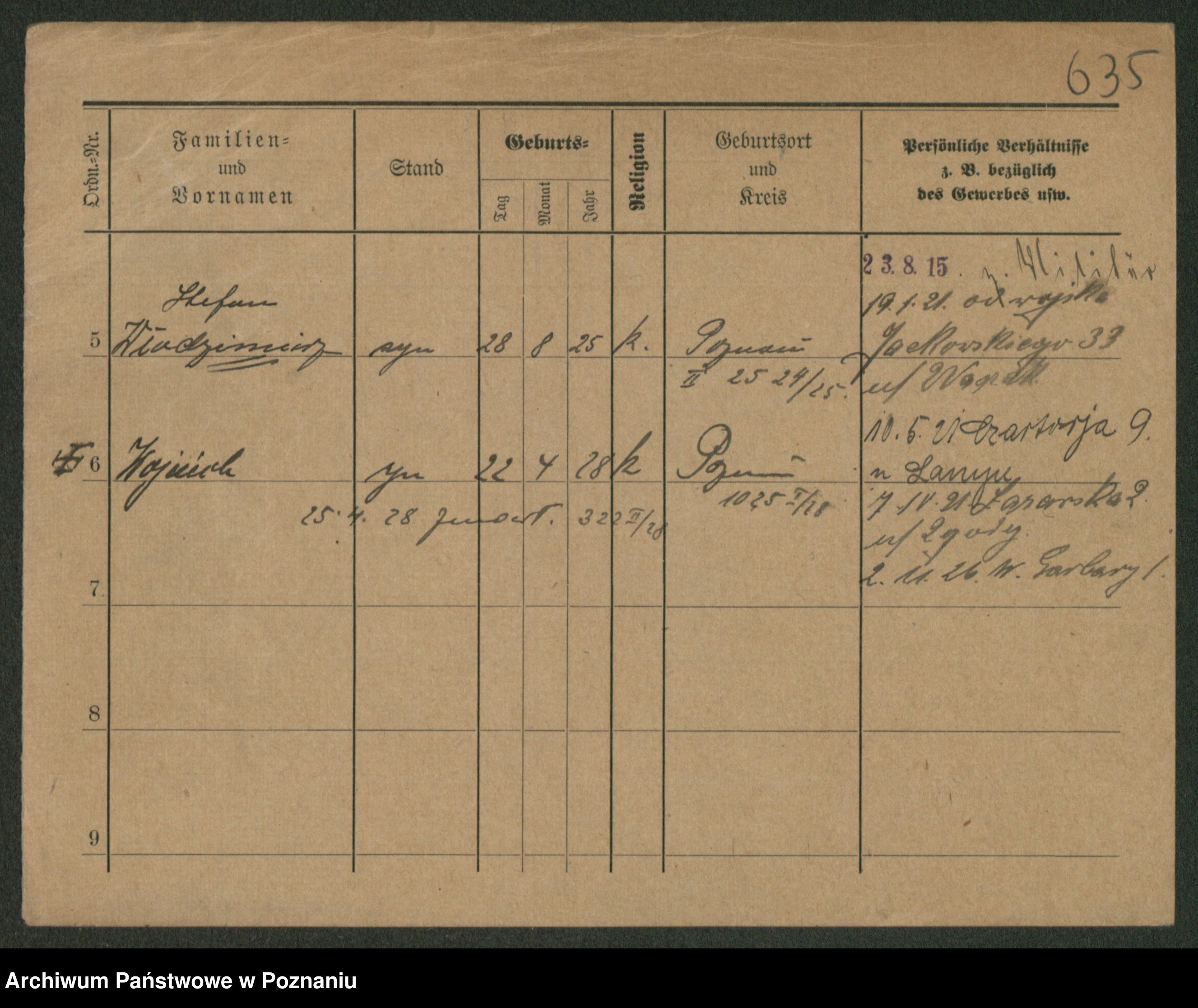 Podgląd karty osobowej dostępny jest po kliknięciu na nazwisko lub ikonkę karty. Można dokonywać powiększenia (ikony na górze) lub przechodzić między kolejnymi skanami (strzałki po bokach).