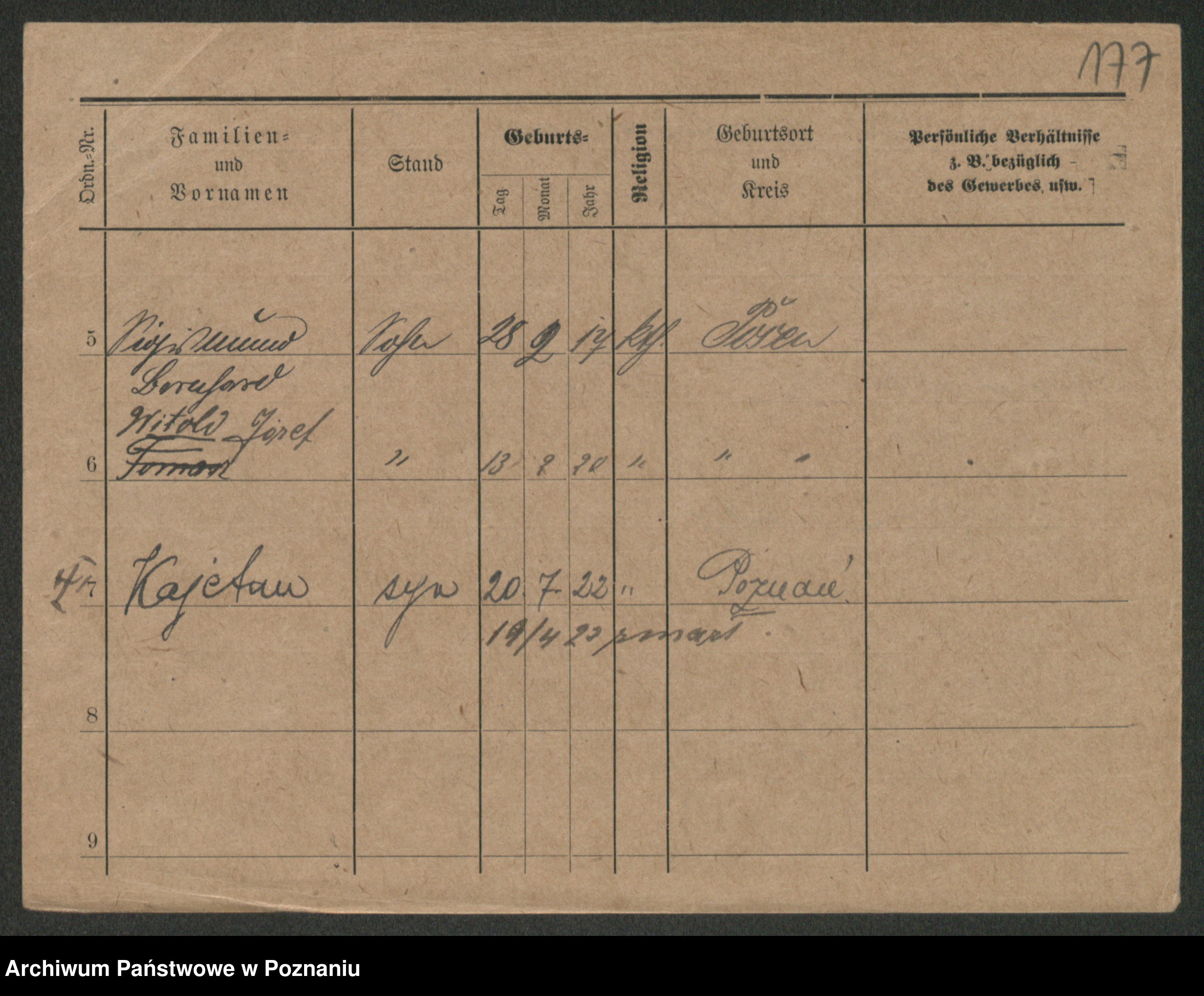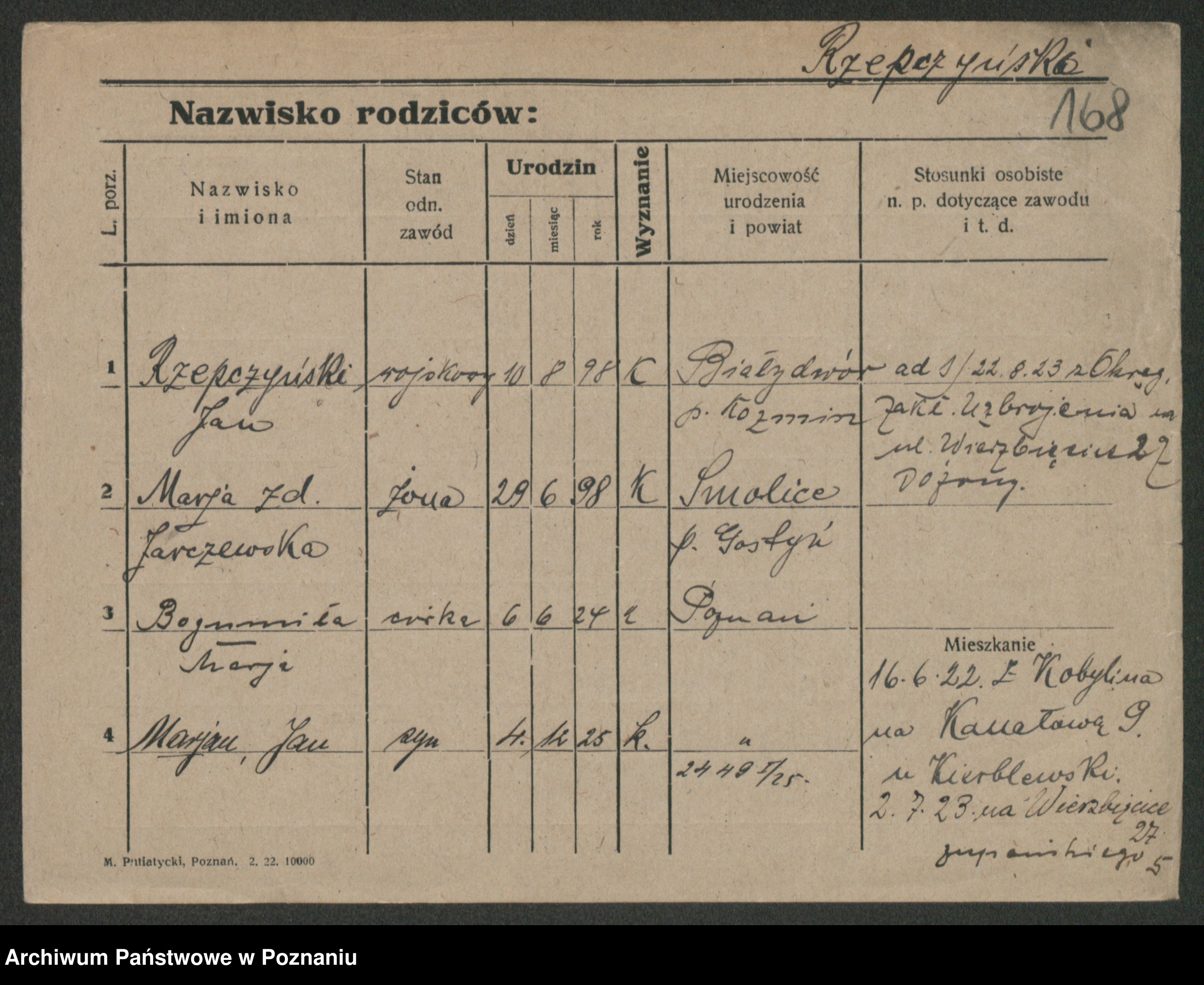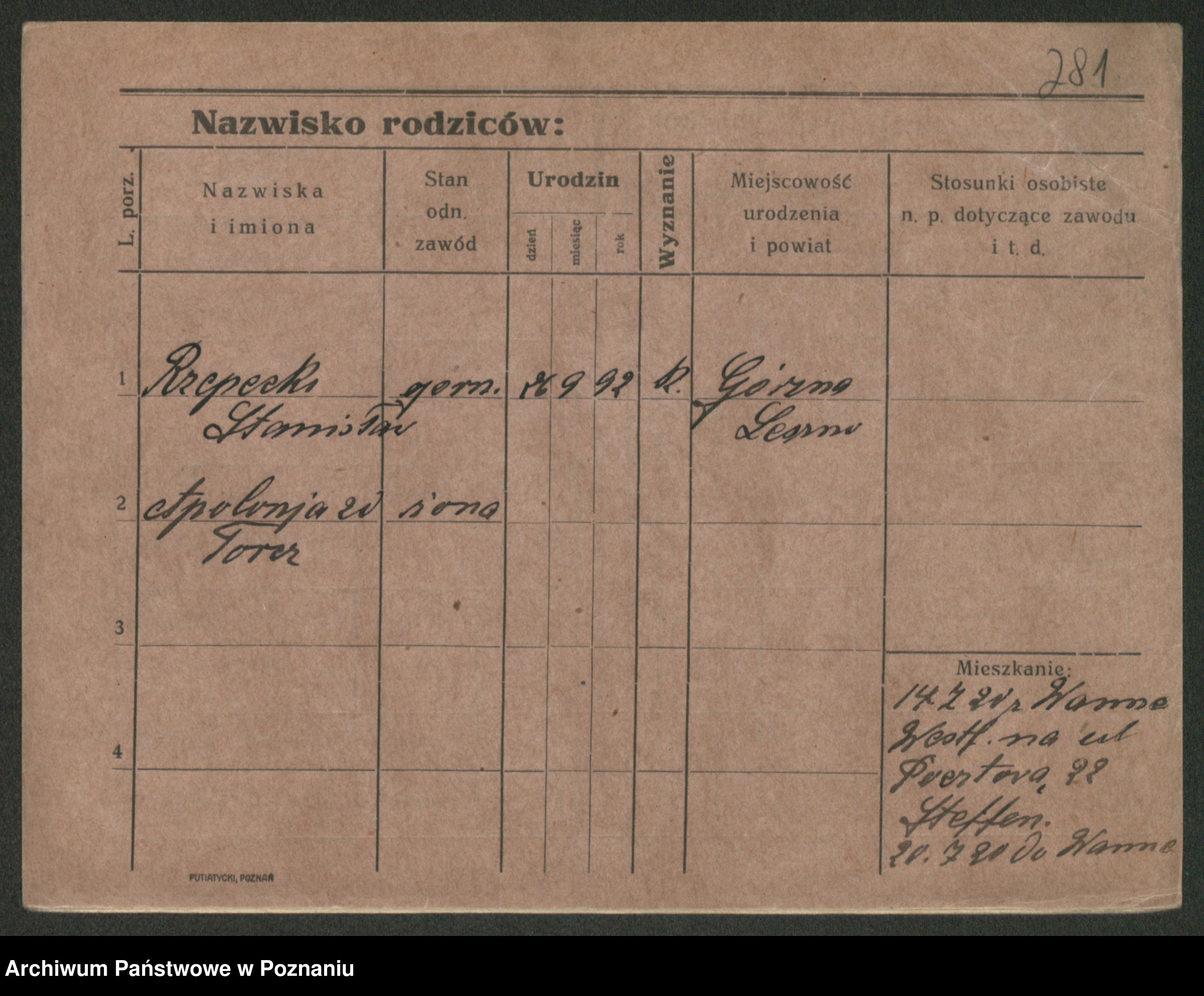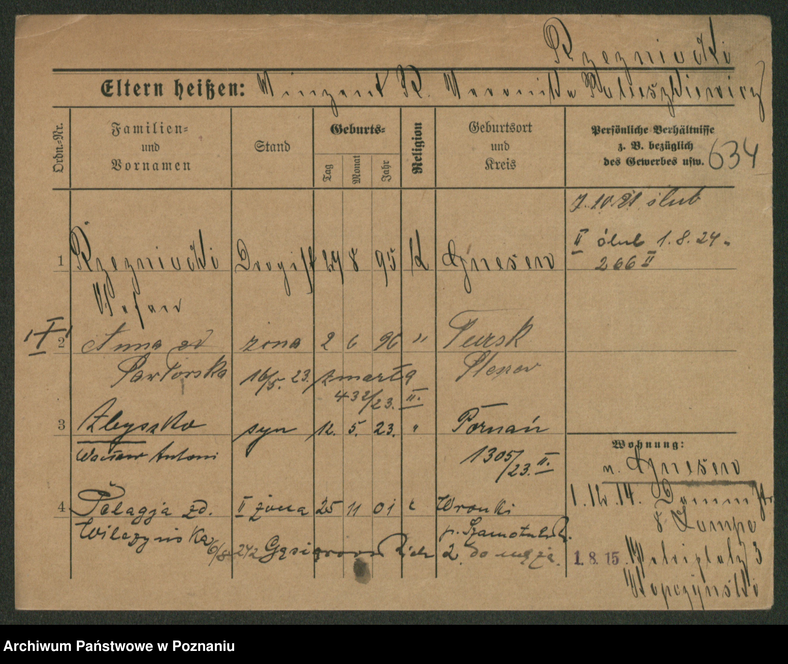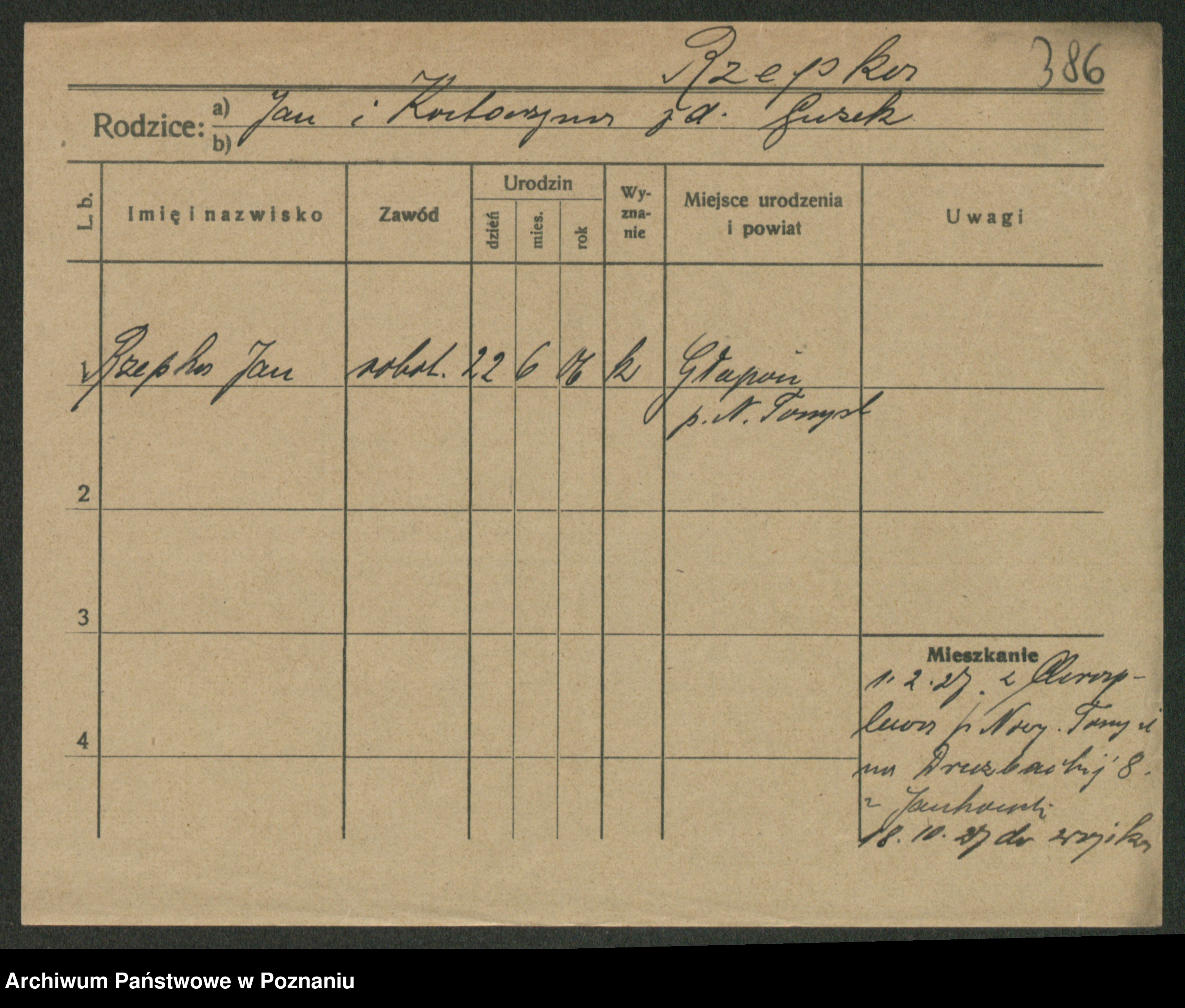 Podgląd karty osobowej dostępny jest po kliknięciu na nazwisko lub ikonkę karty. Można dokonywać powiększenia (ikony na górze) lub przechodzić między kolejnymi skanami (strzałki po bokach).