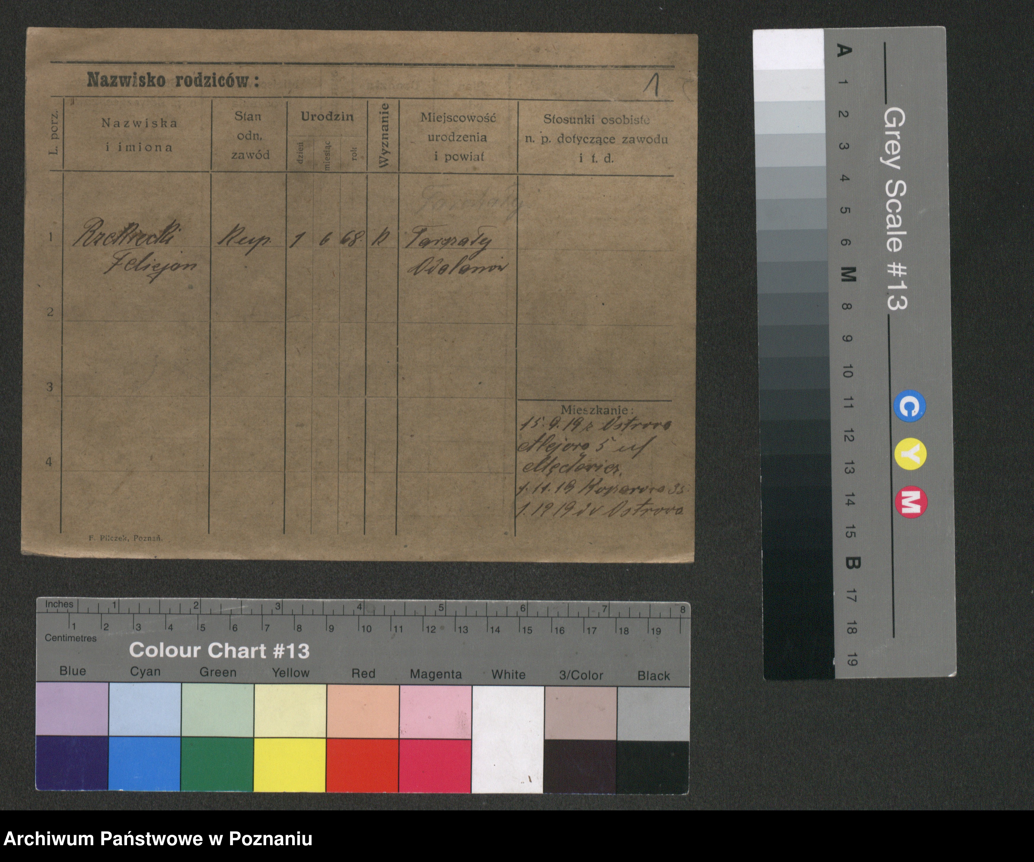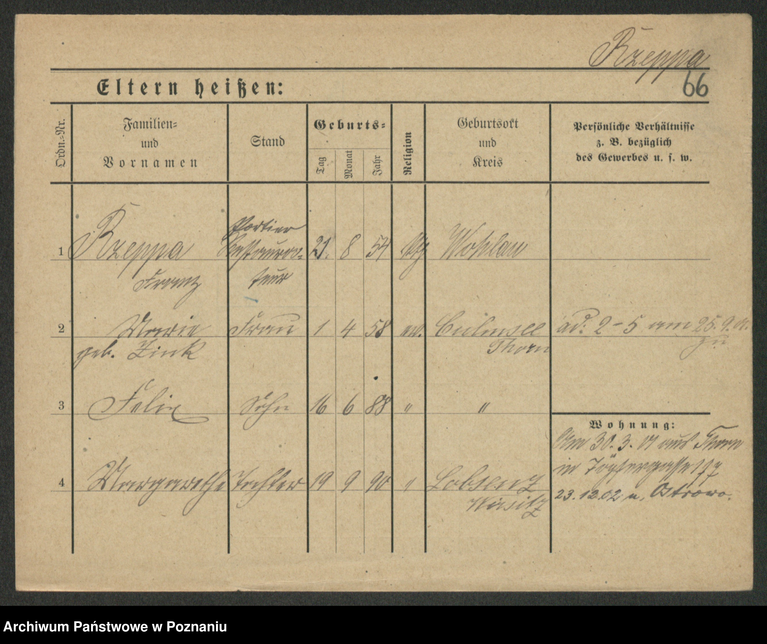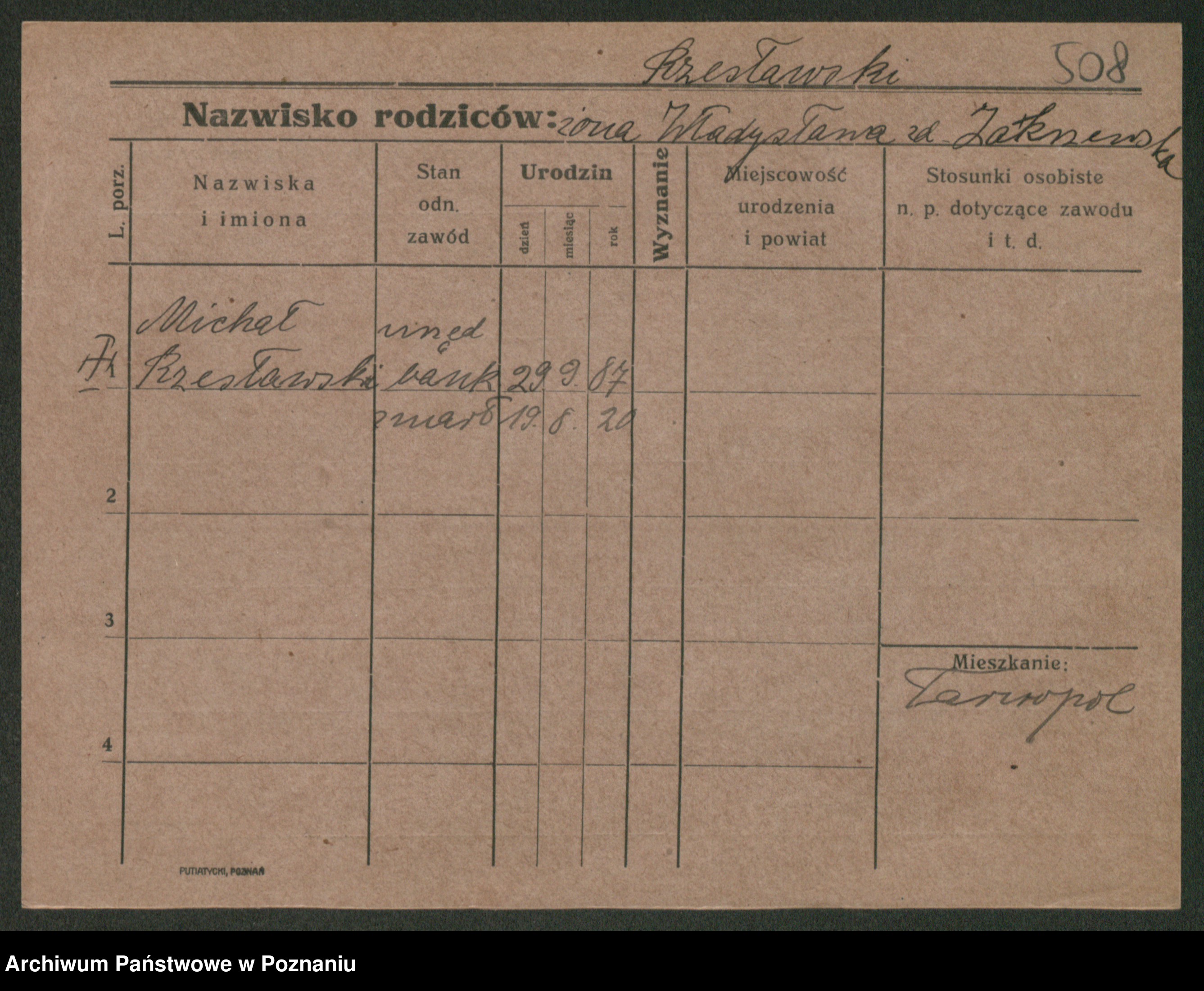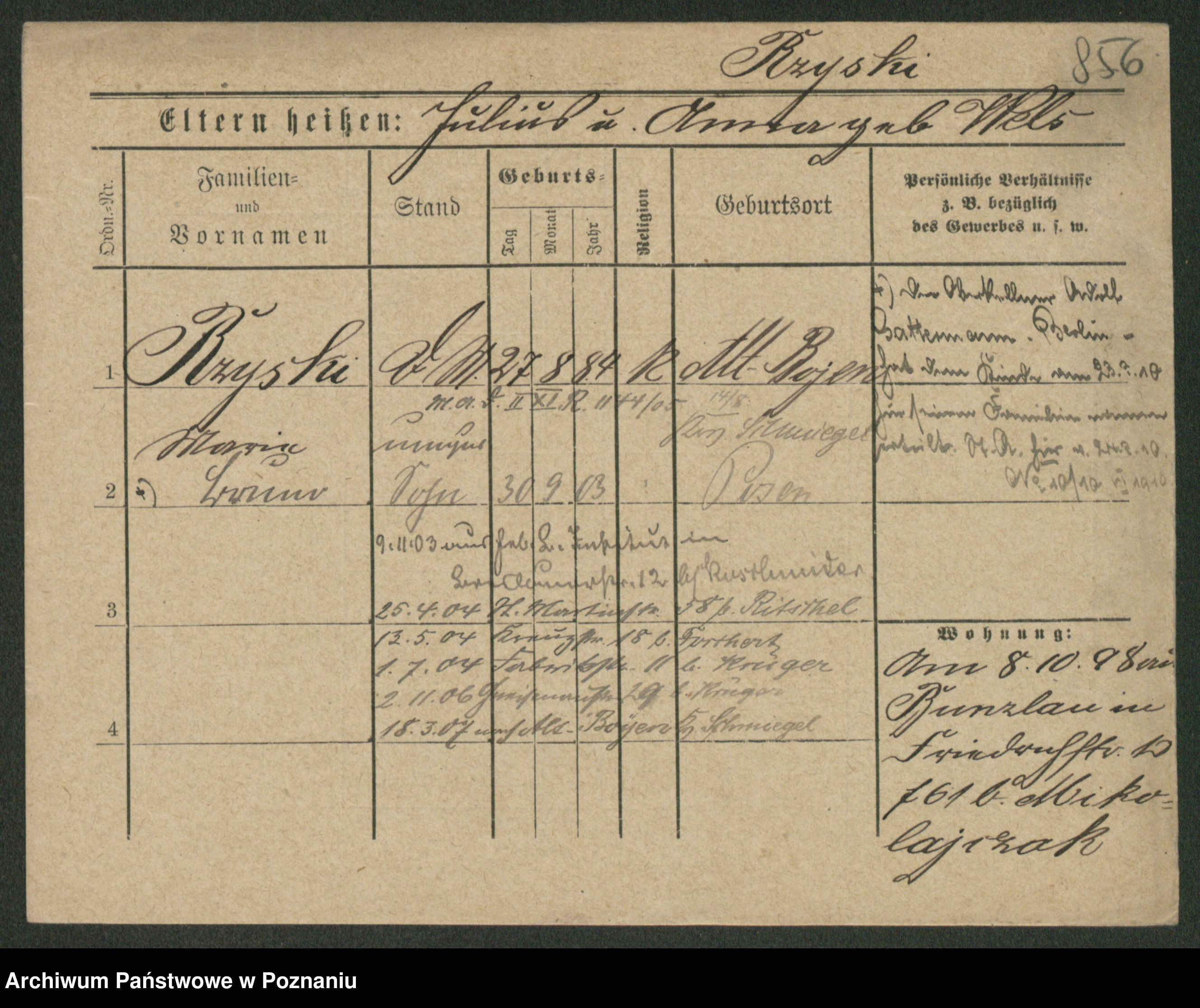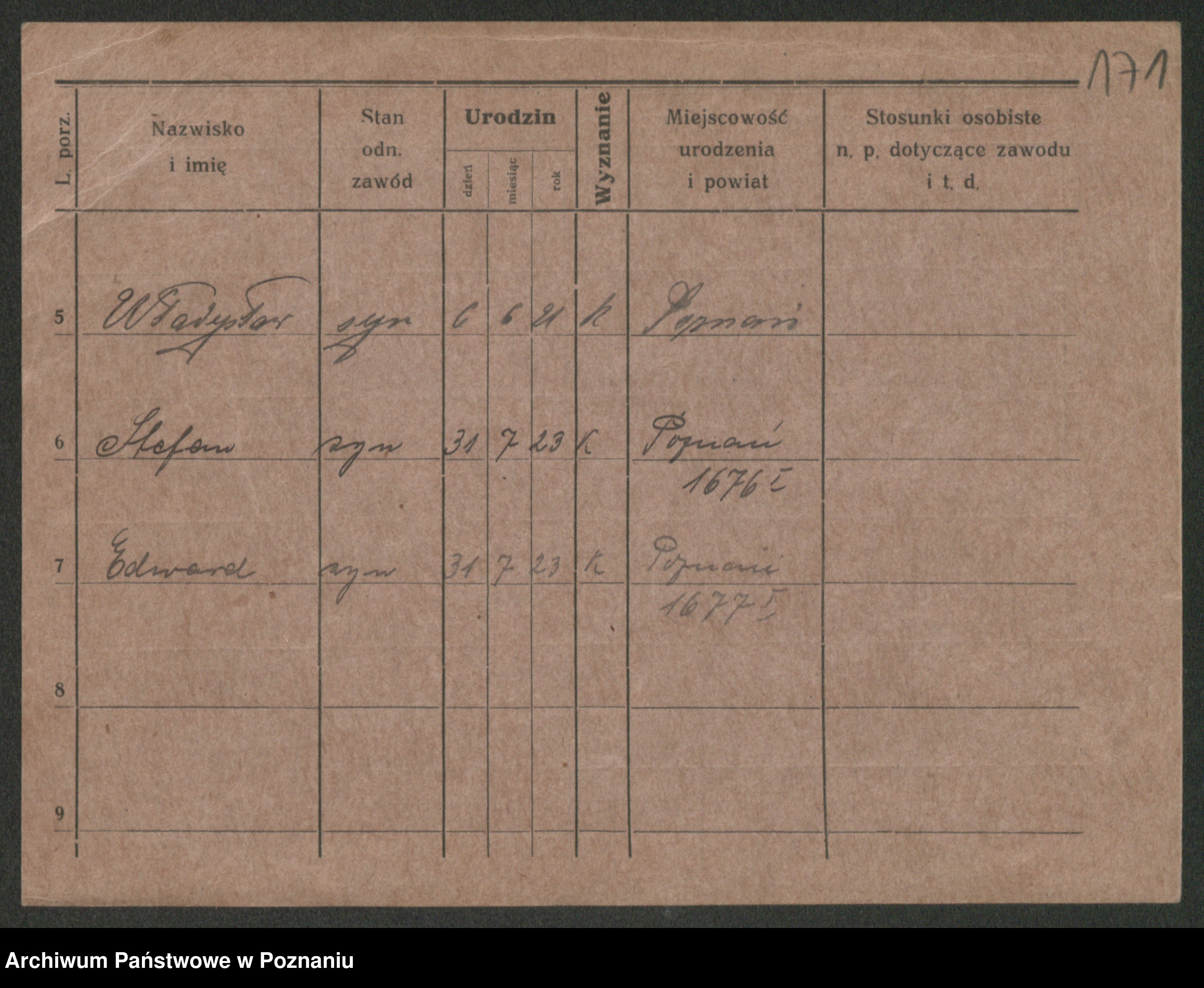 Podgląd karty osobowej dostępny jest po kliknięciu na nazwisko lub ikonkę karty. Można dokonywać powiększenia (ikony na górze) lub przechodzić między kolejnymi skanami (strzałki po bokach).