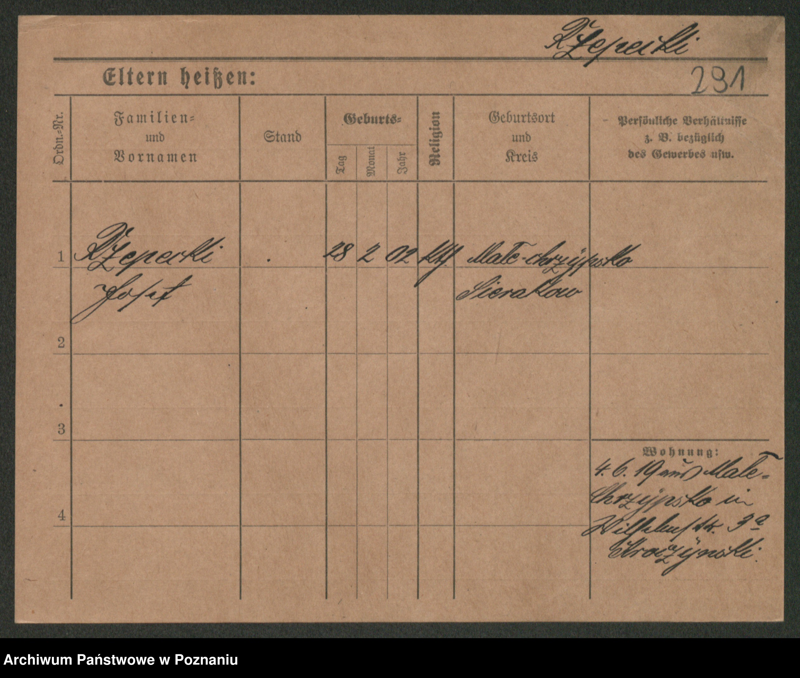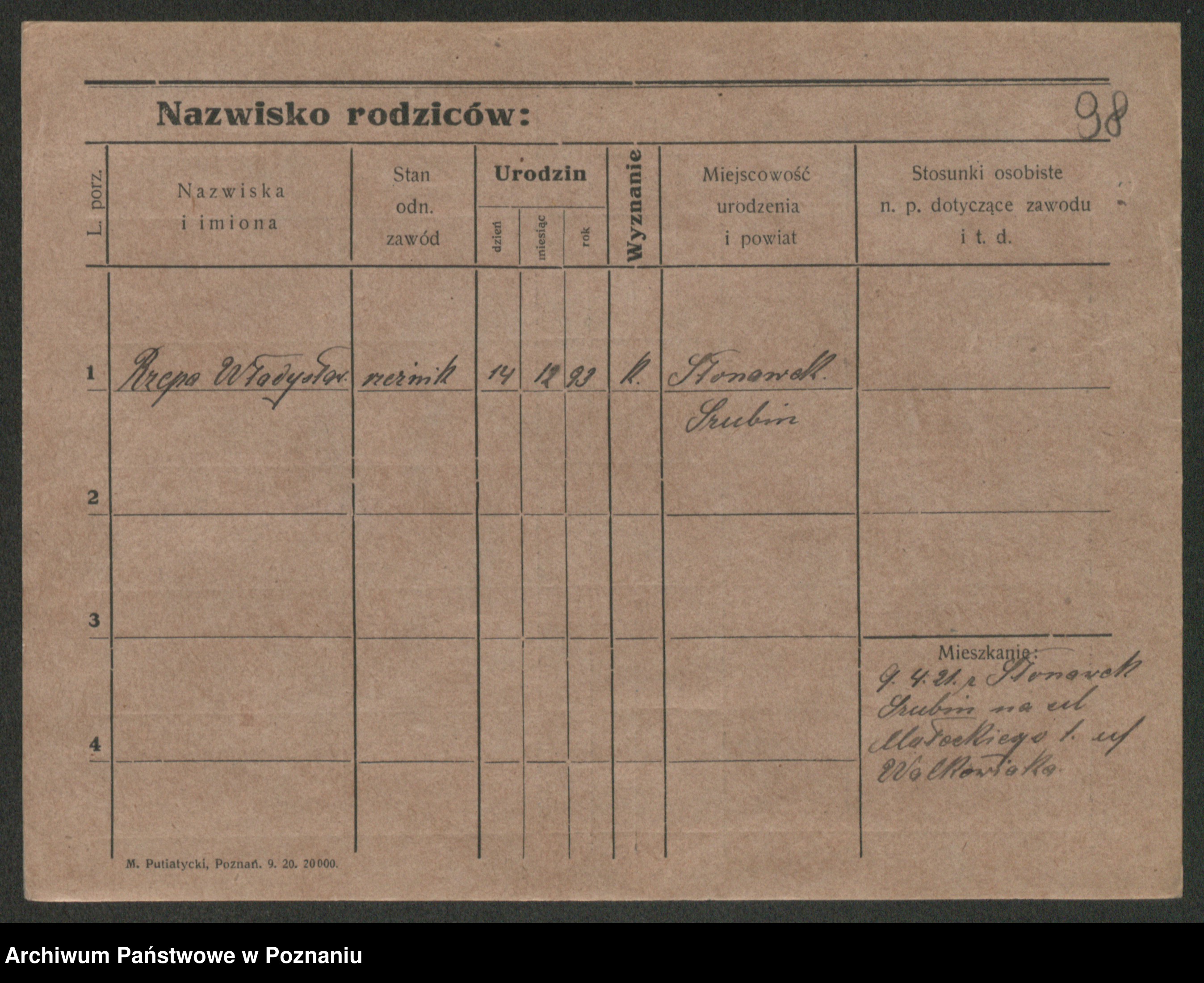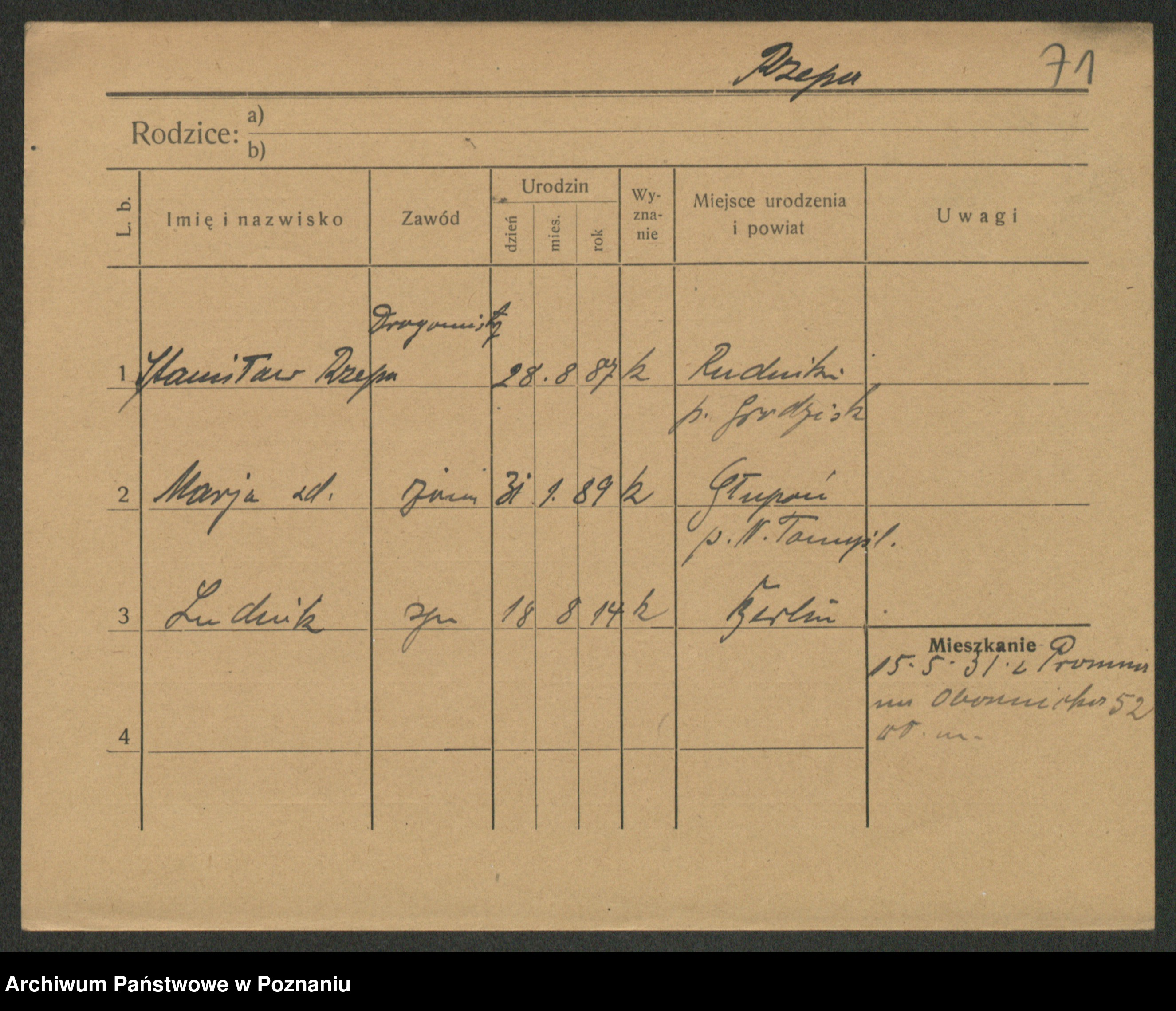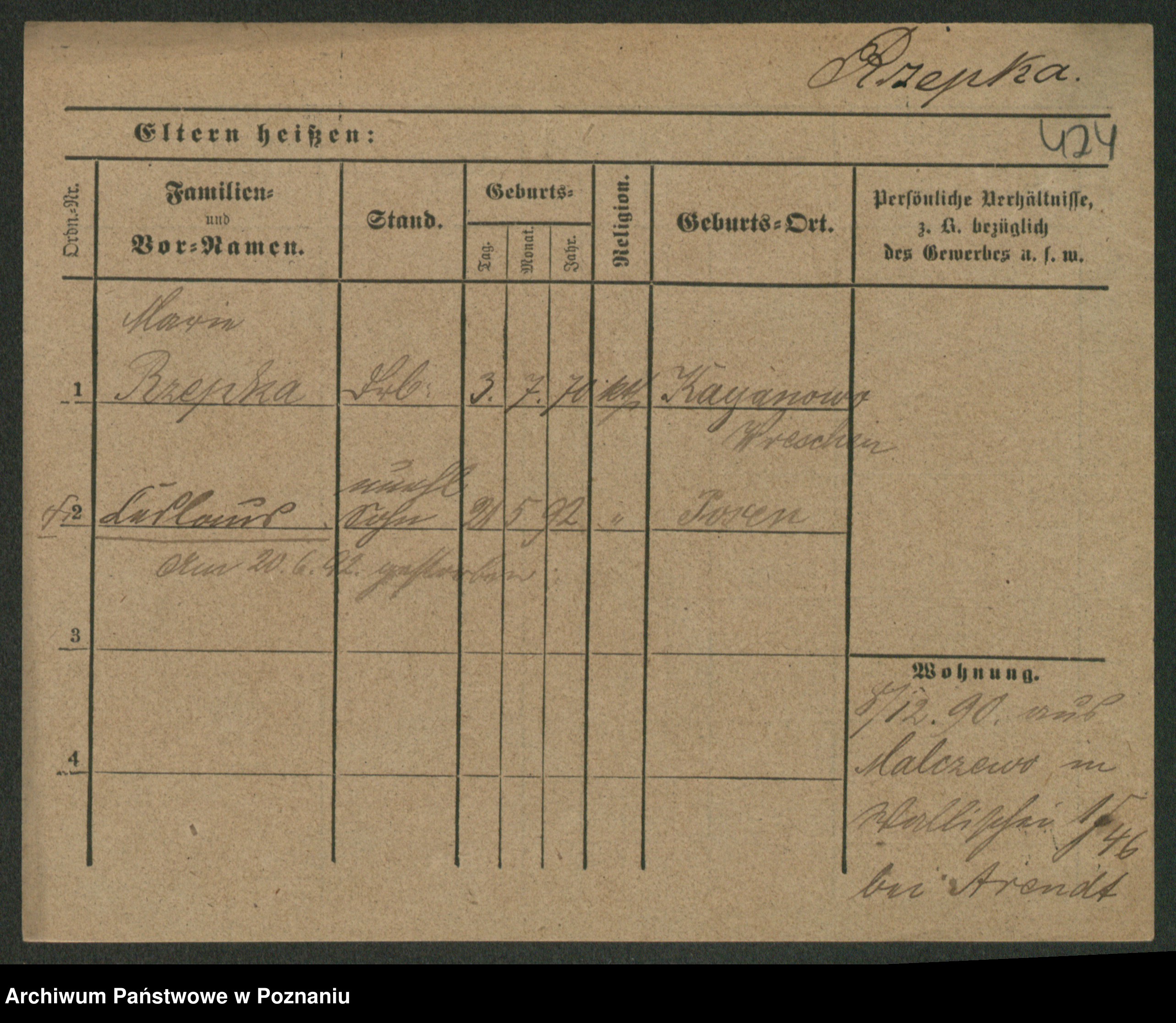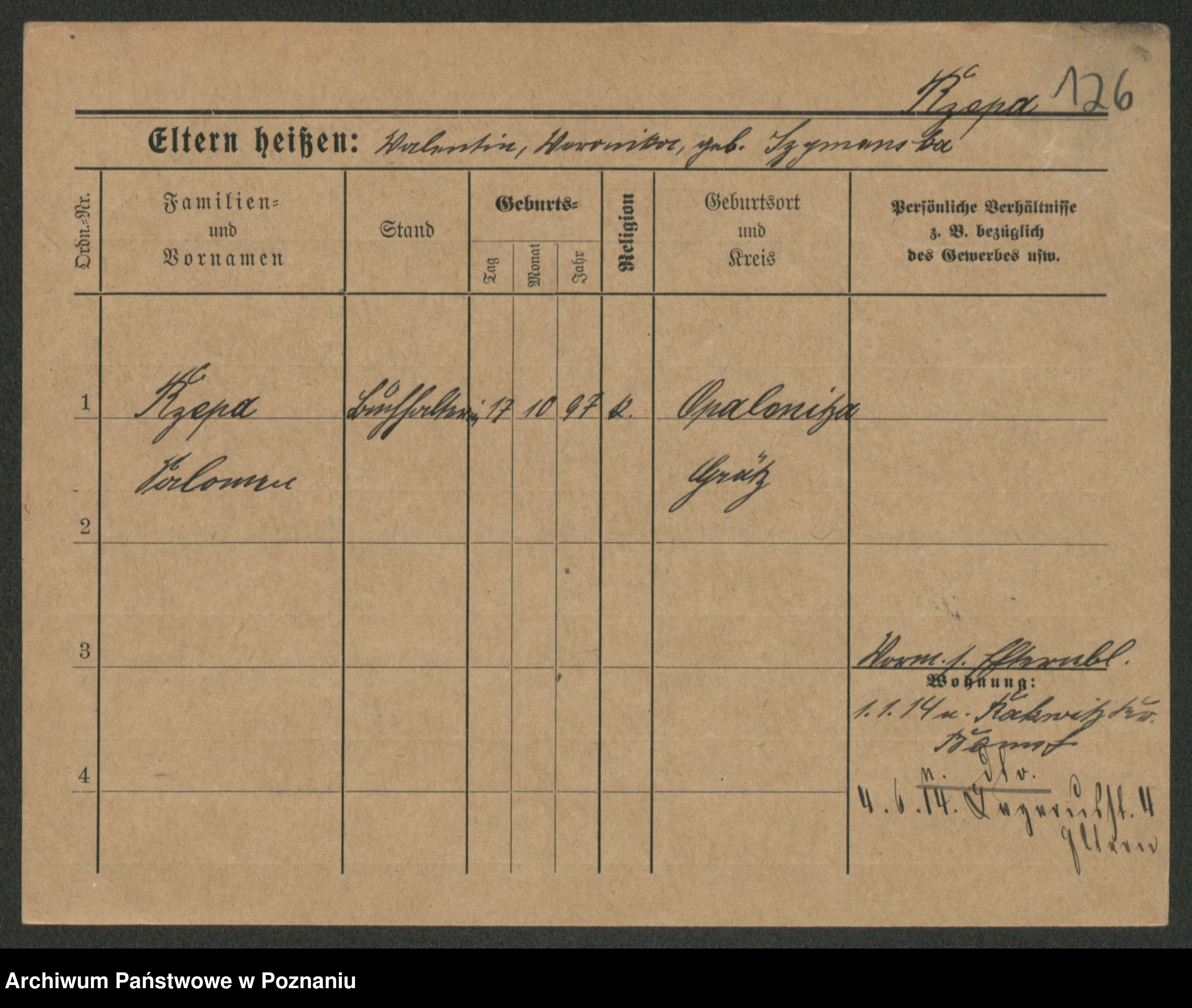 Podgląd karty osobowej dostępny jest po kliknięciu na nazwisko lub ikonkę karty. Można dokonywać powiększenia (ikony na górze) lub przechodzić między kolejnymi skanami (strzałki po bokach).