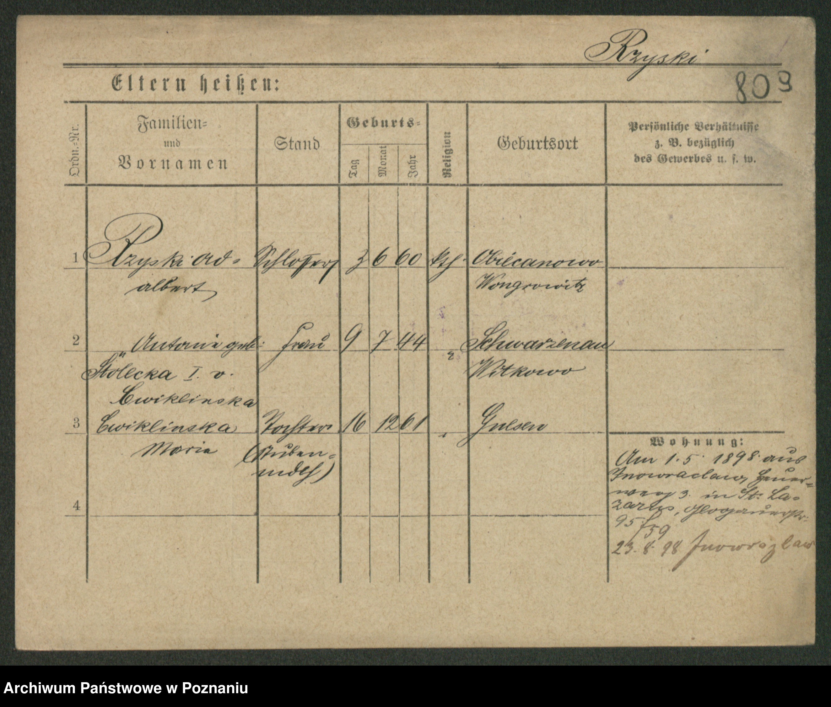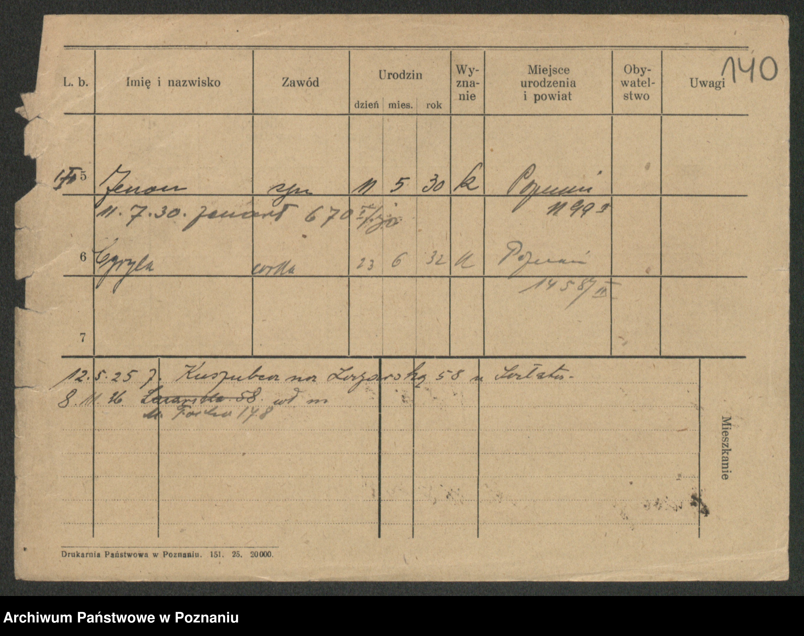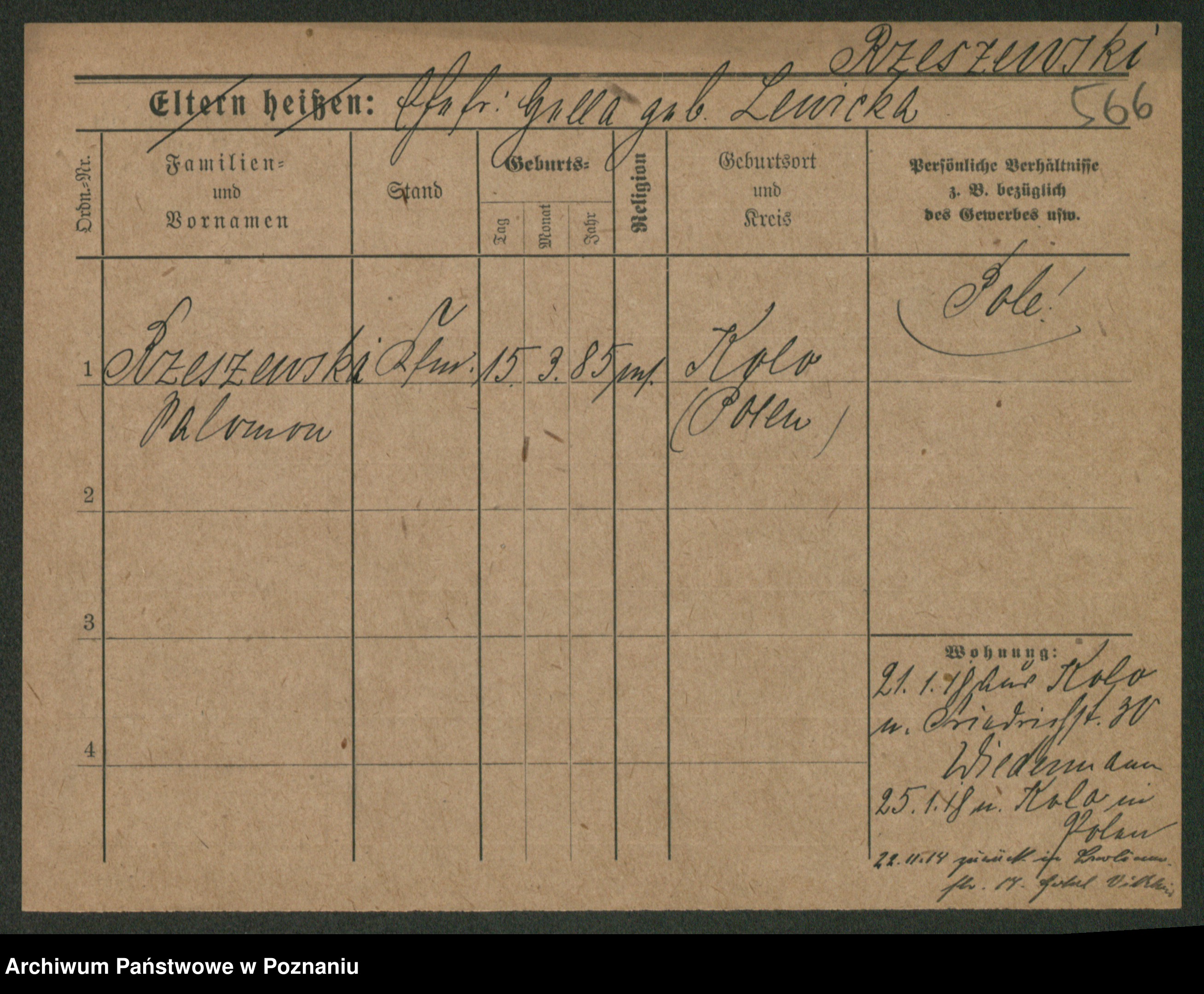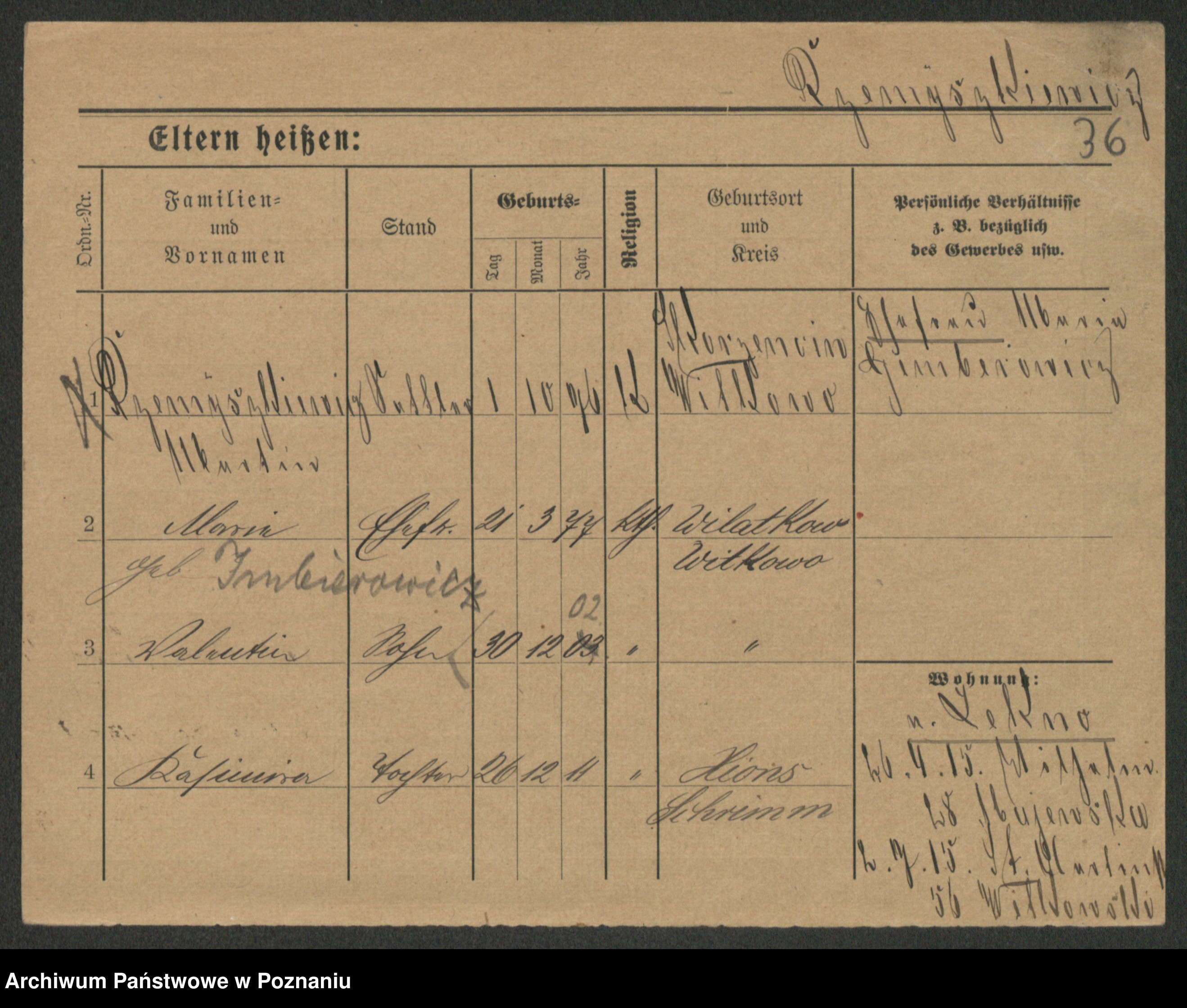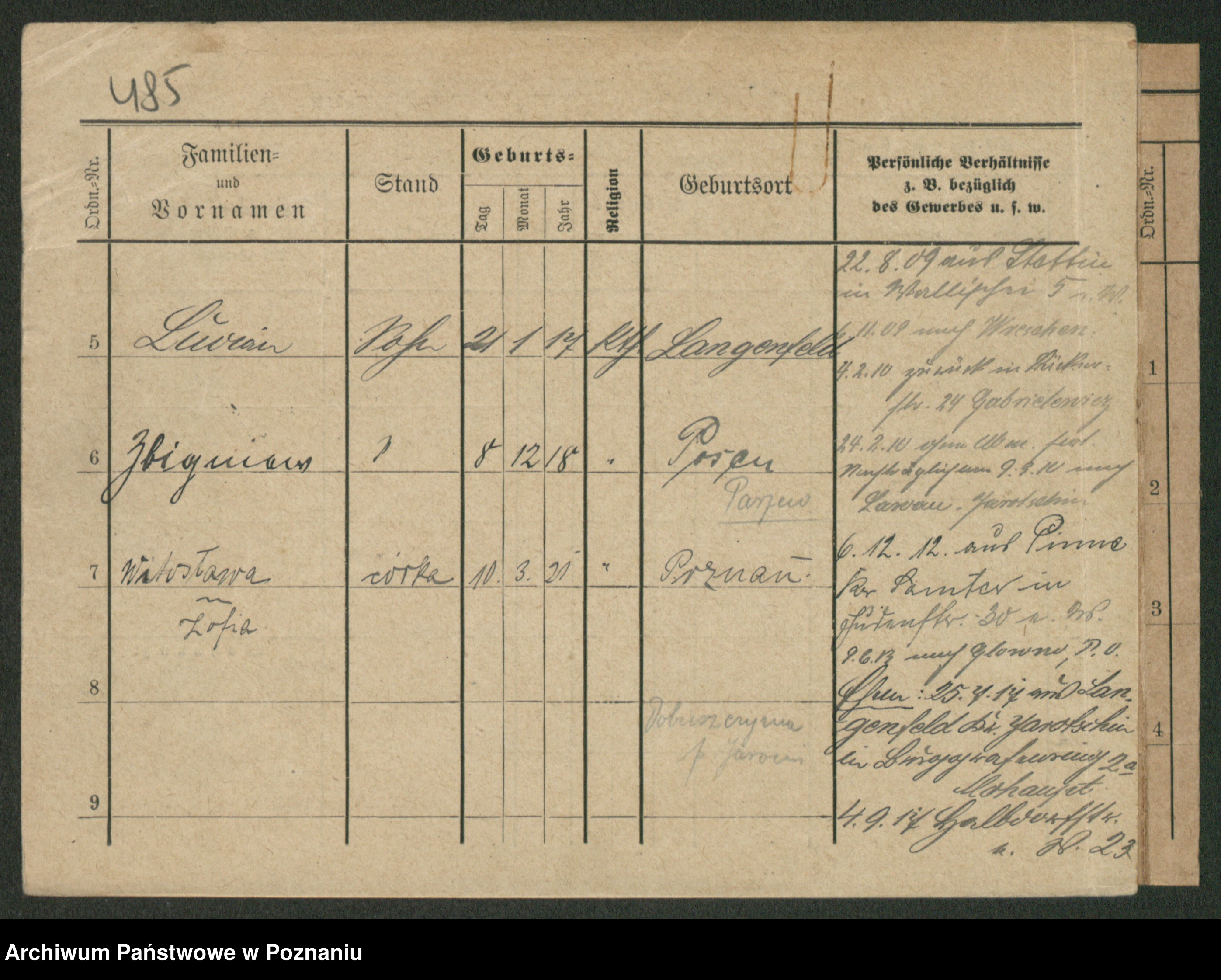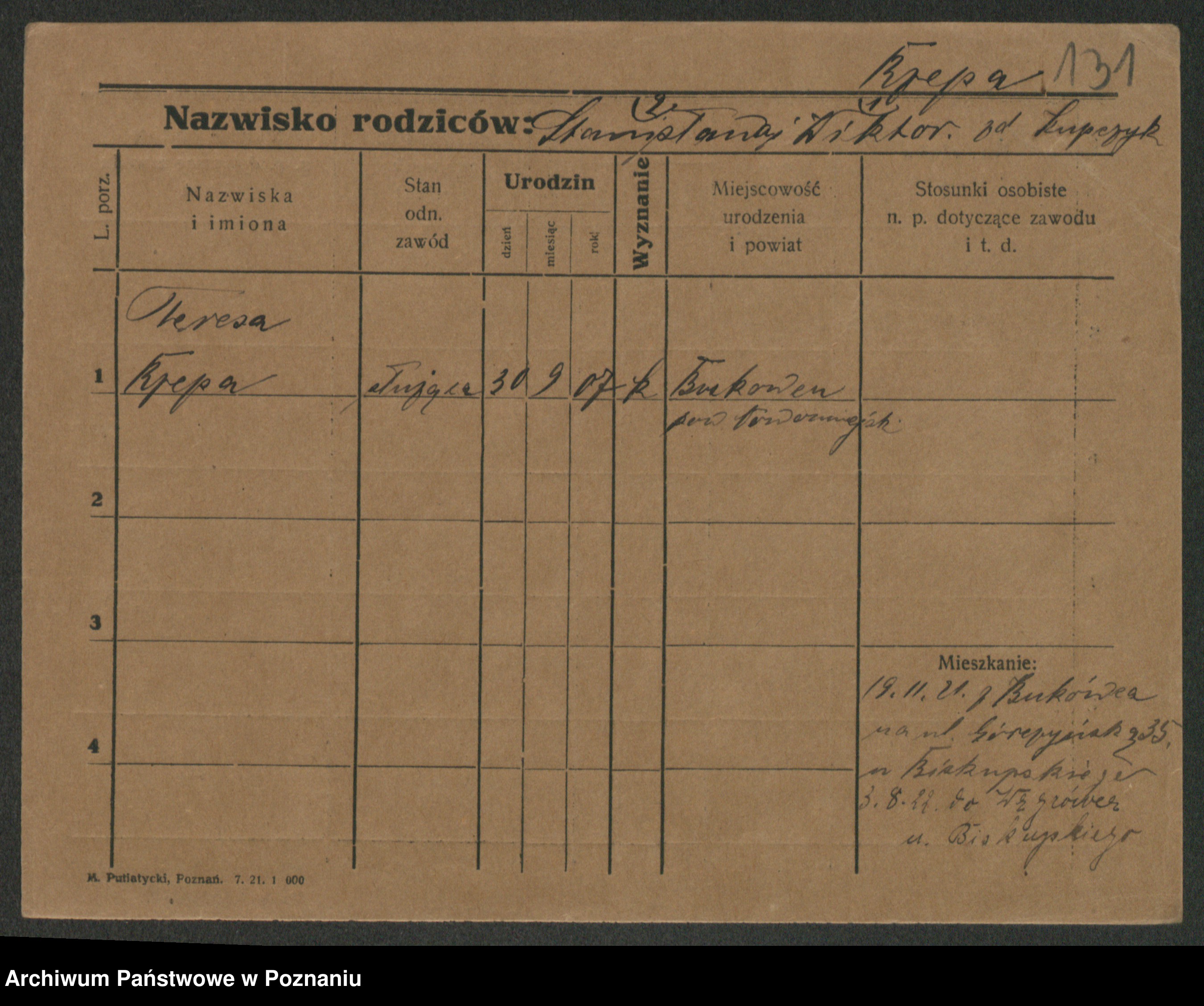 Podgląd karty osobowej dostępny jest po kliknięciu na nazwisko lub ikonkę karty. Można dokonywać powiększenia (ikony na górze) lub przechodzić między kolejnymi skanami (strzałki po bokach).