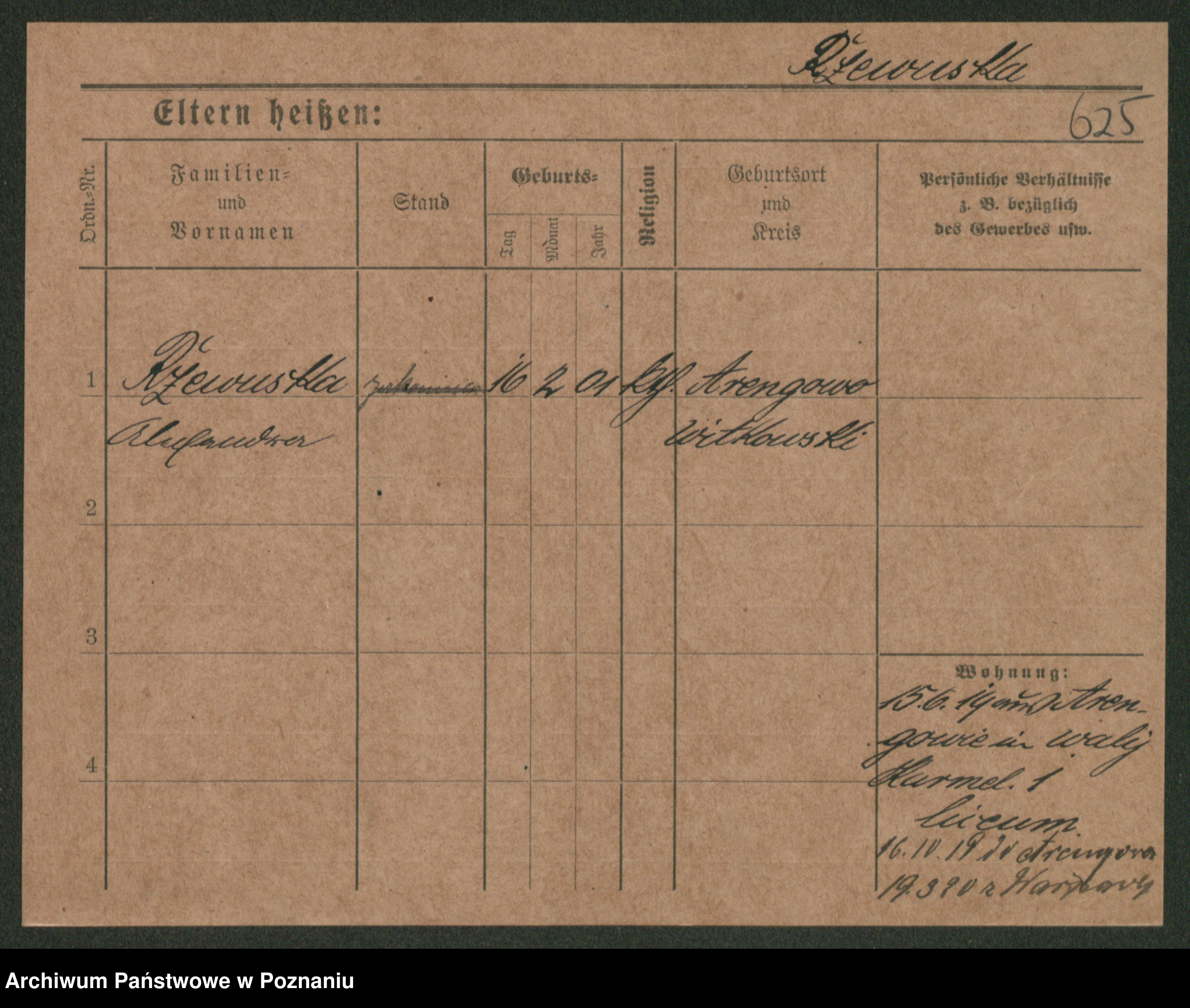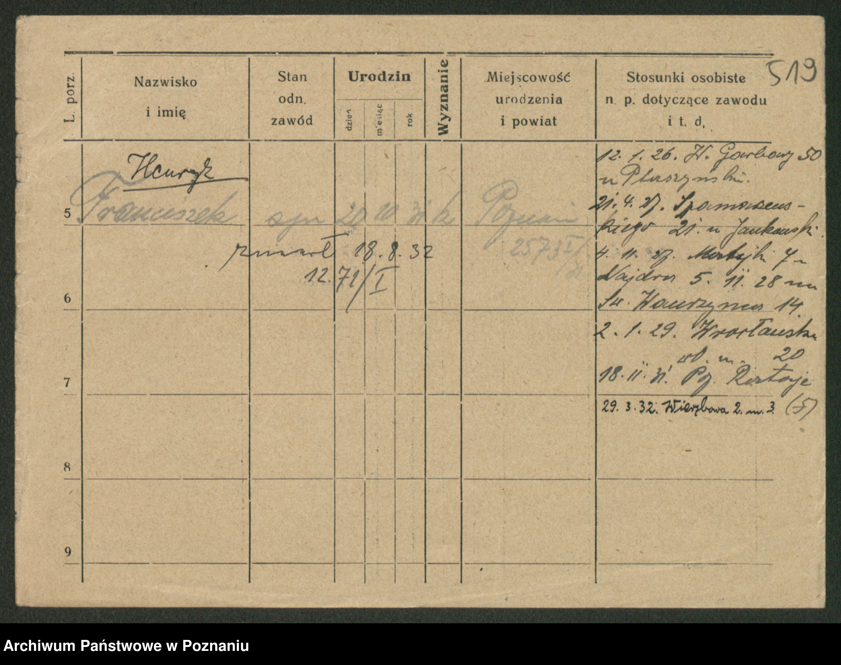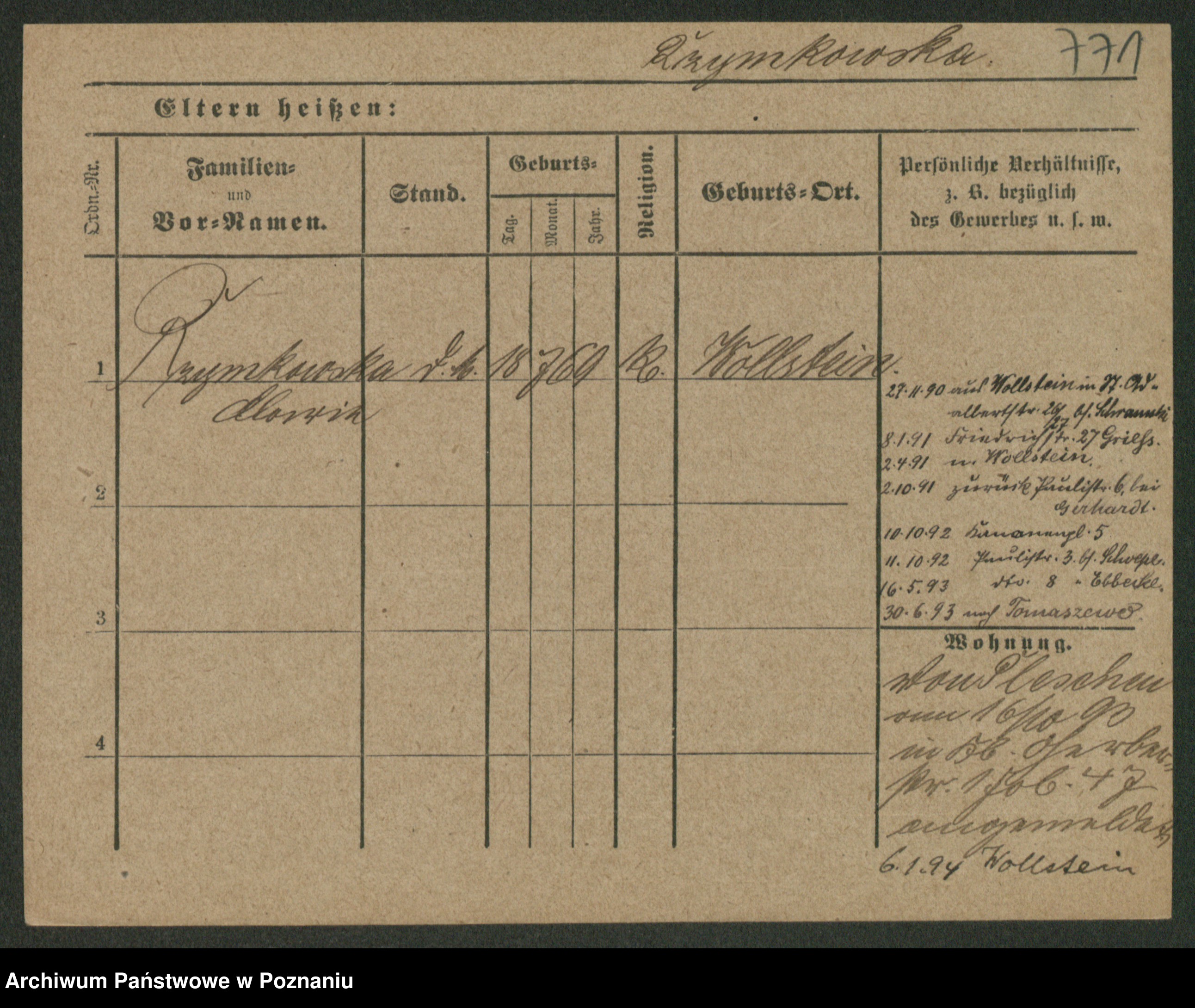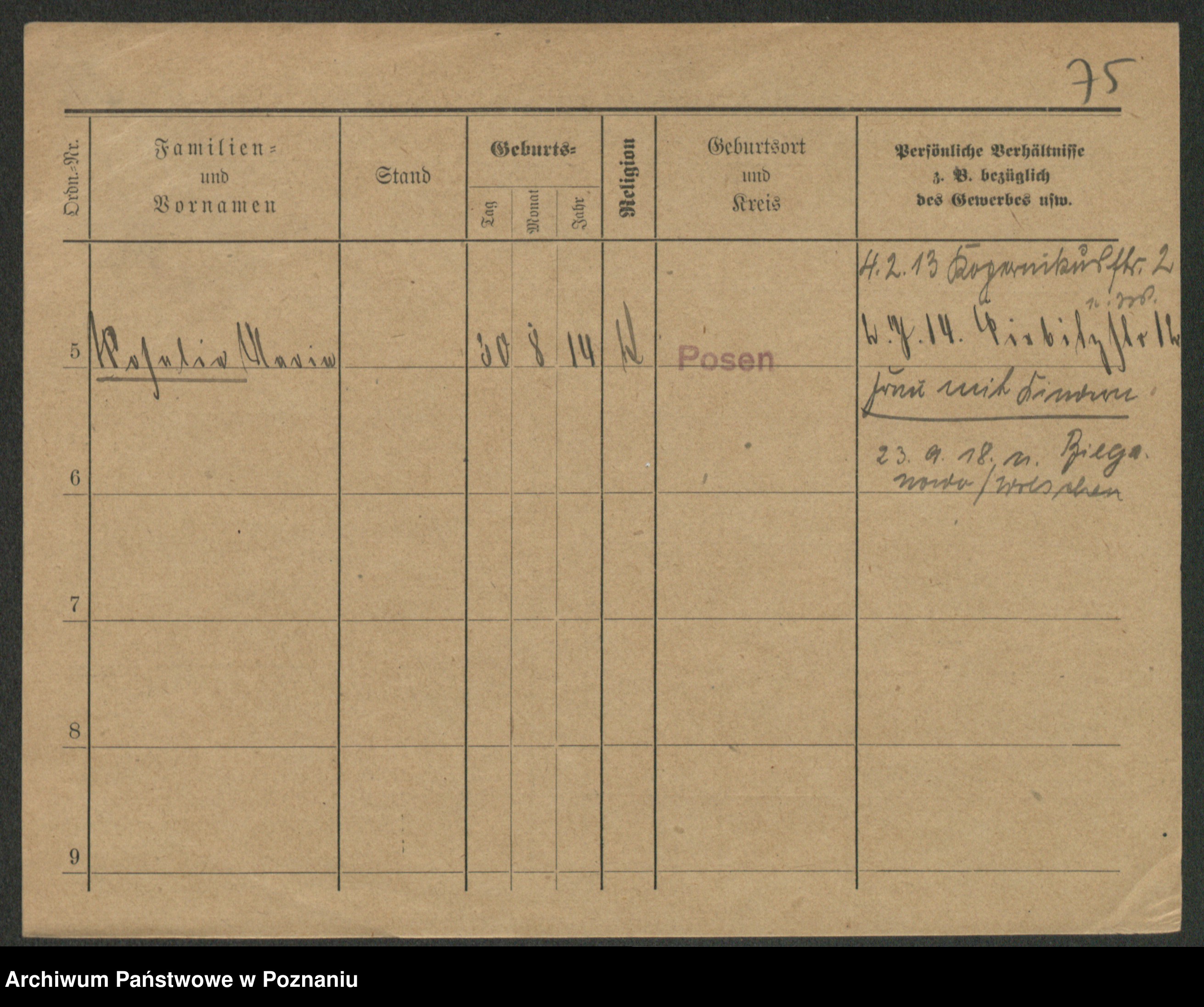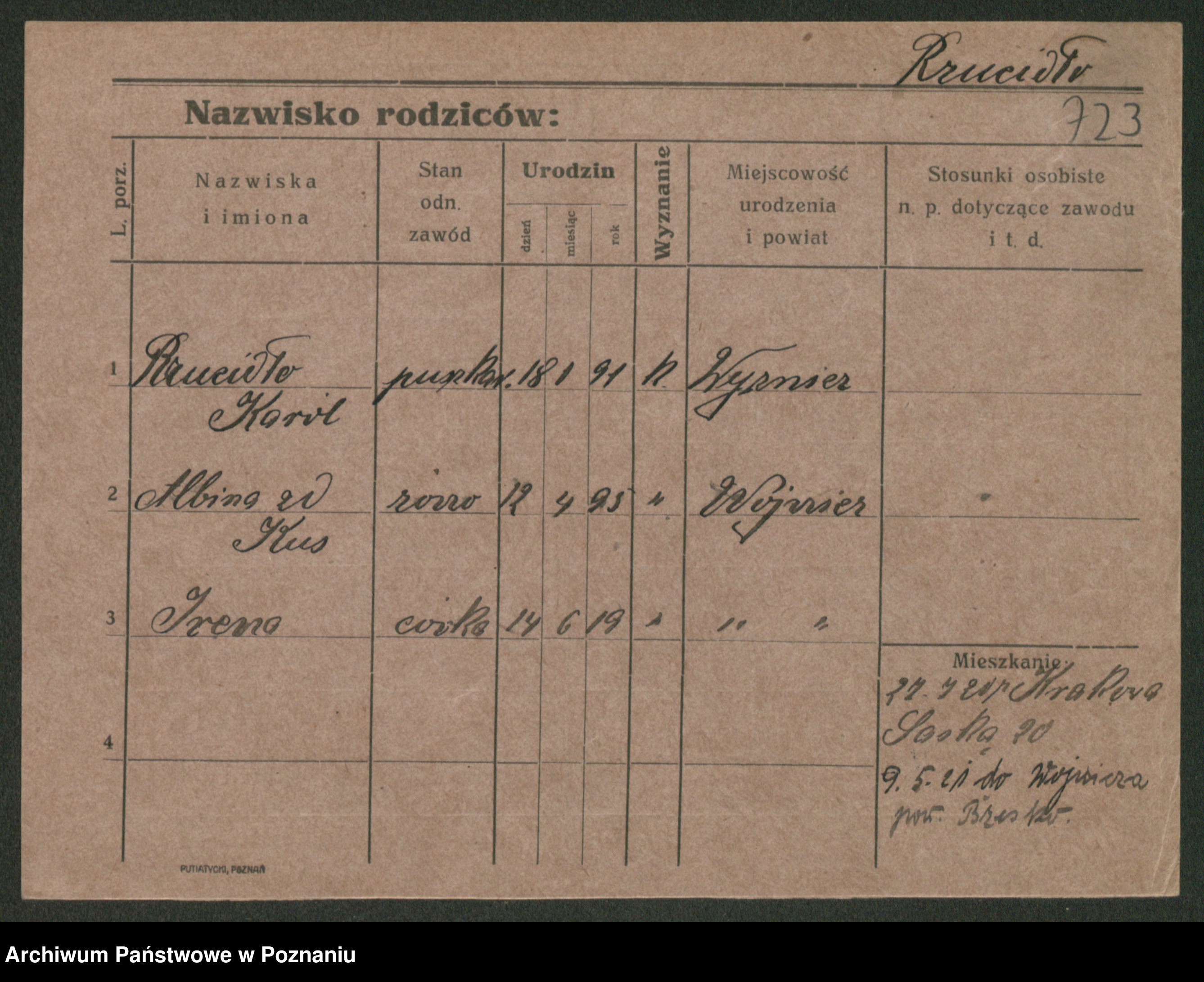 Podgląd karty osobowej dostępny jest po kliknięciu na nazwisko lub ikonkę karty. Można dokonywać powiększenia (ikony na górze) lub przechodzić między kolejnymi skanami (strzałki po bokach).