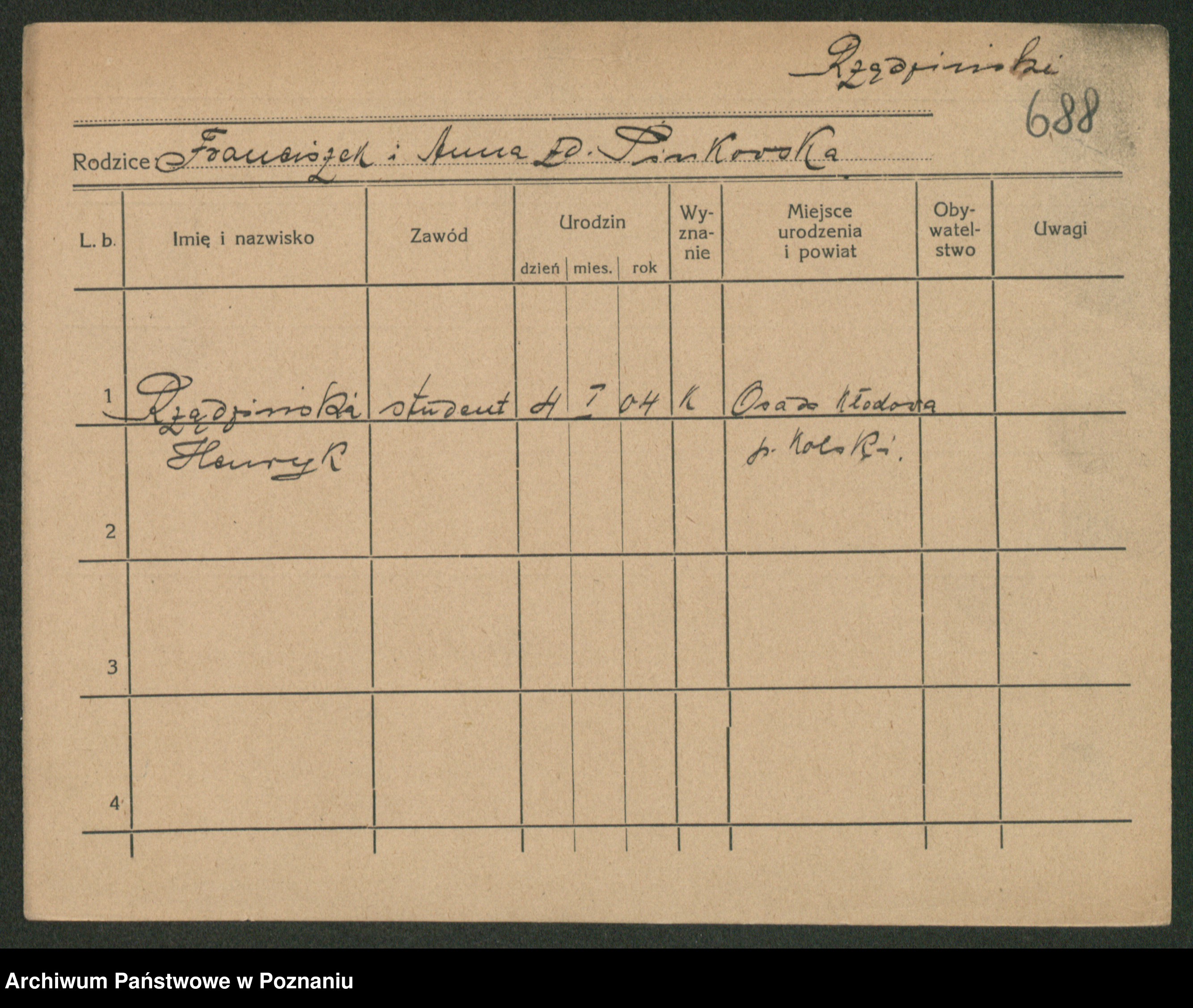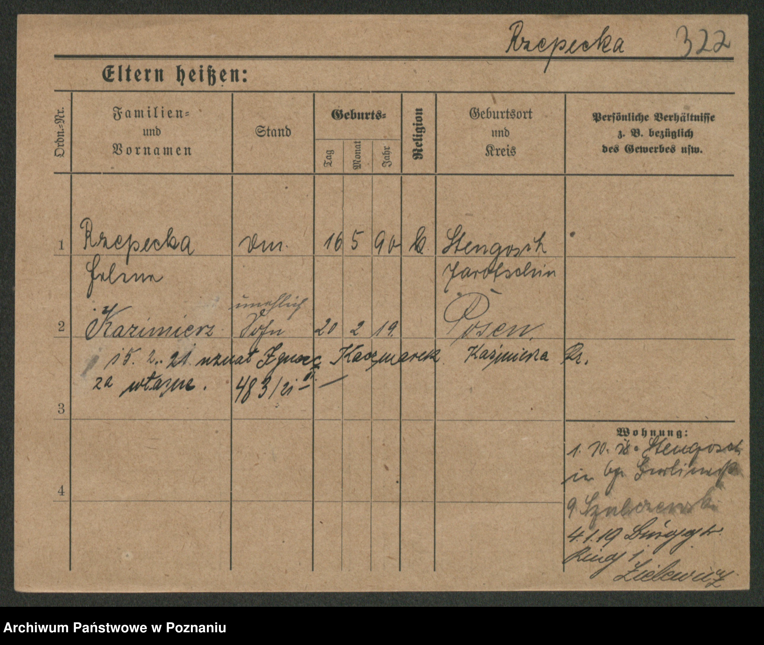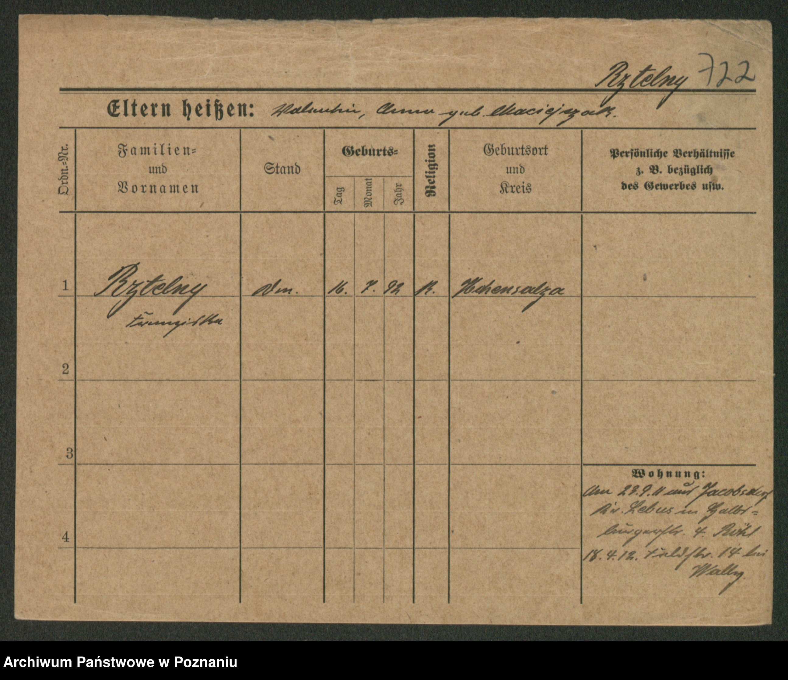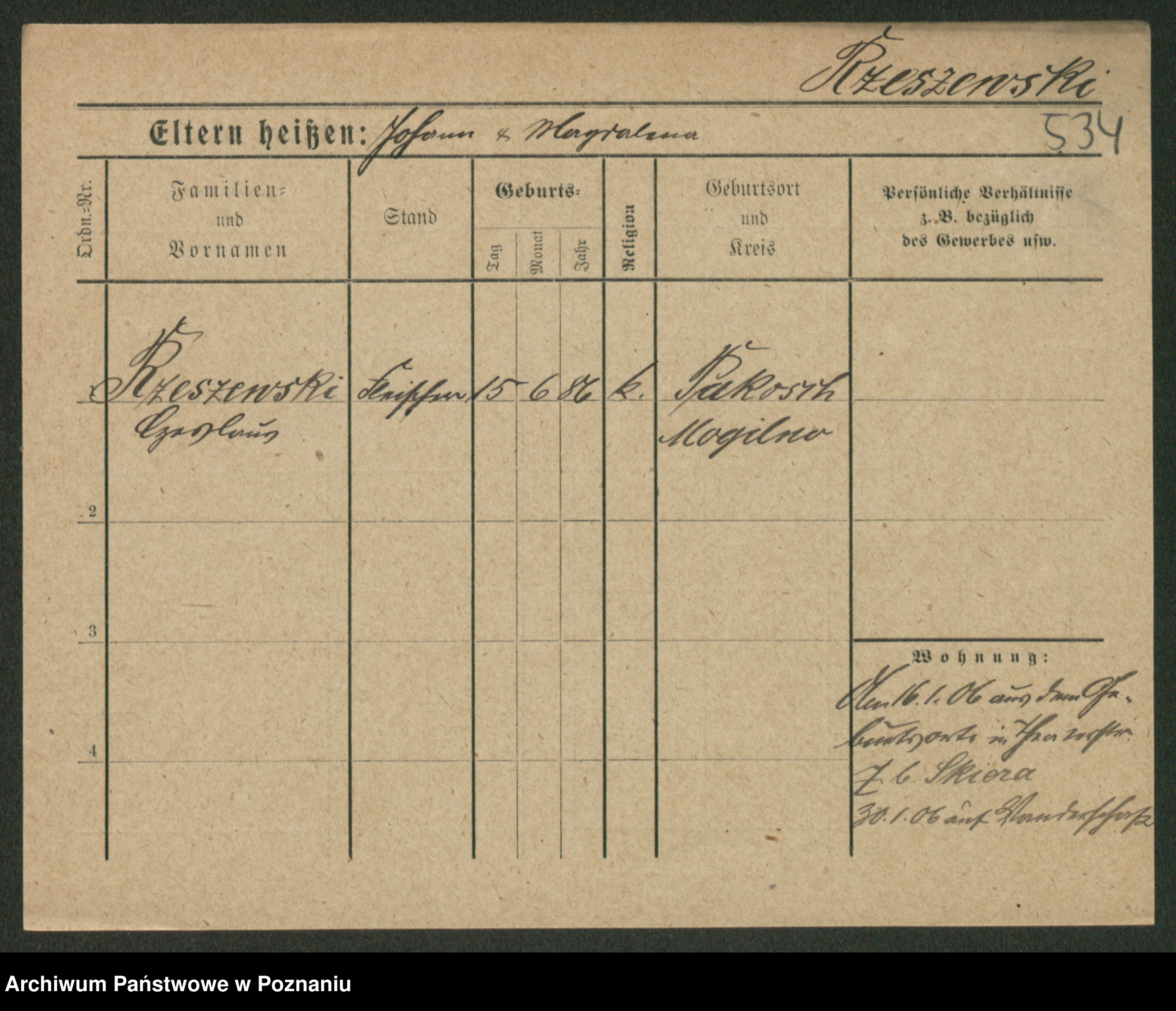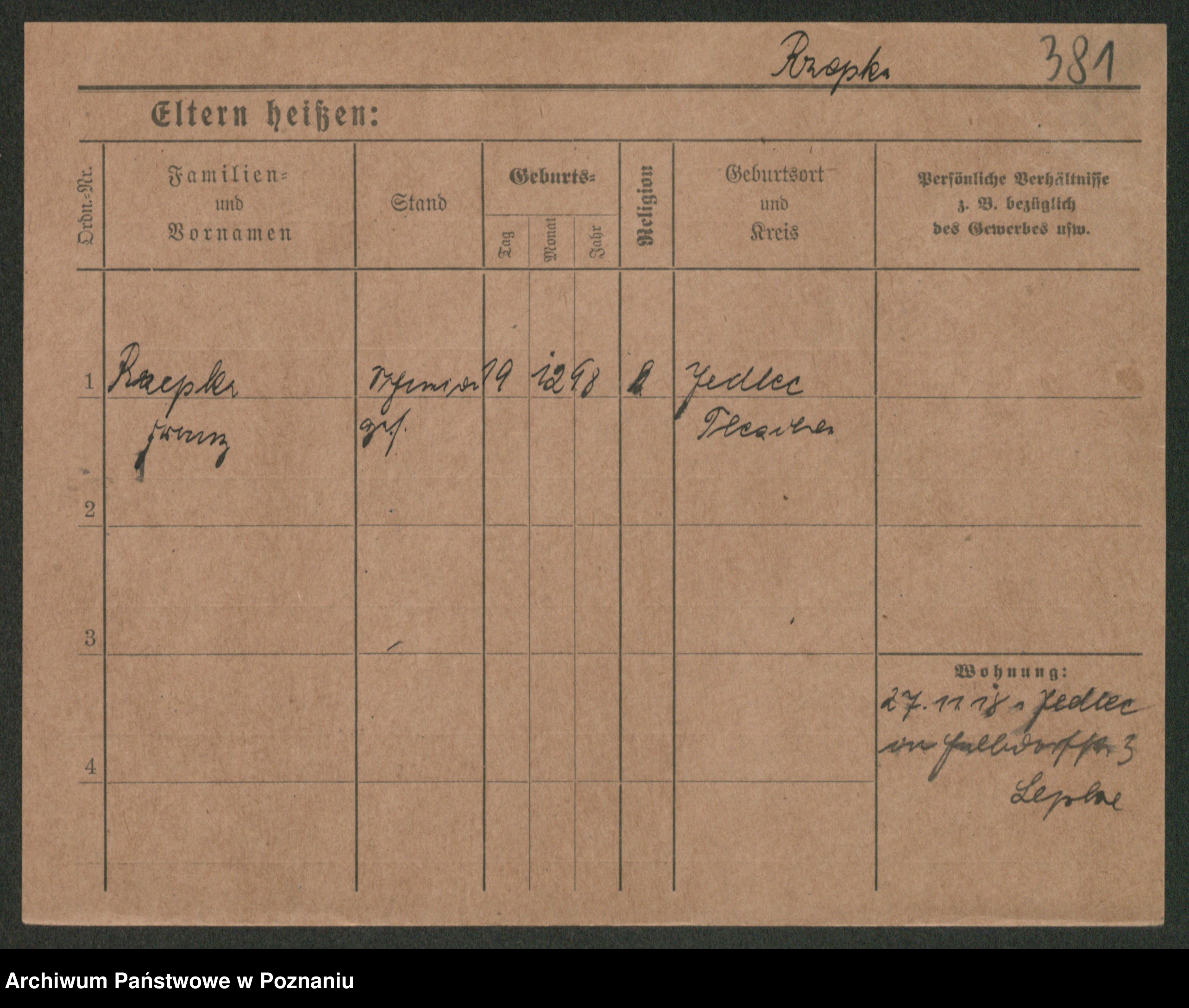 Podgląd karty osobowej dostępny jest po kliknięciu na nazwisko lub ikonkę karty. Można dokonywać powiększenia (ikony na górze) lub przechodzić między kolejnymi skanami (strzałki po bokach).