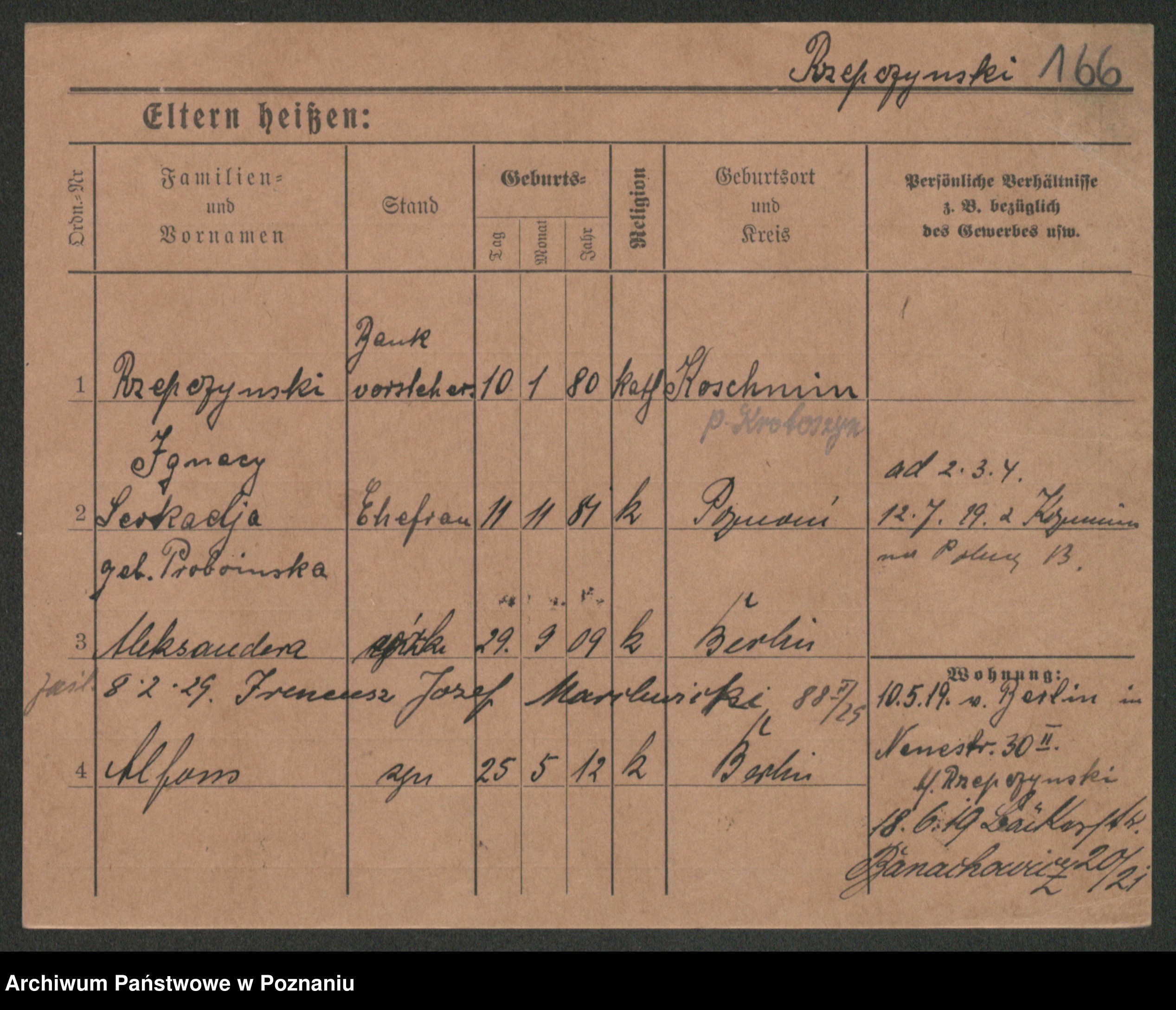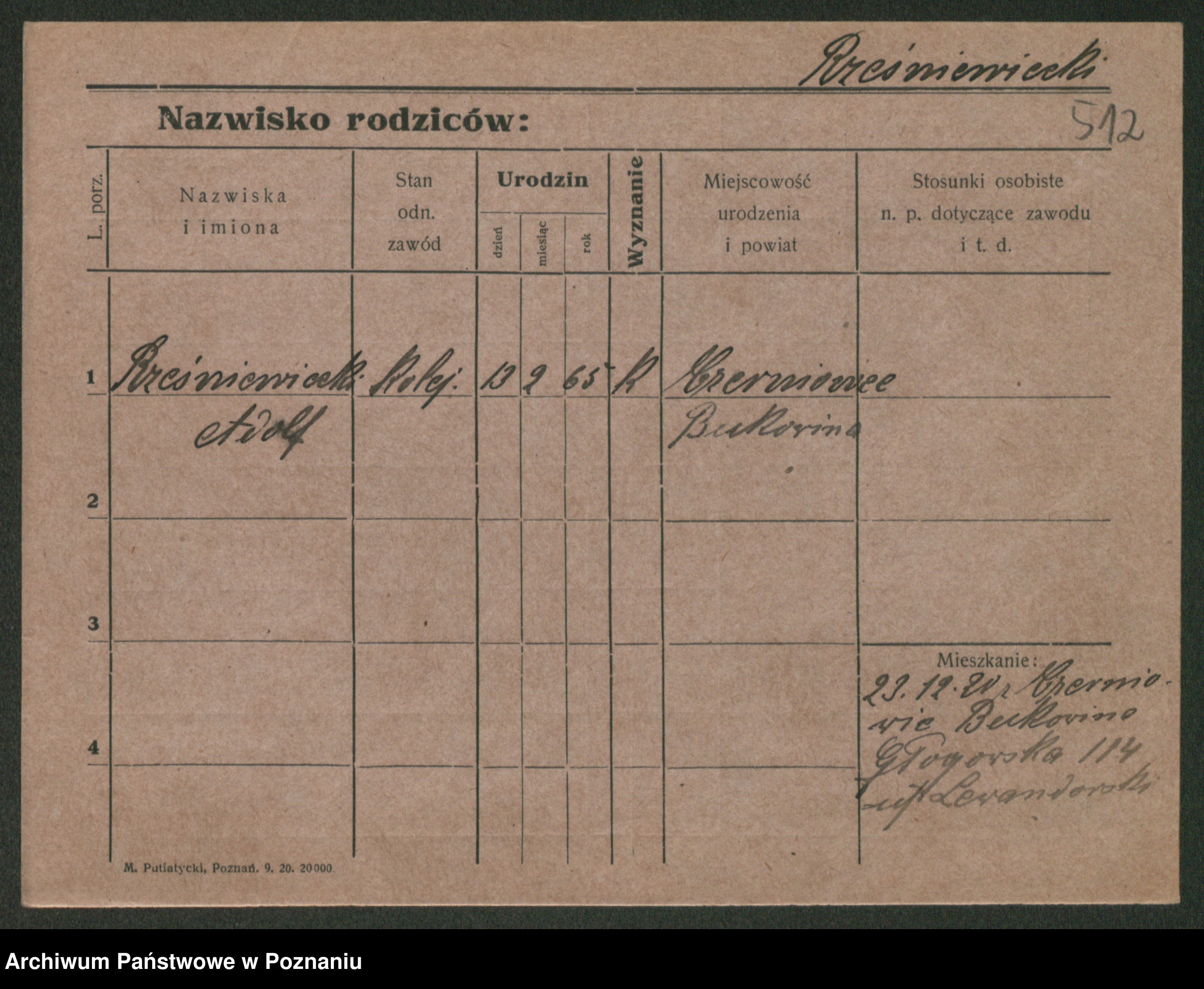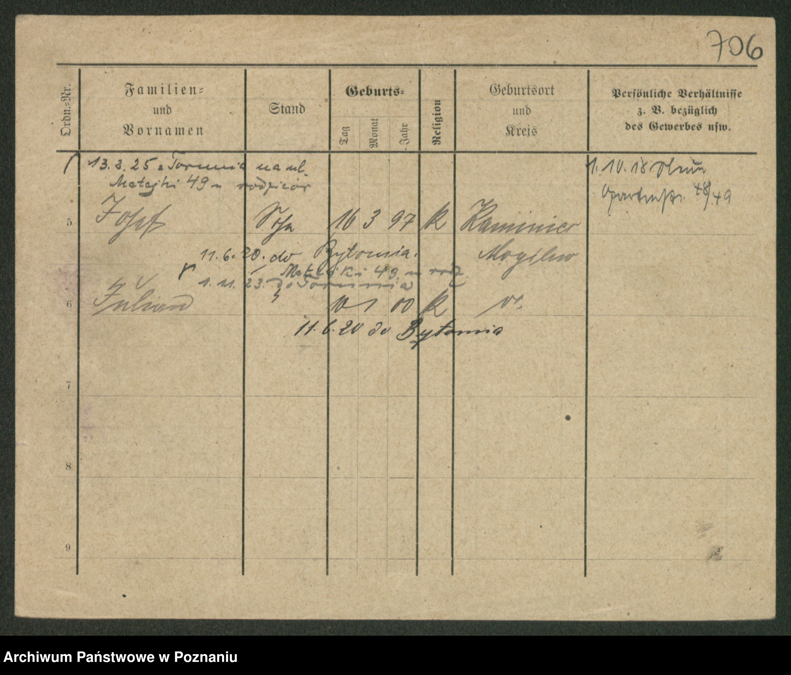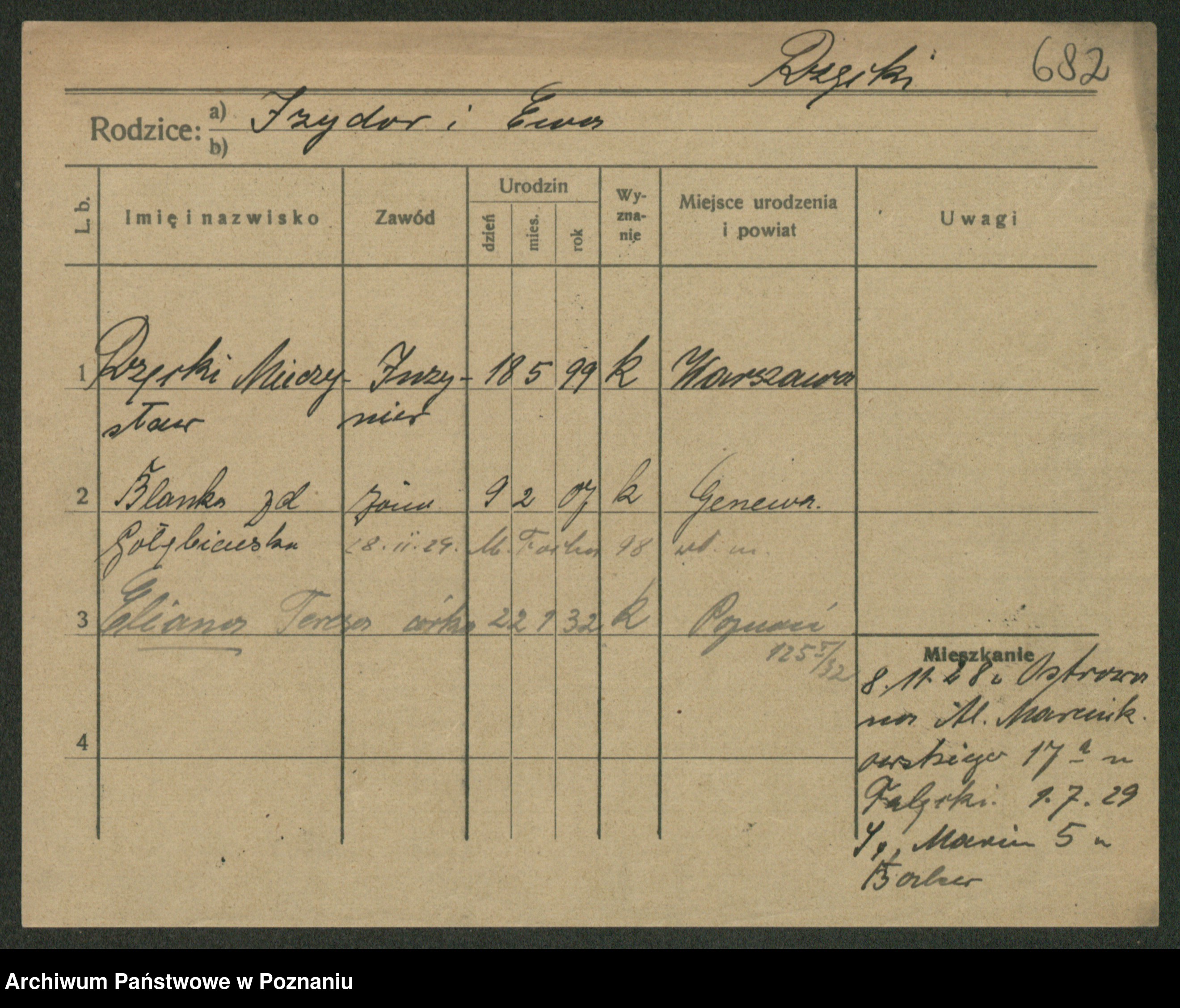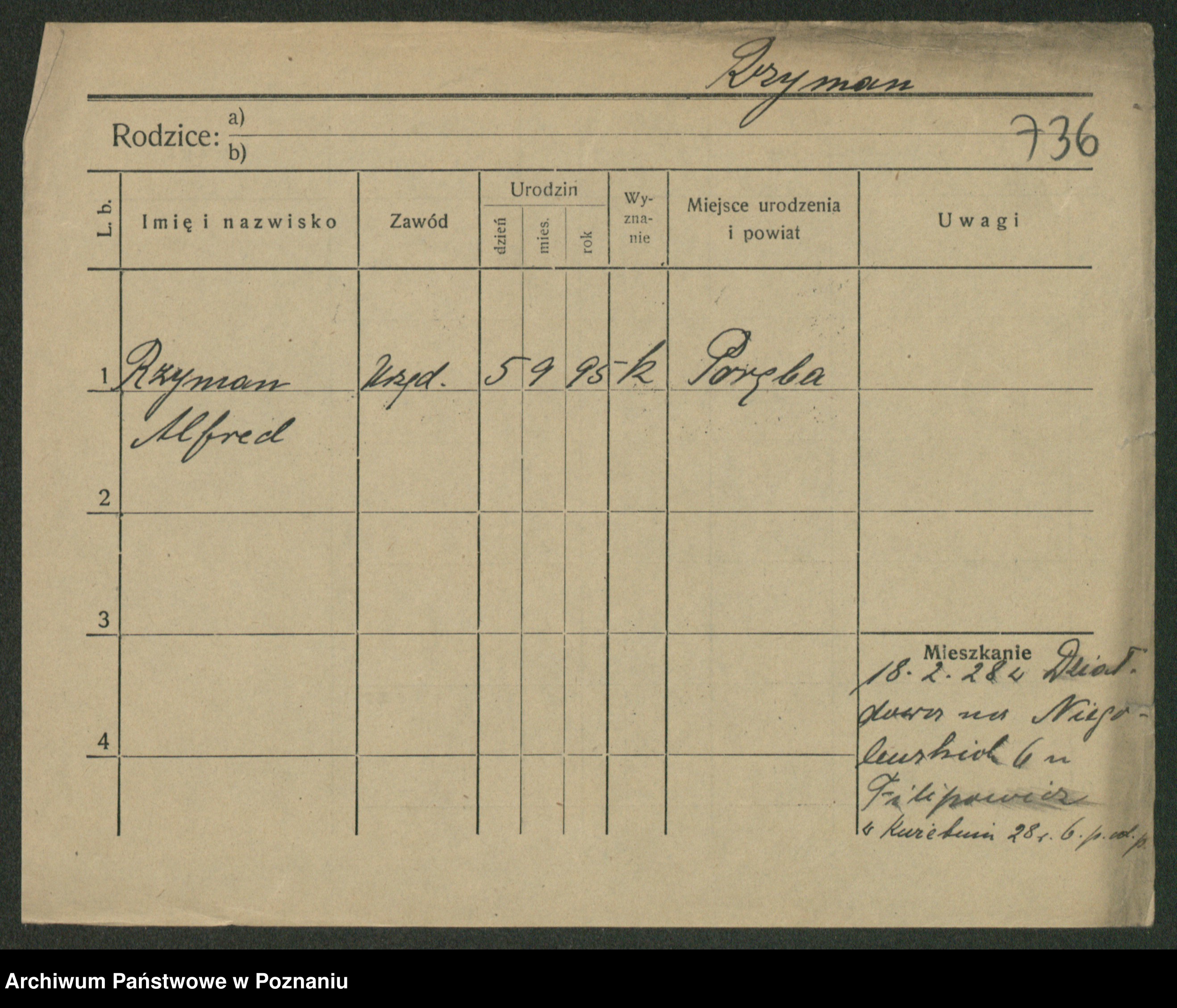 Podgląd karty osobowej dostępny jest po kliknięciu na nazwisko lub ikonkę karty. Można dokonywać powiększenia (ikony na górze) lub przechodzić między kolejnymi skanami (strzałki po bokach).