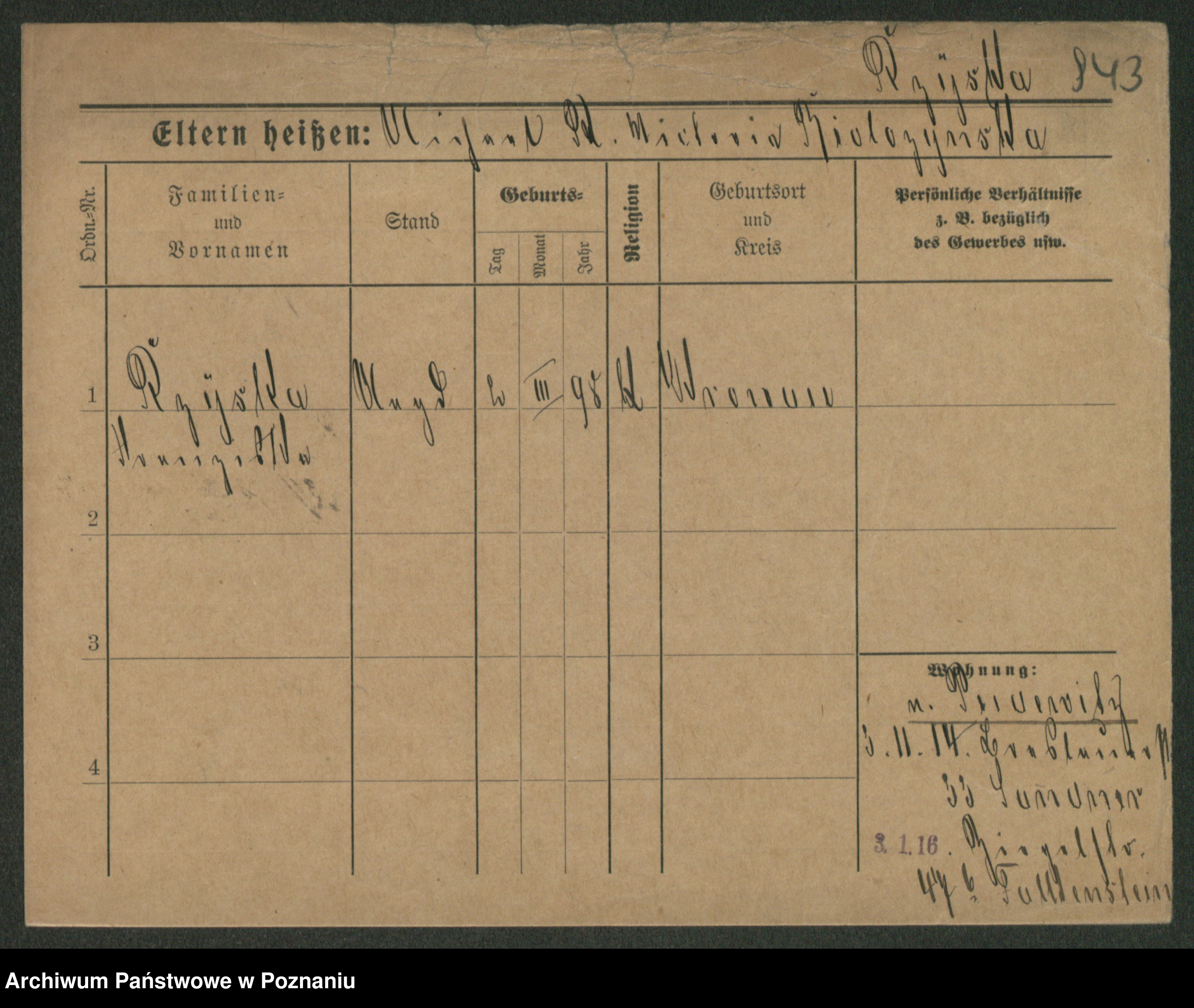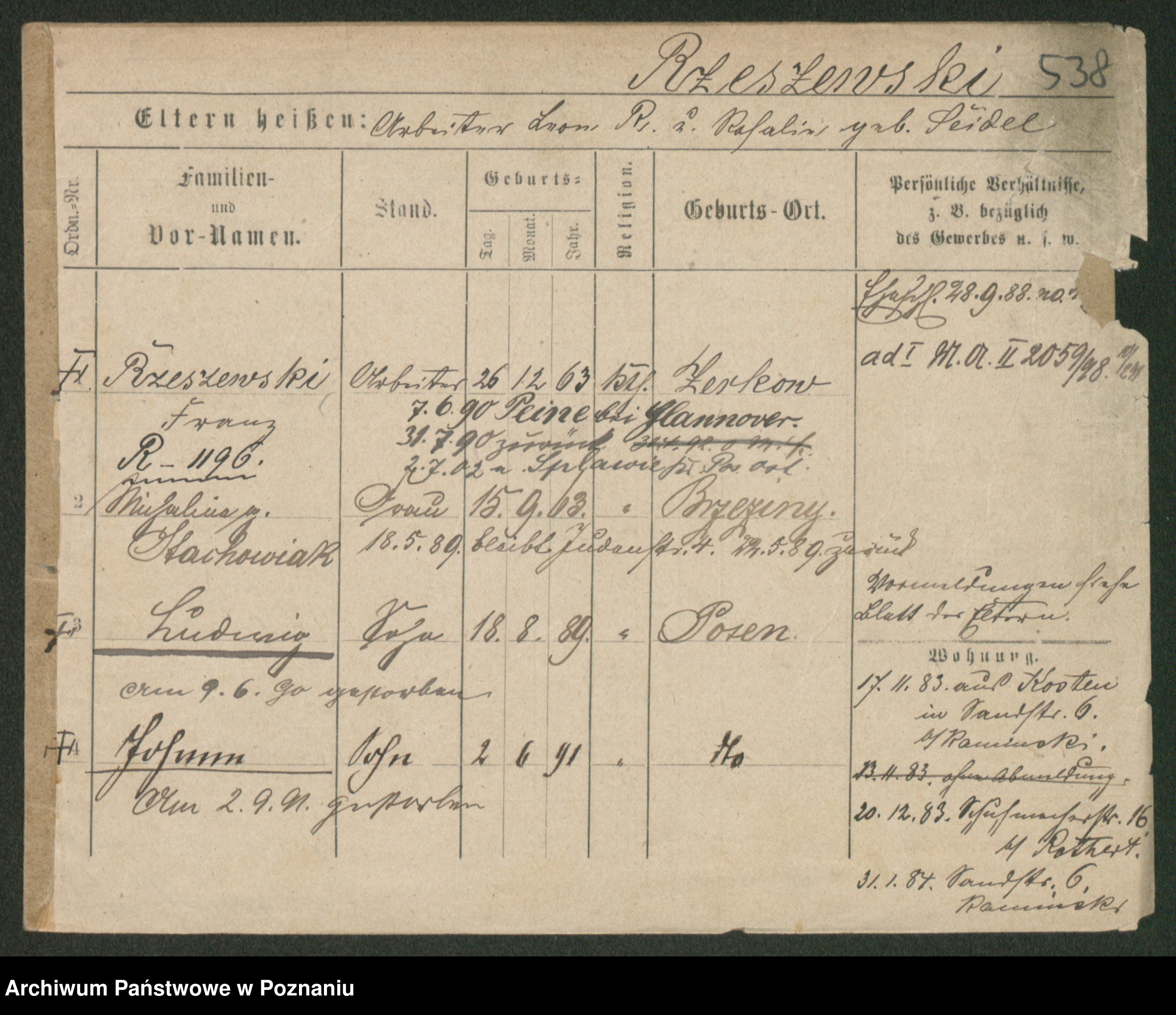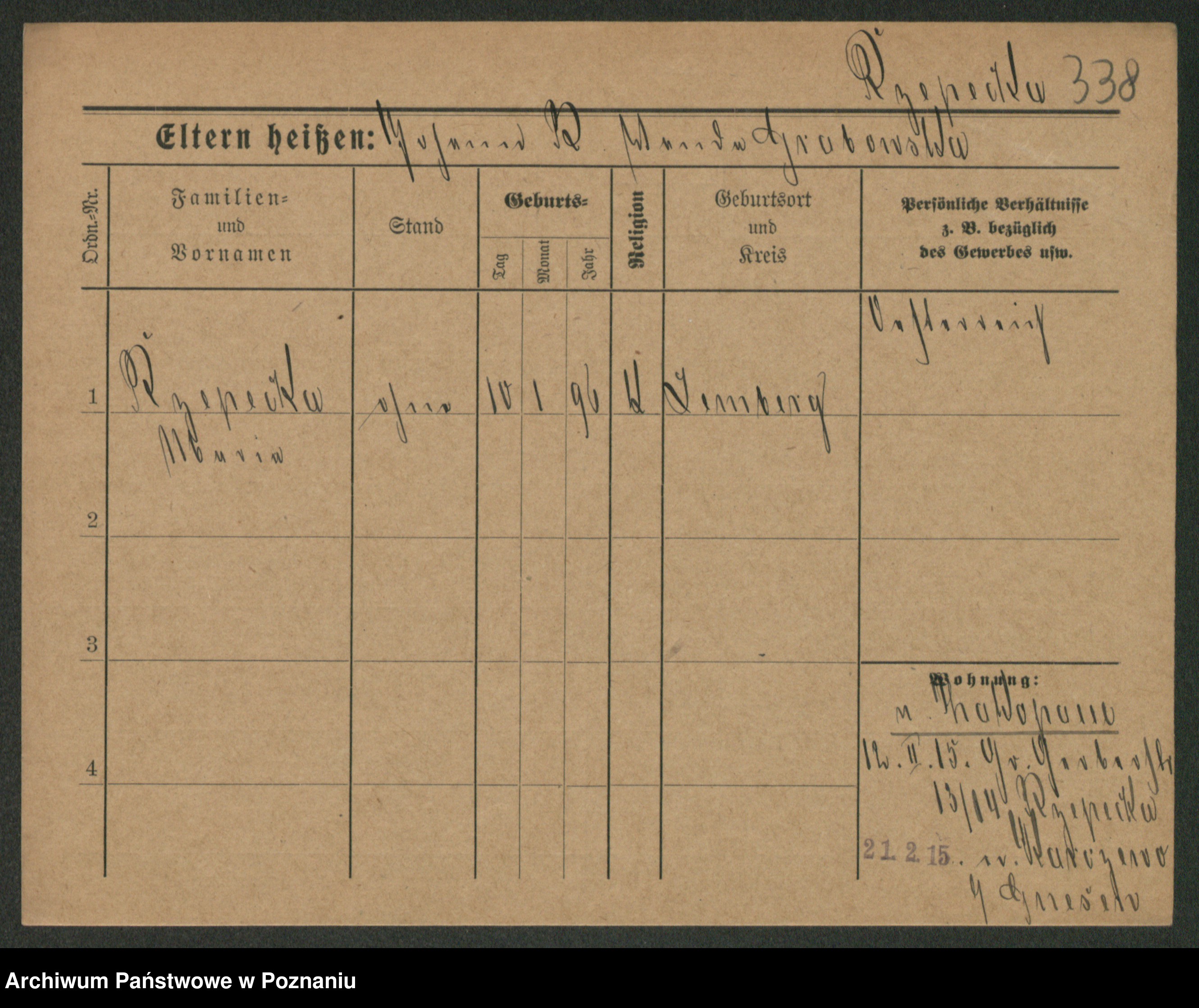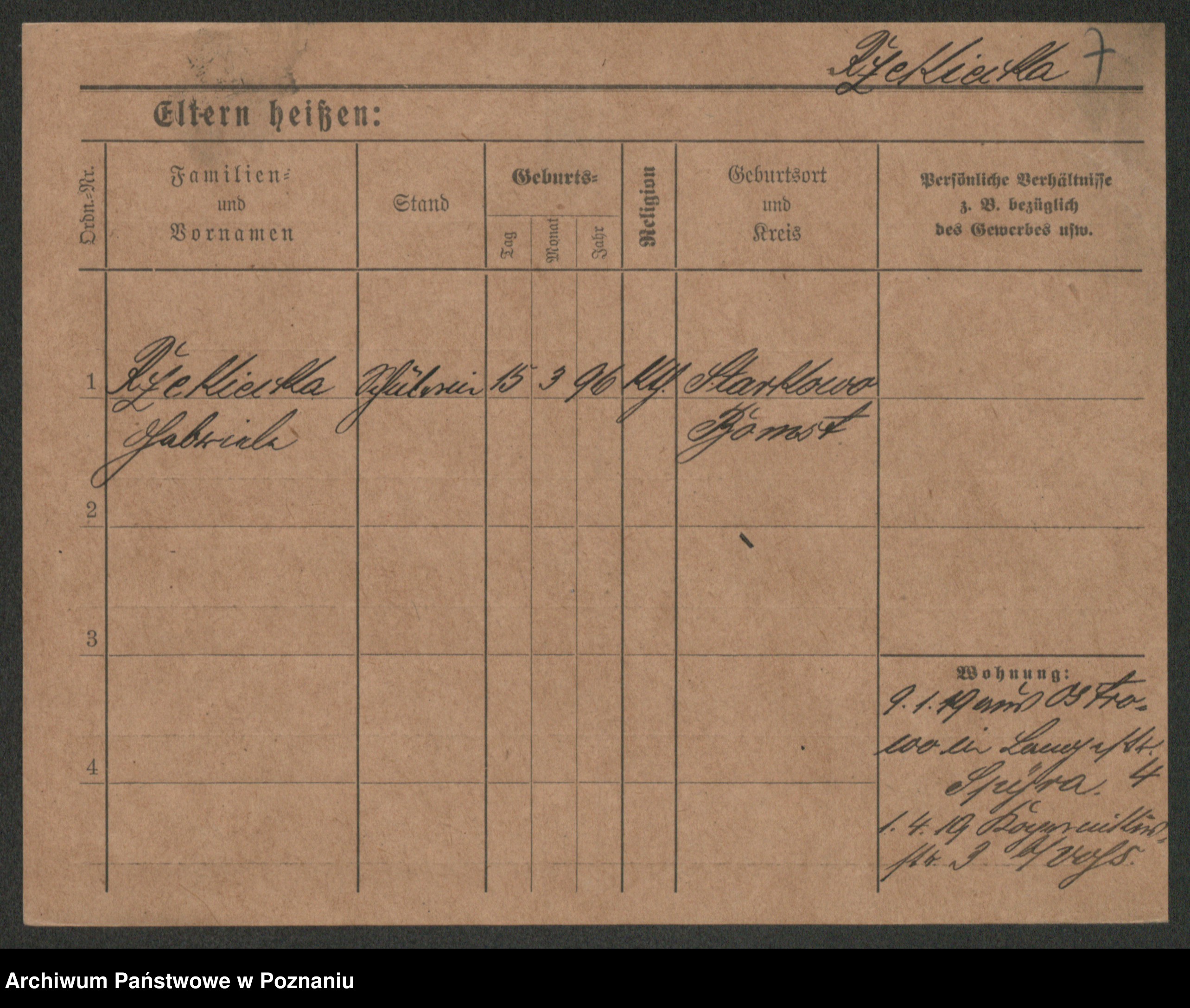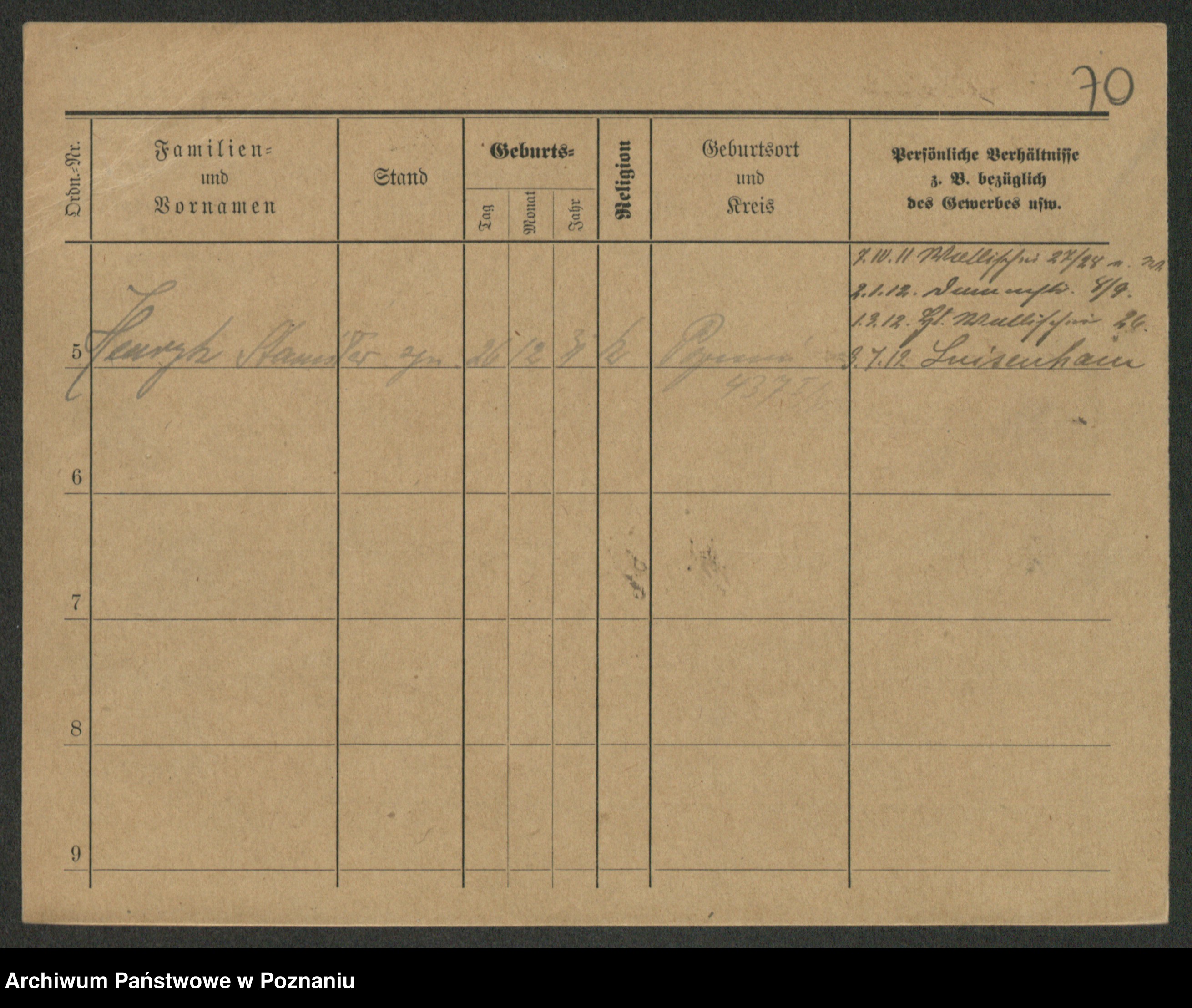 Podgląd karty osobowej dostępny jest po kliknięciu na nazwisko lub ikonkę karty. Można dokonywać powiększenia (ikony na górze) lub przechodzić między kolejnymi skanami (strzałki po bokach).