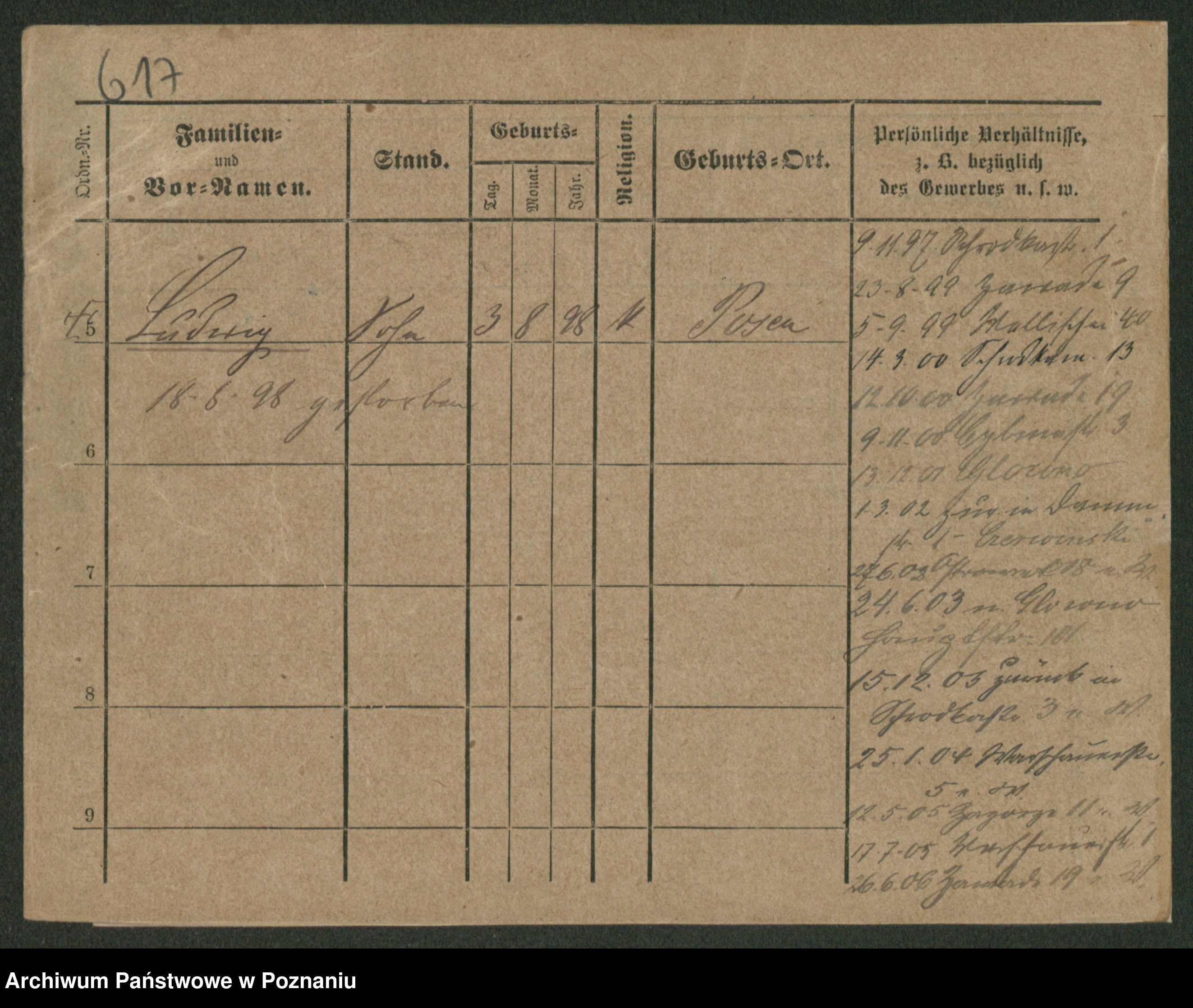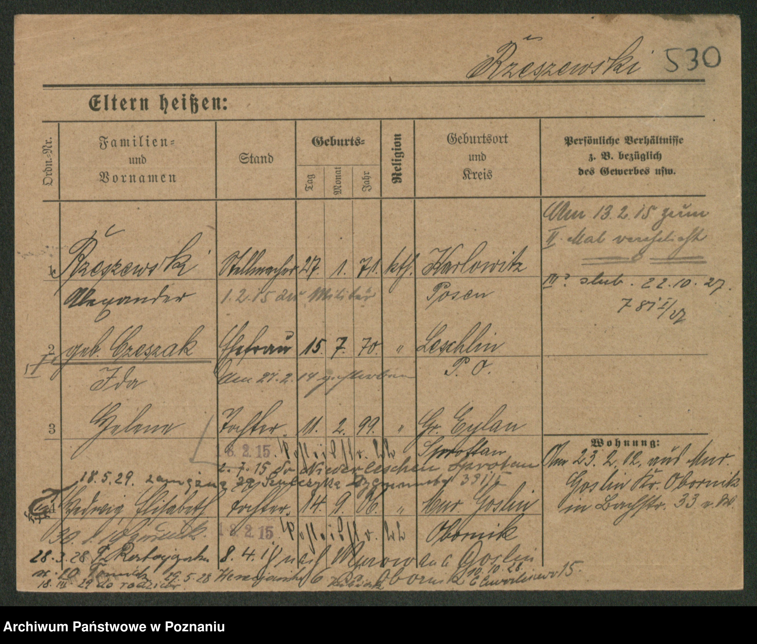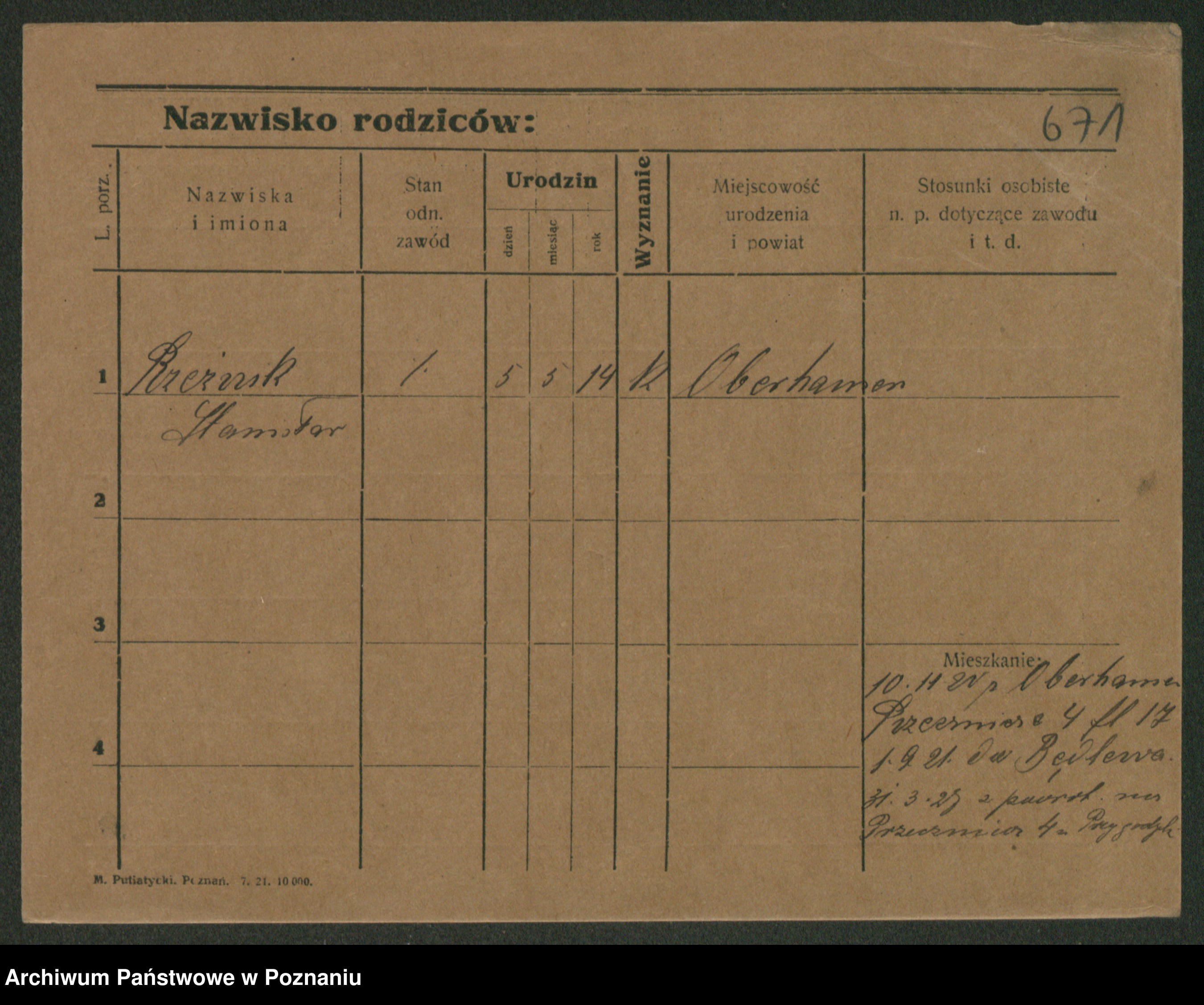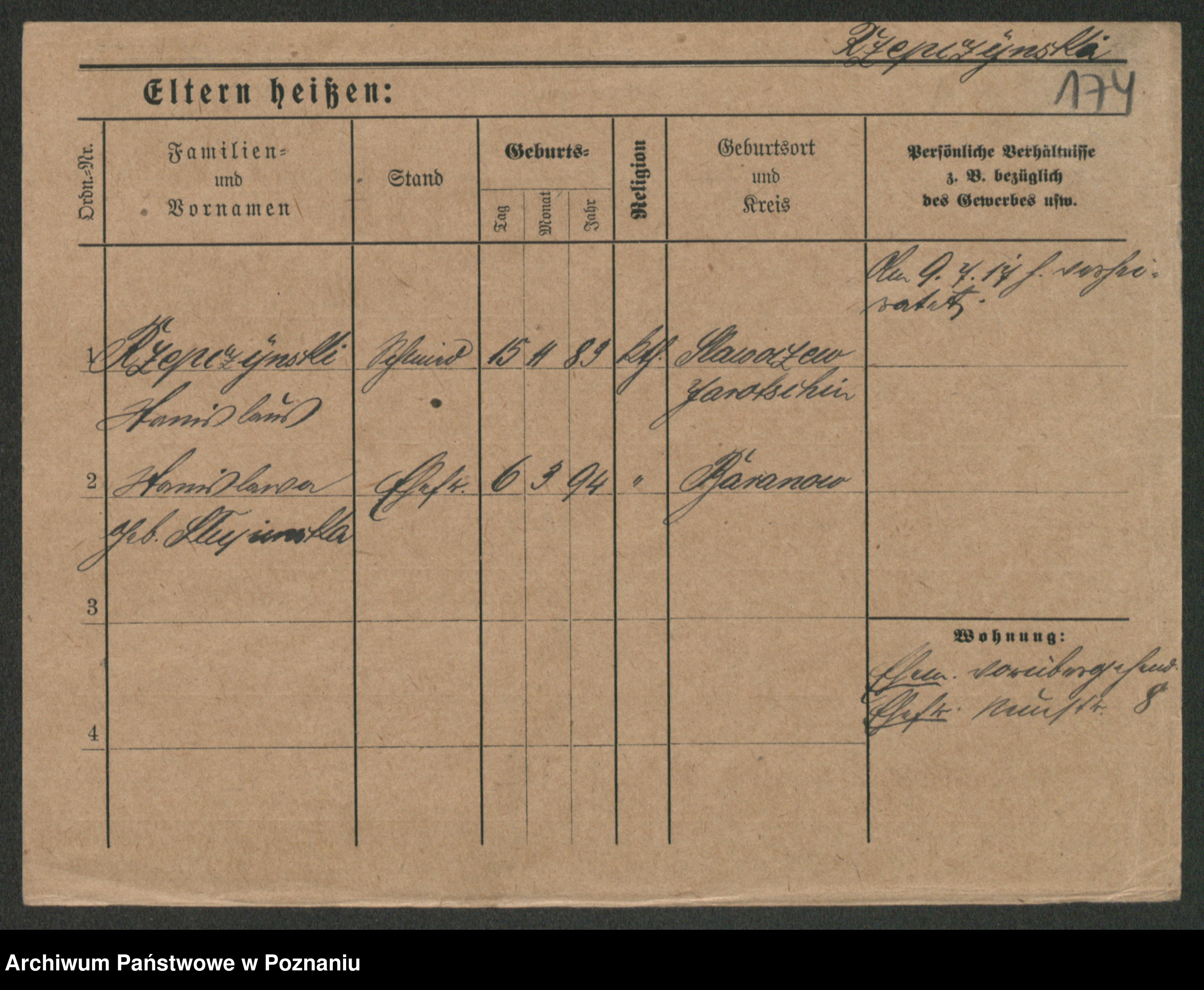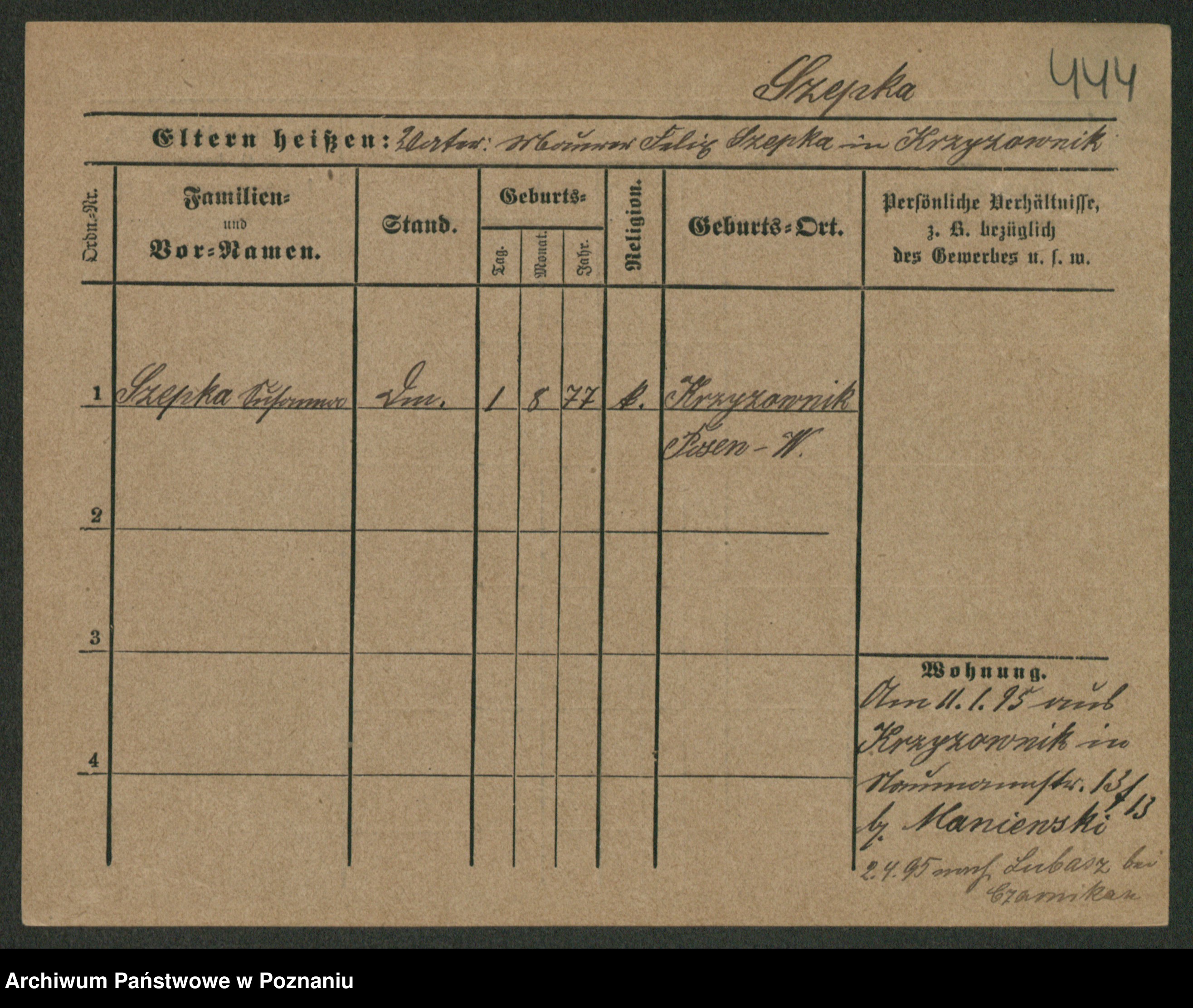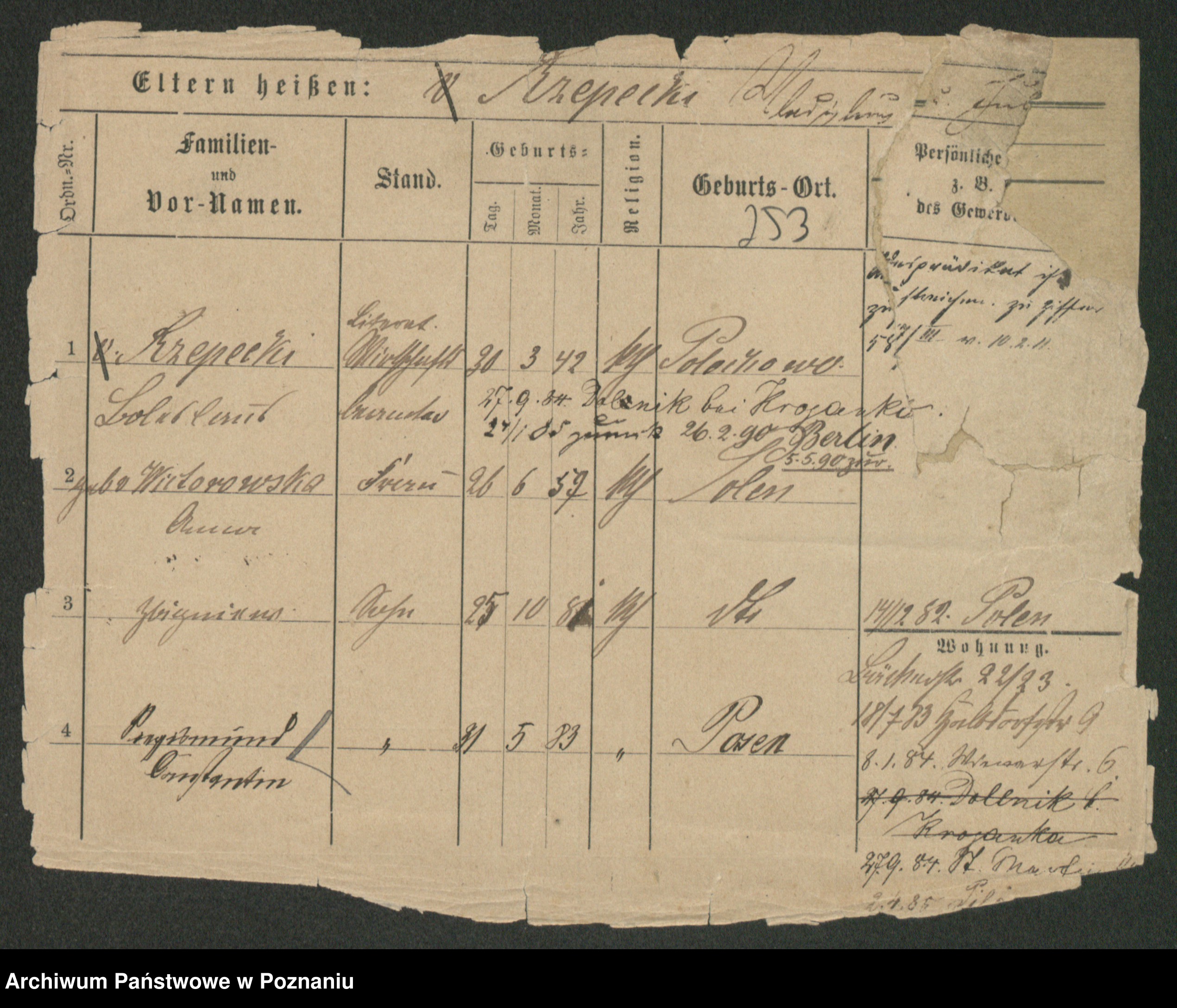 Podgląd karty osobowej dostępny jest po kliknięciu na nazwisko lub ikonkę karty. Można dokonywać powiększenia (ikony na górze) lub przechodzić między kolejnymi skanami (strzałki po bokach).