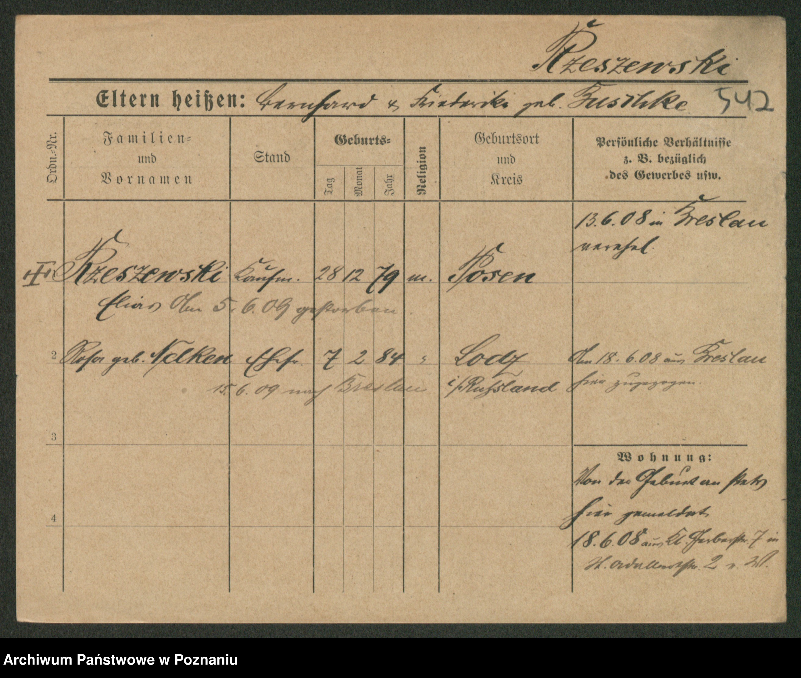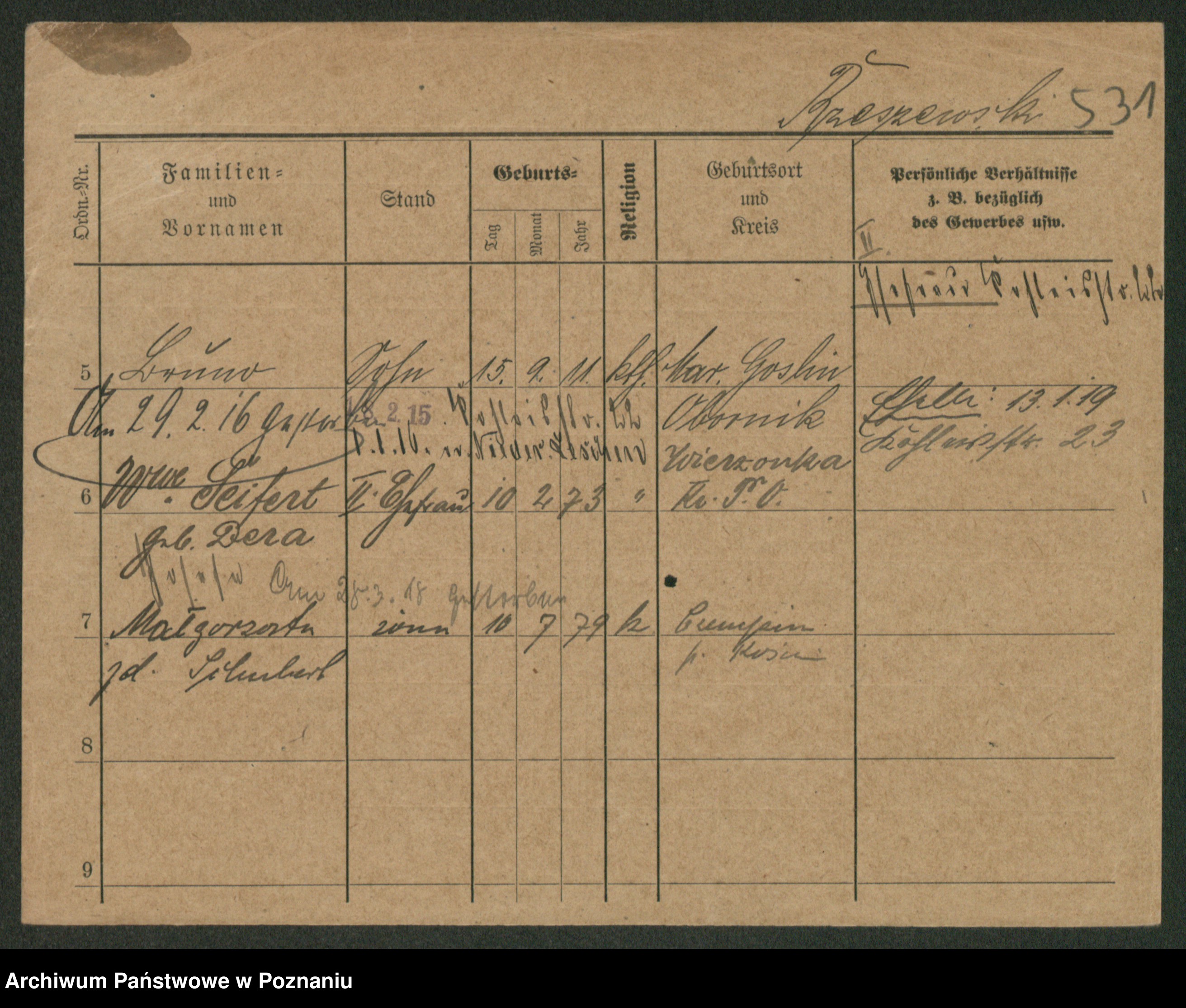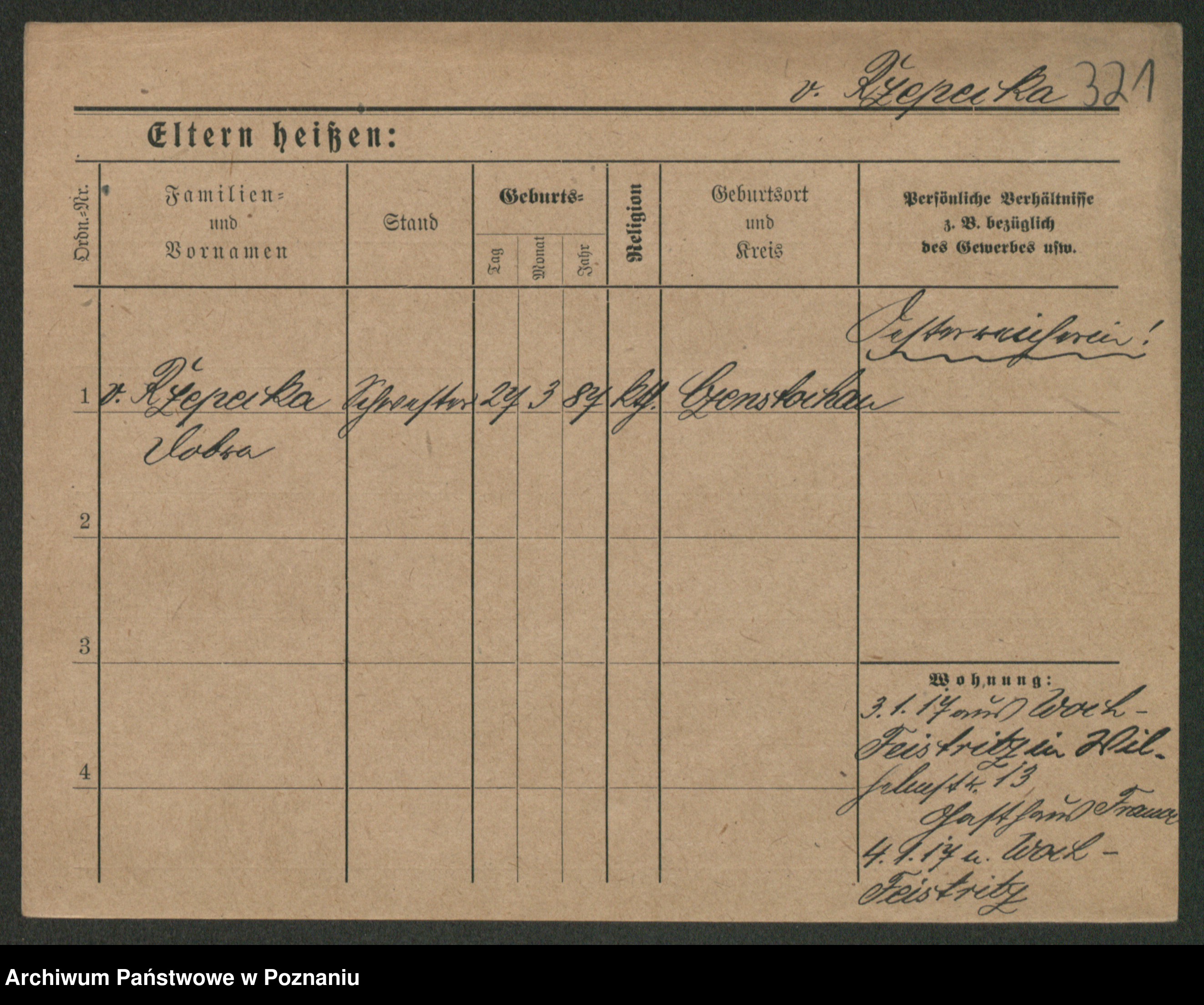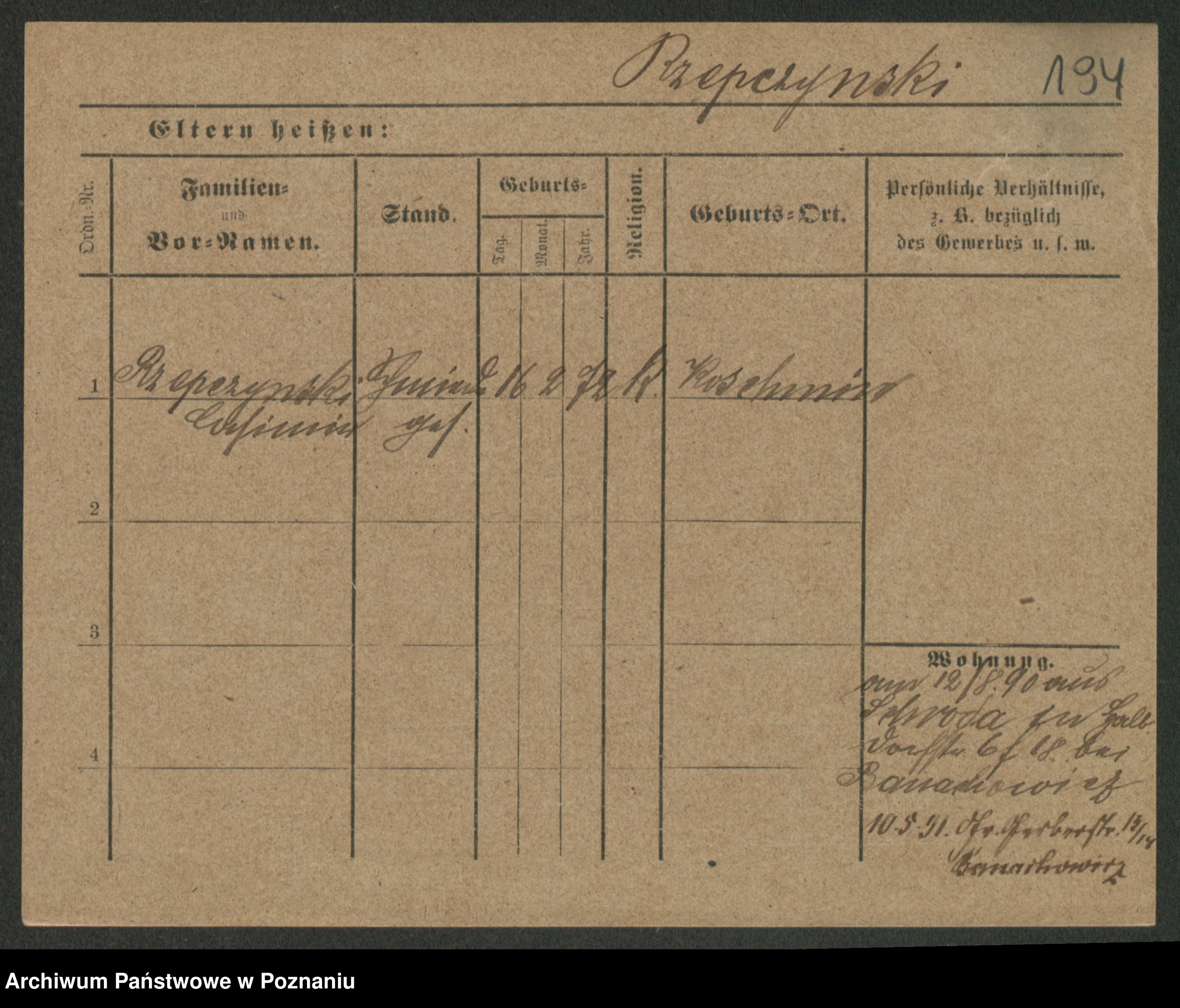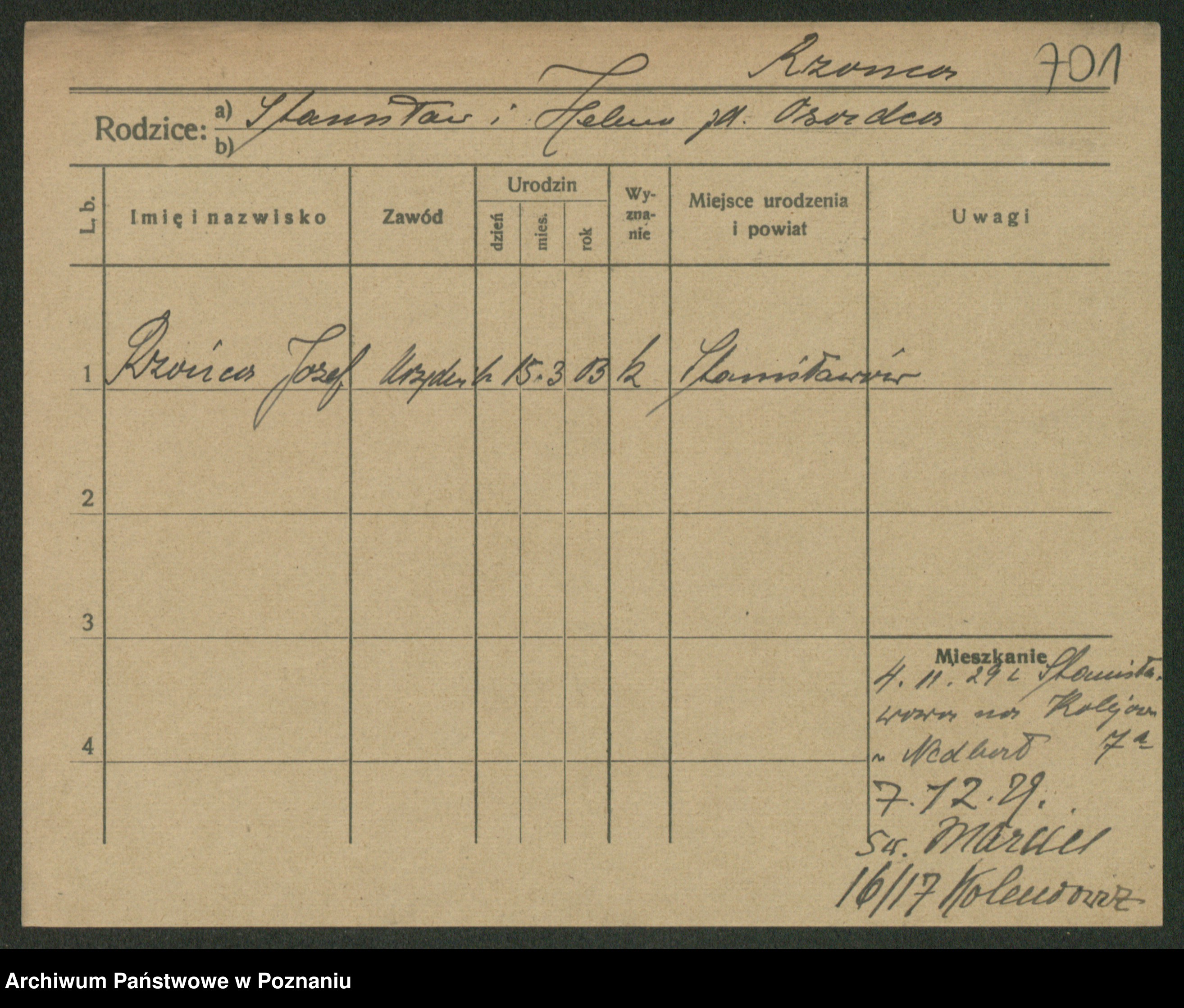 Podgląd karty osobowej dostępny jest po kliknięciu na nazwisko lub ikonkę karty. Można dokonywać powiększenia (ikony na górze) lub przechodzić między kolejnymi skanami (strzałki po bokach).
