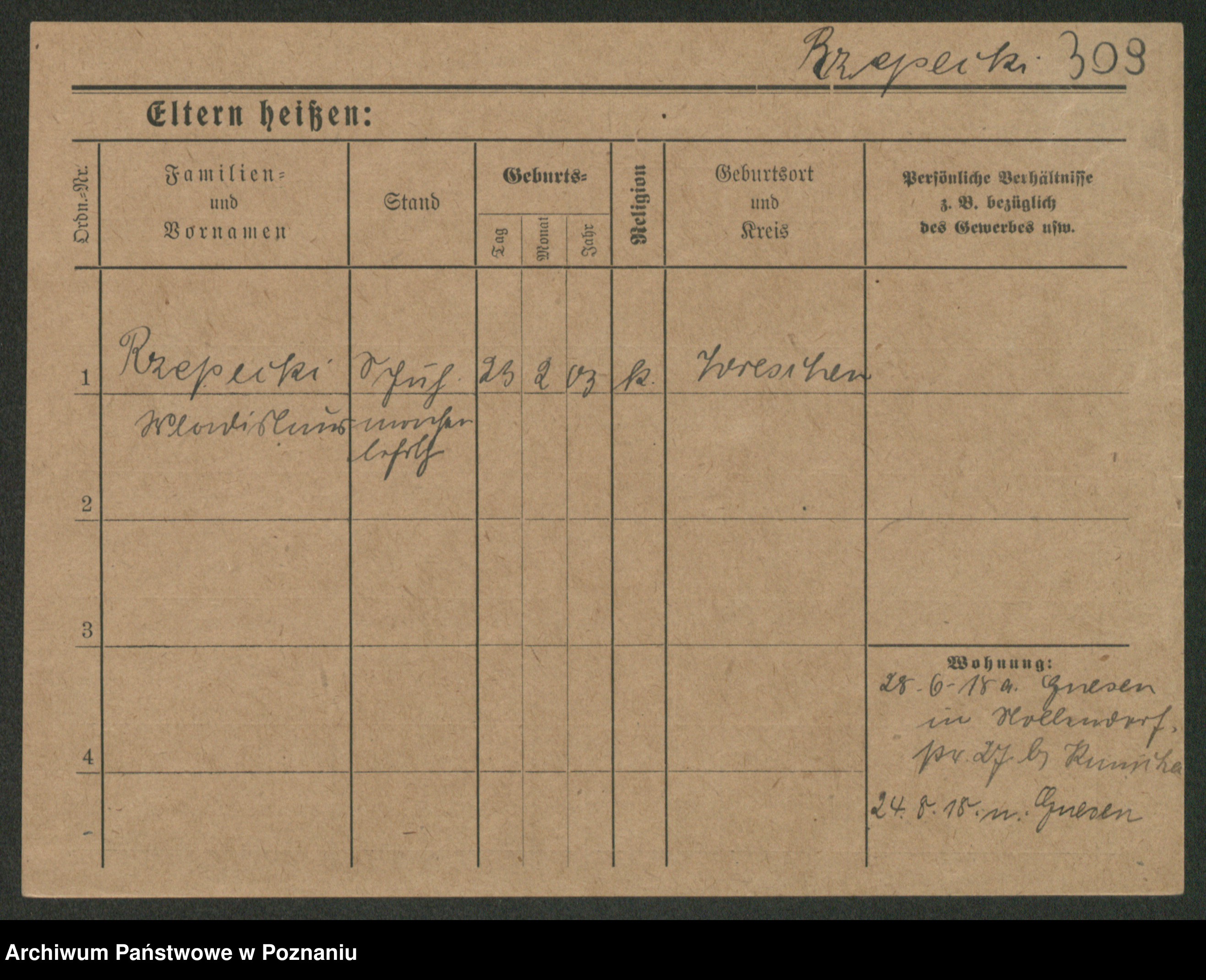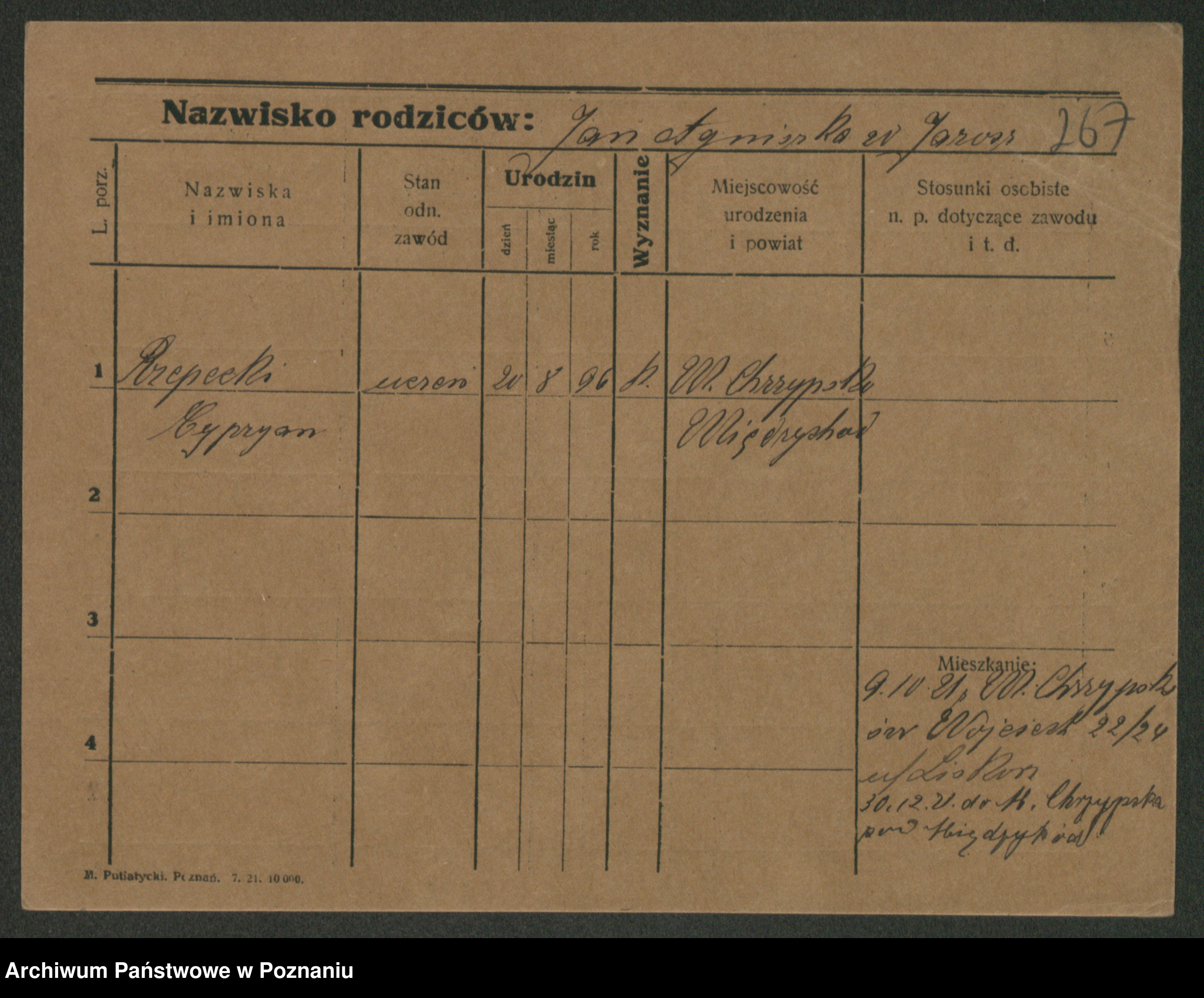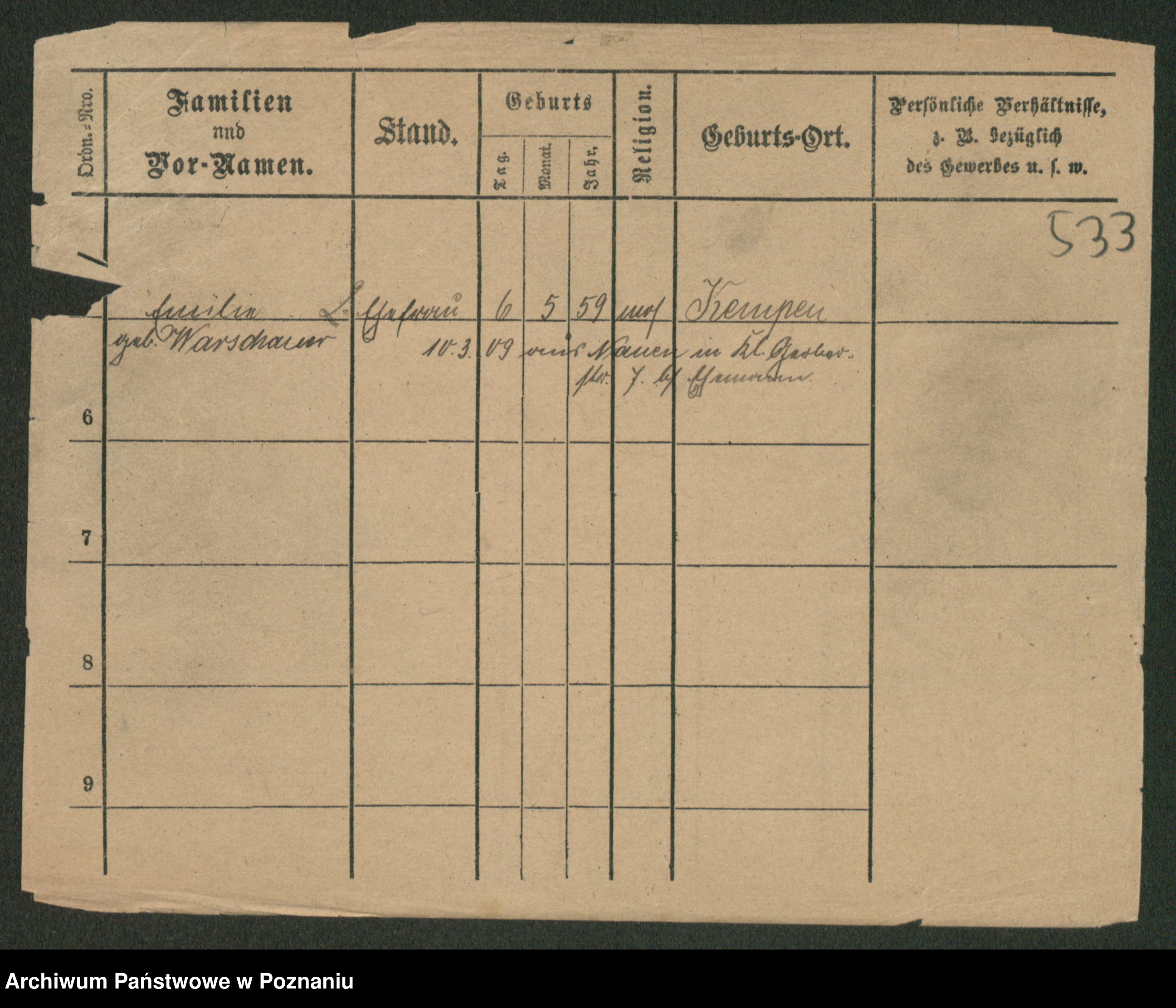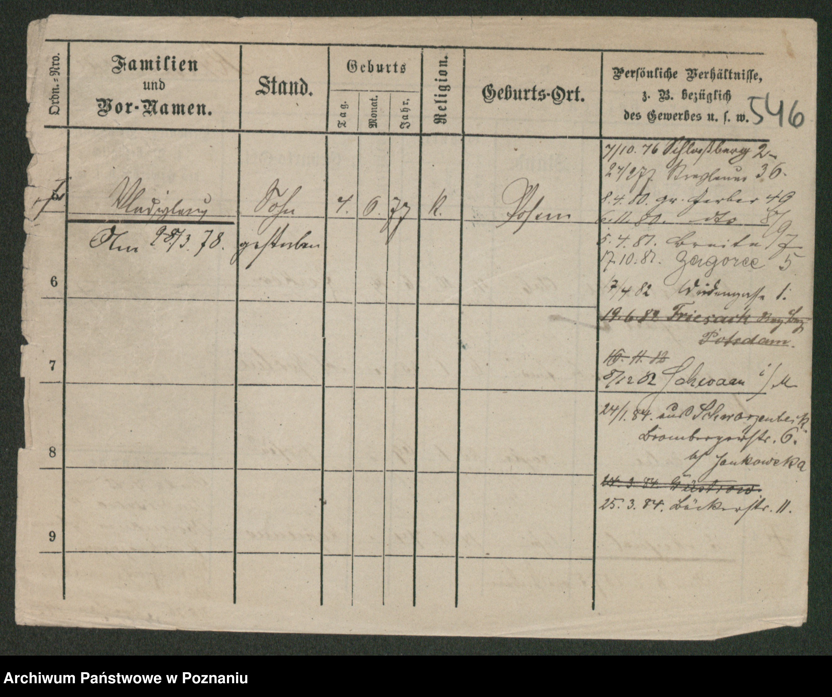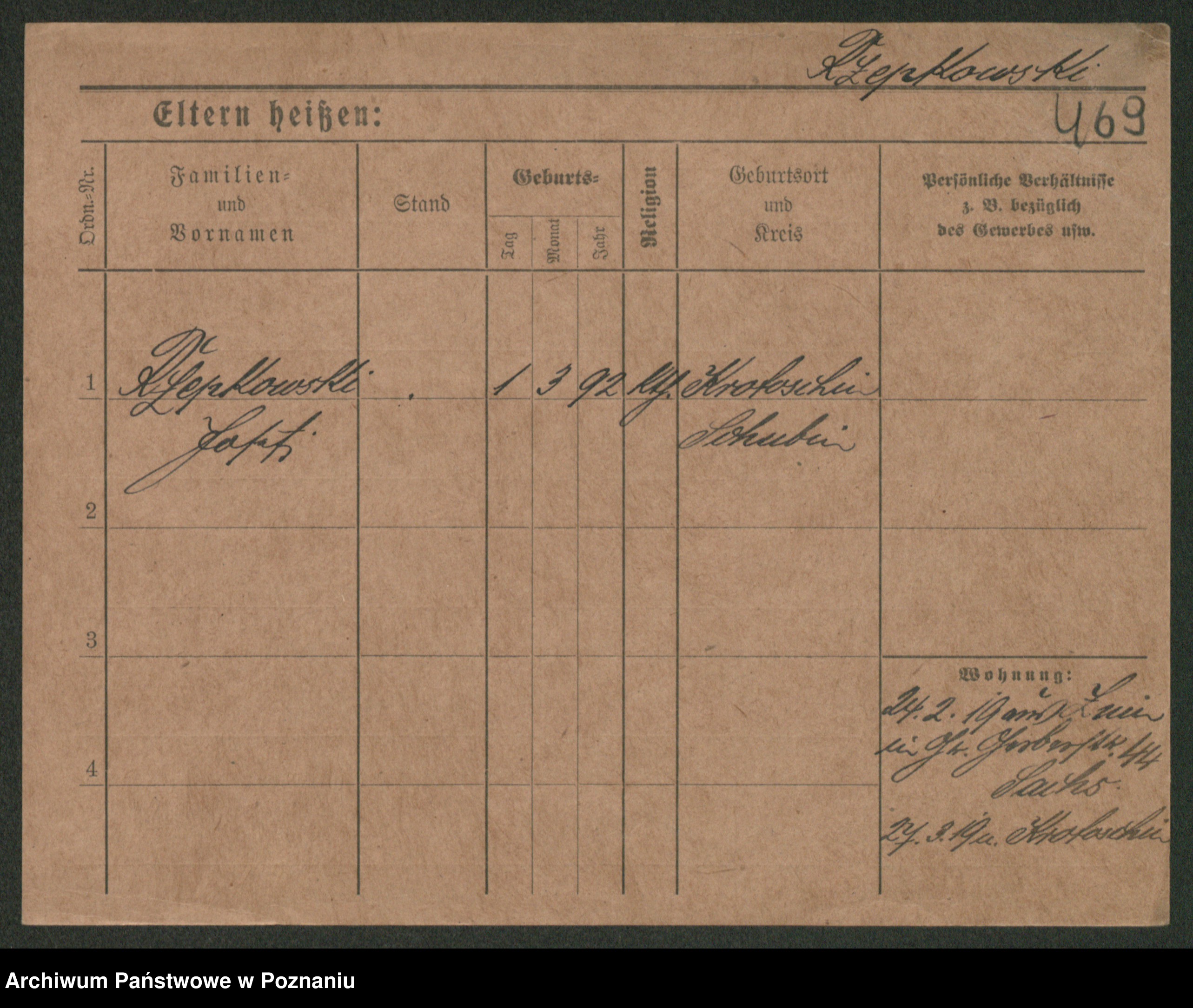 Podgląd karty osobowej dostępny jest po kliknięciu na nazwisko lub ikonkę karty. Można dokonywać powiększenia (ikony na górze) lub przechodzić między kolejnymi skanami (strzałki po bokach).