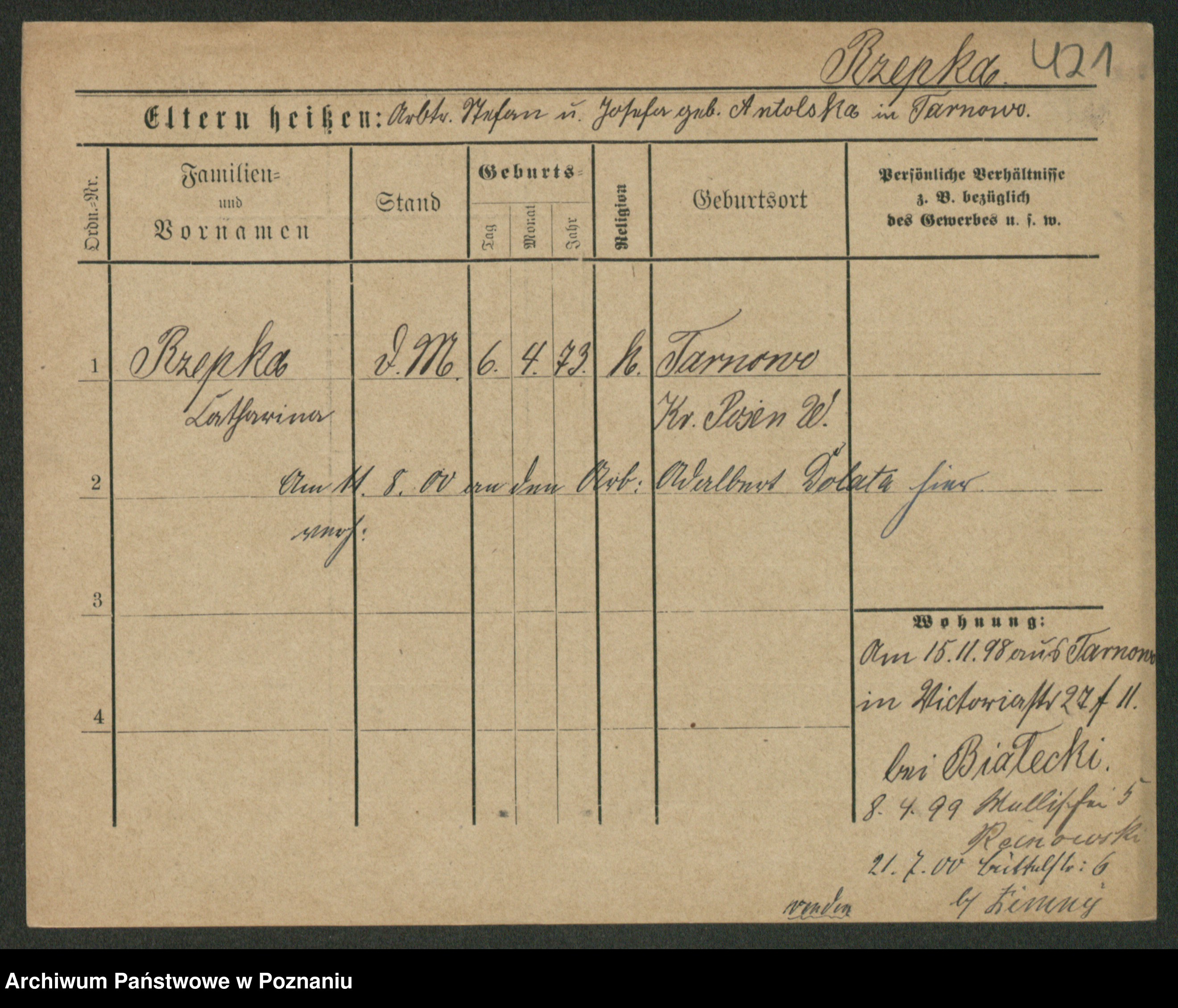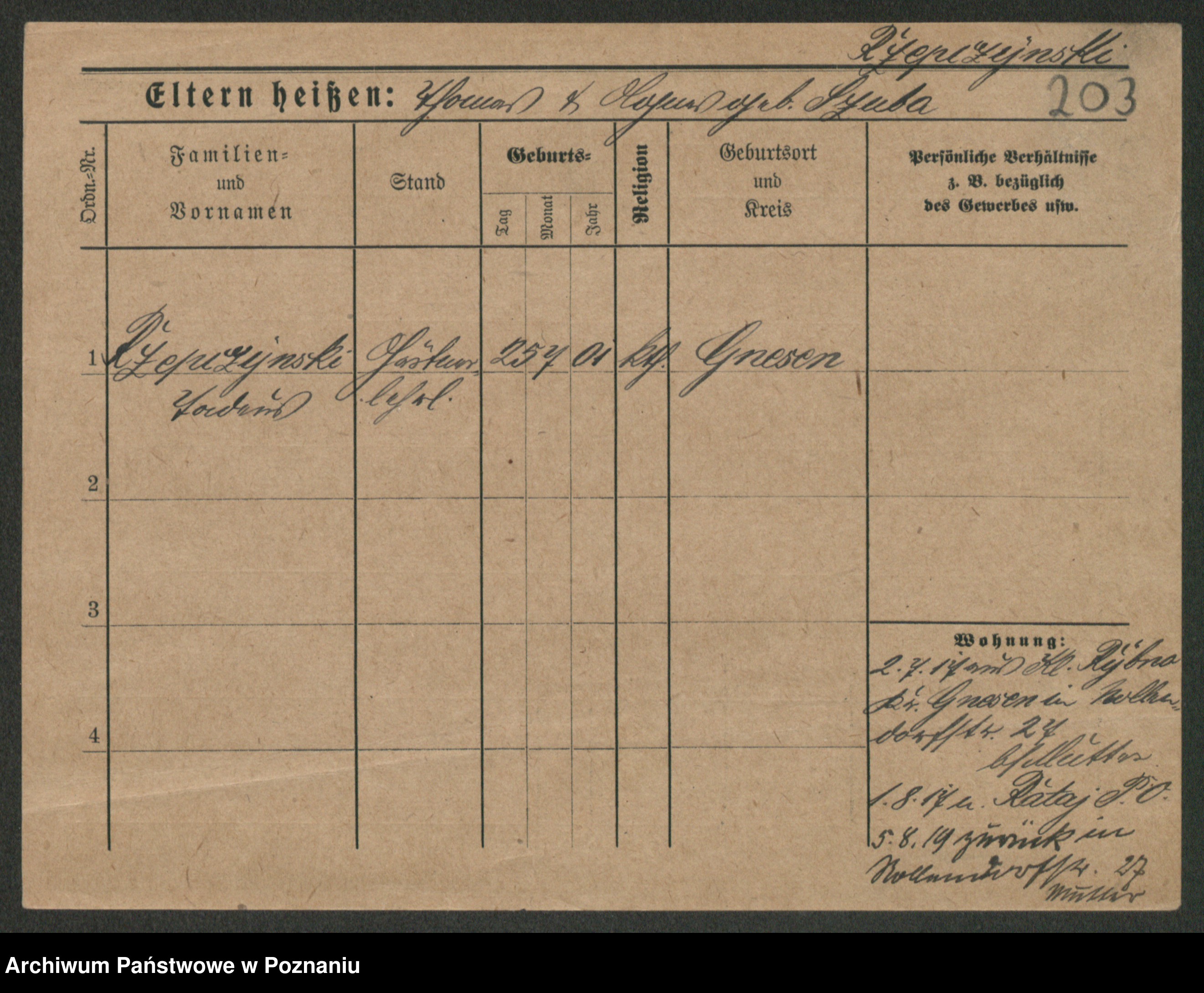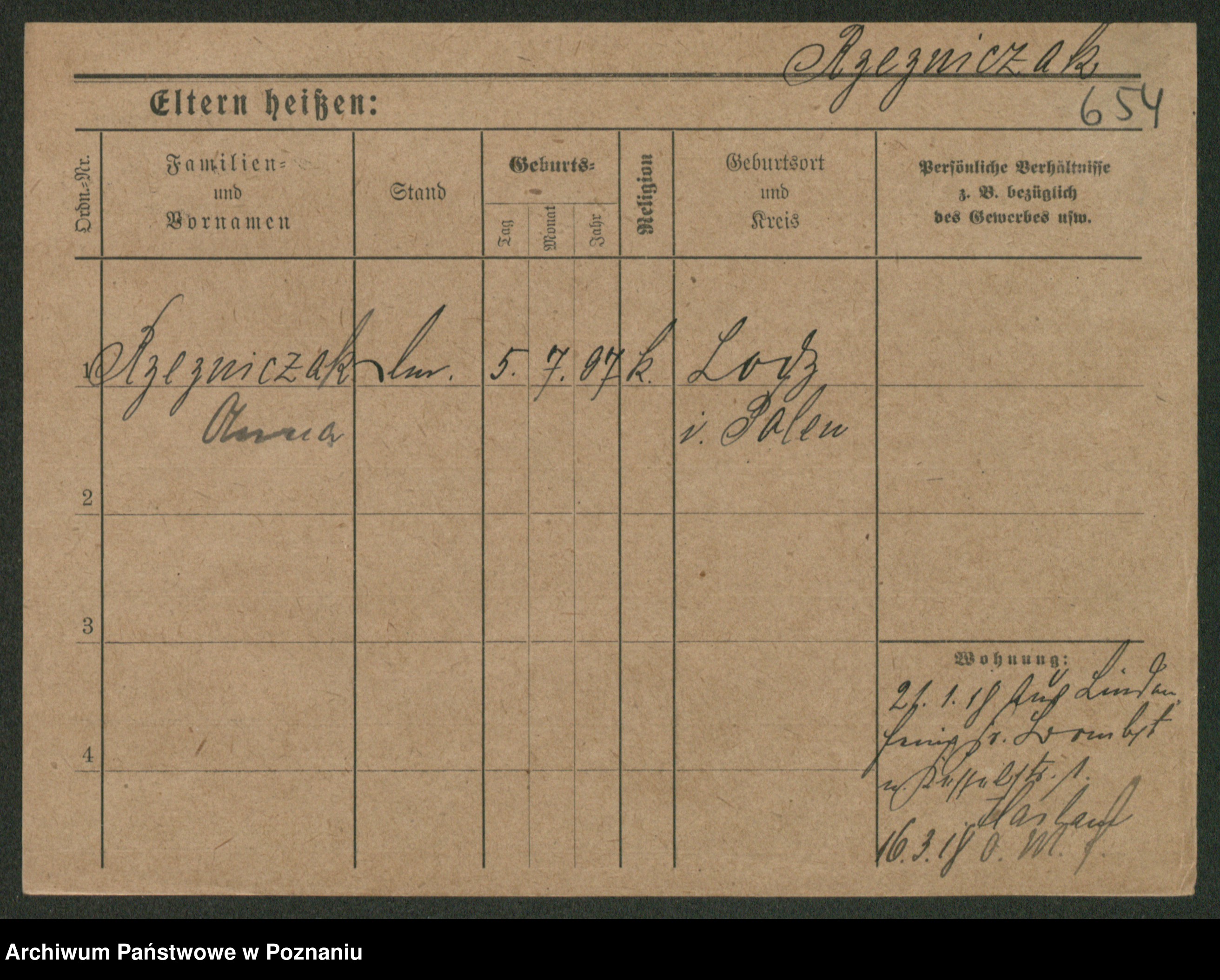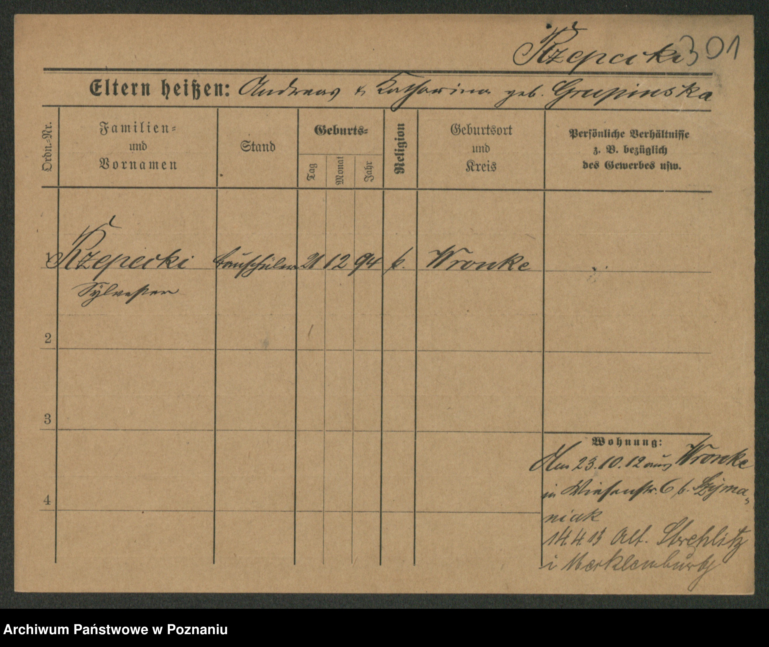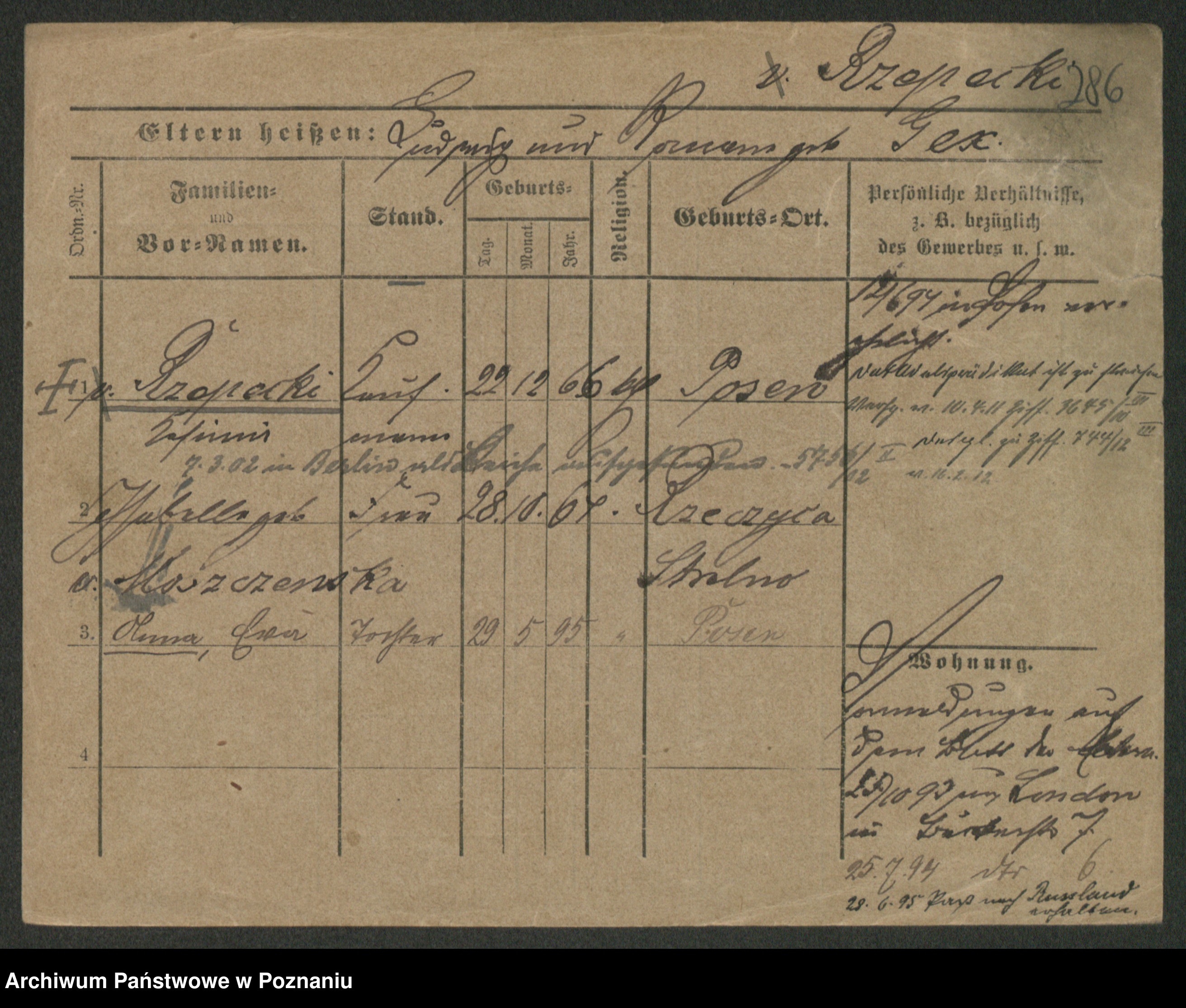 Podgląd karty osobowej dostępny jest po kliknięciu na nazwisko lub ikonkę karty. Można dokonywać powiększenia (ikony na górze) lub przechodzić między kolejnymi skanami (strzałki po bokach).
