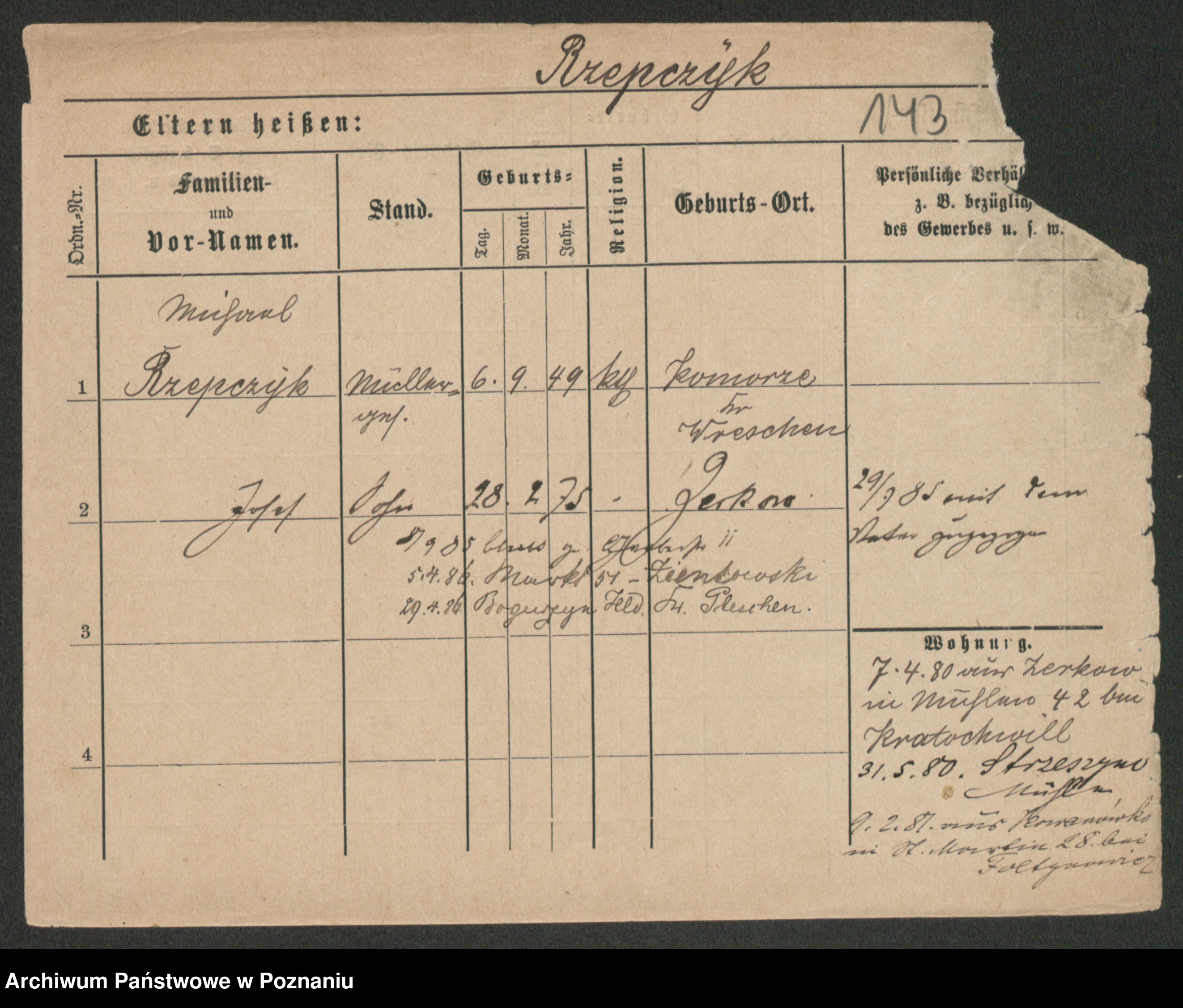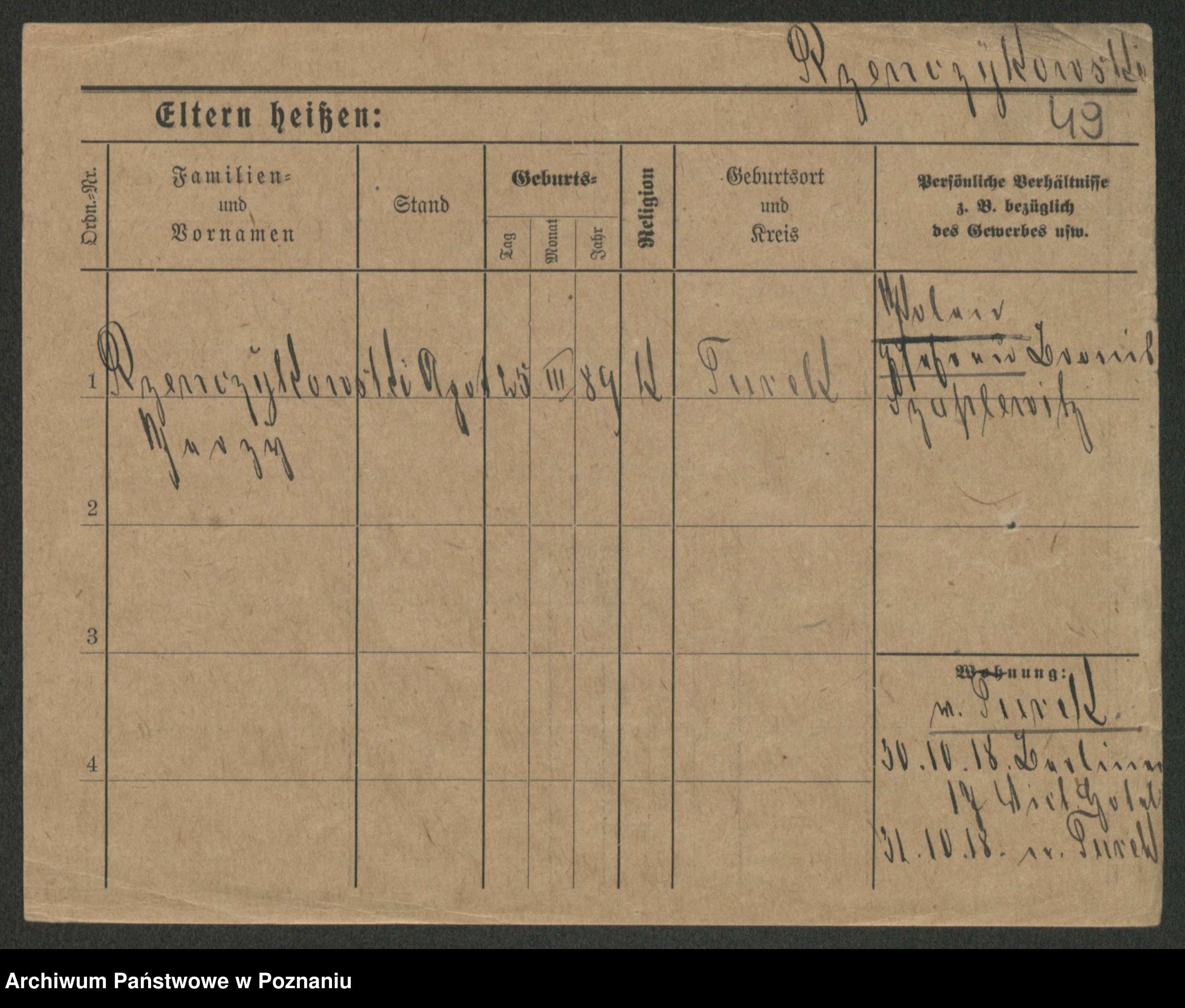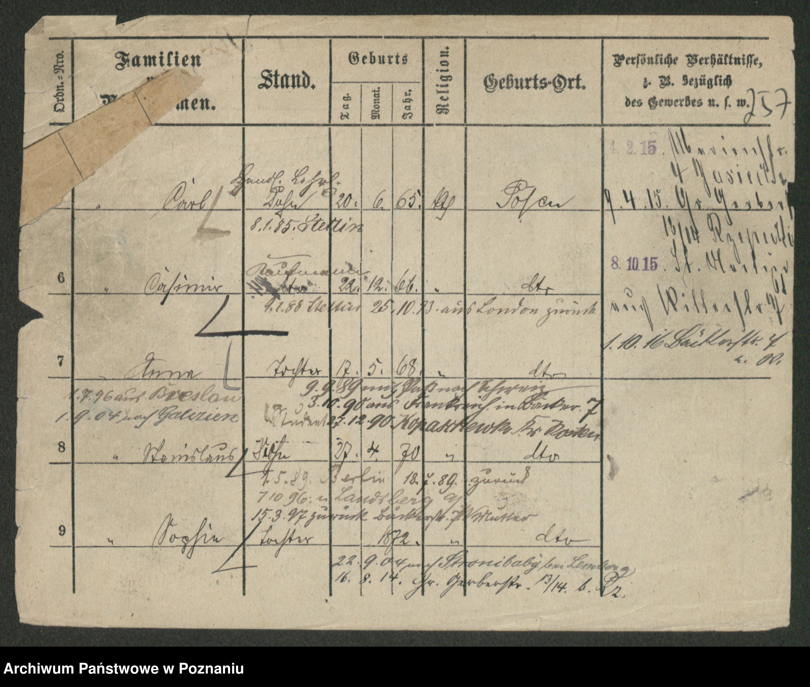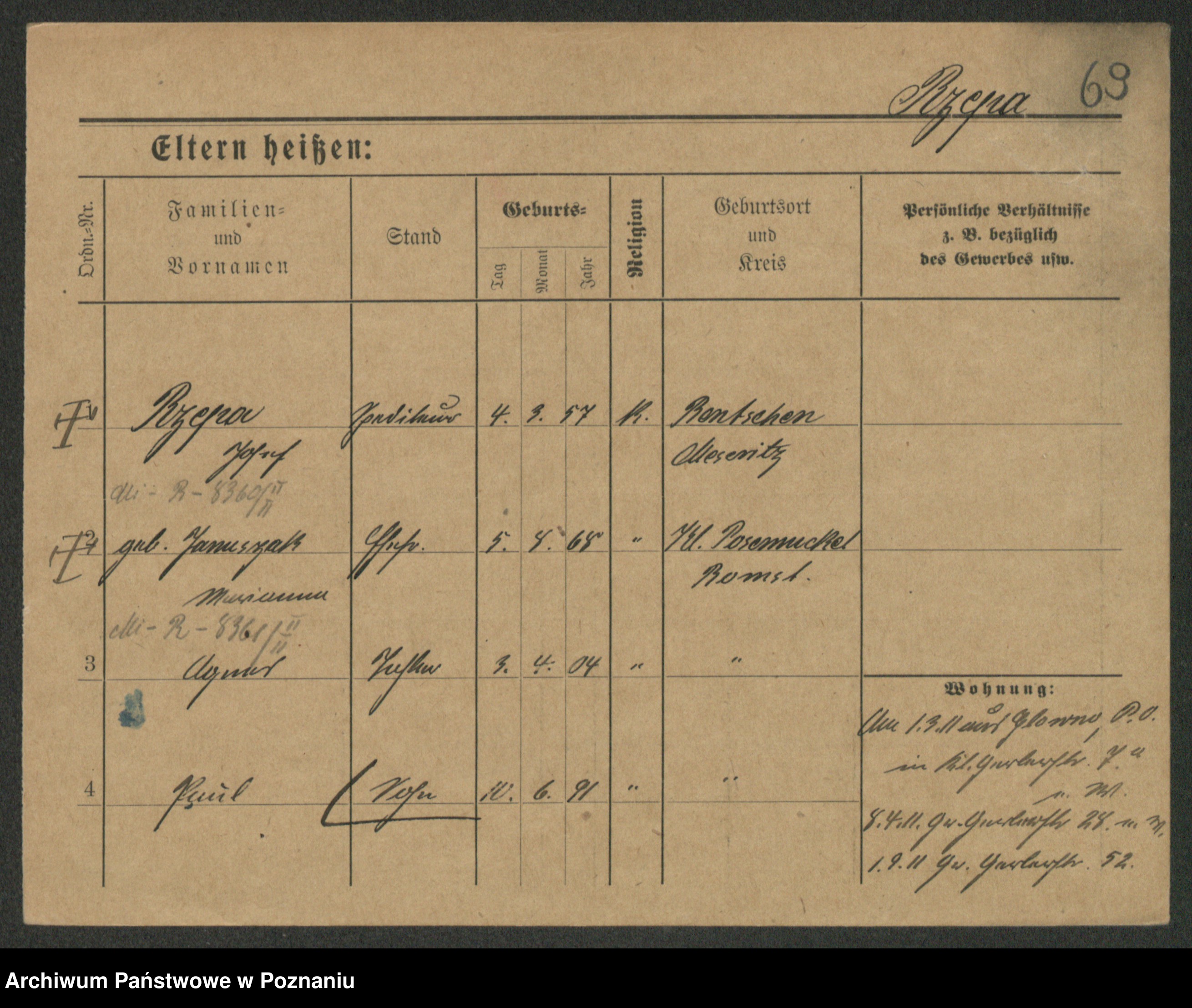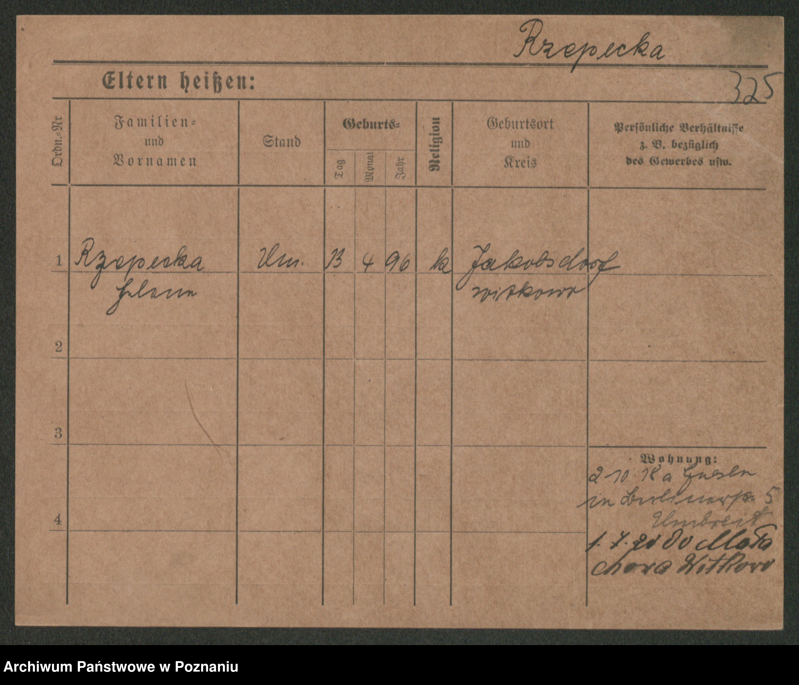 Podgląd karty osobowej dostępny jest po kliknięciu na nazwisko lub ikonkę karty. Można dokonywać powiększenia (ikony na górze) lub przechodzić między kolejnymi skanami (strzałki po bokach).
