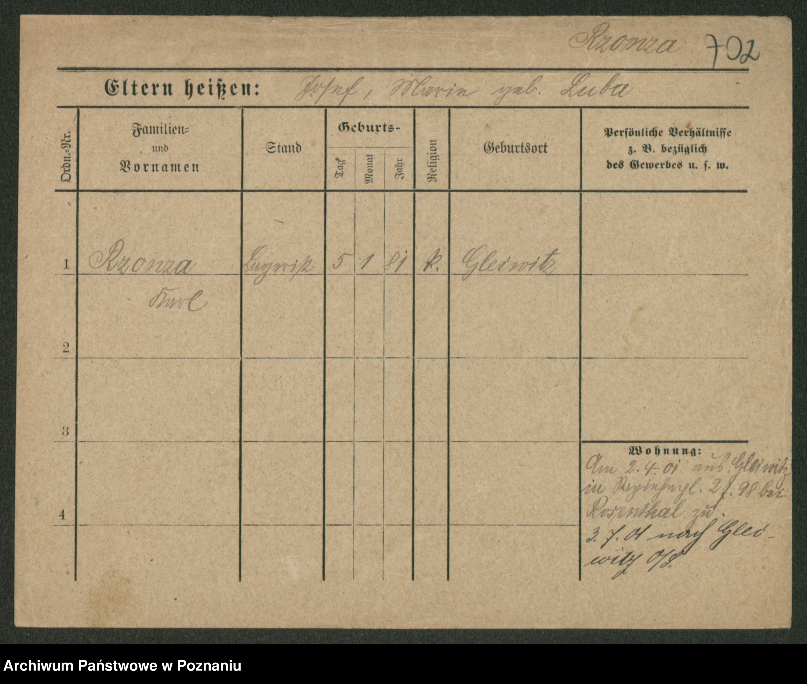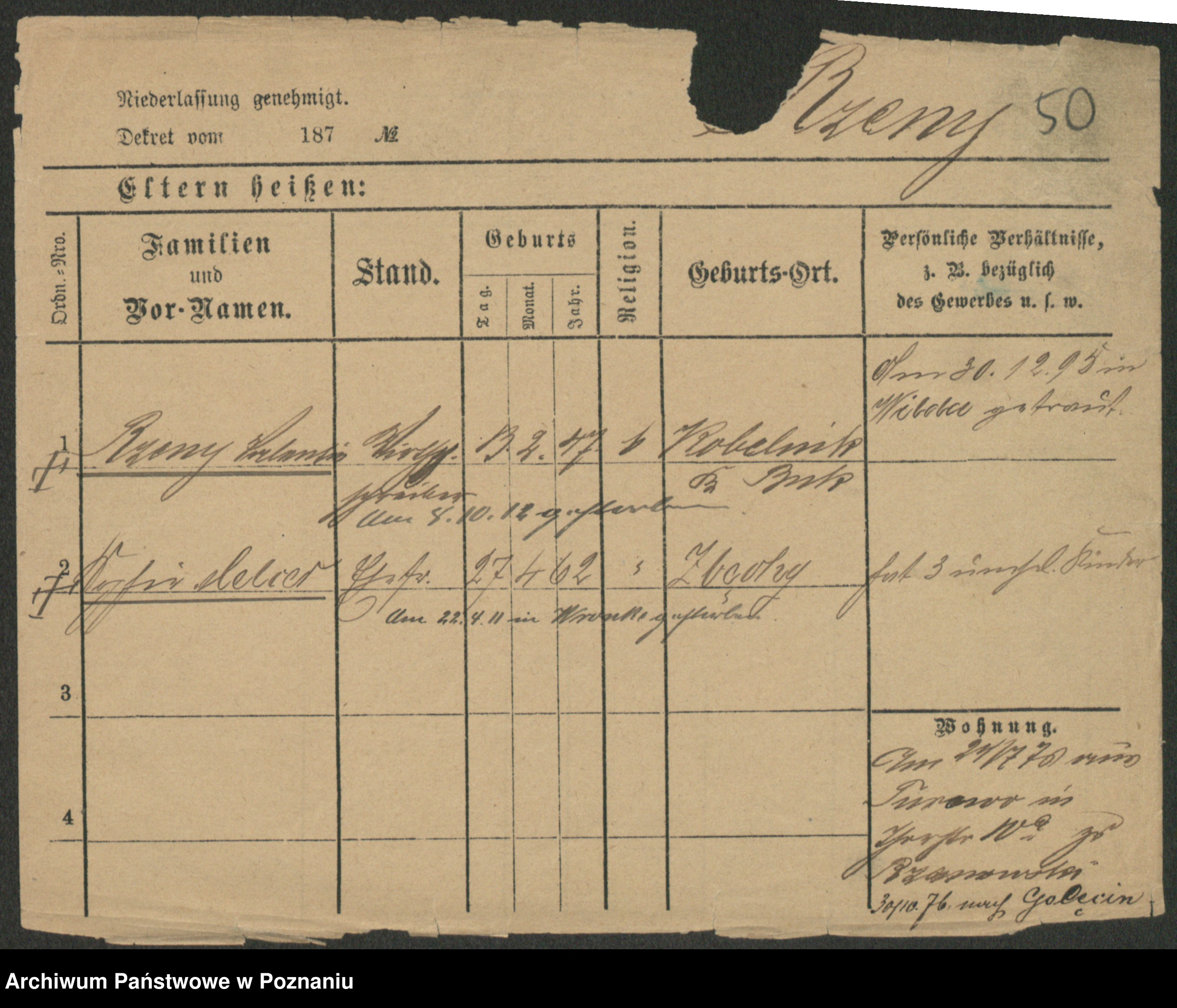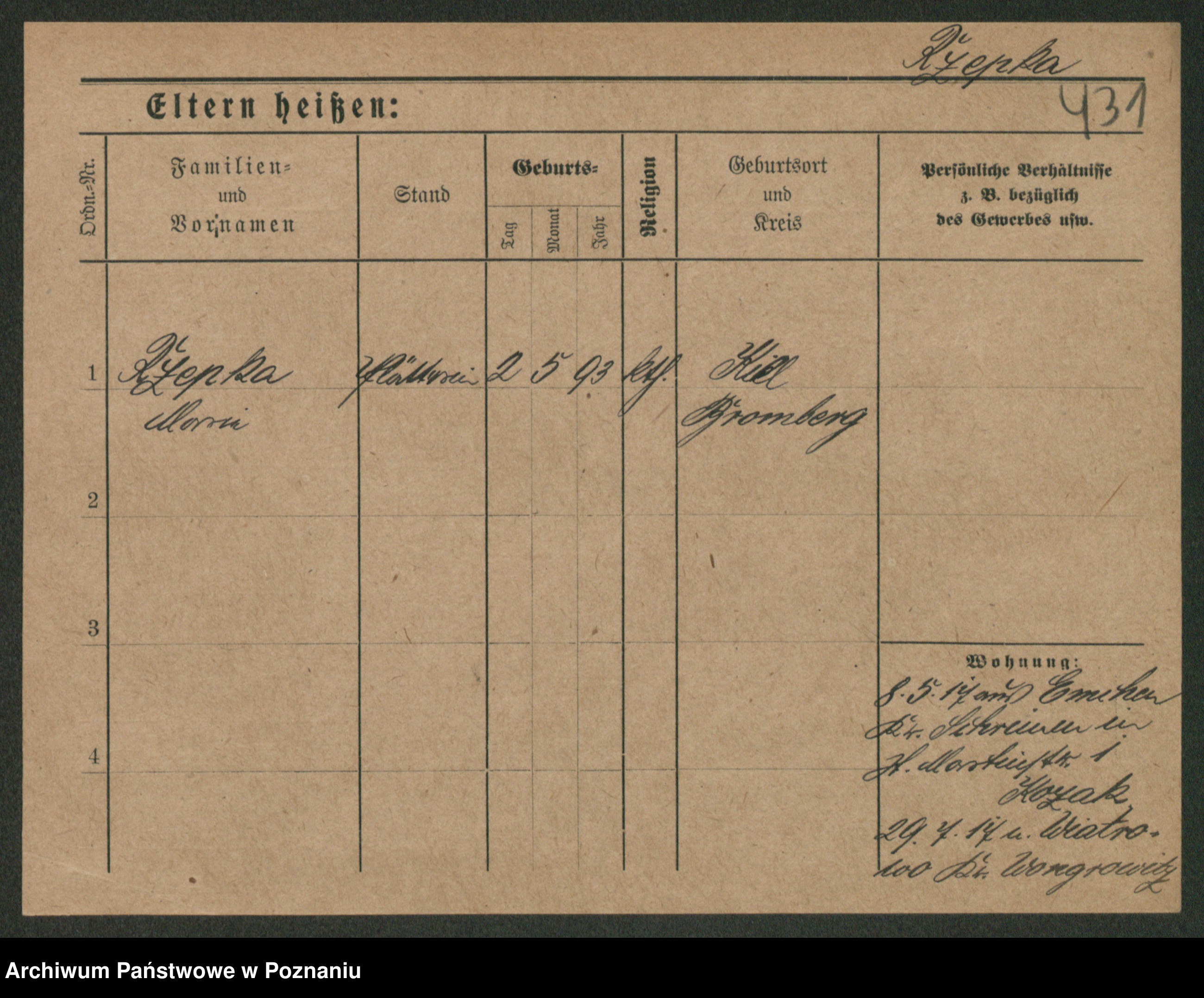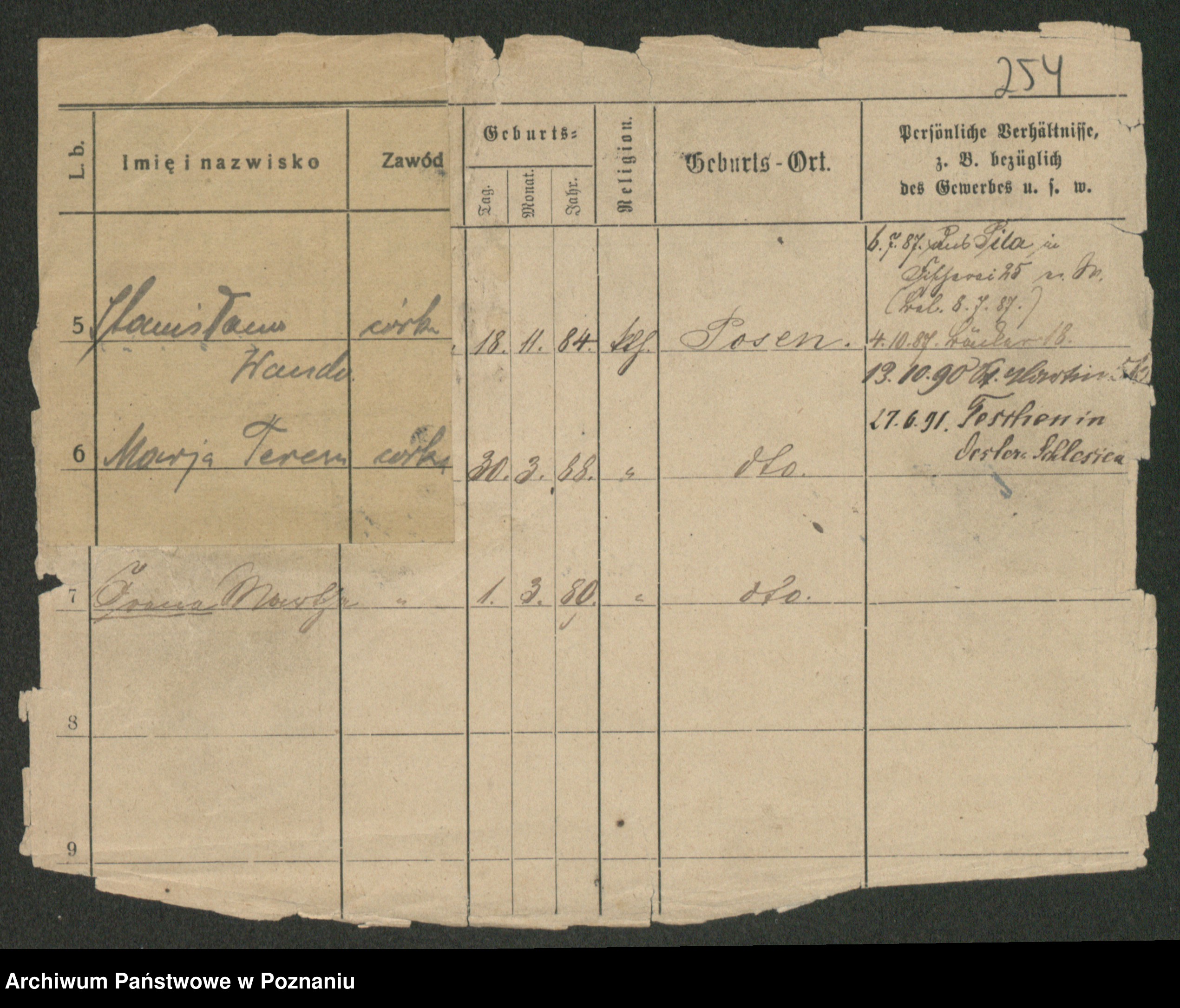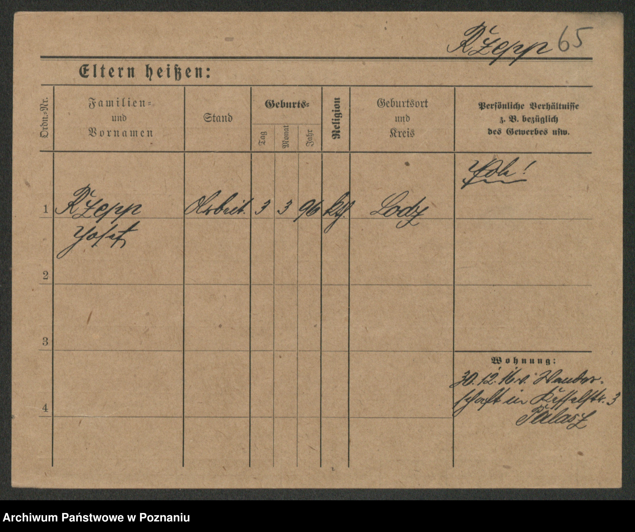 Podgląd karty osobowej dostępny jest po kliknięciu na nazwisko lub ikonkę karty. Można dokonywać powiększenia (ikony na górze) lub przechodzić między kolejnymi skanami (strzałki po bokach).