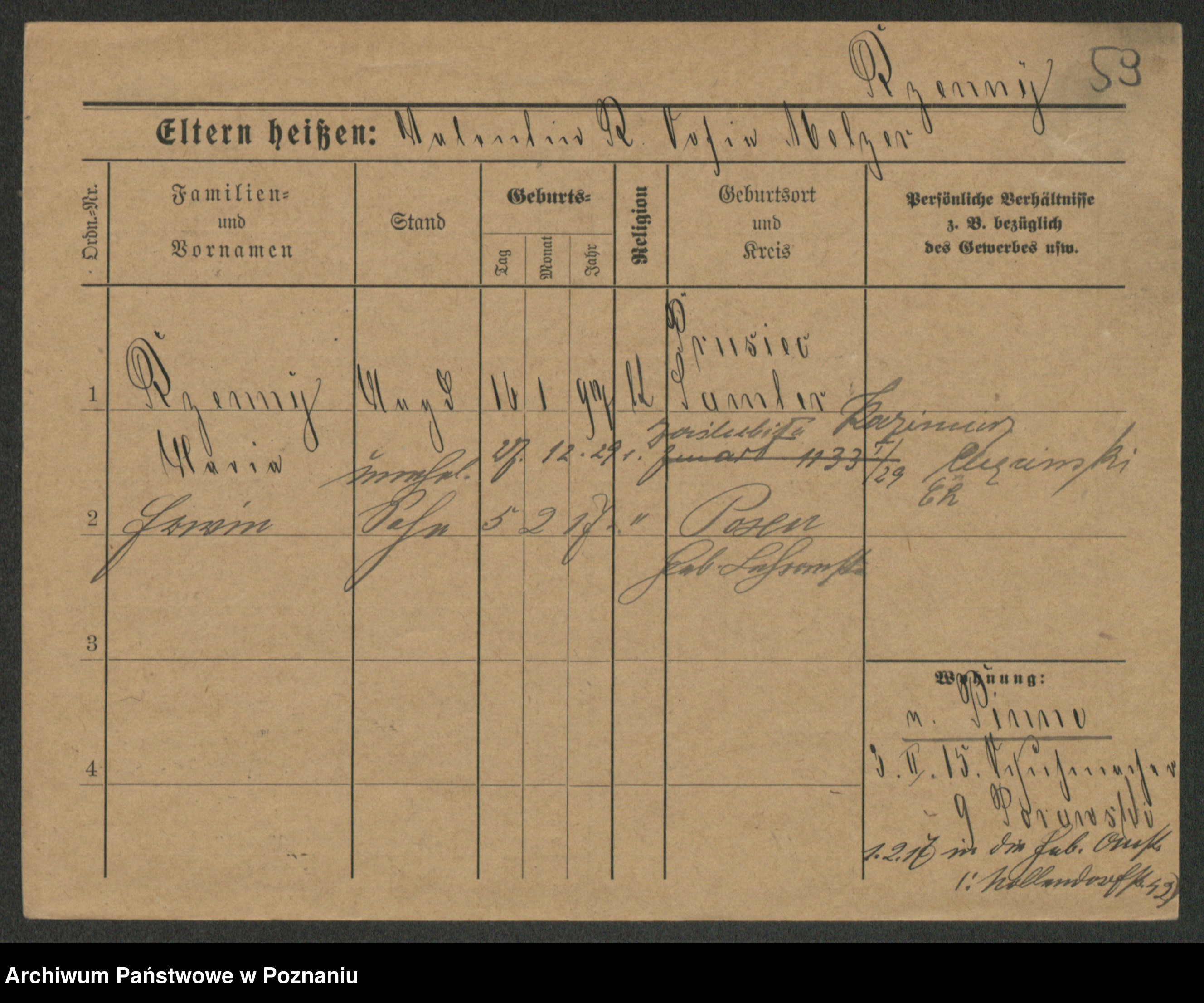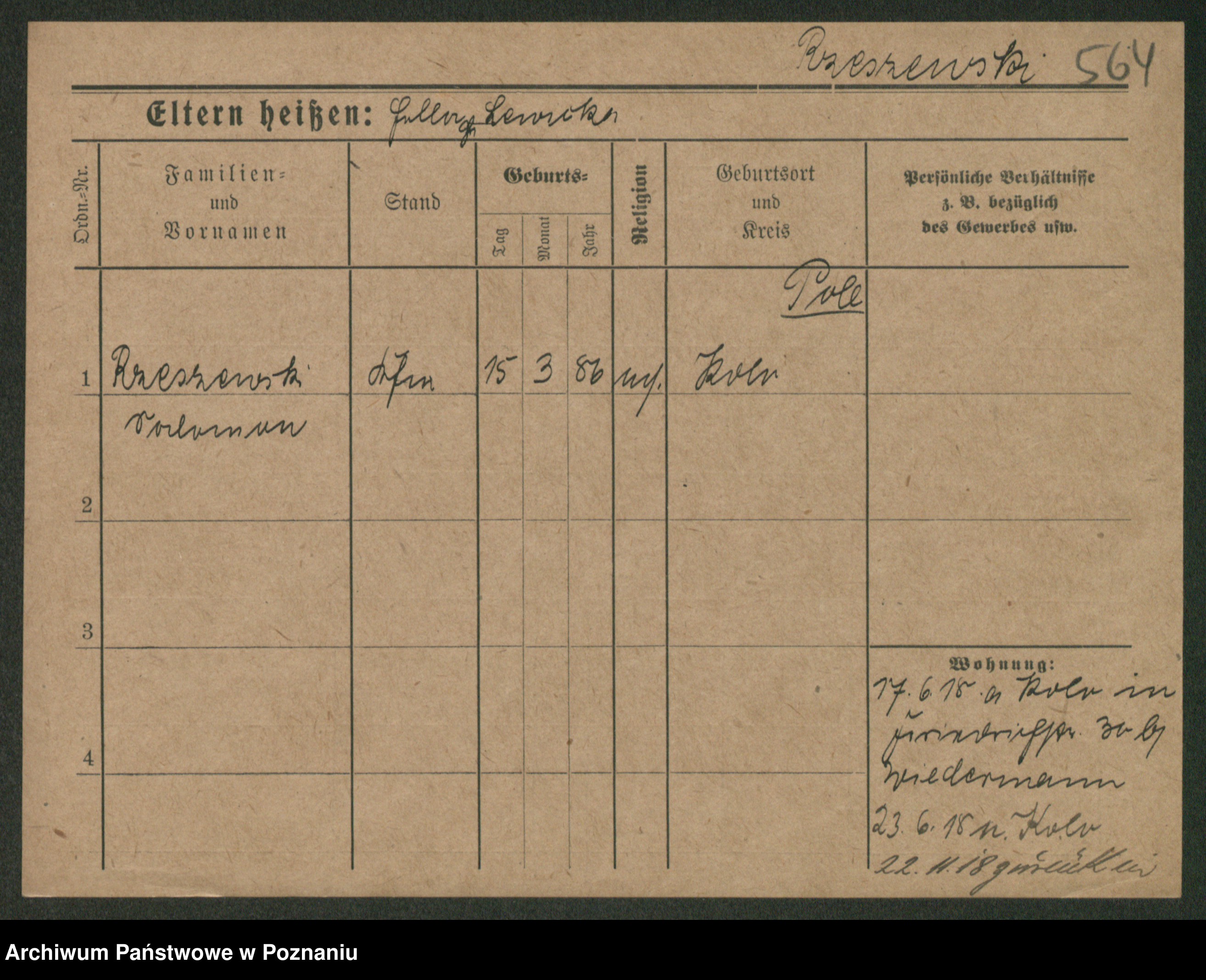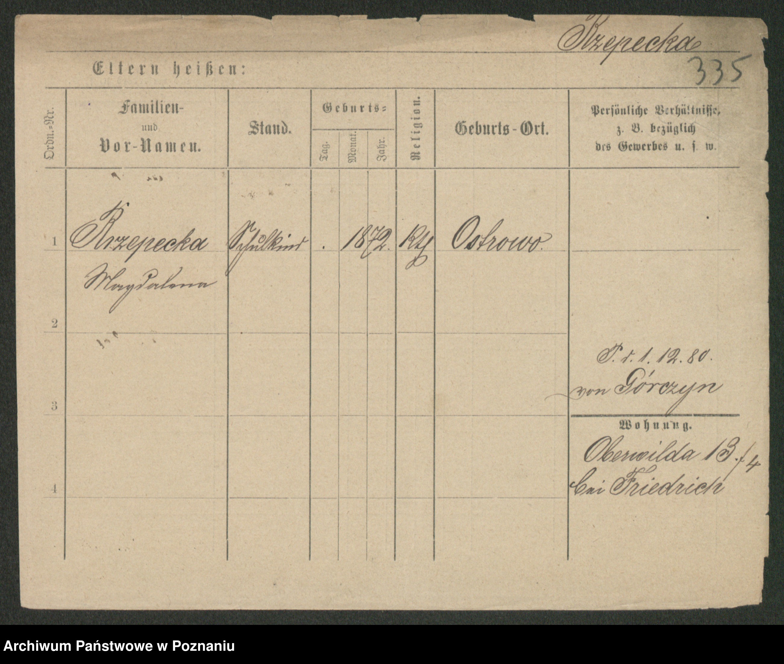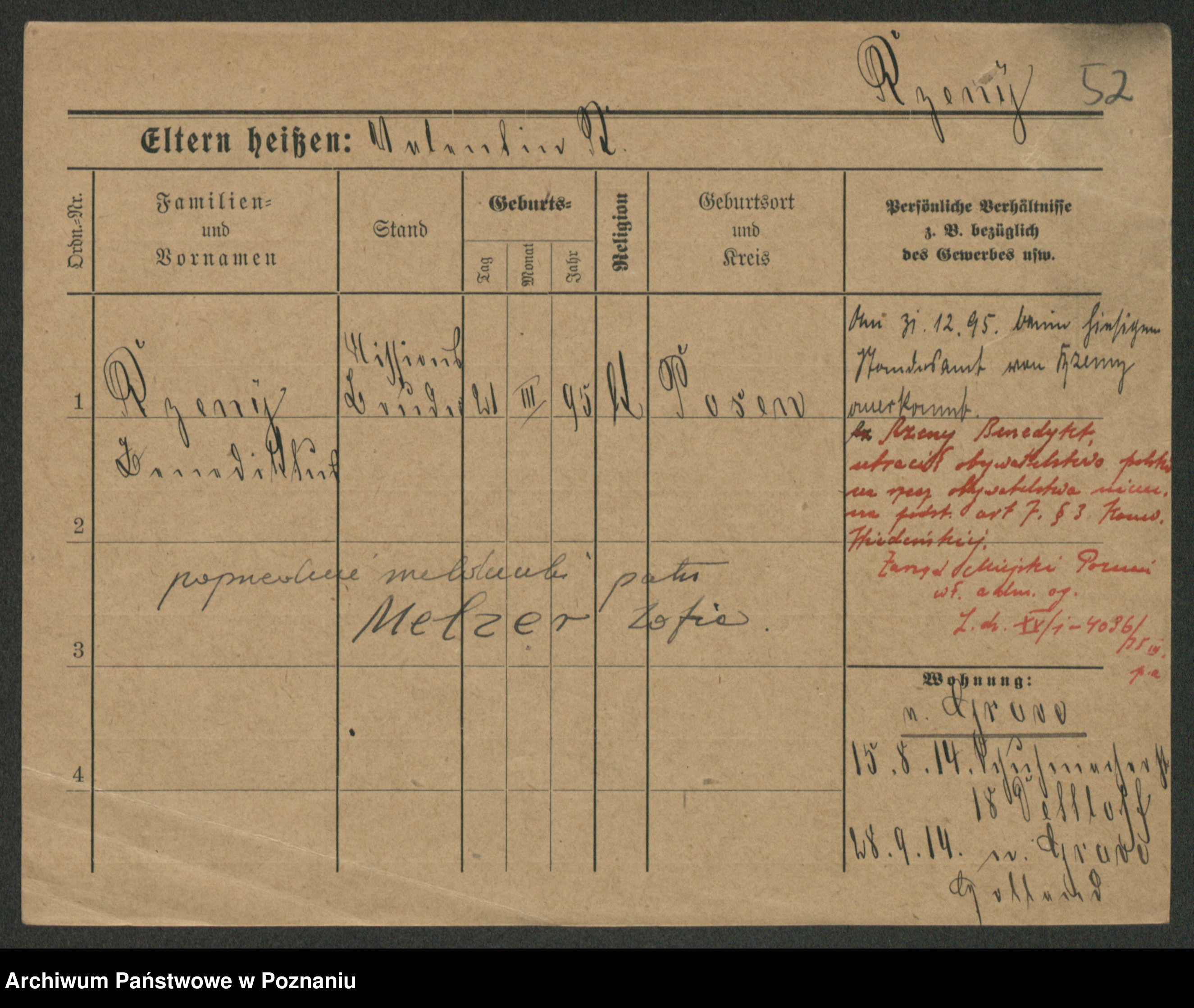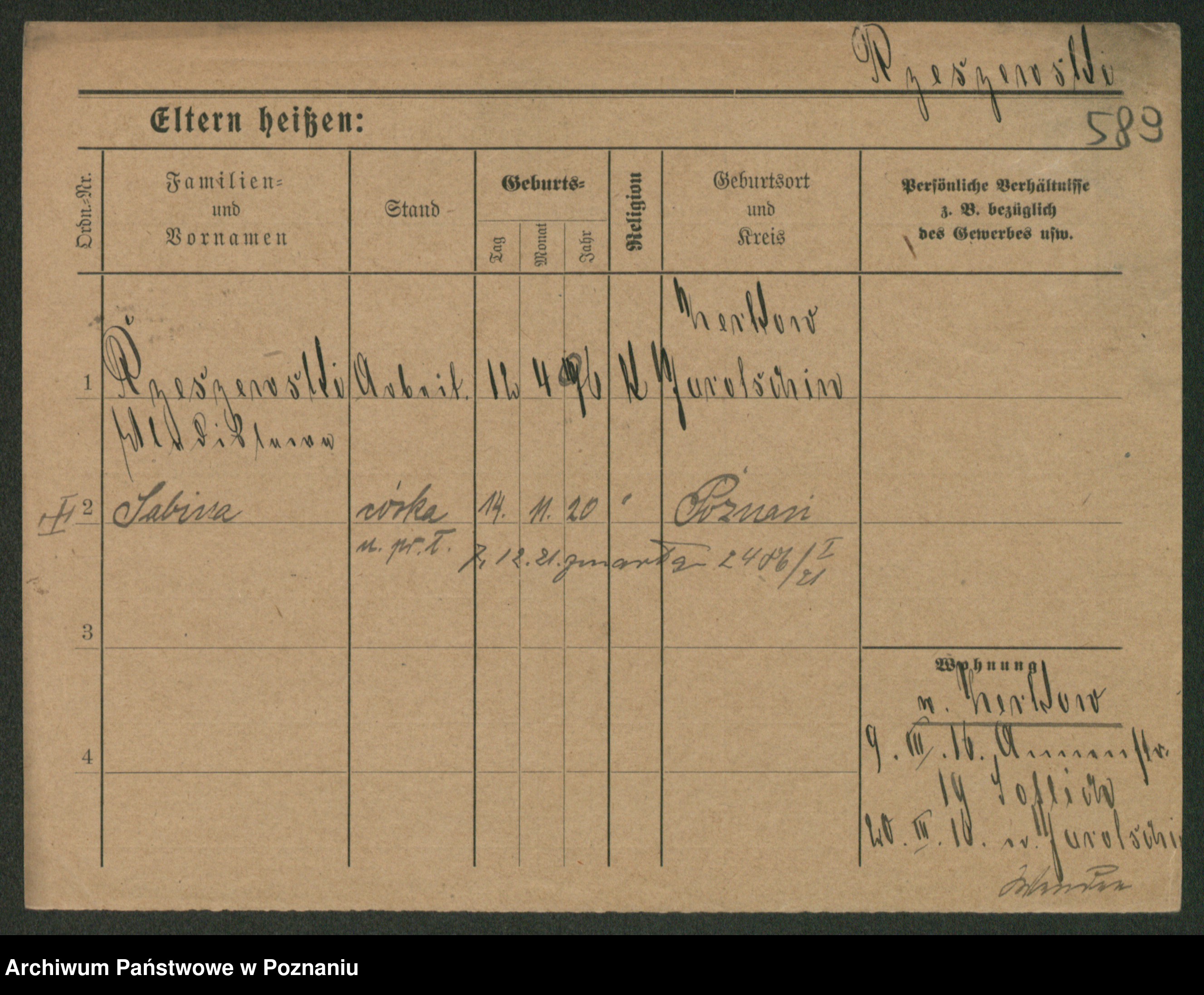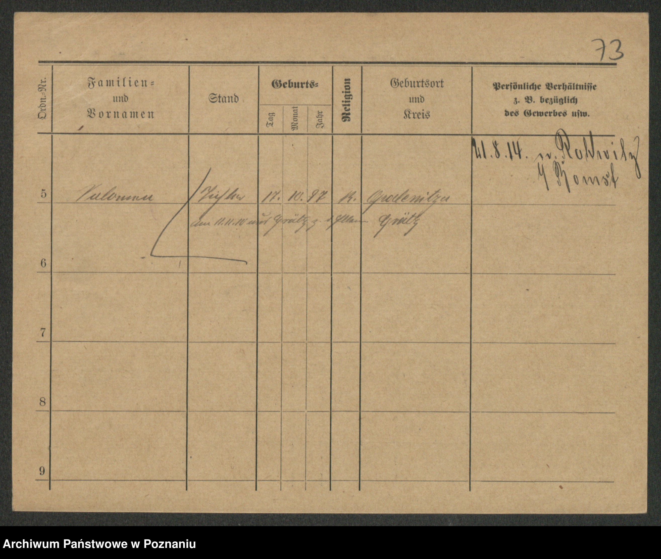 Podgląd karty osobowej dostępny jest po kliknięciu na nazwisko lub ikonkę karty. Można dokonywać powiększenia (ikony na górze) lub przechodzić między kolejnymi skanami (strzałki po bokach).
