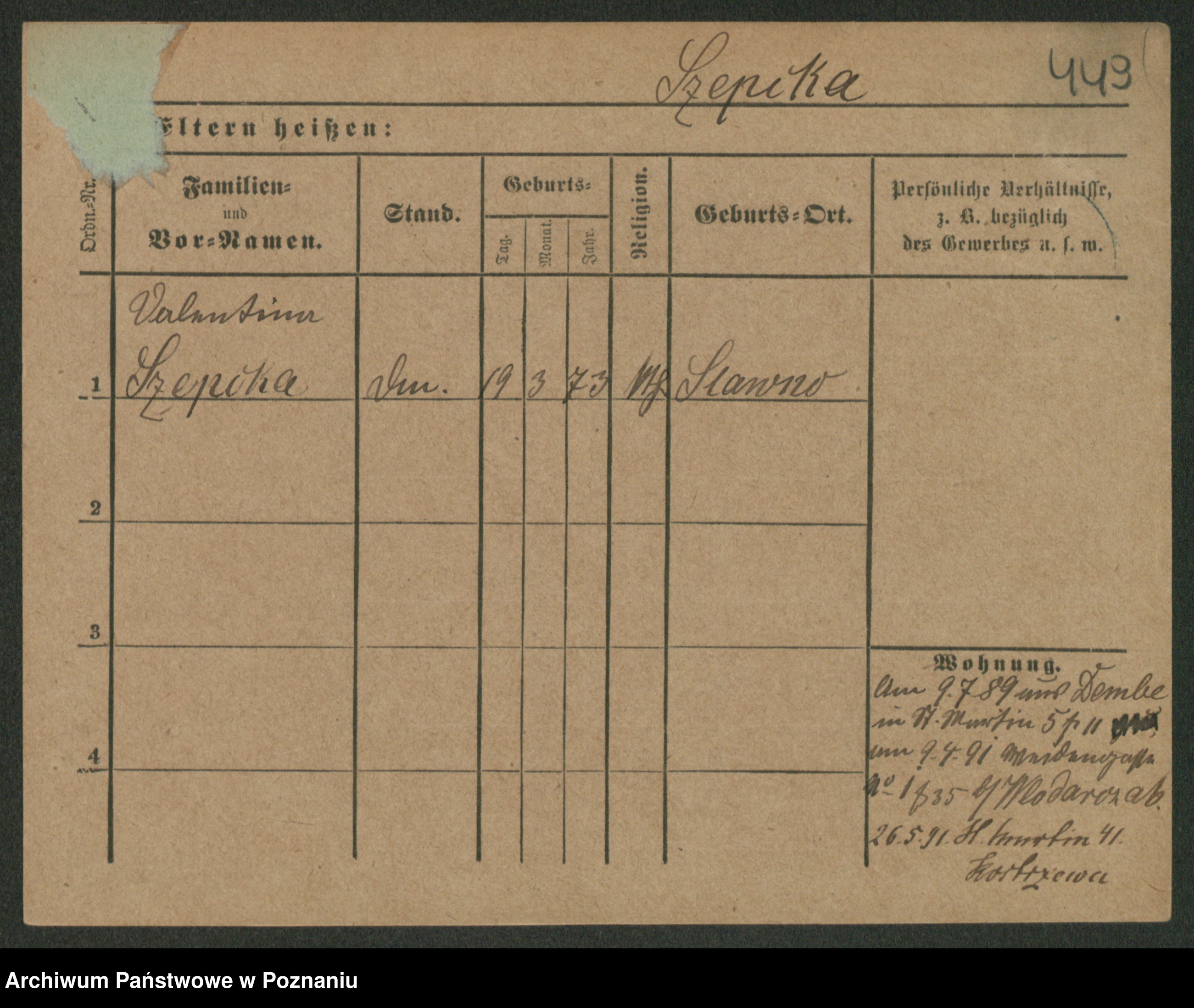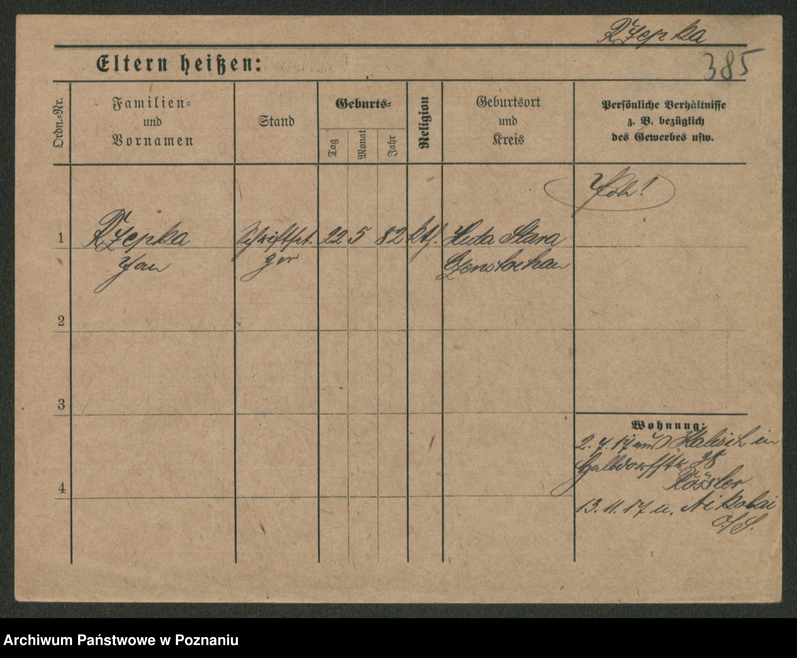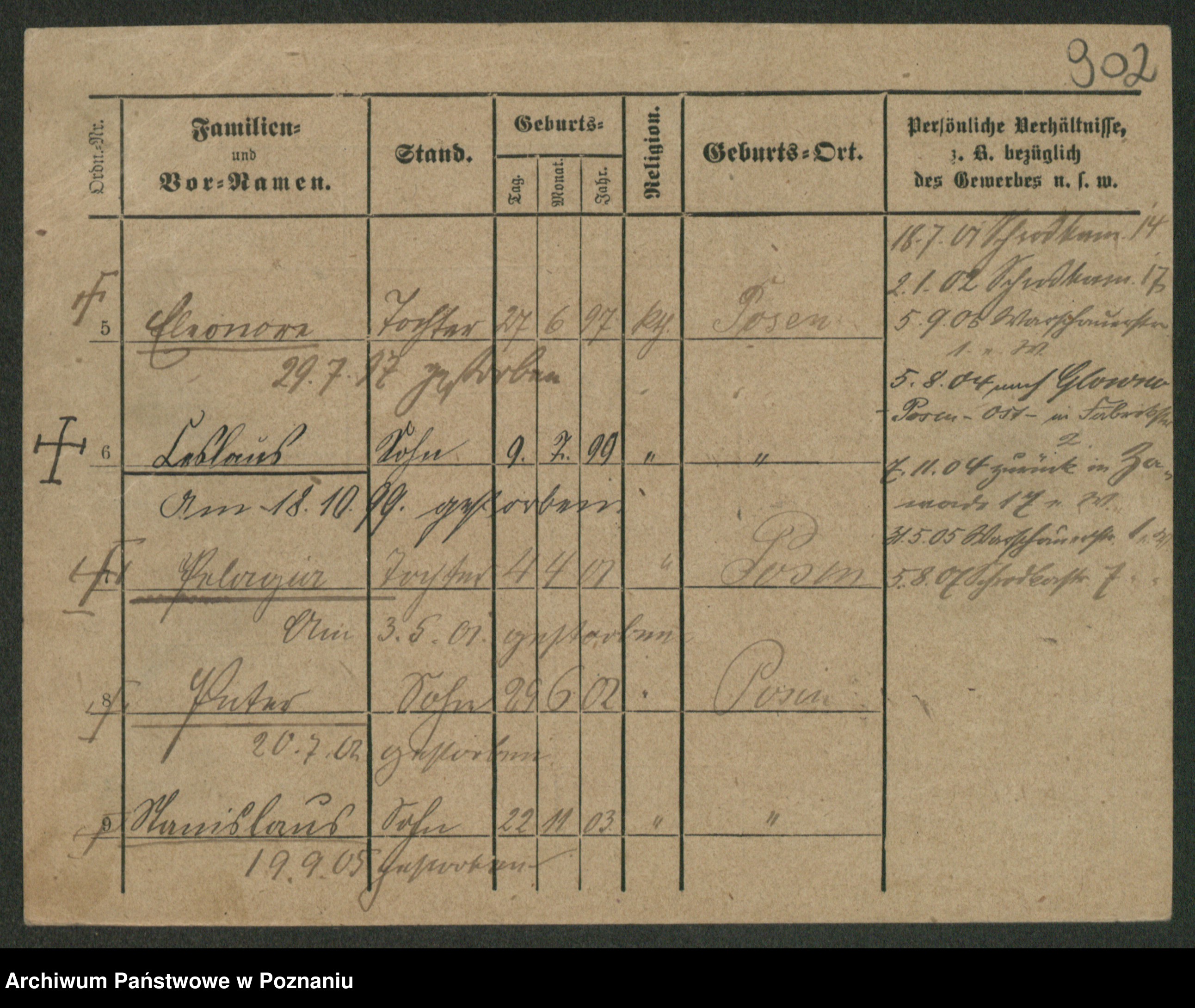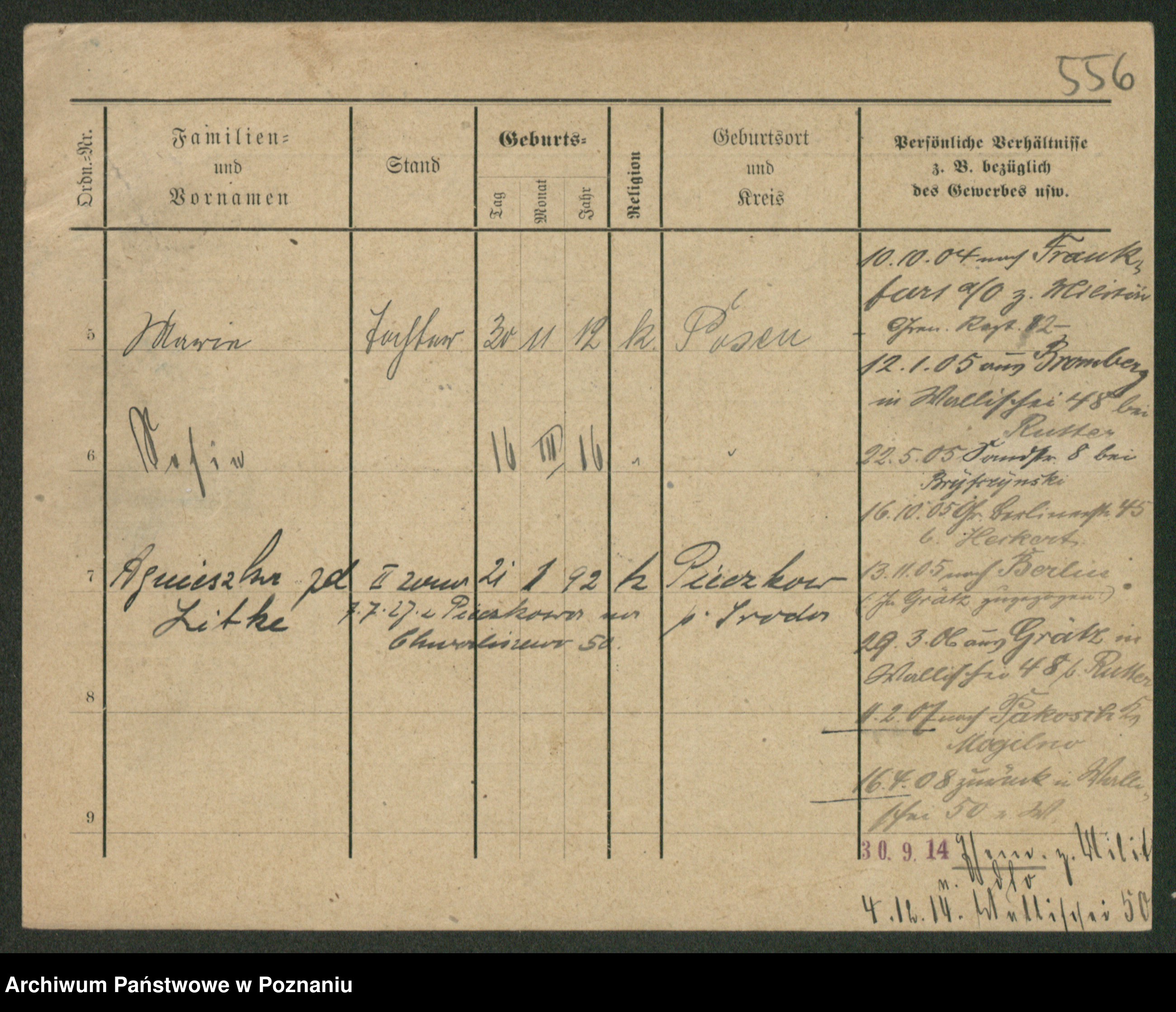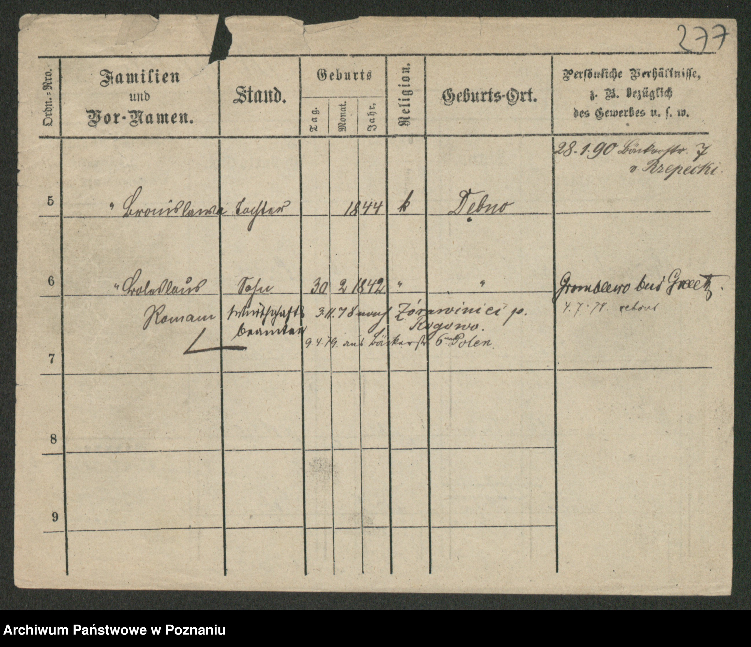 Podgląd karty osobowej dostępny jest po kliknięciu na nazwisko lub ikonkę karty. Można dokonywać powiększenia (ikony na górze) lub przechodzić między kolejnymi skanami (strzałki po bokach).