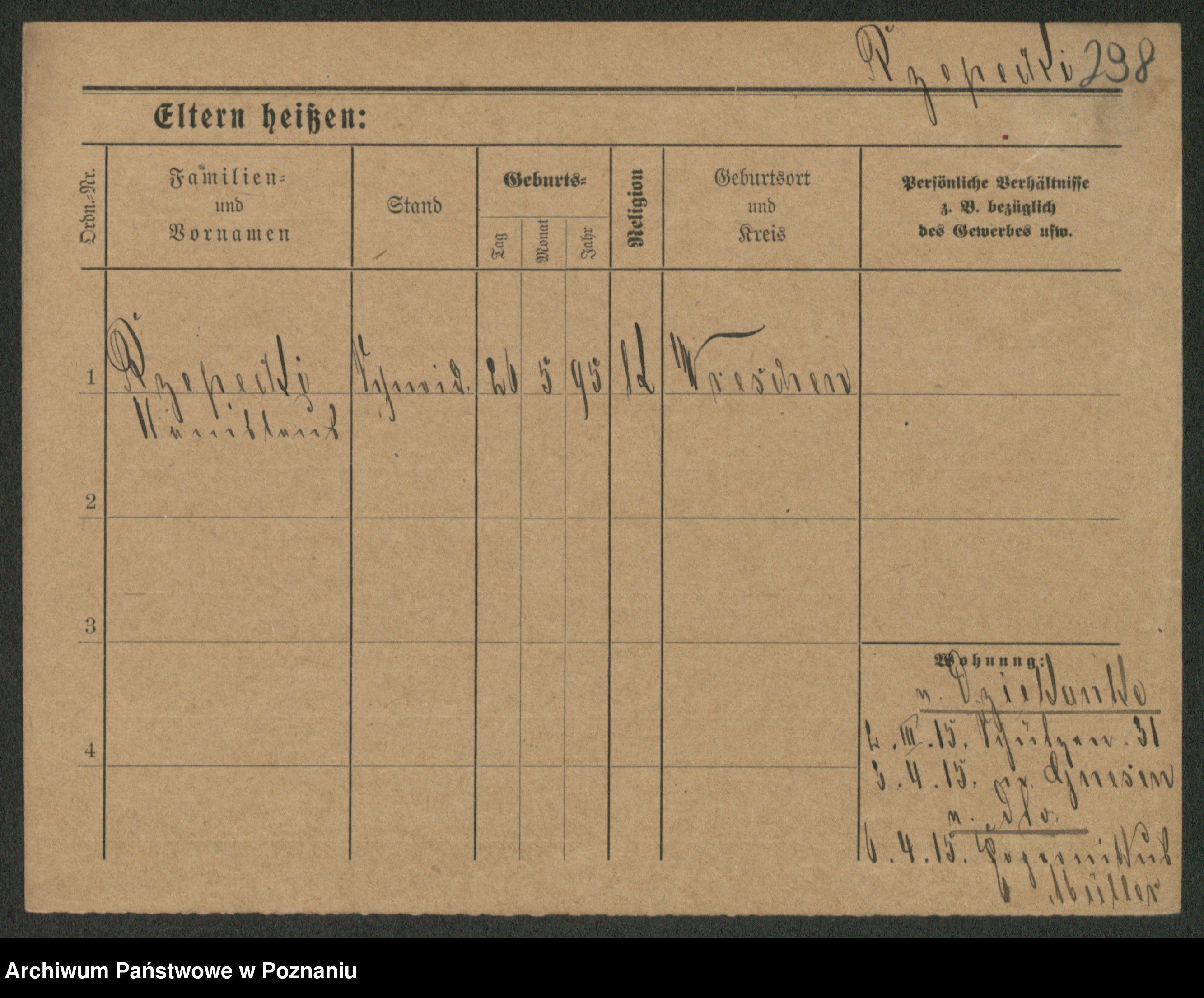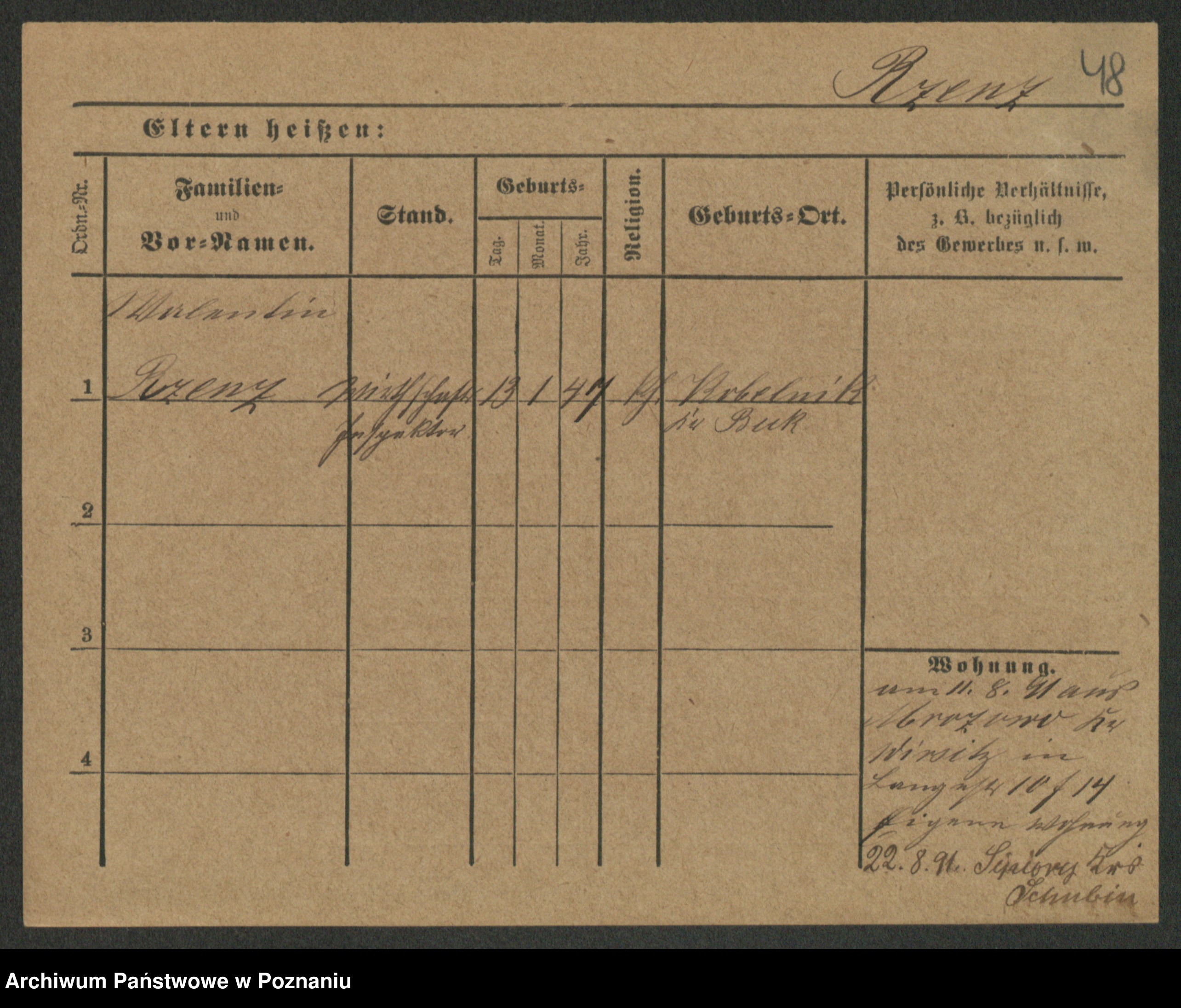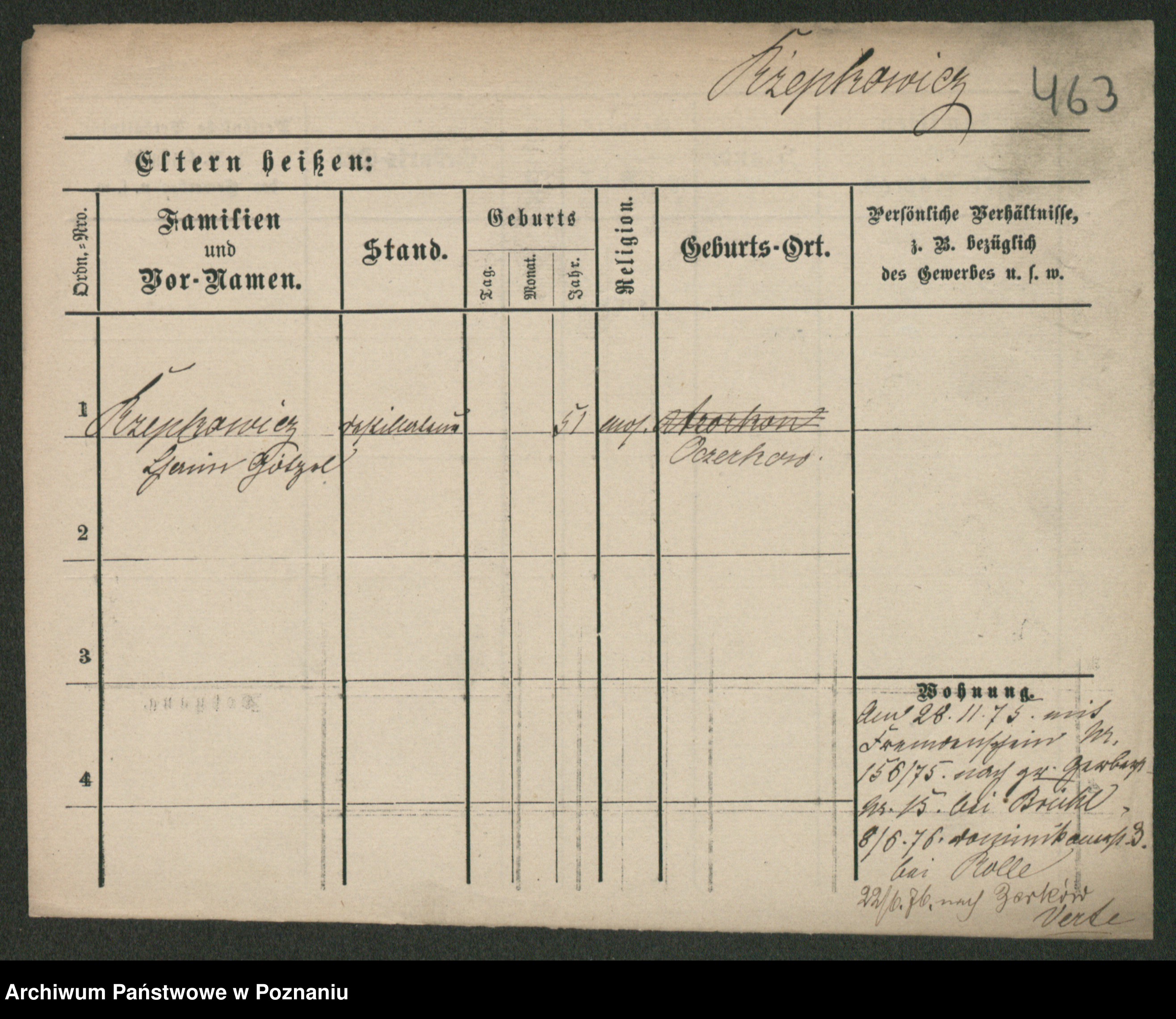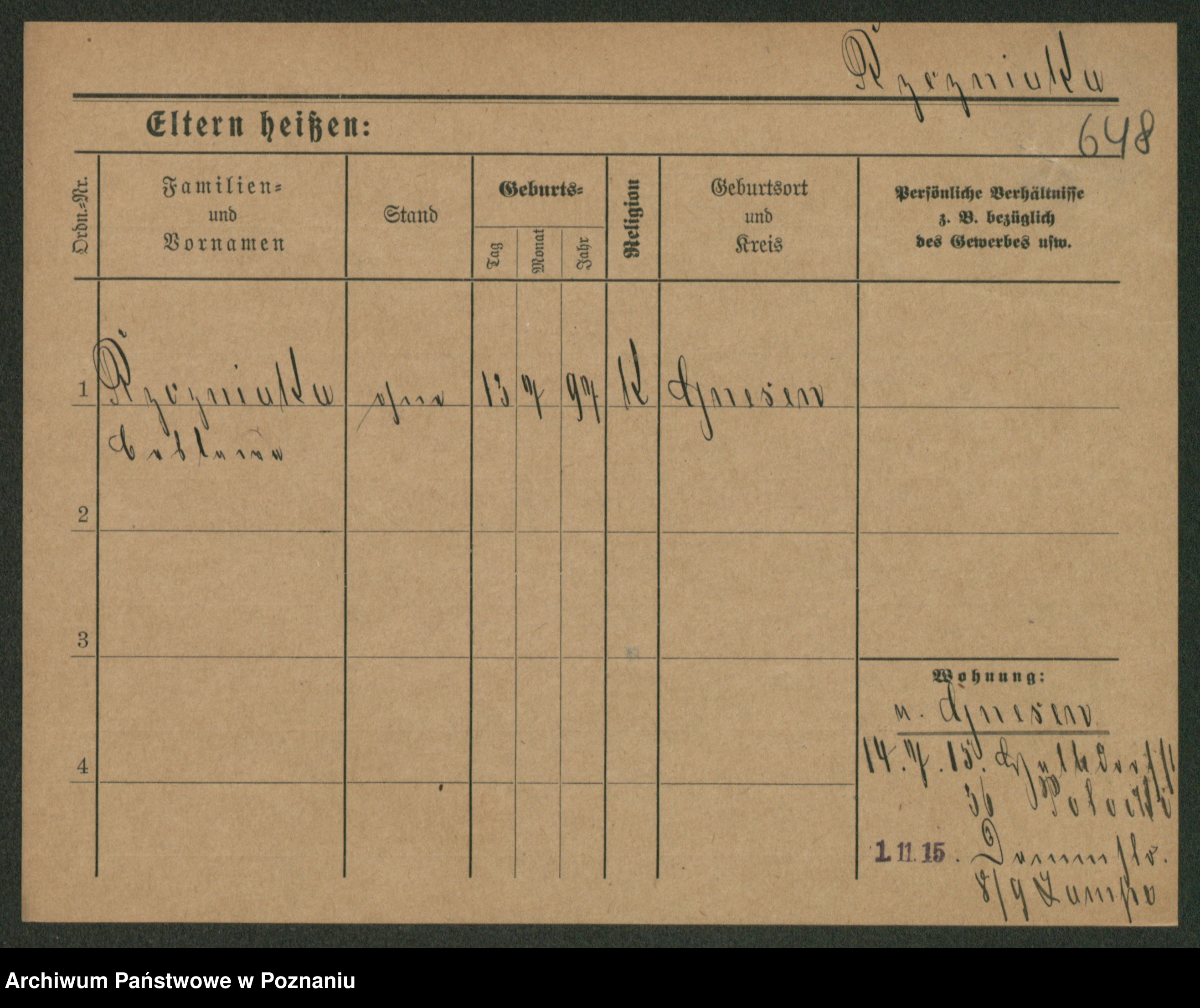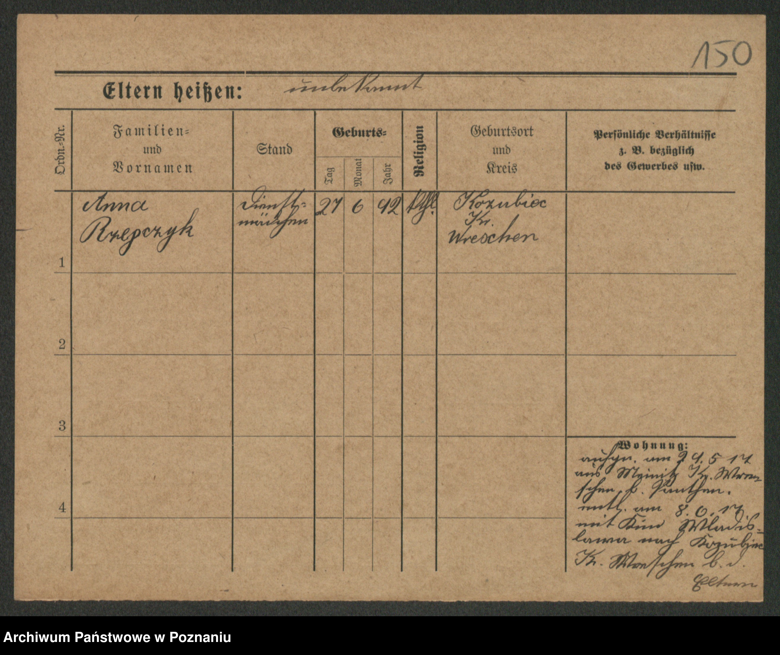 Podgląd karty osobowej dostępny jest po kliknięciu na nazwisko lub ikonkę karty. Można dokonywać powiększenia (ikony na górze) lub przechodzić między kolejnymi skanami (strzałki po bokach).