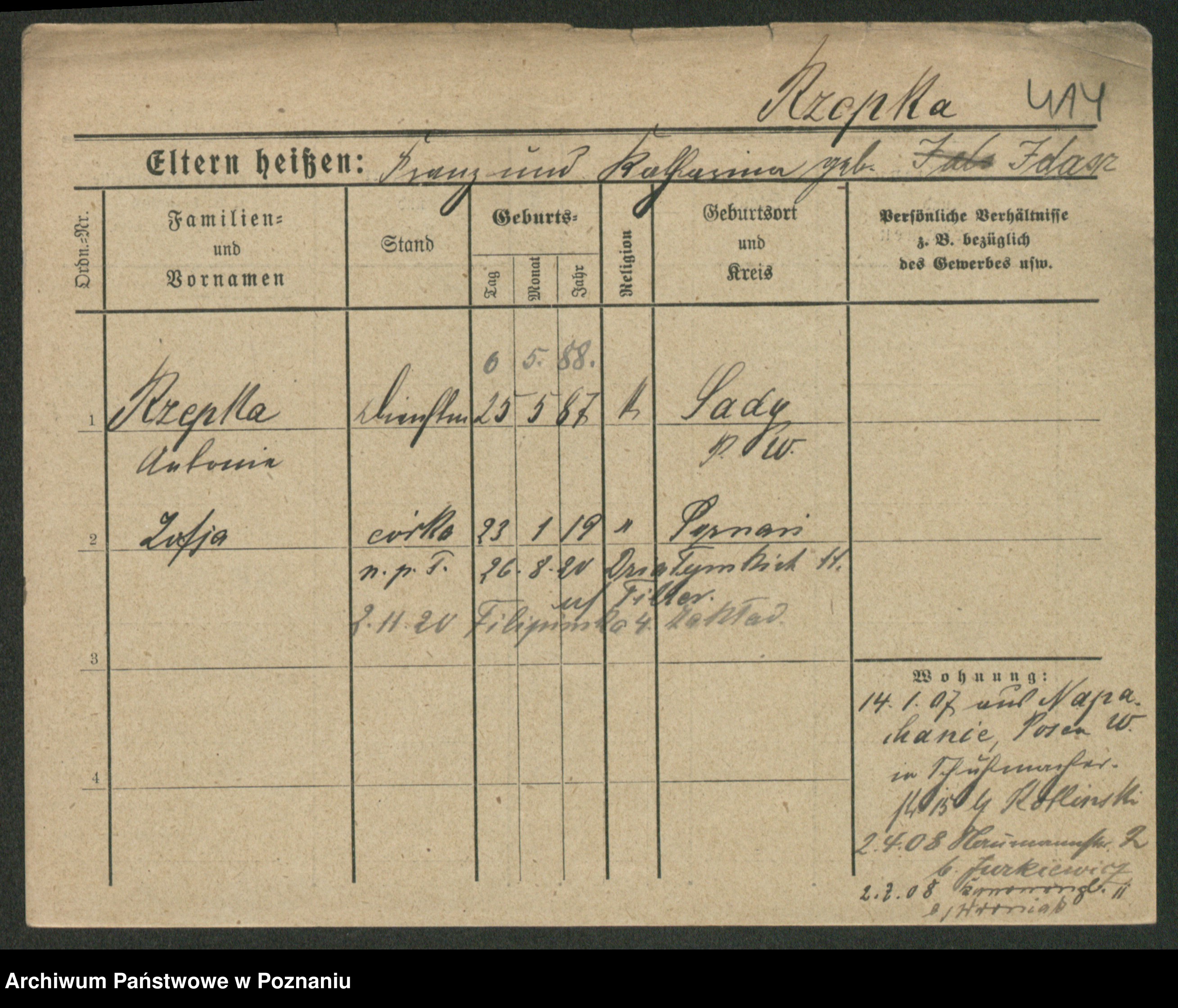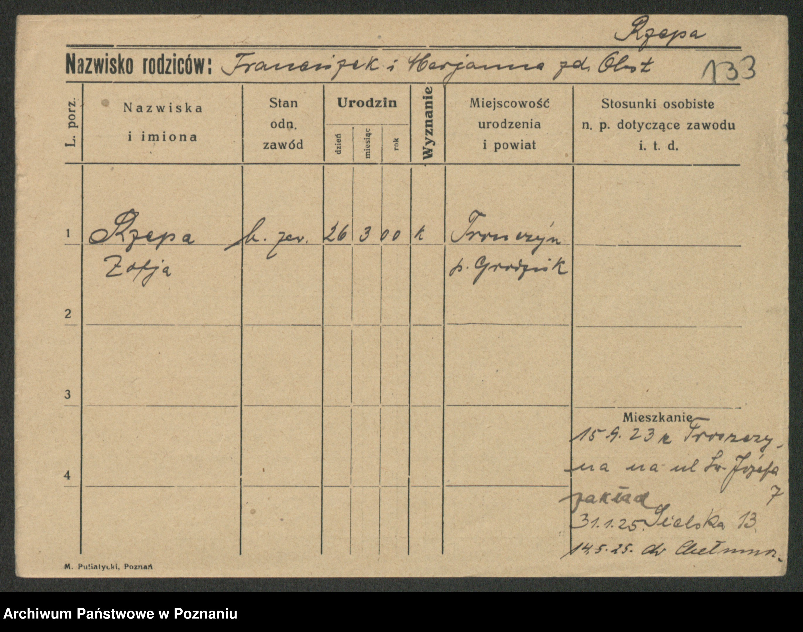 Rzitka z d. Drzewiecka, Sofie