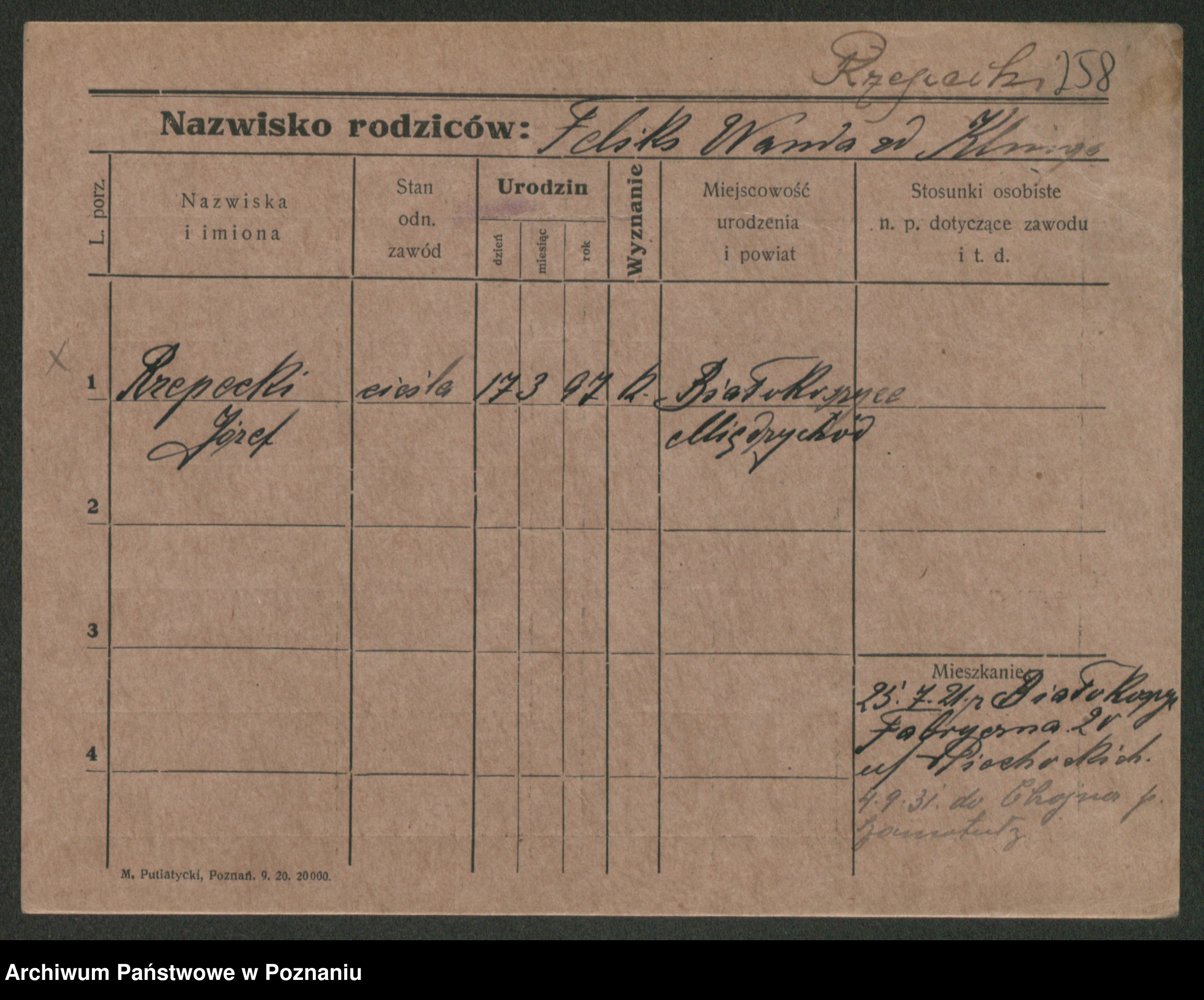 Rzendkowski, Felix