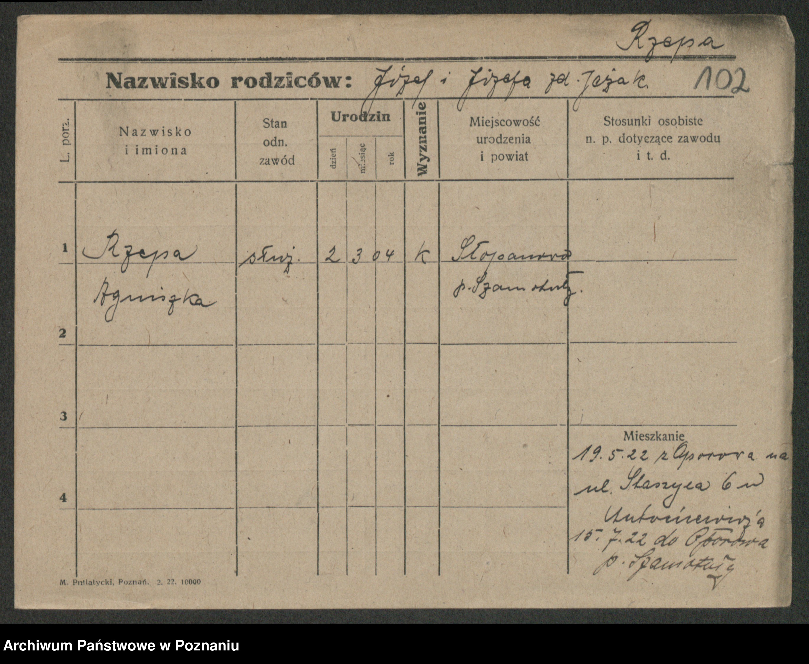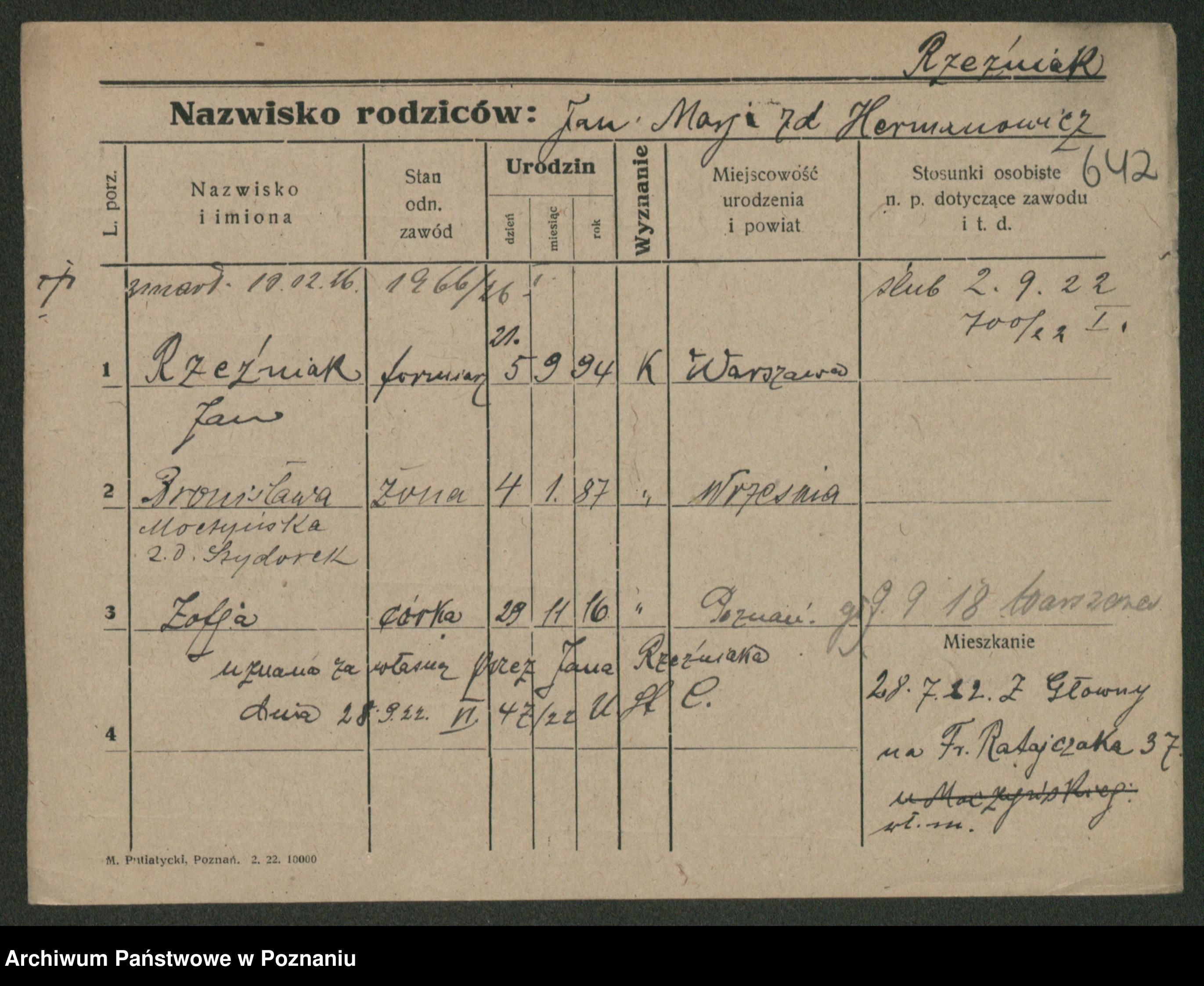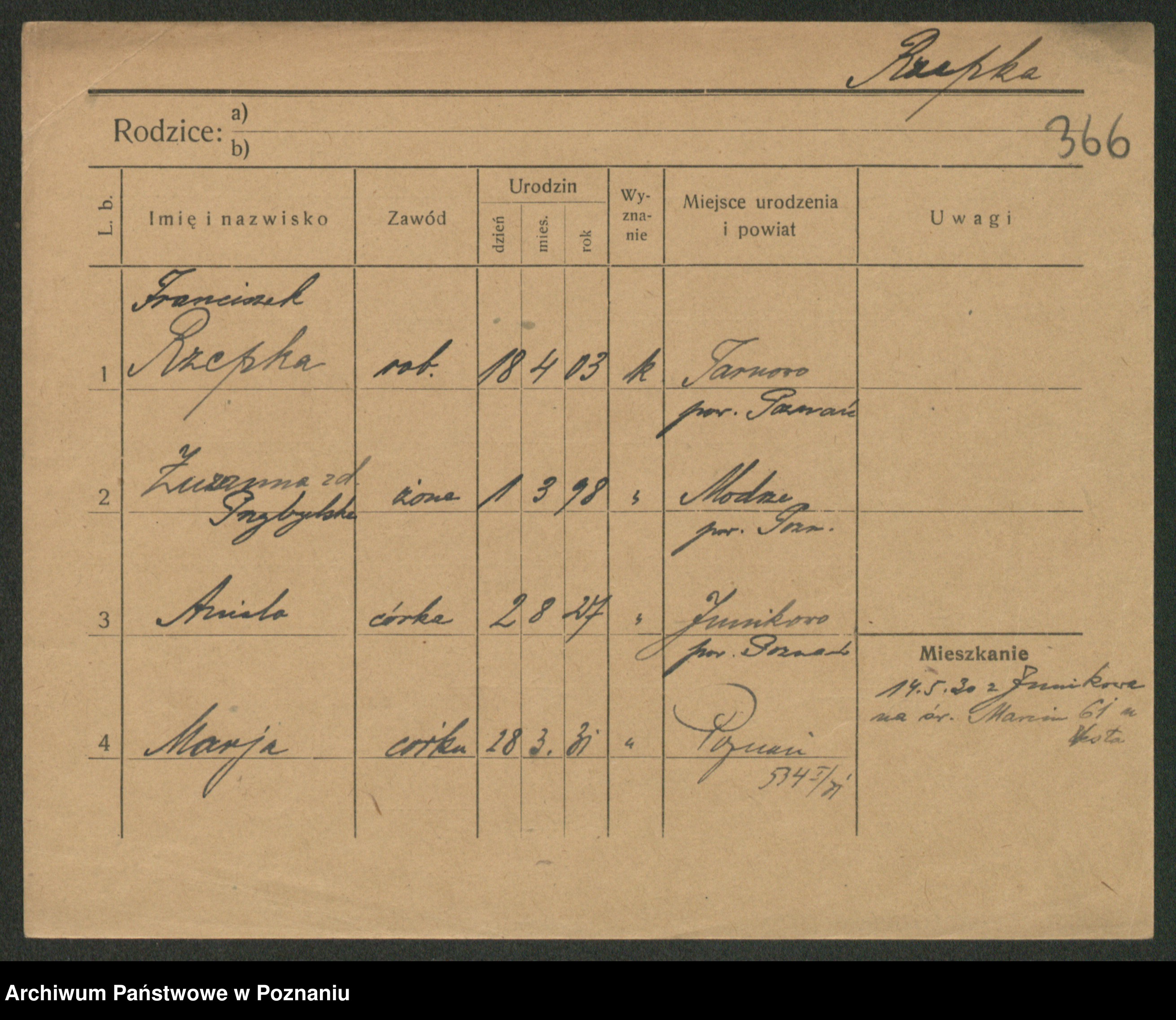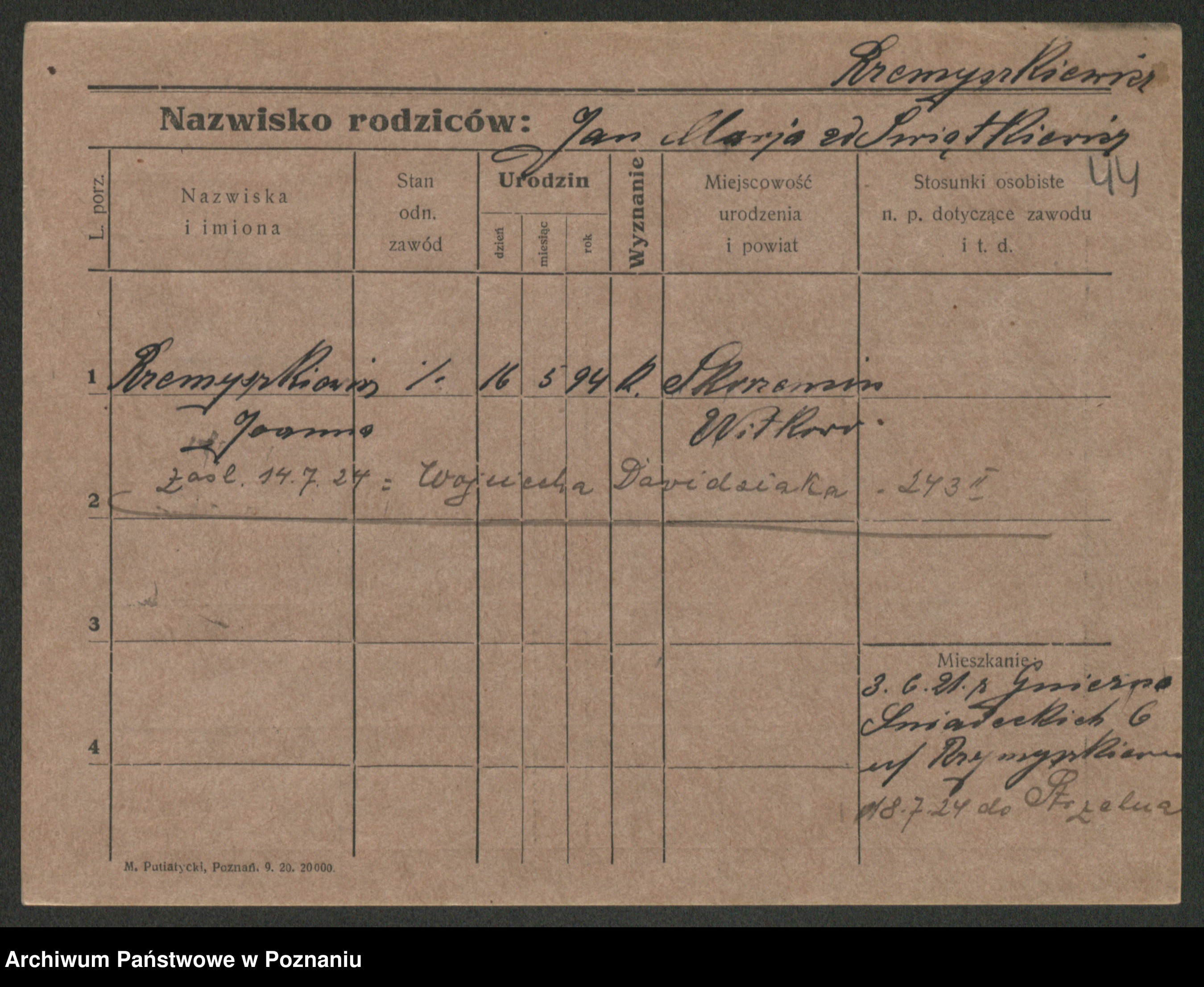 Rzemyszkiewicz, Jana Marja