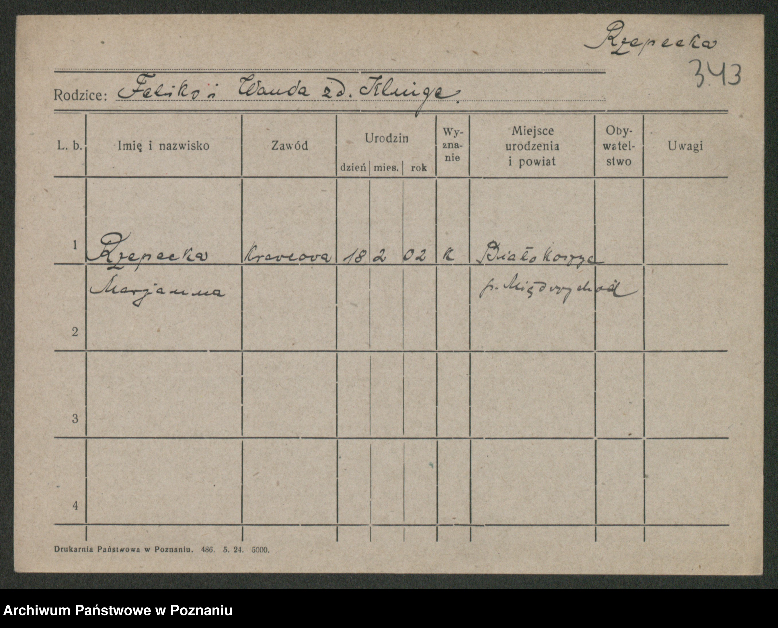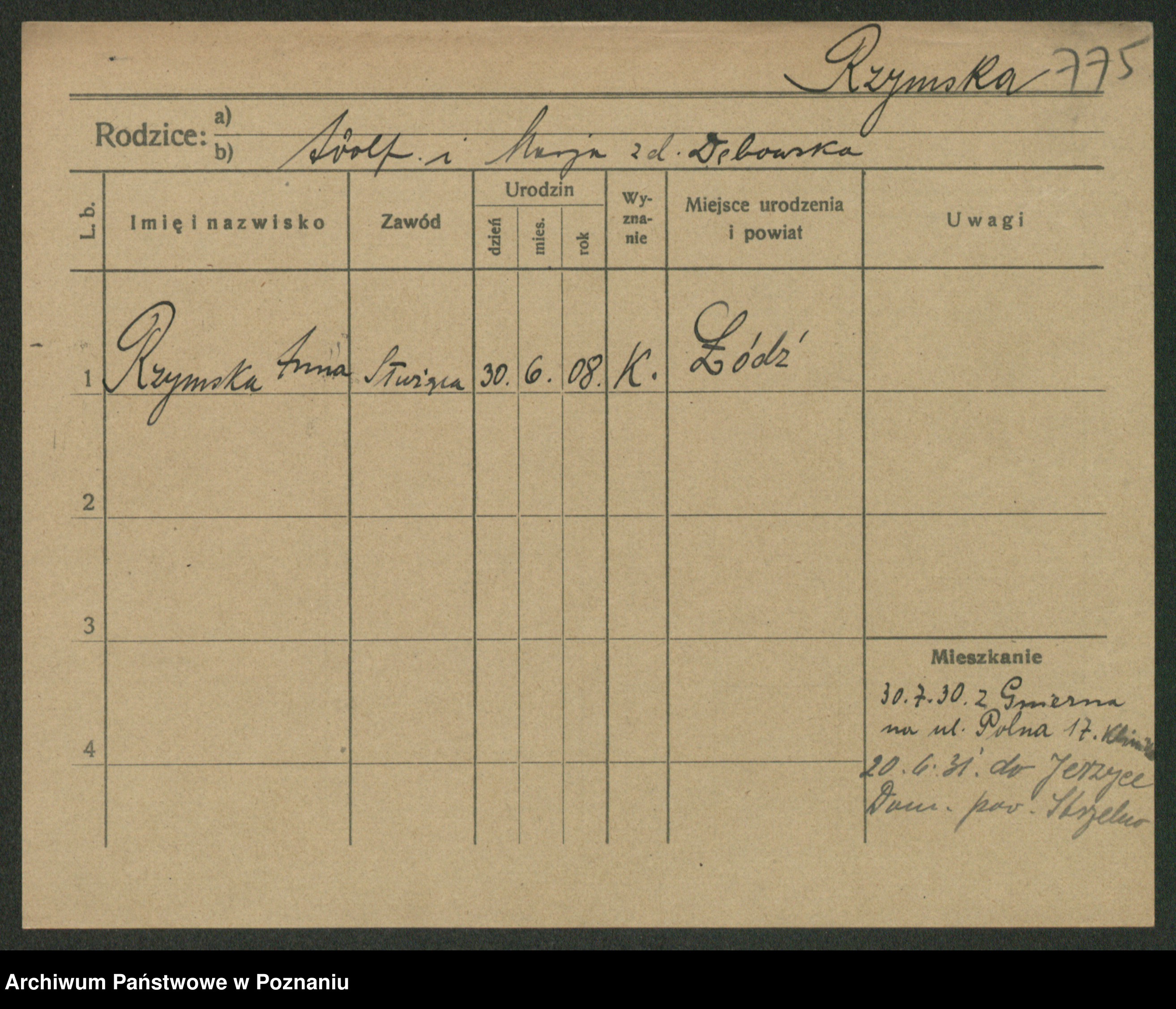 Rzywuski z d. Dąbrowska, Marie