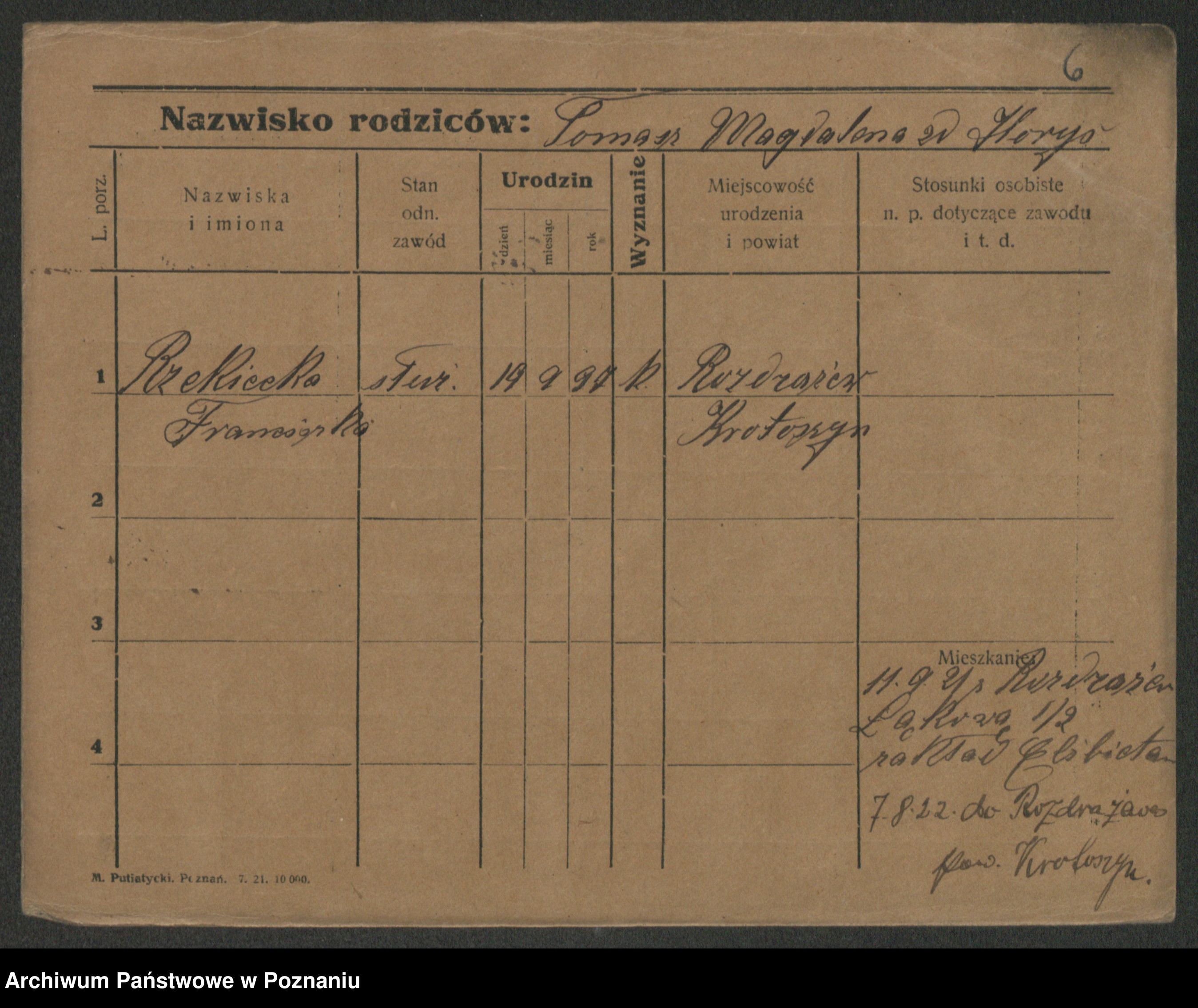 Rzekiecka, Franciszka