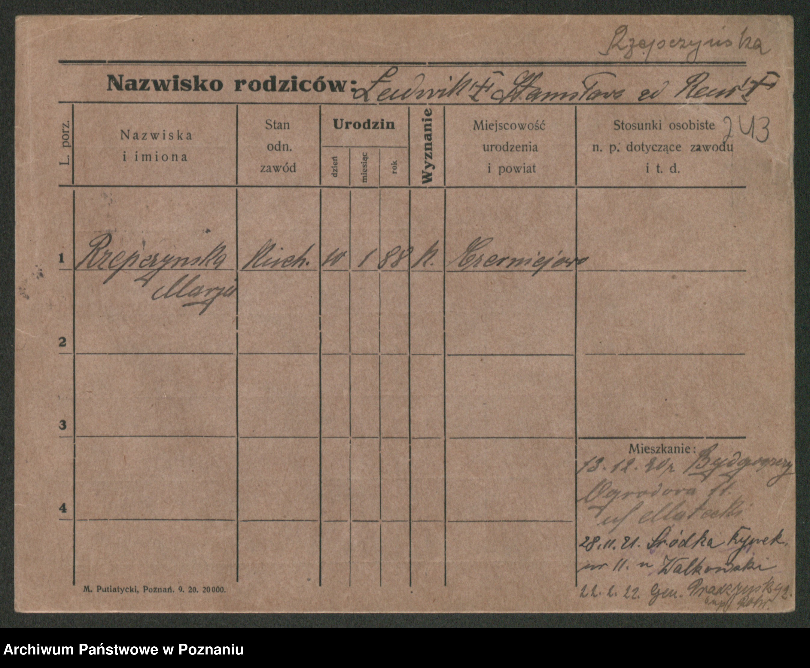 Rzemyszkiewicz z d. Bilska, Marja