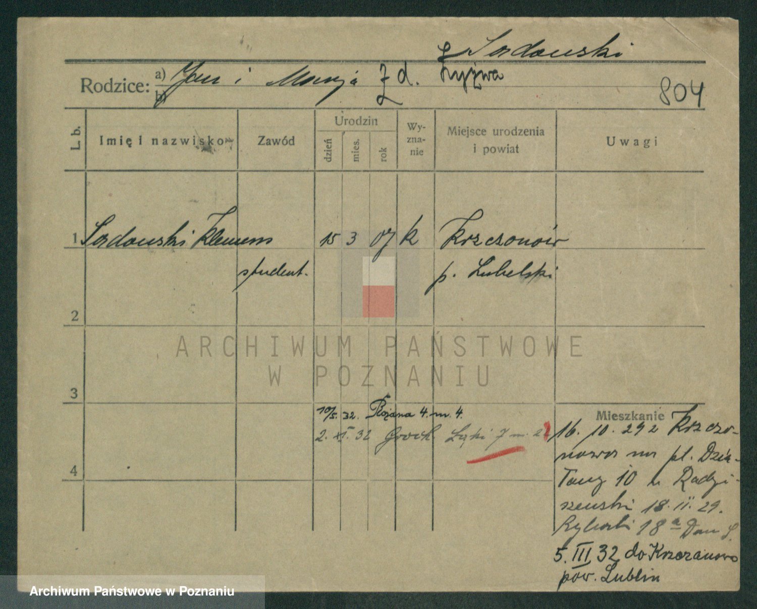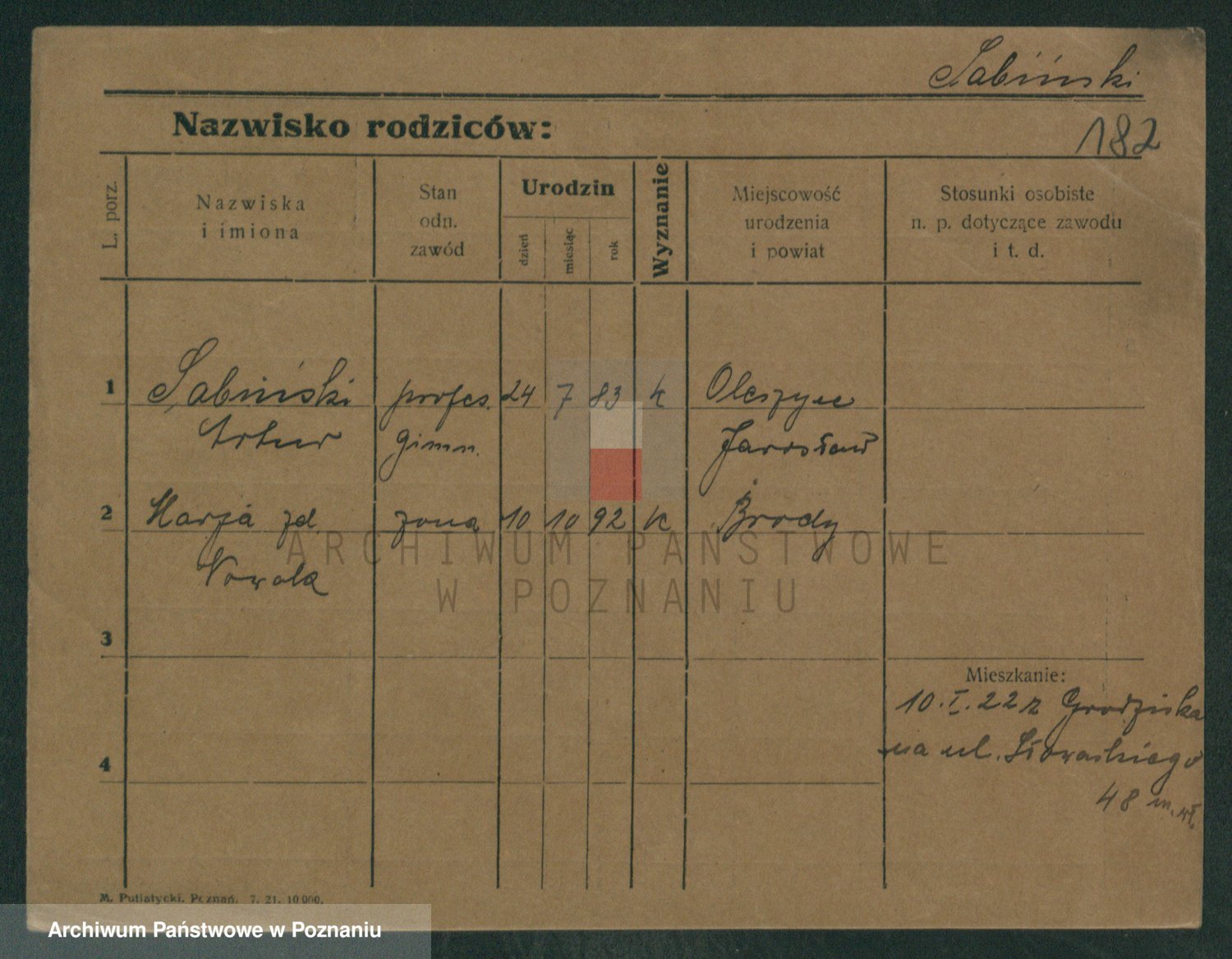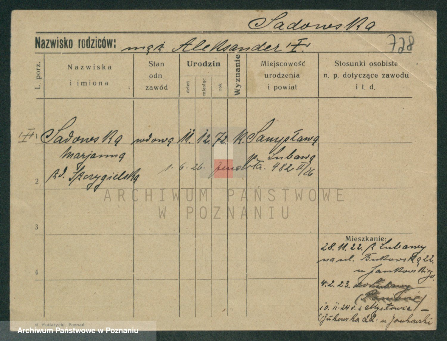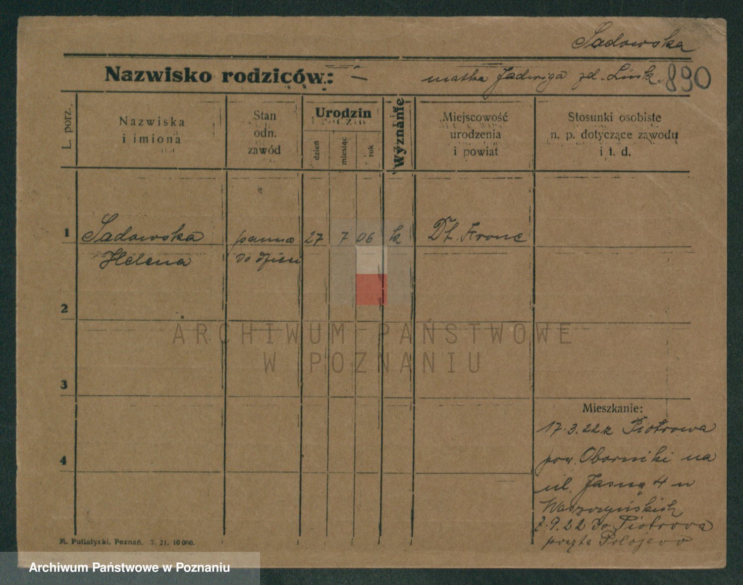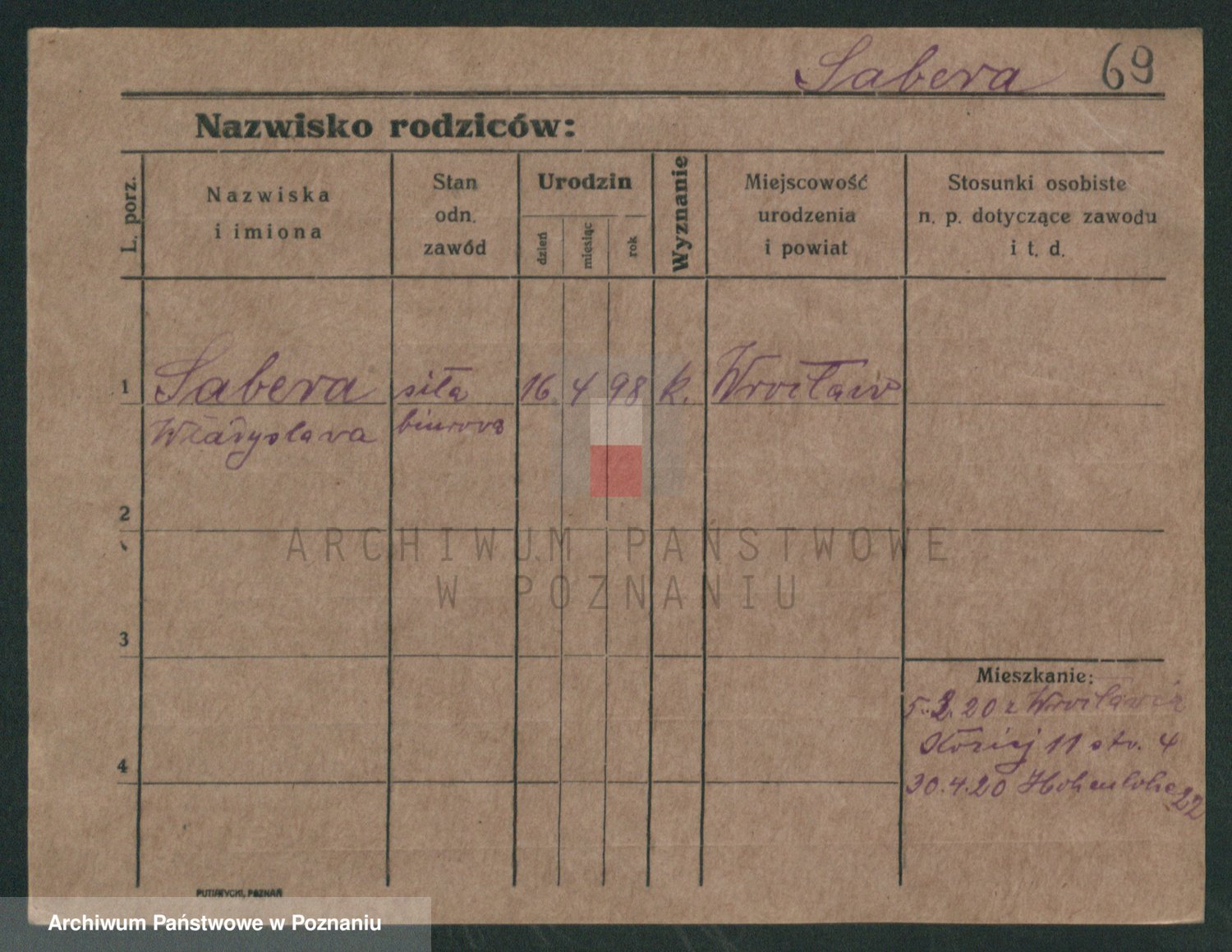 Podgląd karty osobowej dostępny jest po kliknięciu na nazwisko lub ikonkę karty. Można dokonywać powiększenia (ikony na górze) lub przechodzić między kolejnymi skanami (strzałki po bokach).