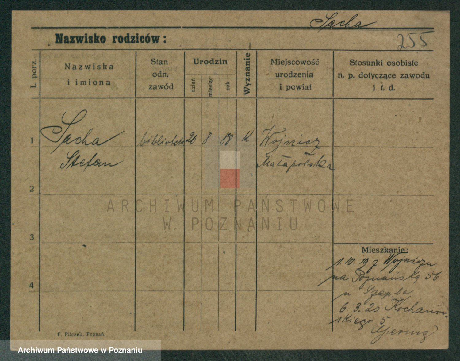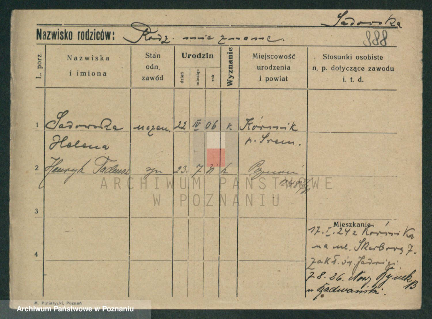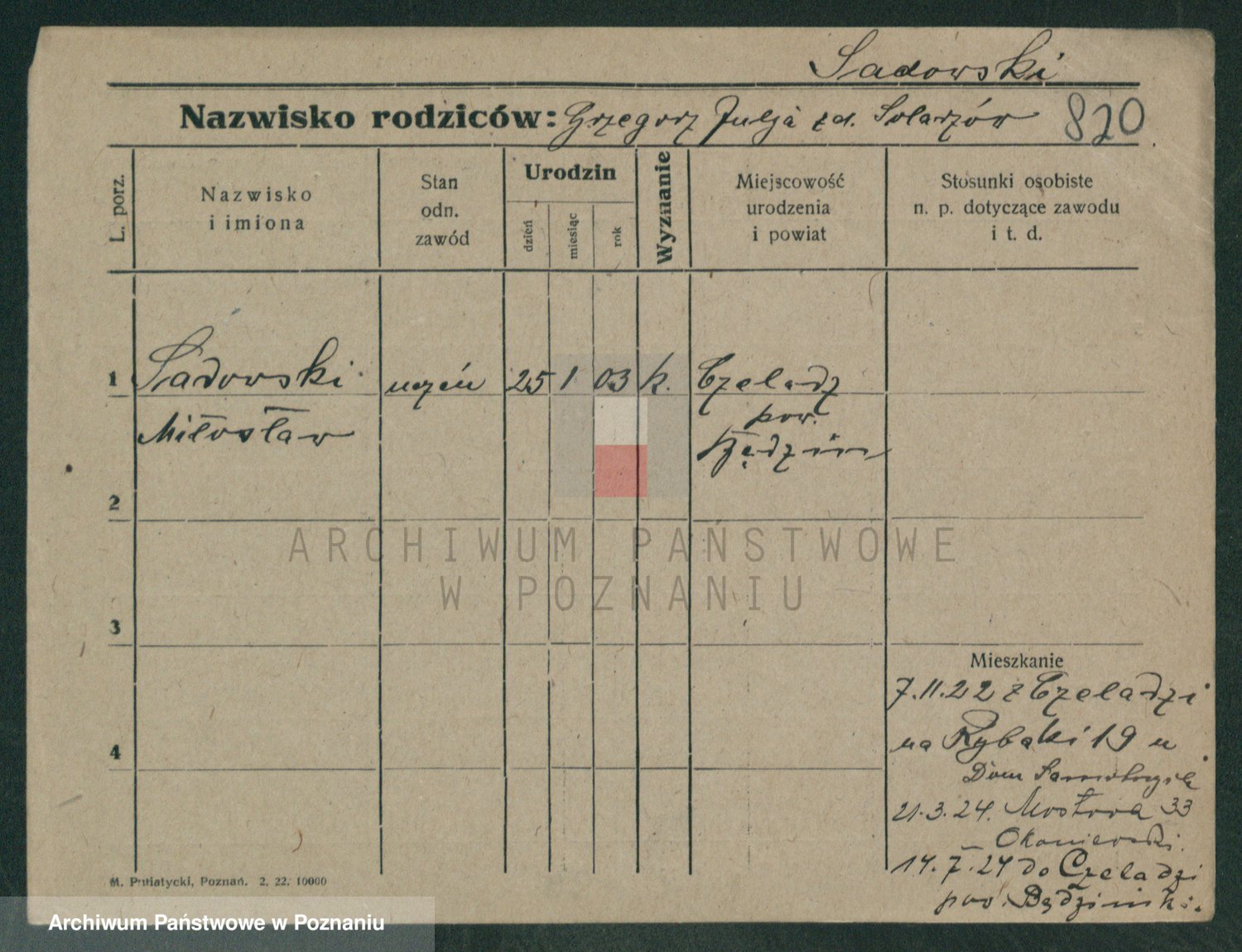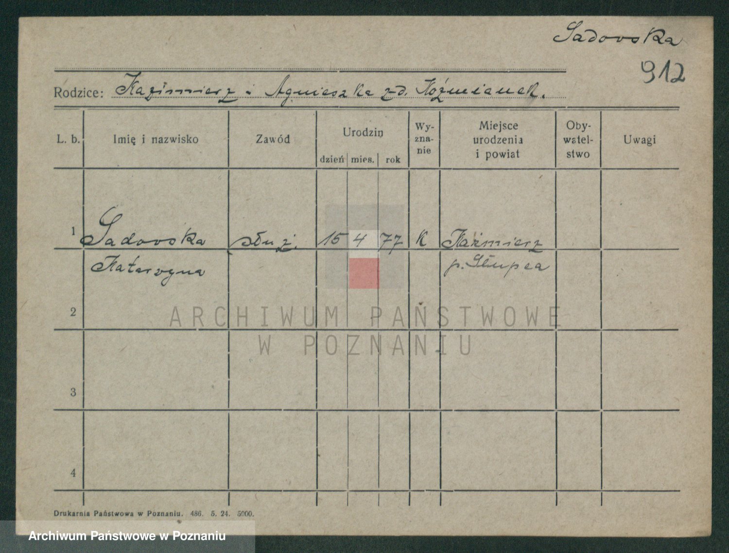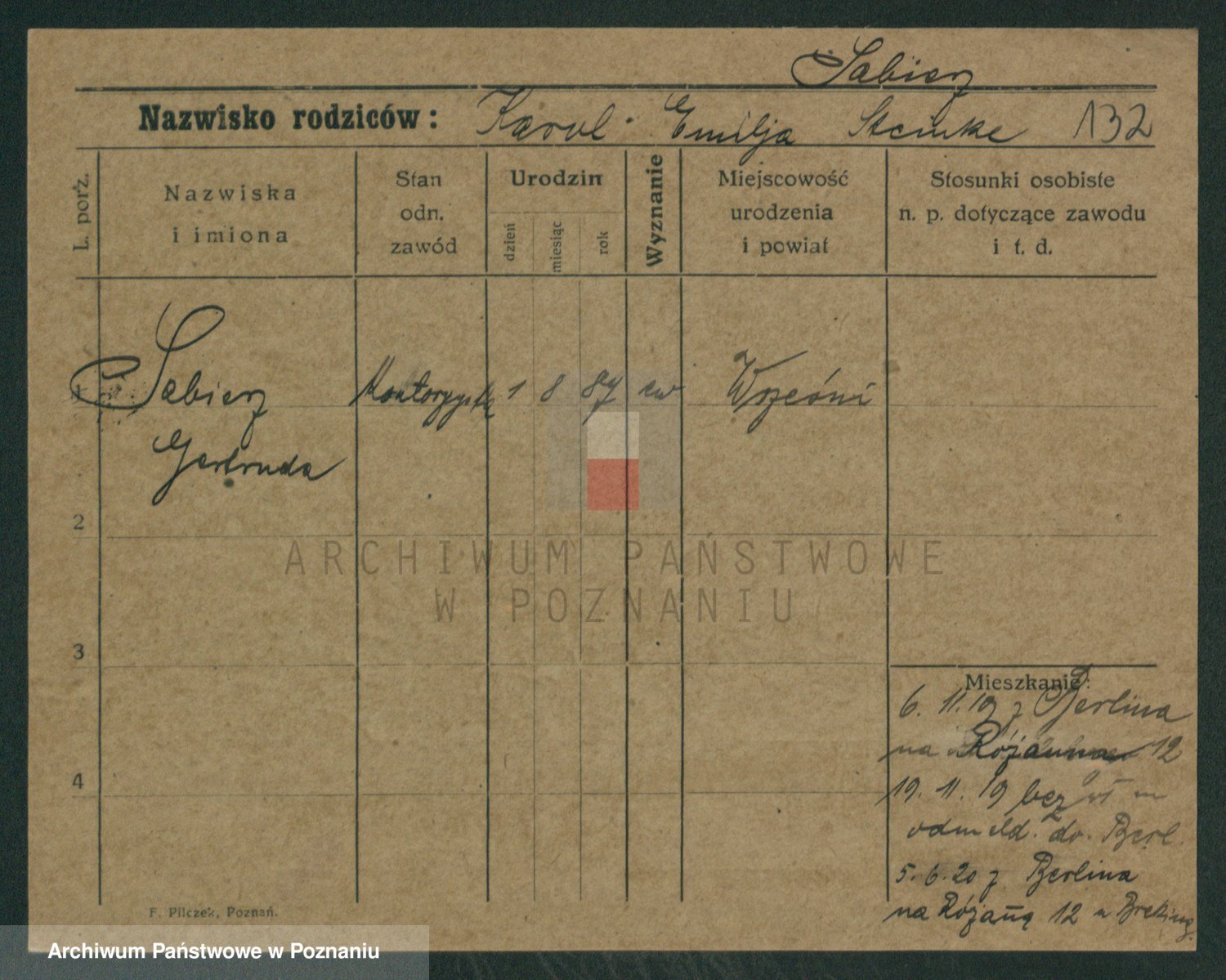 Podgląd karty osobowej dostępny jest po kliknięciu na nazwisko lub ikonkę karty. Można dokonywać powiększenia (ikony na górze) lub przechodzić między kolejnymi skanami (strzałki po bokach).