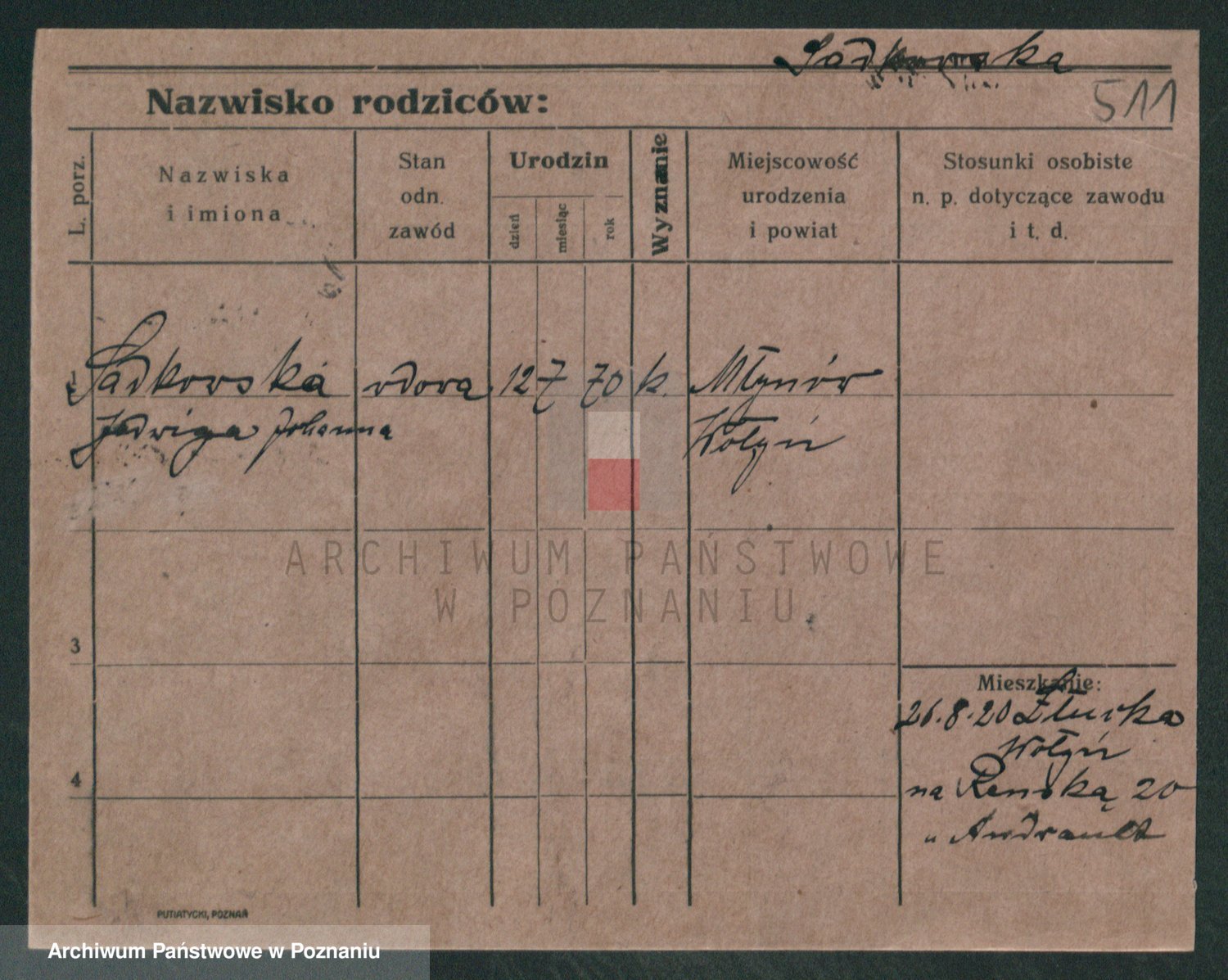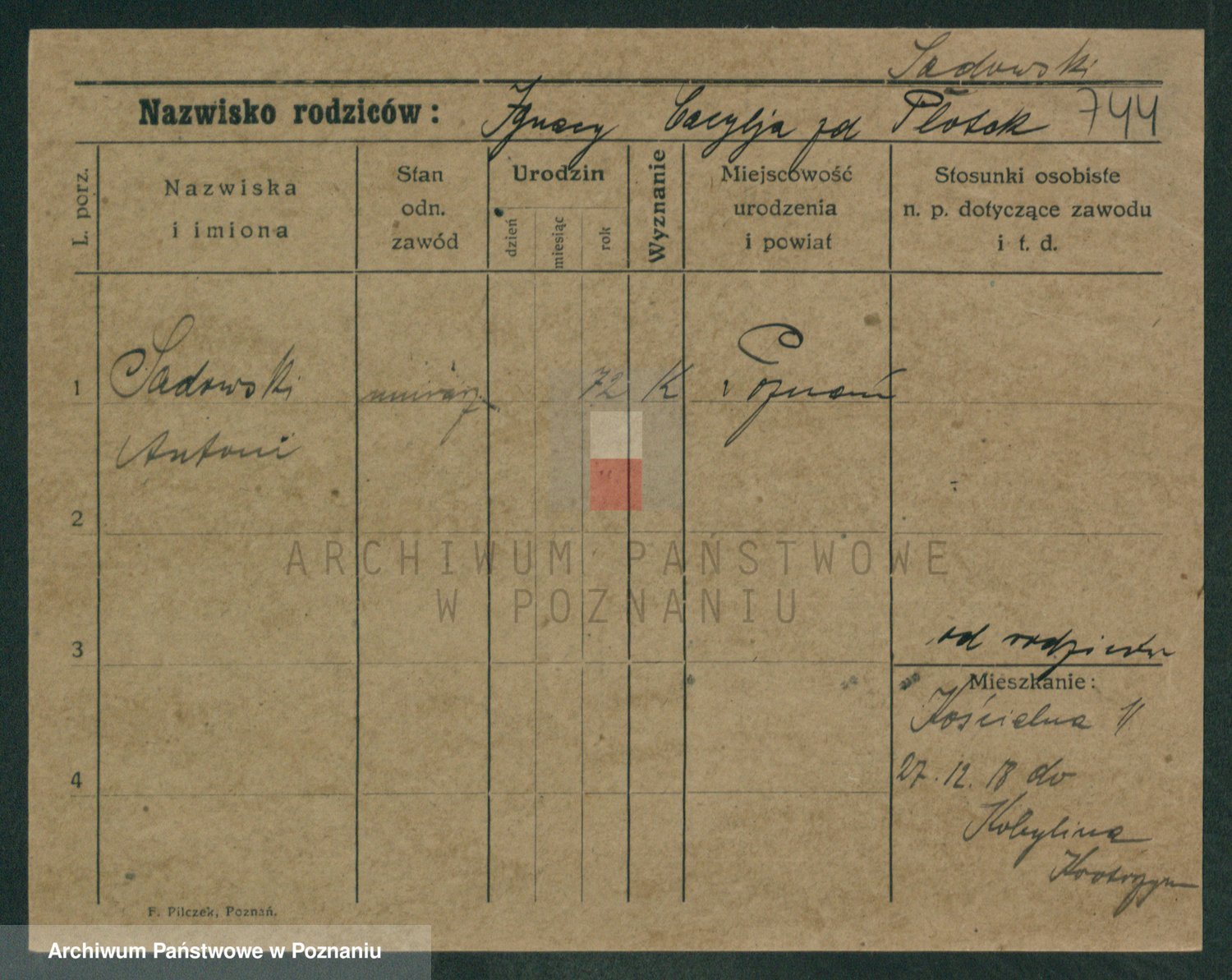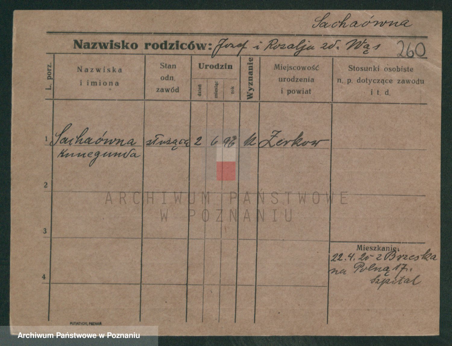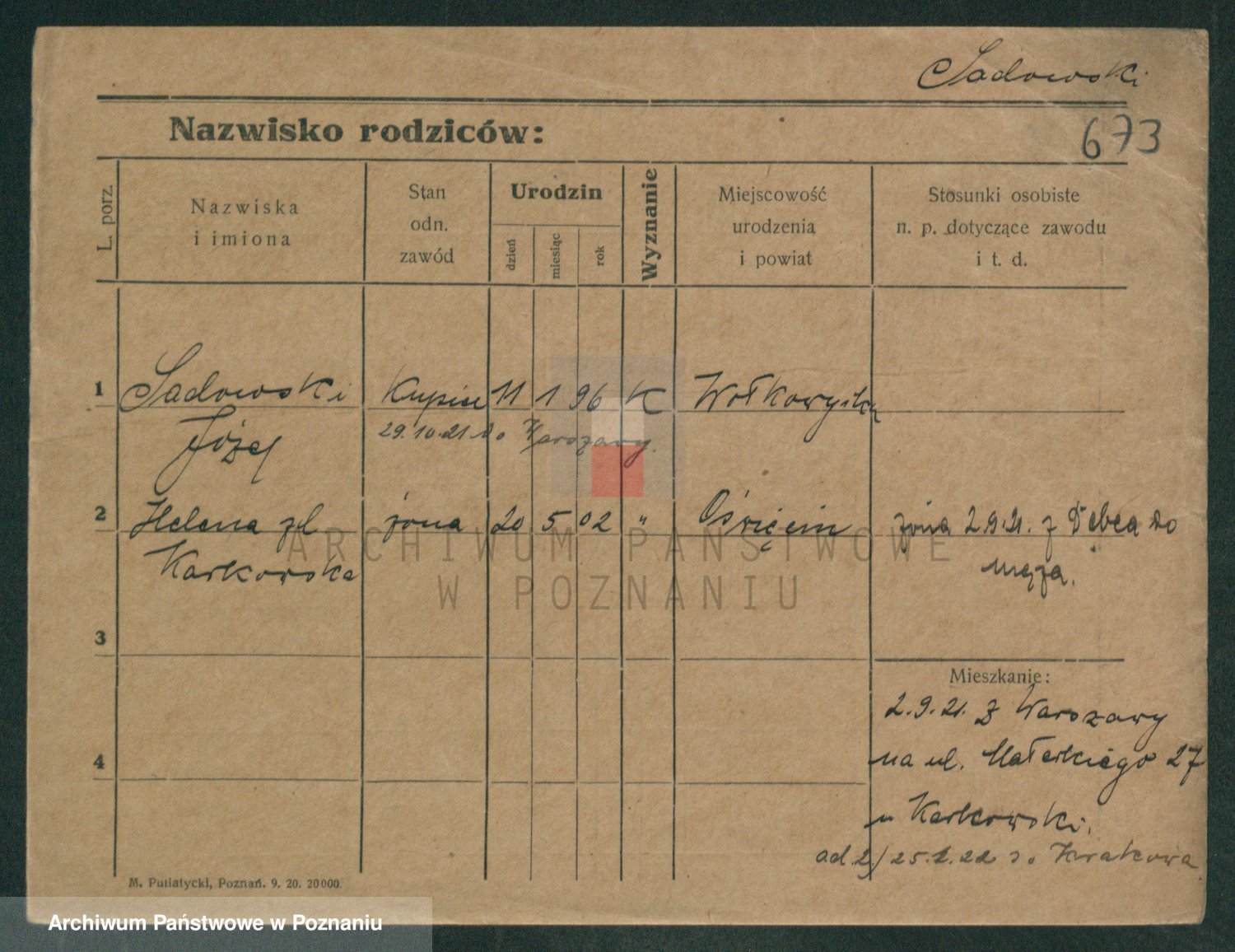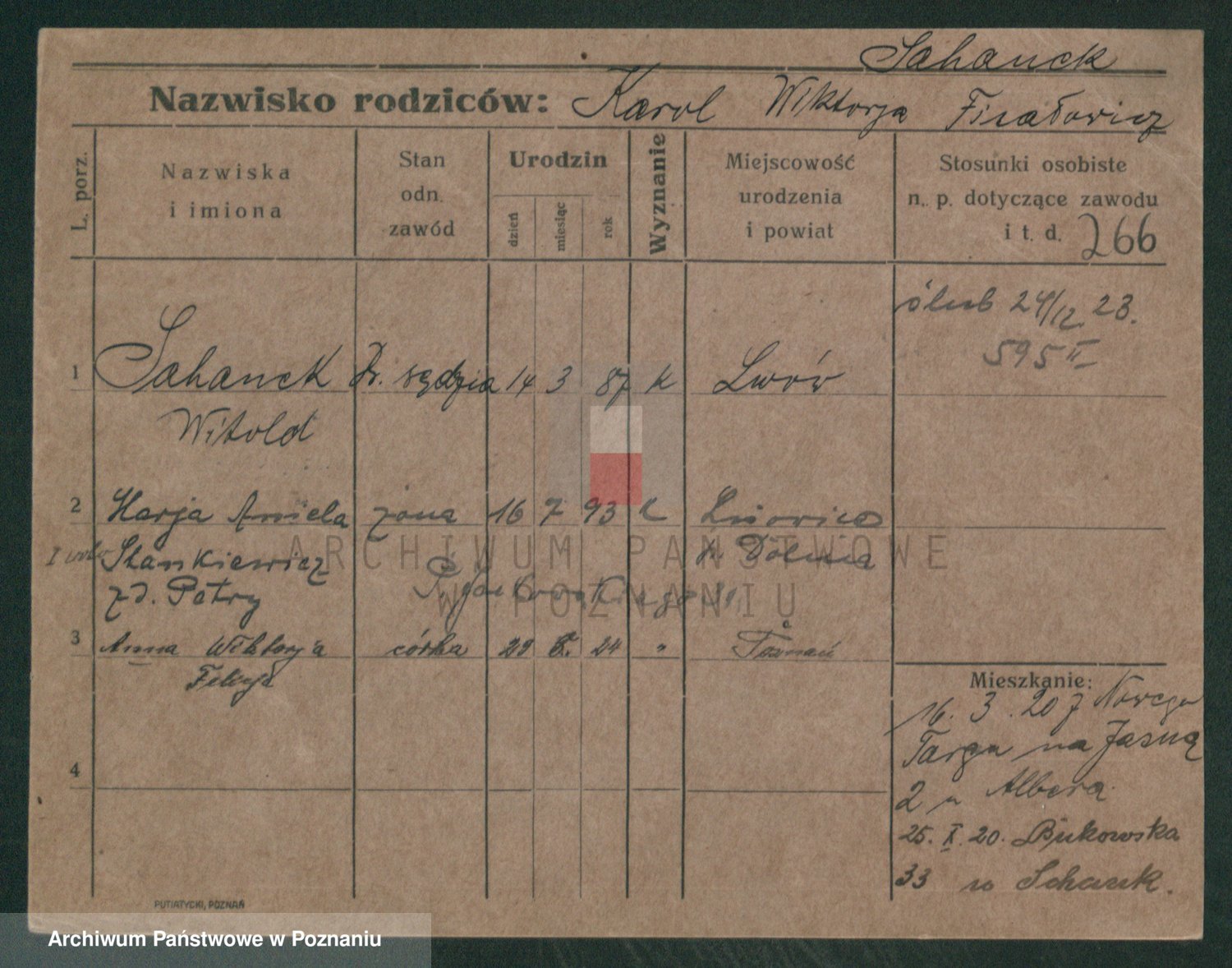 Podgląd karty osobowej dostępny jest po kliknięciu na nazwisko lub ikonkę karty. Można dokonywać powiększenia (ikony na górze) lub przechodzić między kolejnymi skanami (strzałki po bokach).