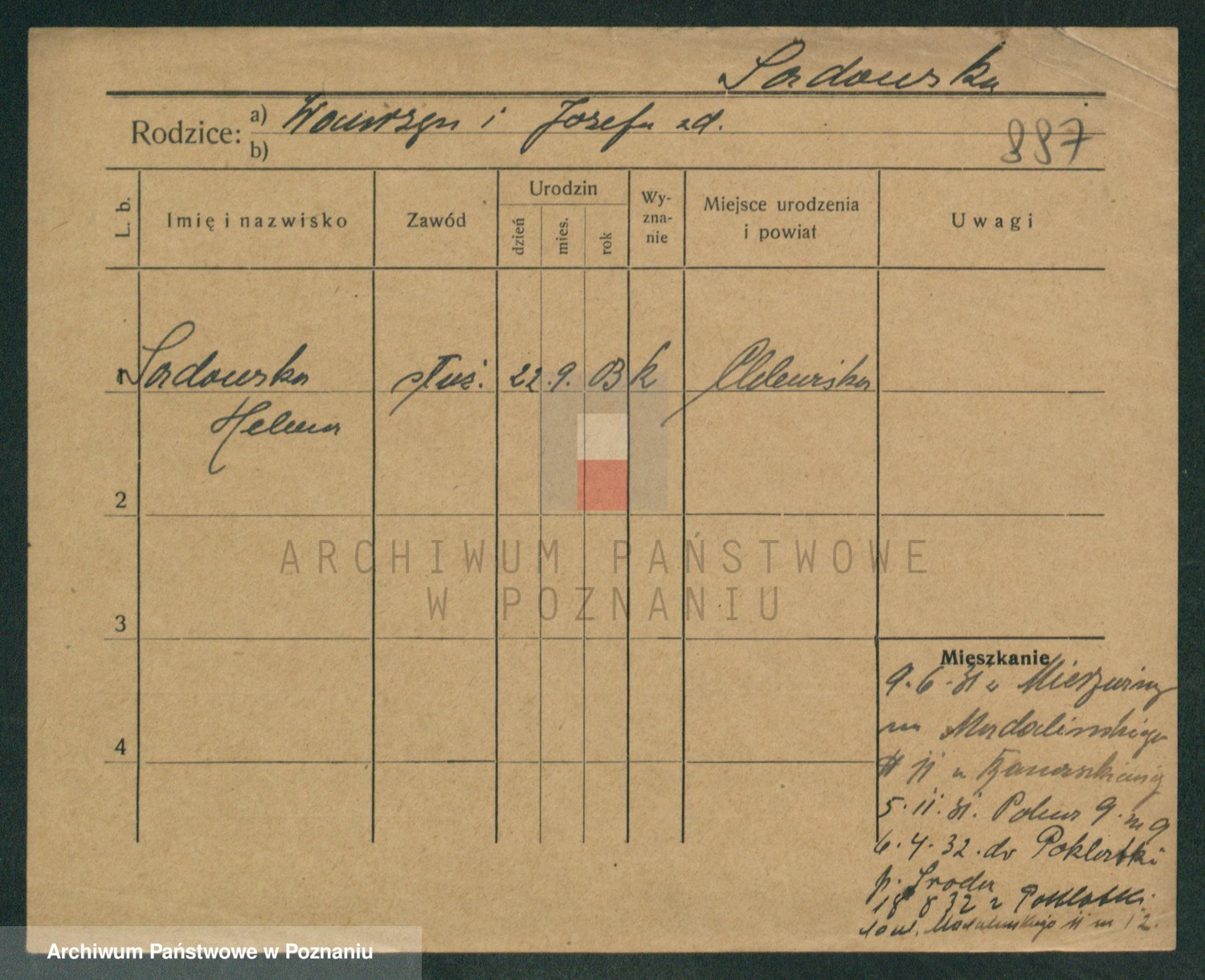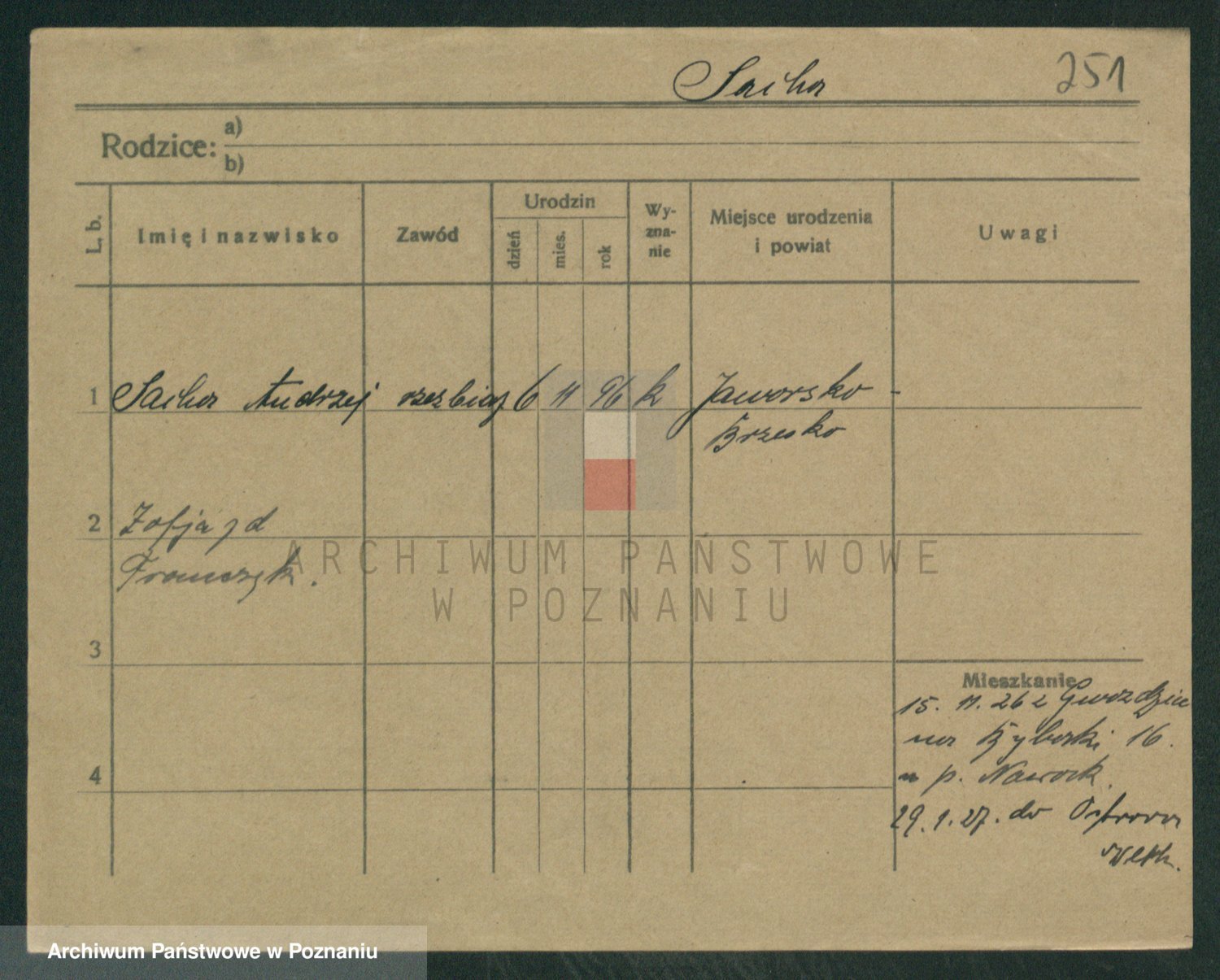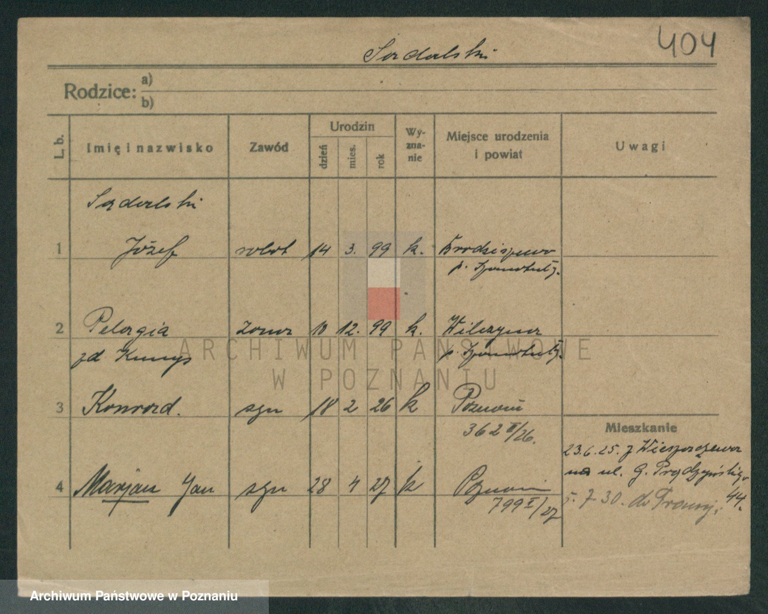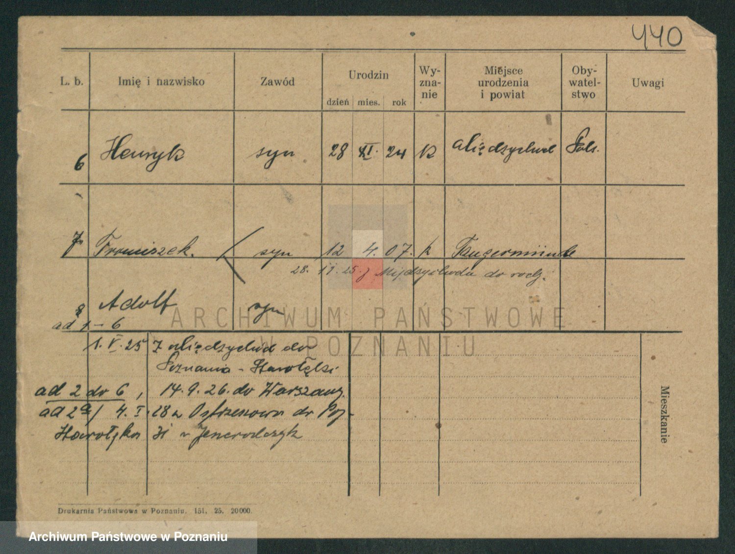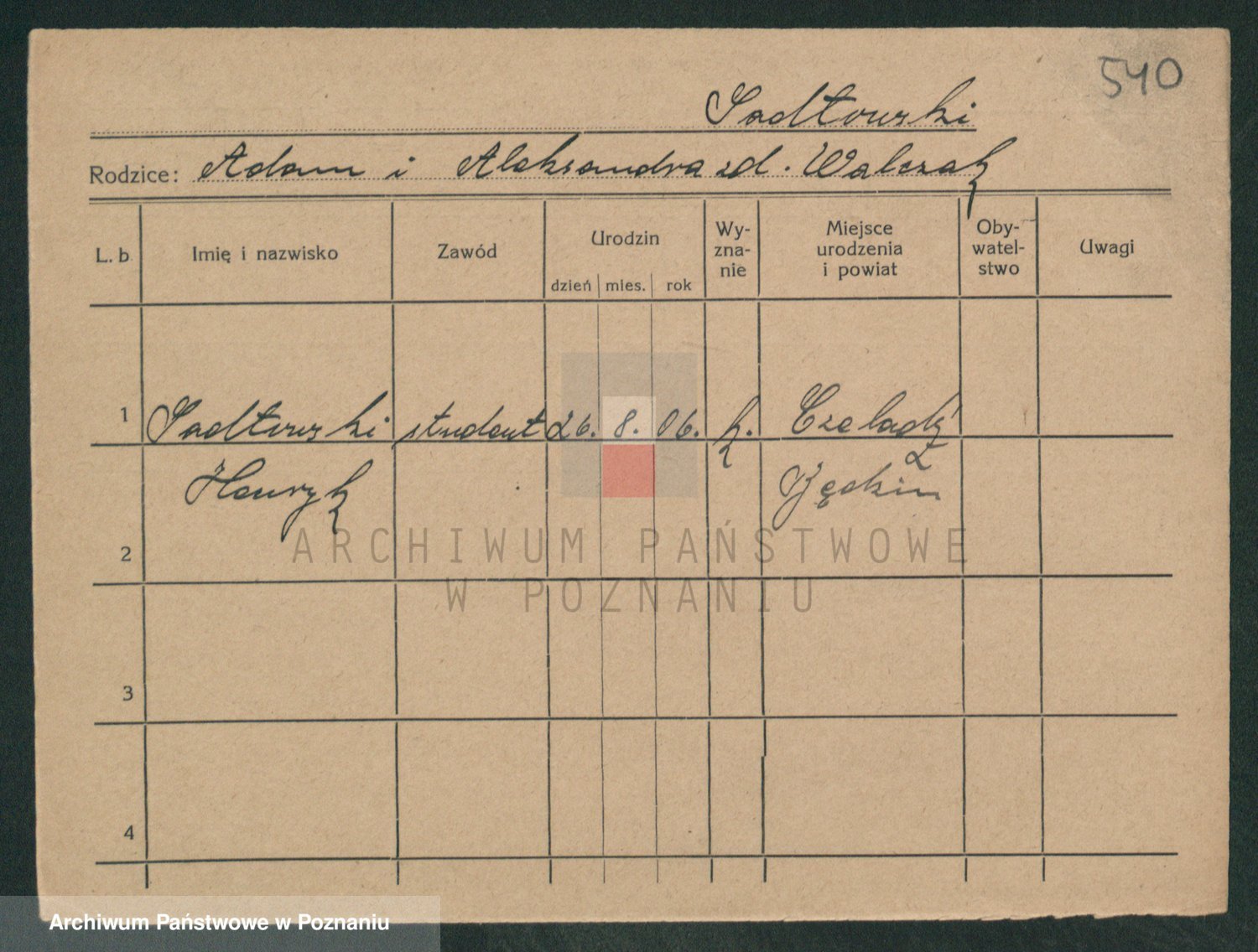 Podgląd karty osobowej dostępny jest po kliknięciu na nazwisko lub ikonkę karty. Można dokonywać powiększenia (ikony na górze) lub przechodzić między kolejnymi skanami (strzałki po bokach).