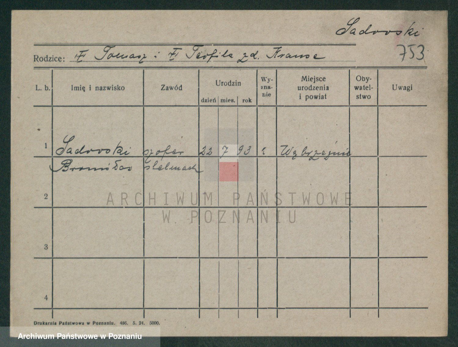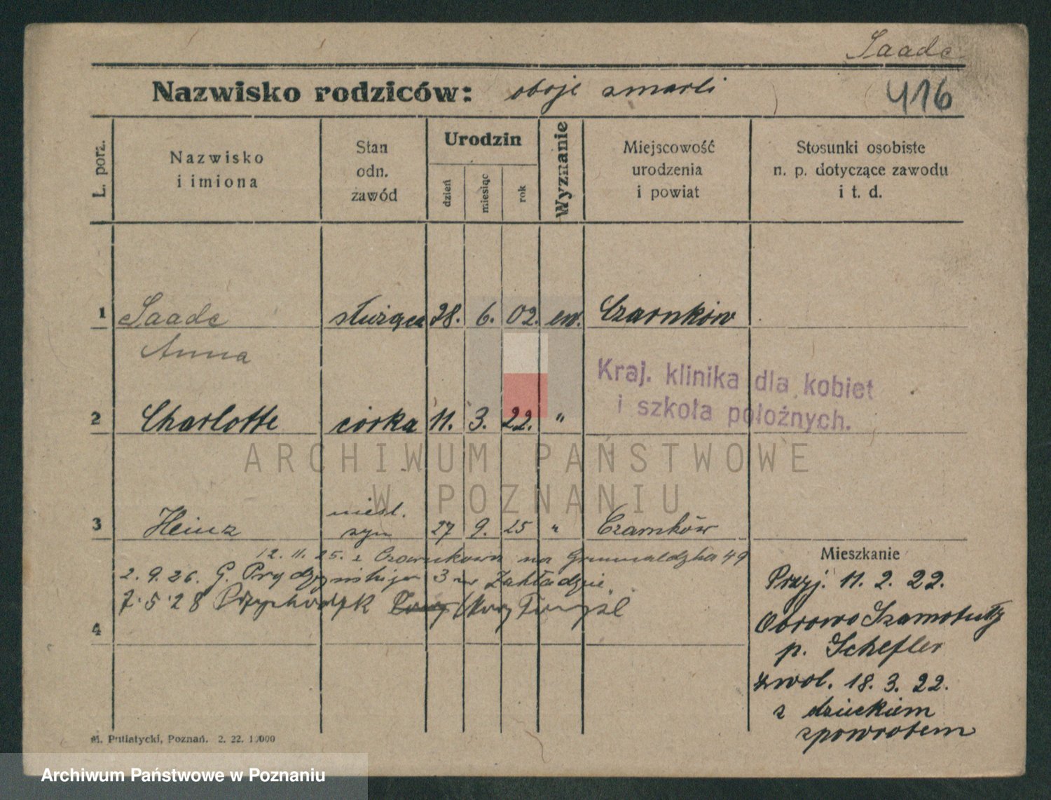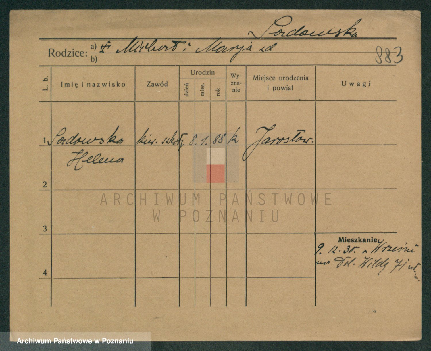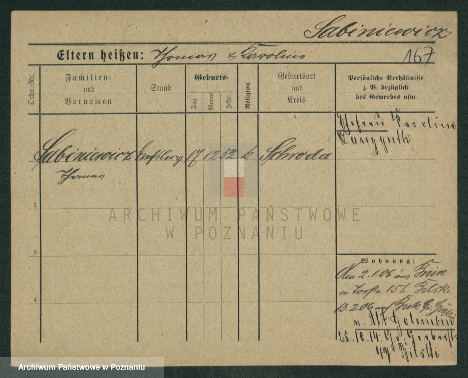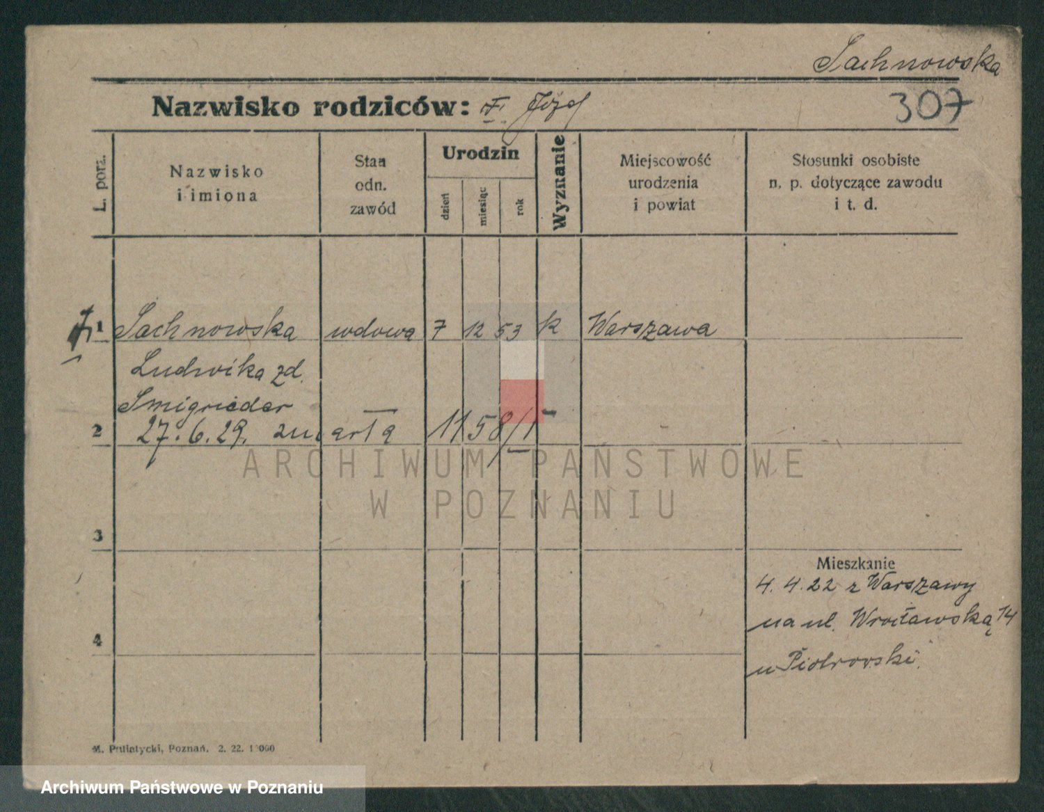Podgląd karty osobowej dostępny jest po kliknięciu na nazwisko lub ikonkę karty. Można dokonywać powiększenia (ikony na górze) lub przechodzić między kolejnymi skanami (strzałki po bokach).