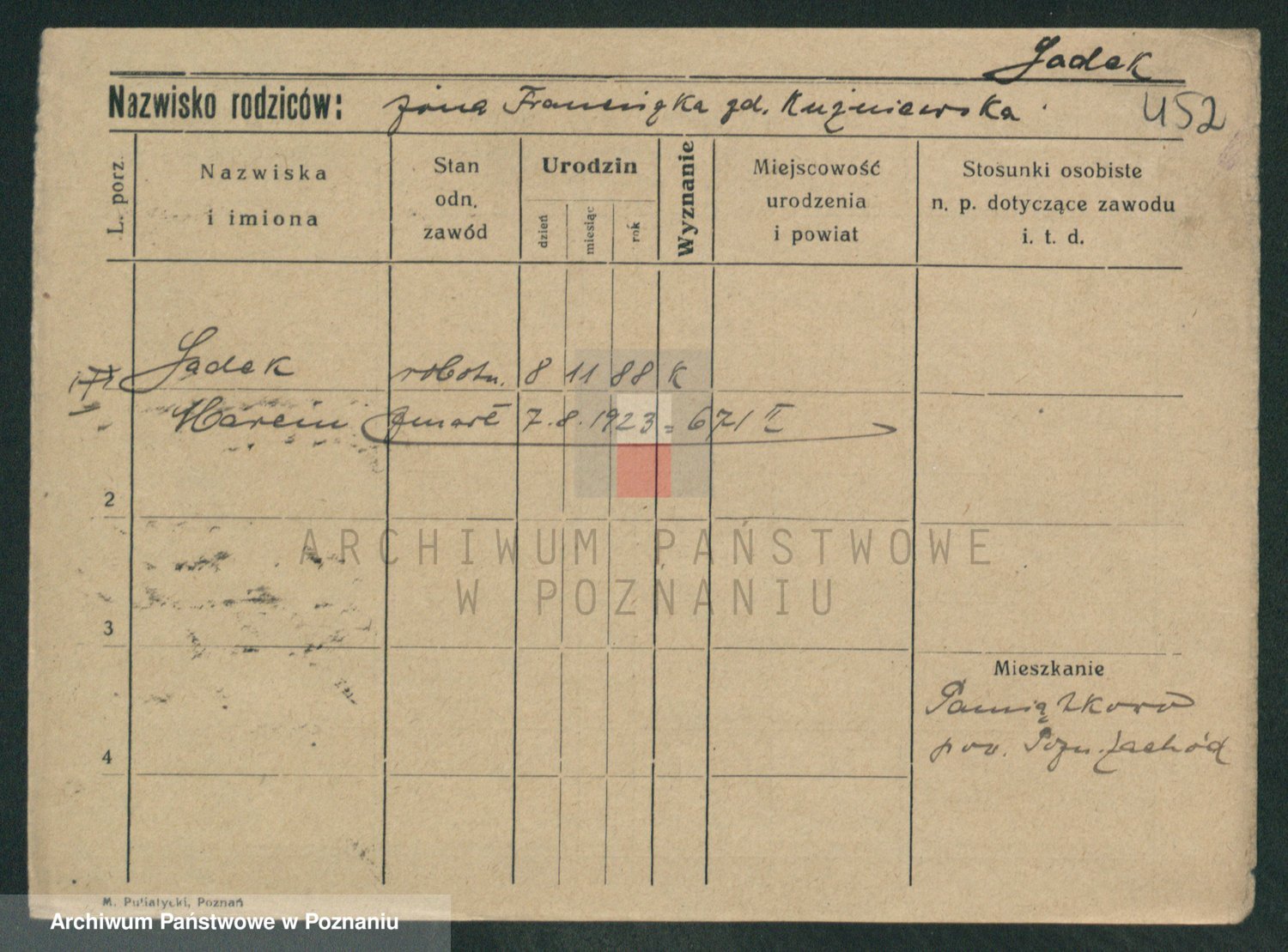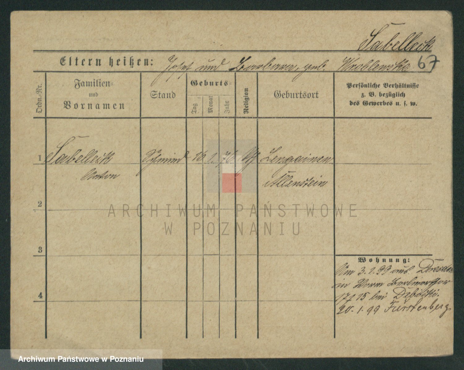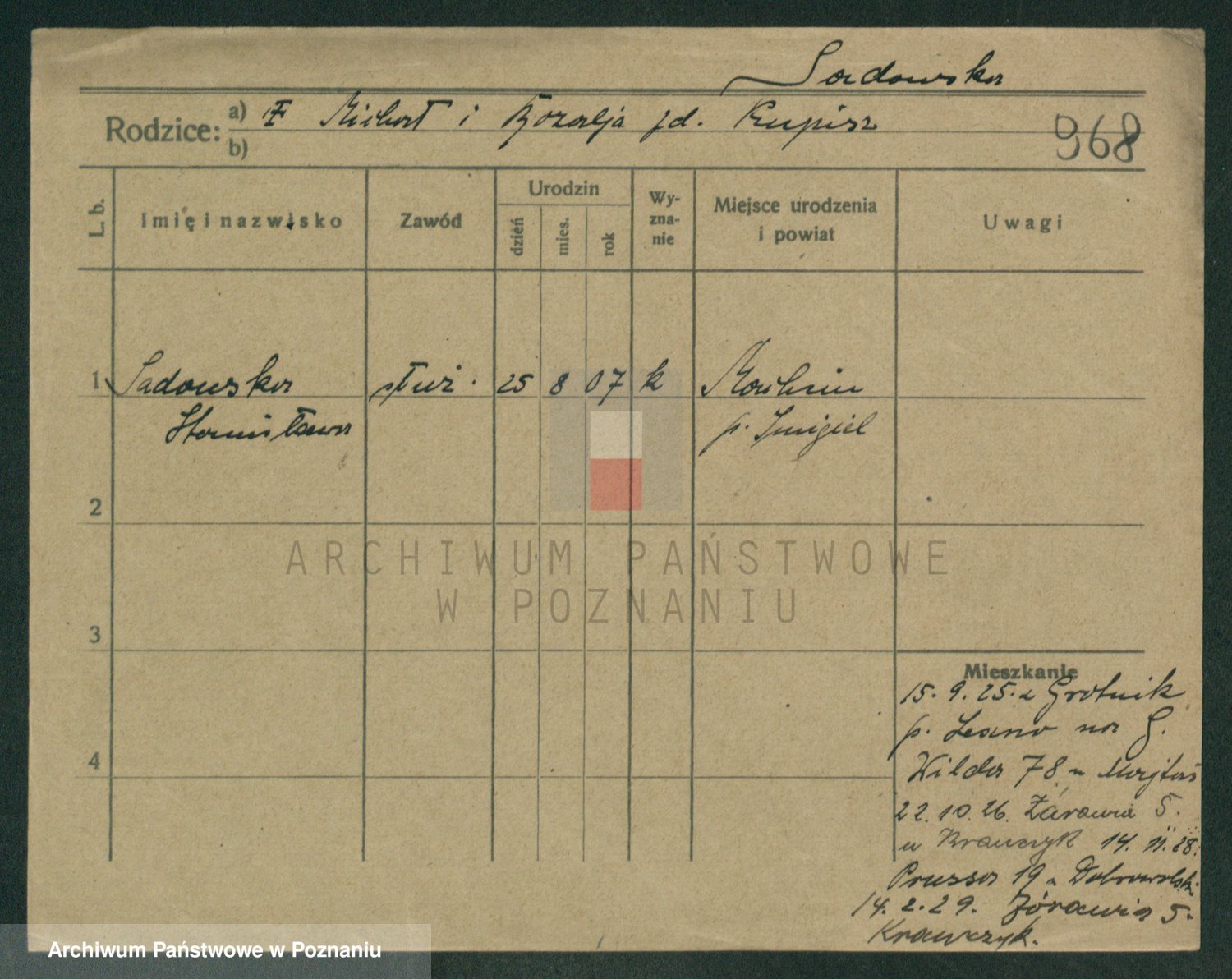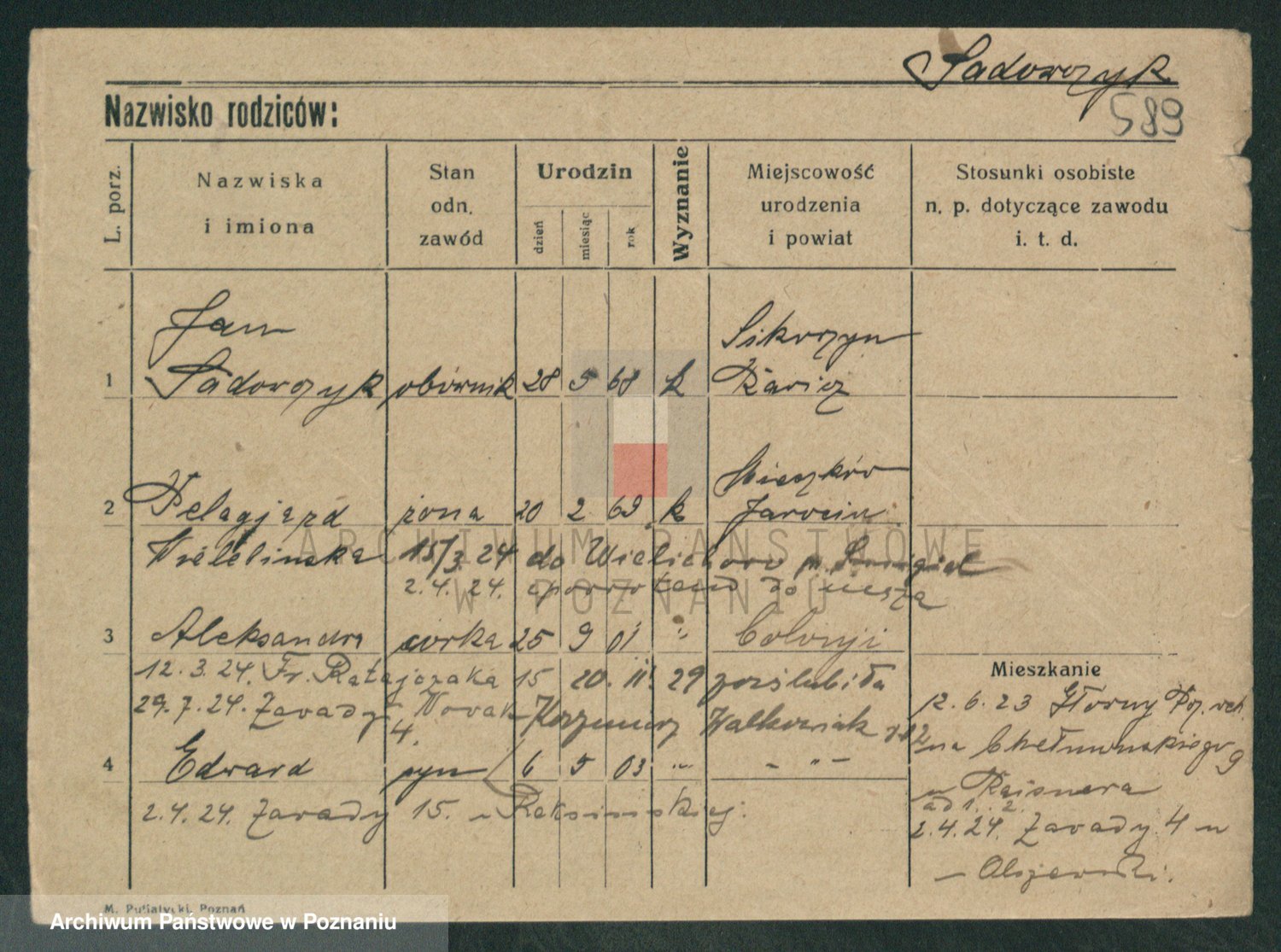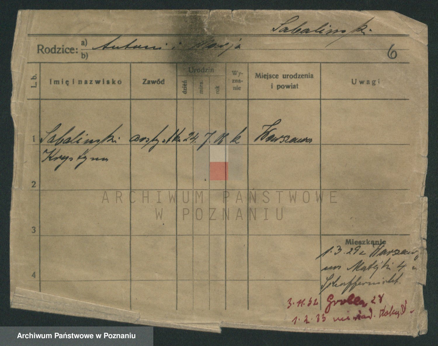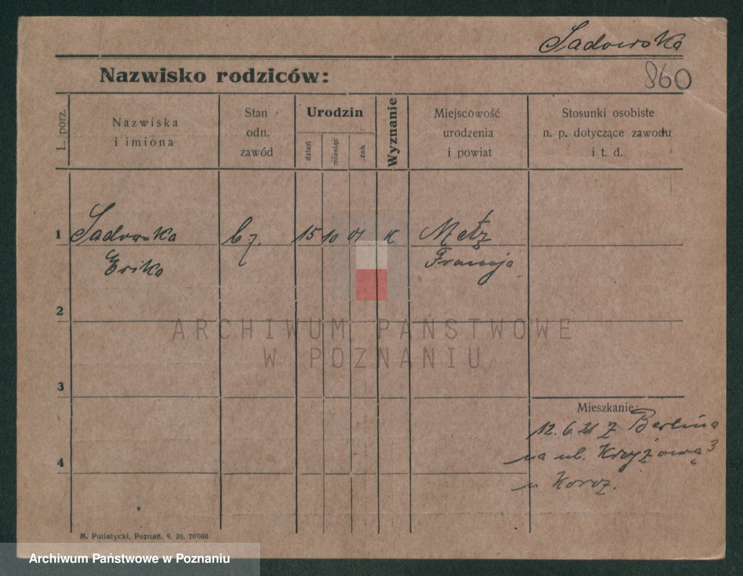 Podgląd karty osobowej dostępny jest po kliknięciu na nazwisko lub ikonkę karty. Można dokonywać powiększenia (ikony na górze) lub przechodzić między kolejnymi skanami (strzałki po bokach).