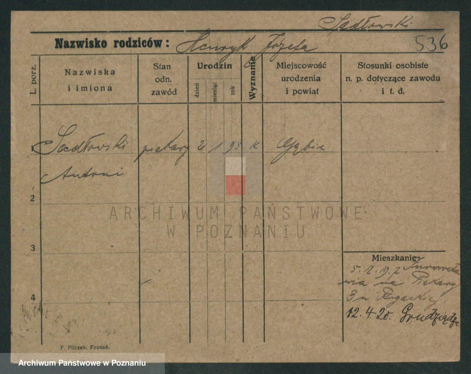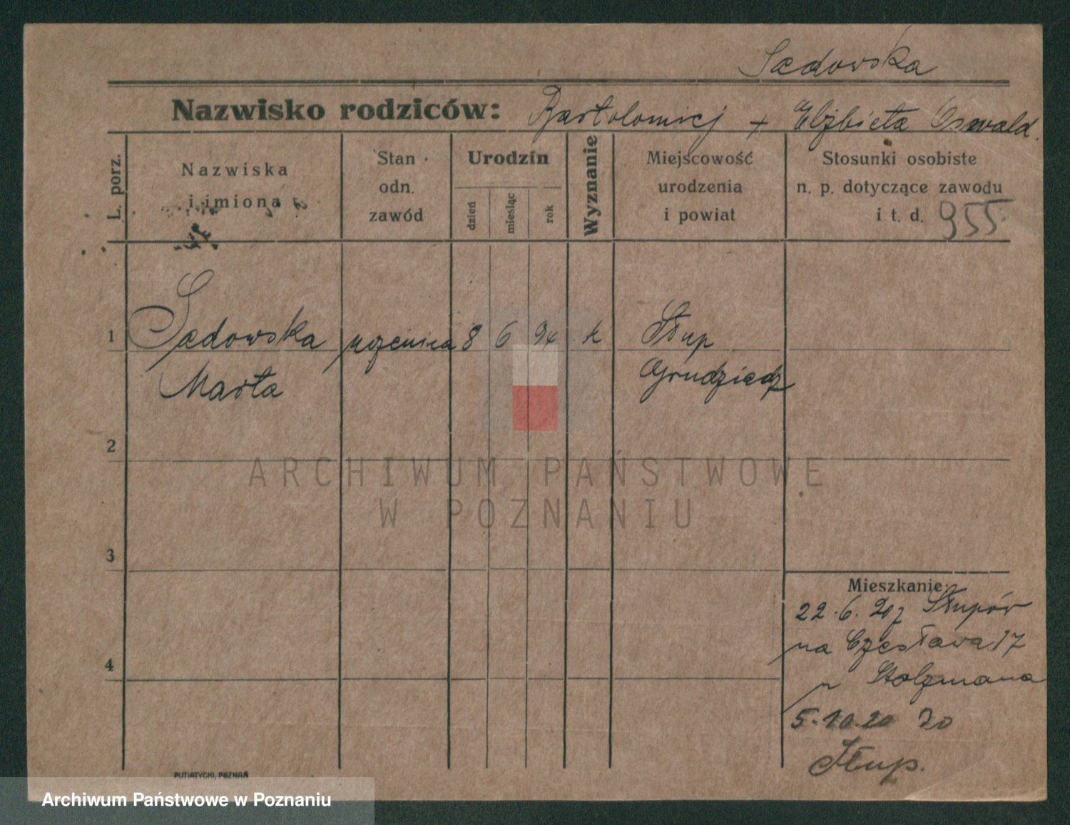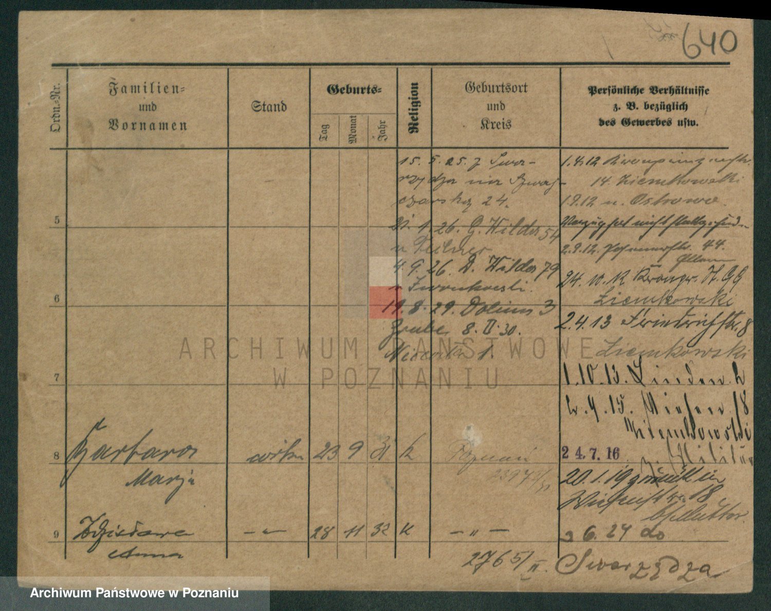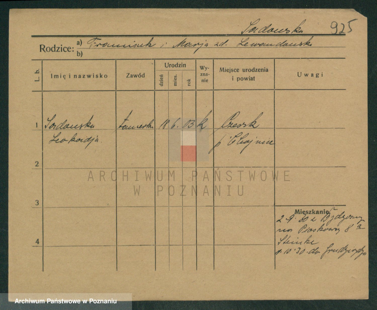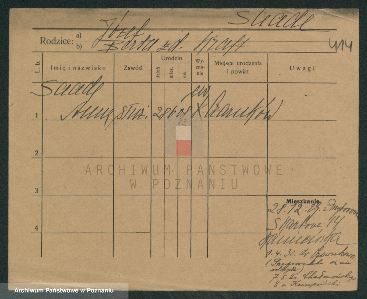 Podgląd karty osobowej dostępny jest po kliknięciu na nazwisko lub ikonkę karty. Można dokonywać powiększenia (ikony na górze) lub przechodzić między kolejnymi skanami (strzałki po bokach).