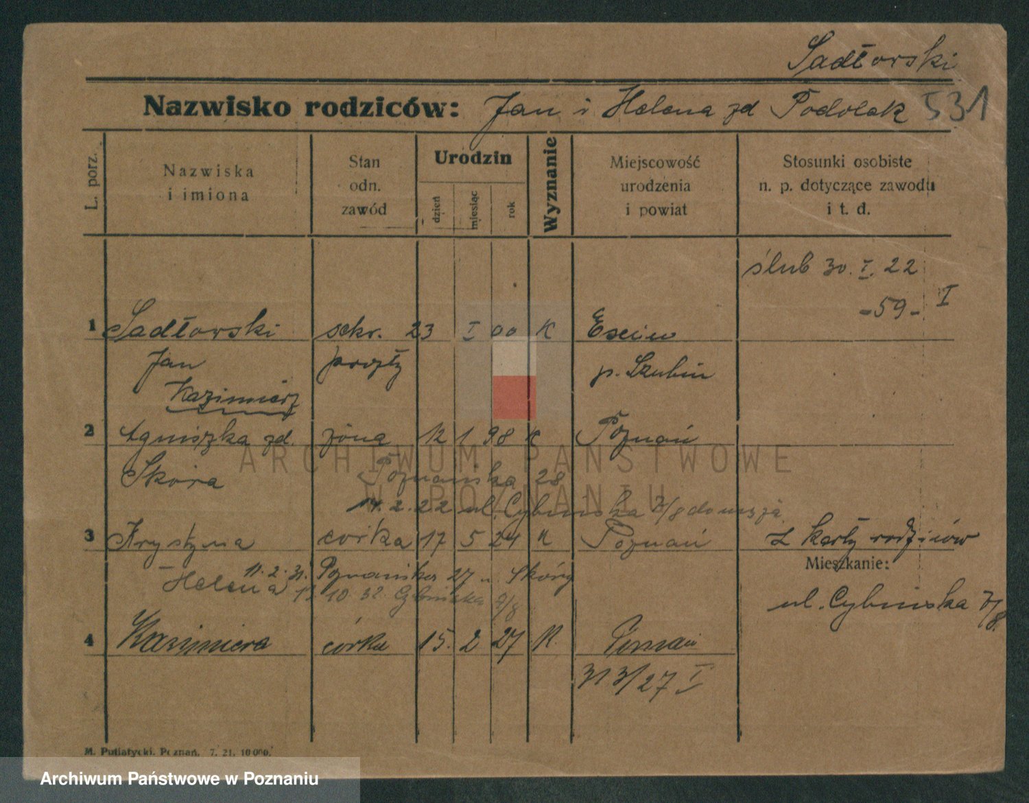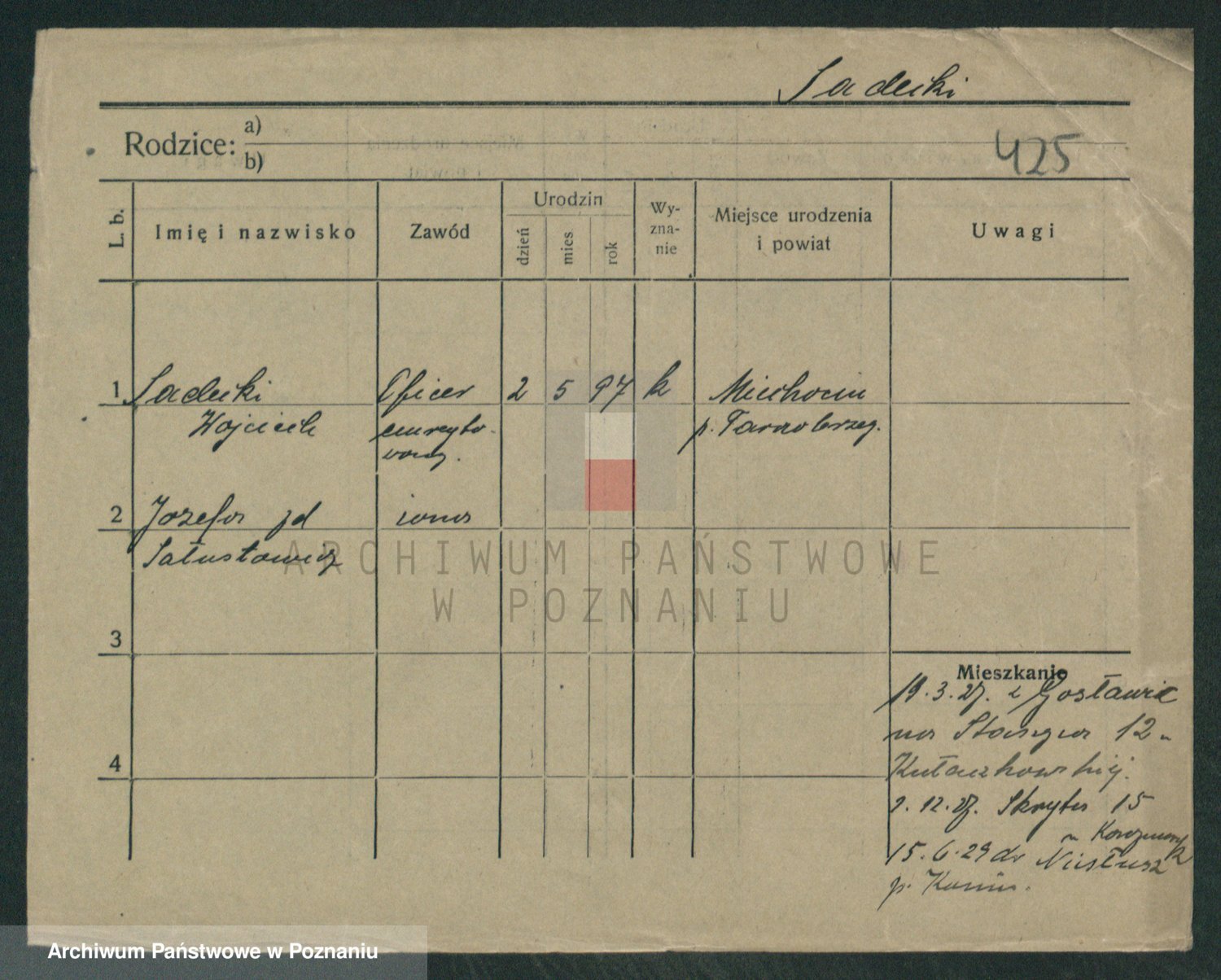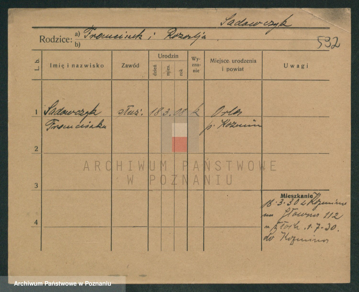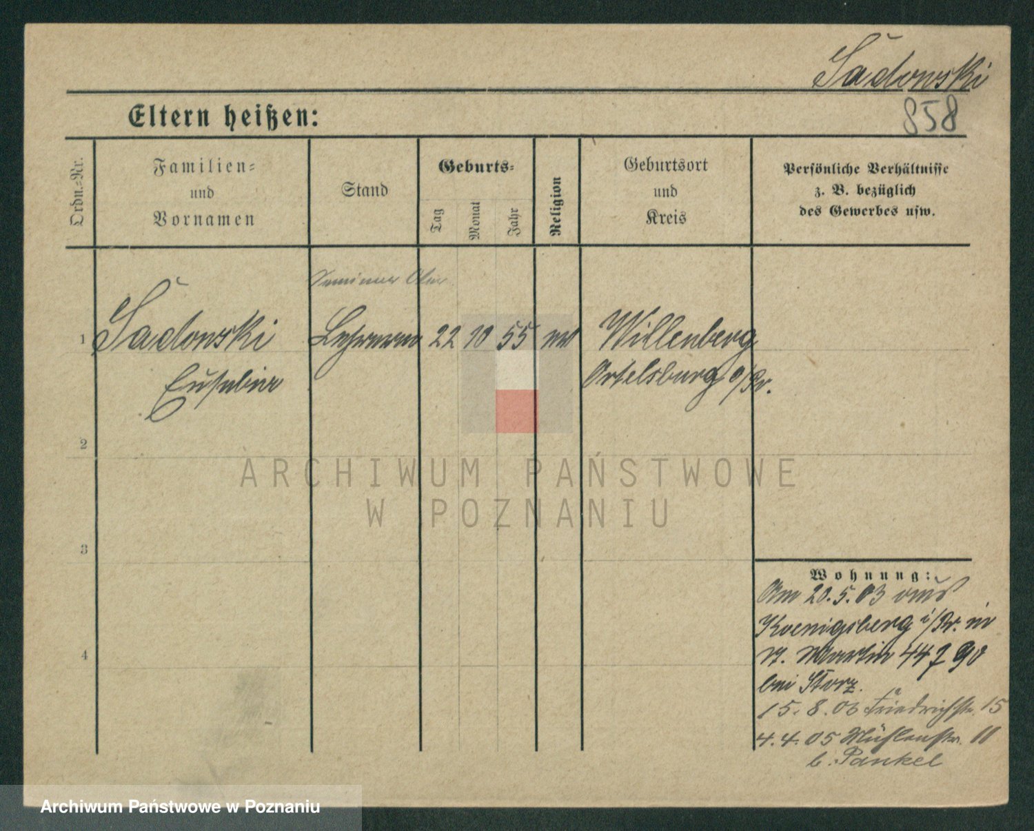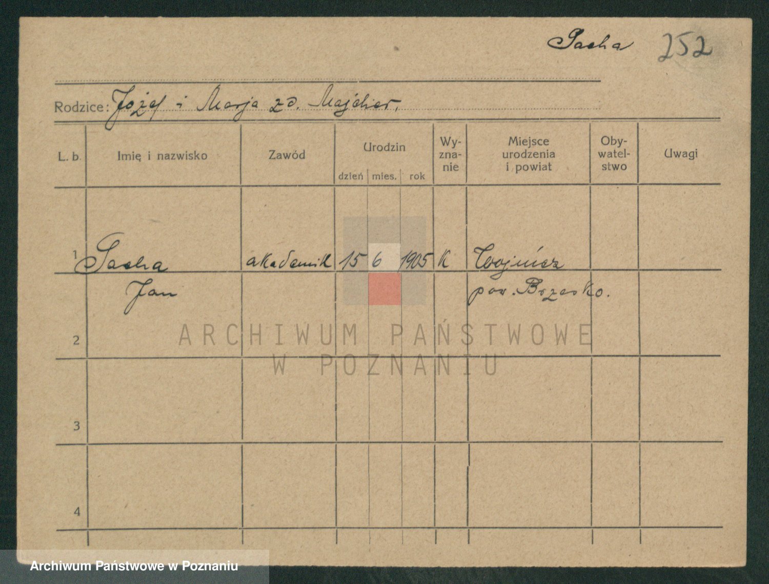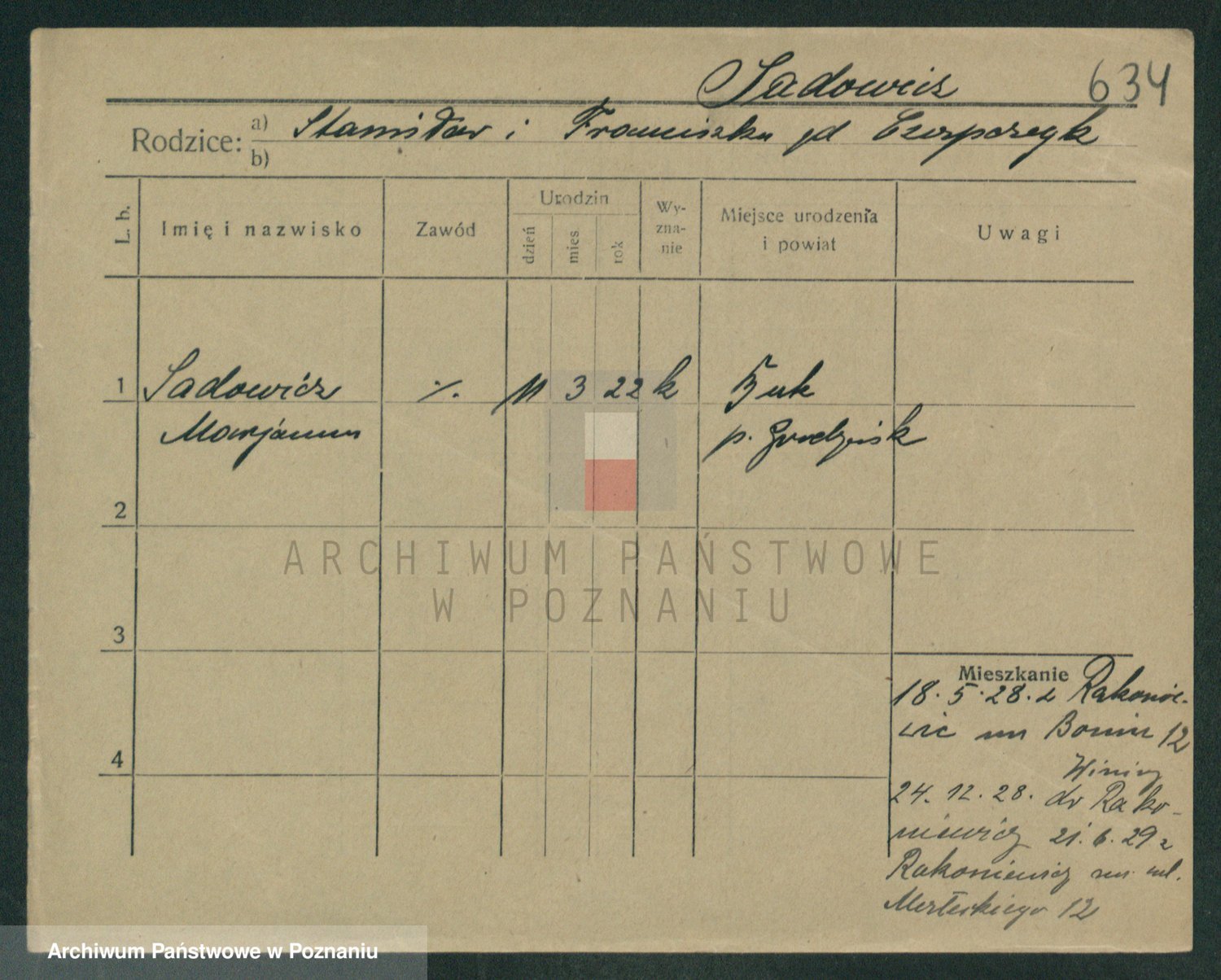 Podgląd karty osobowej dostępny jest po kliknięciu na nazwisko lub ikonkę karty. Można dokonywać powiększenia (ikony na górze) lub przechodzić między kolejnymi skanami (strzałki po bokach).