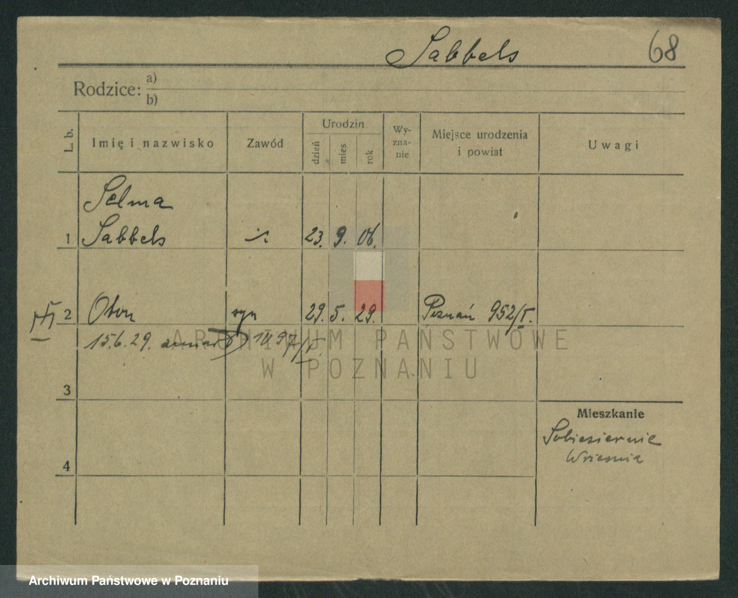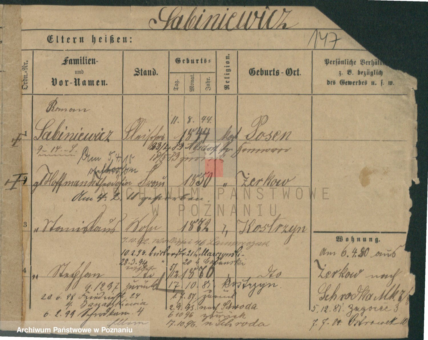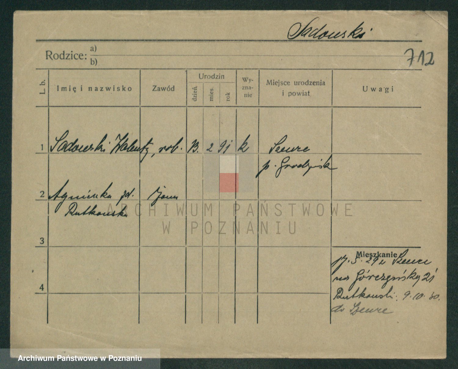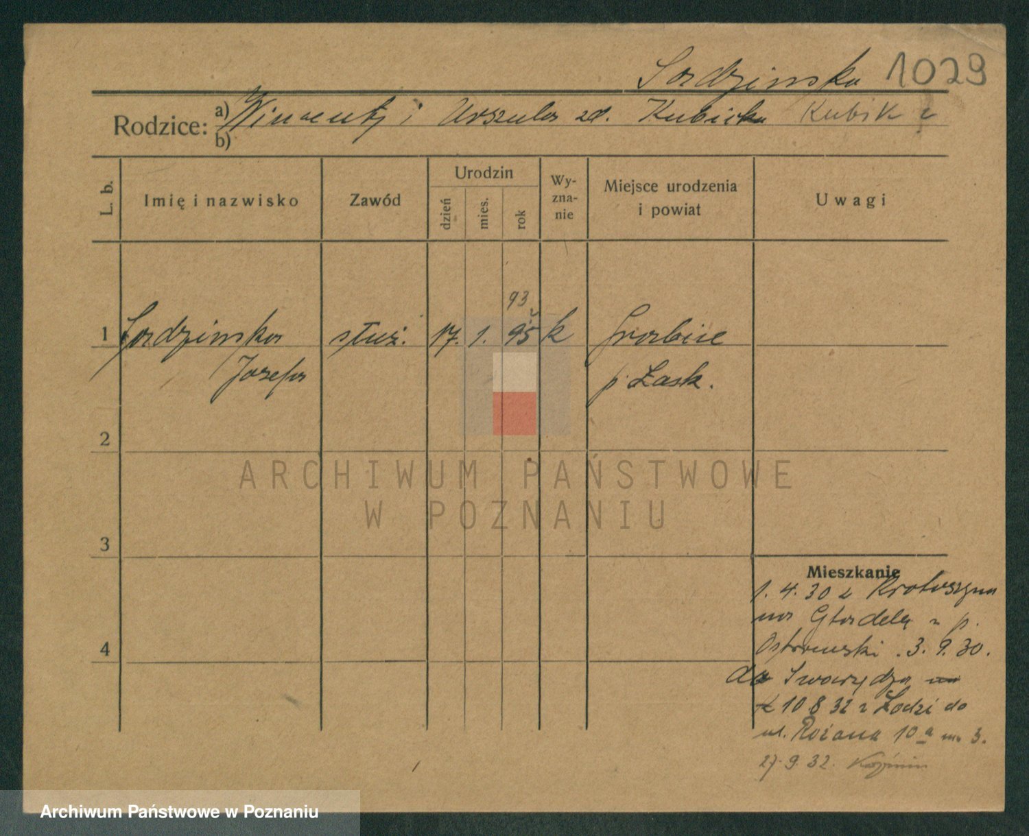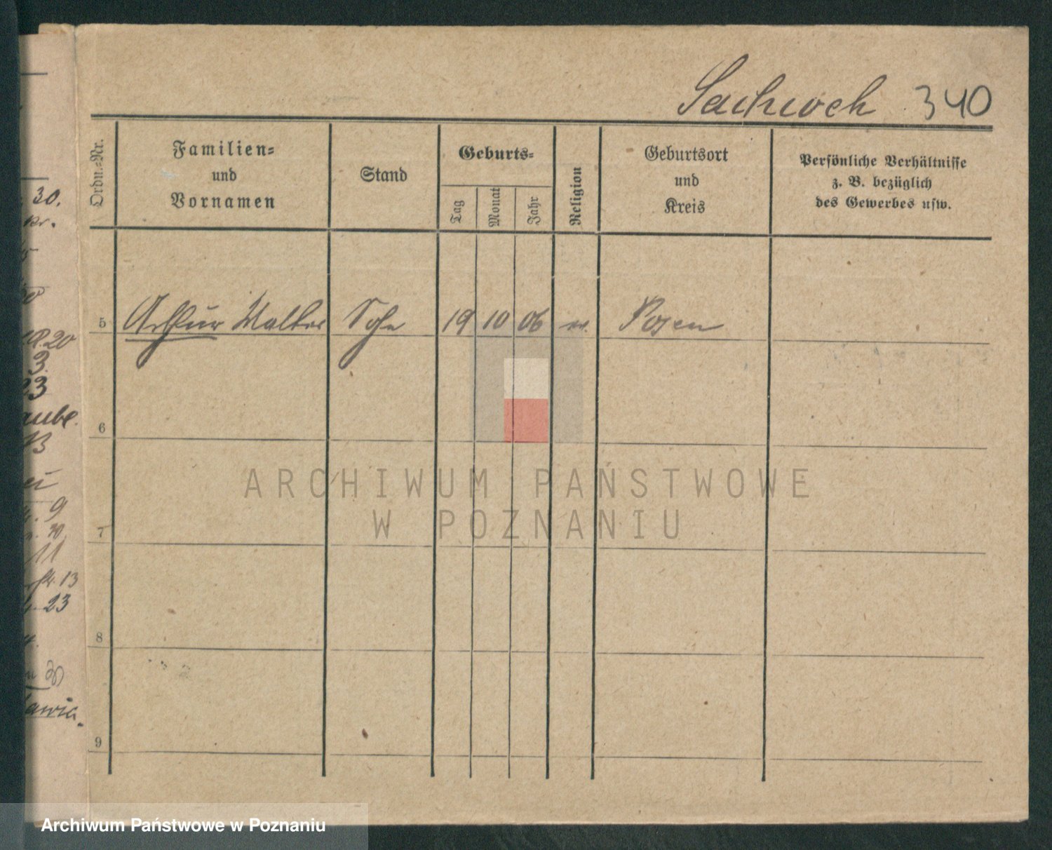 Podgląd karty osobowej dostępny jest po kliknięciu na nazwisko lub ikonkę karty. Można dokonywać powiększenia (ikony na górze) lub przechodzić między kolejnymi skanami (strzałki po bokach).