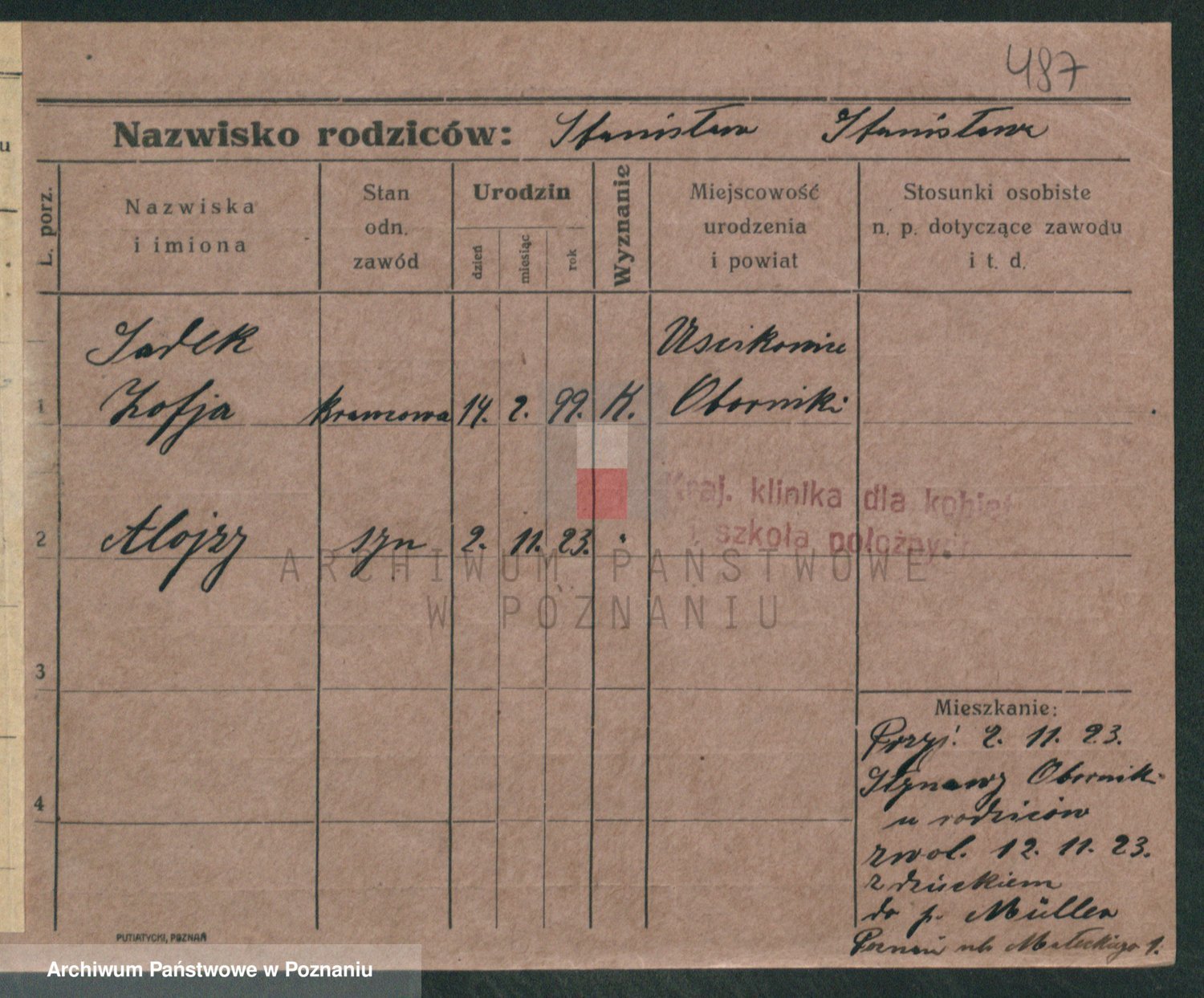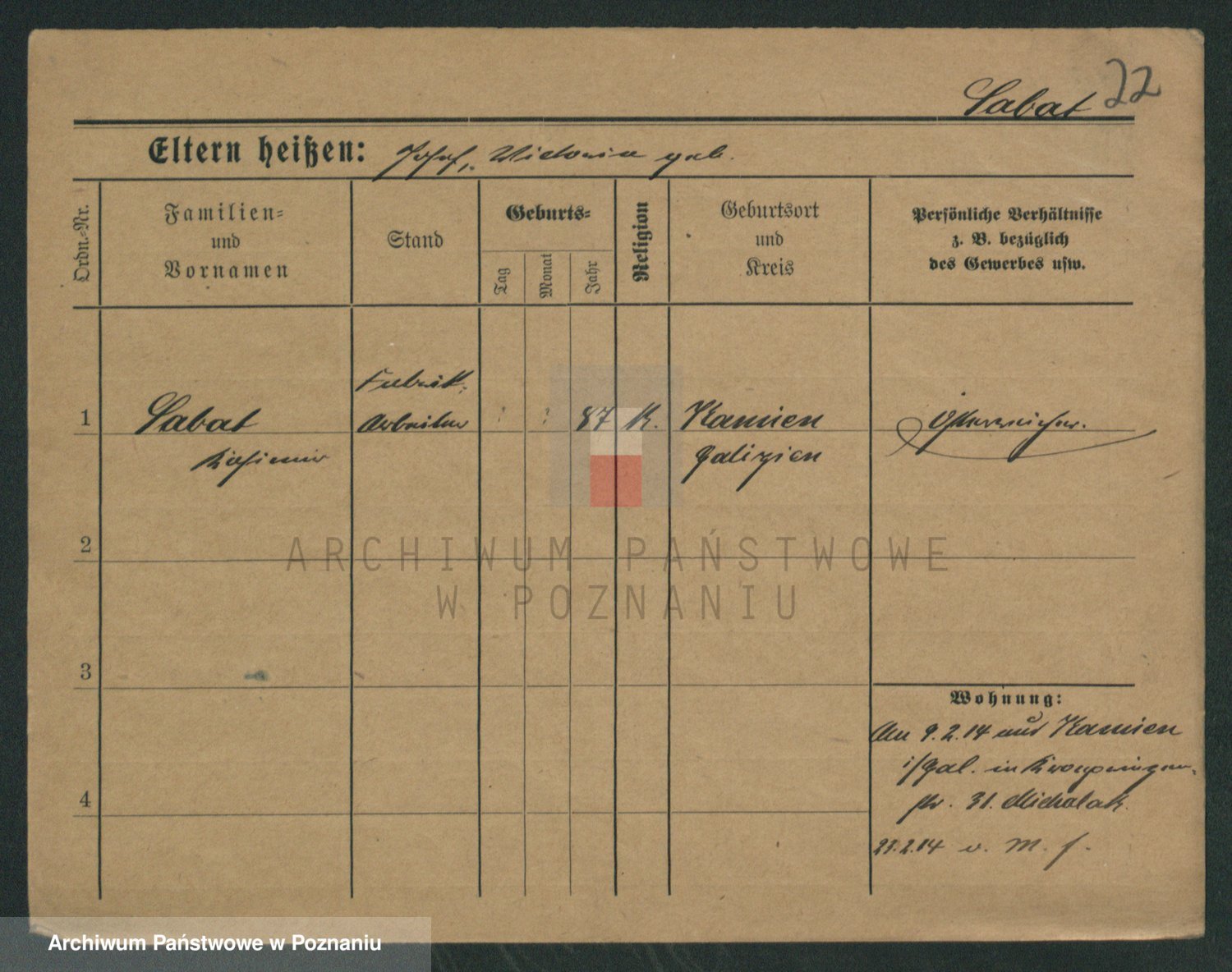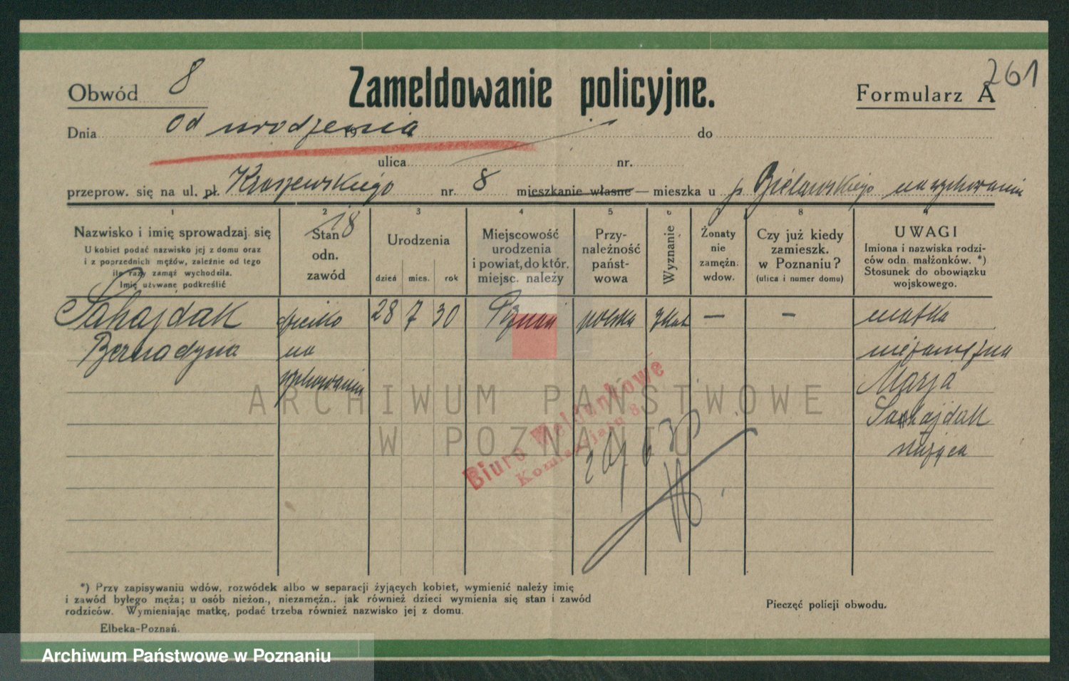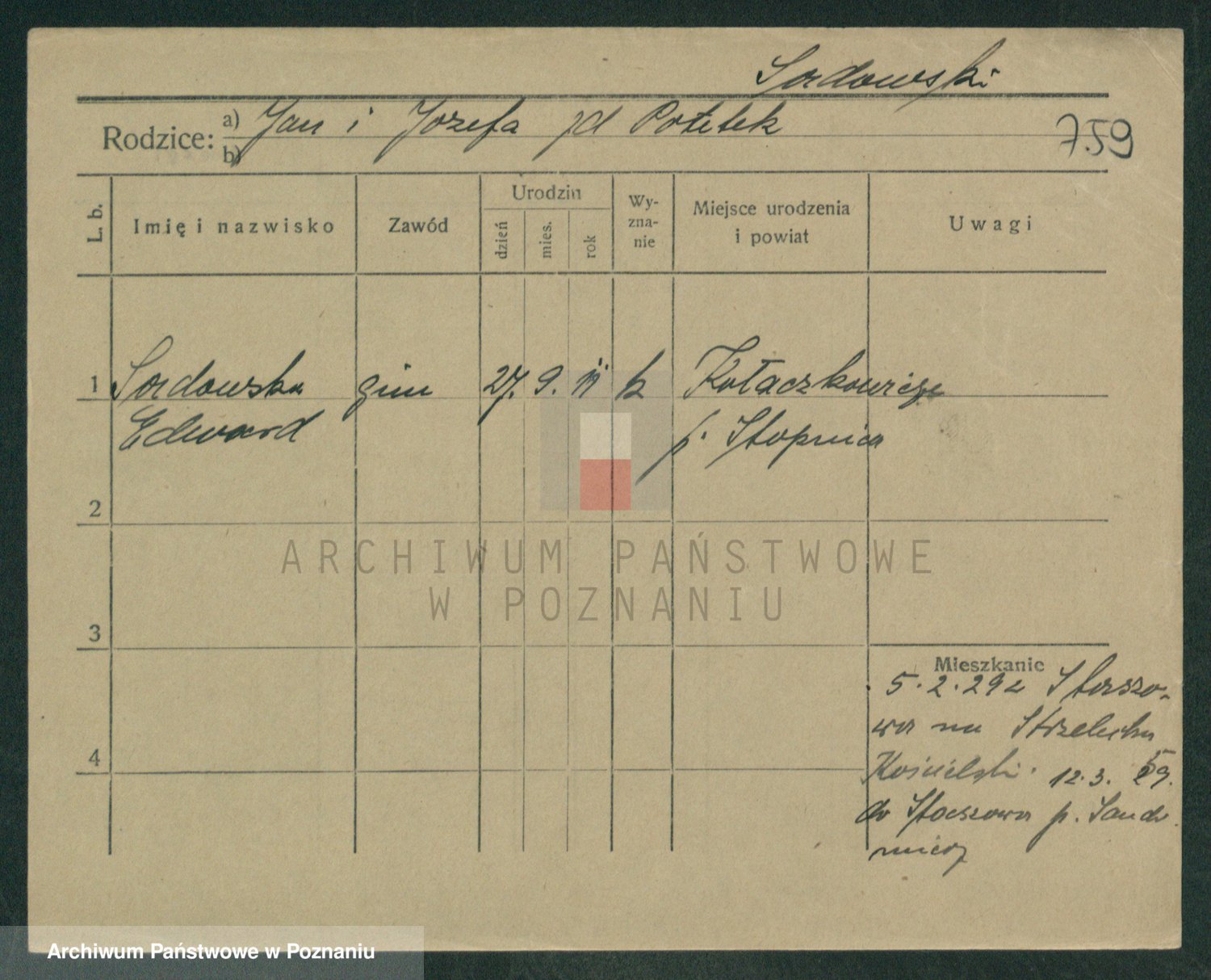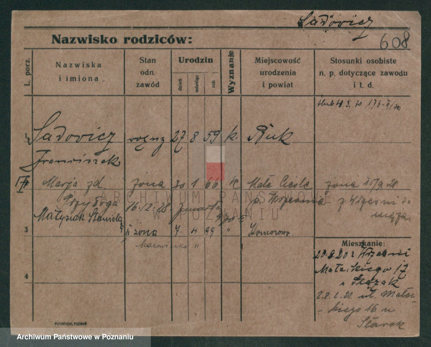 Podgląd karty osobowej dostępny jest po kliknięciu na nazwisko lub ikonkę karty. Można dokonywać powiększenia (ikony na górze) lub przechodzić między kolejnymi skanami (strzałki po bokach).