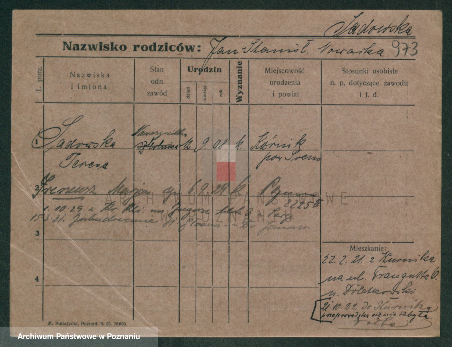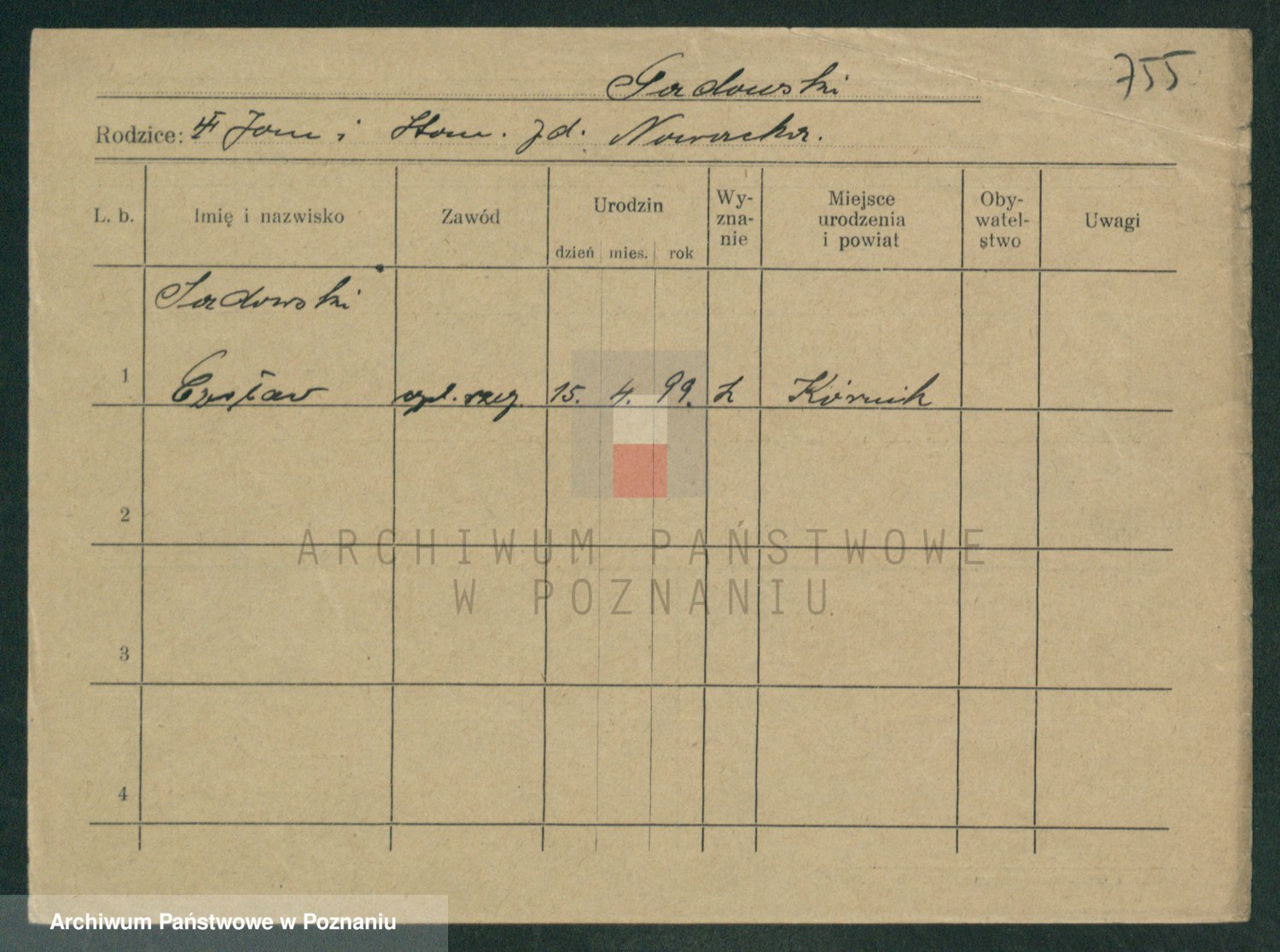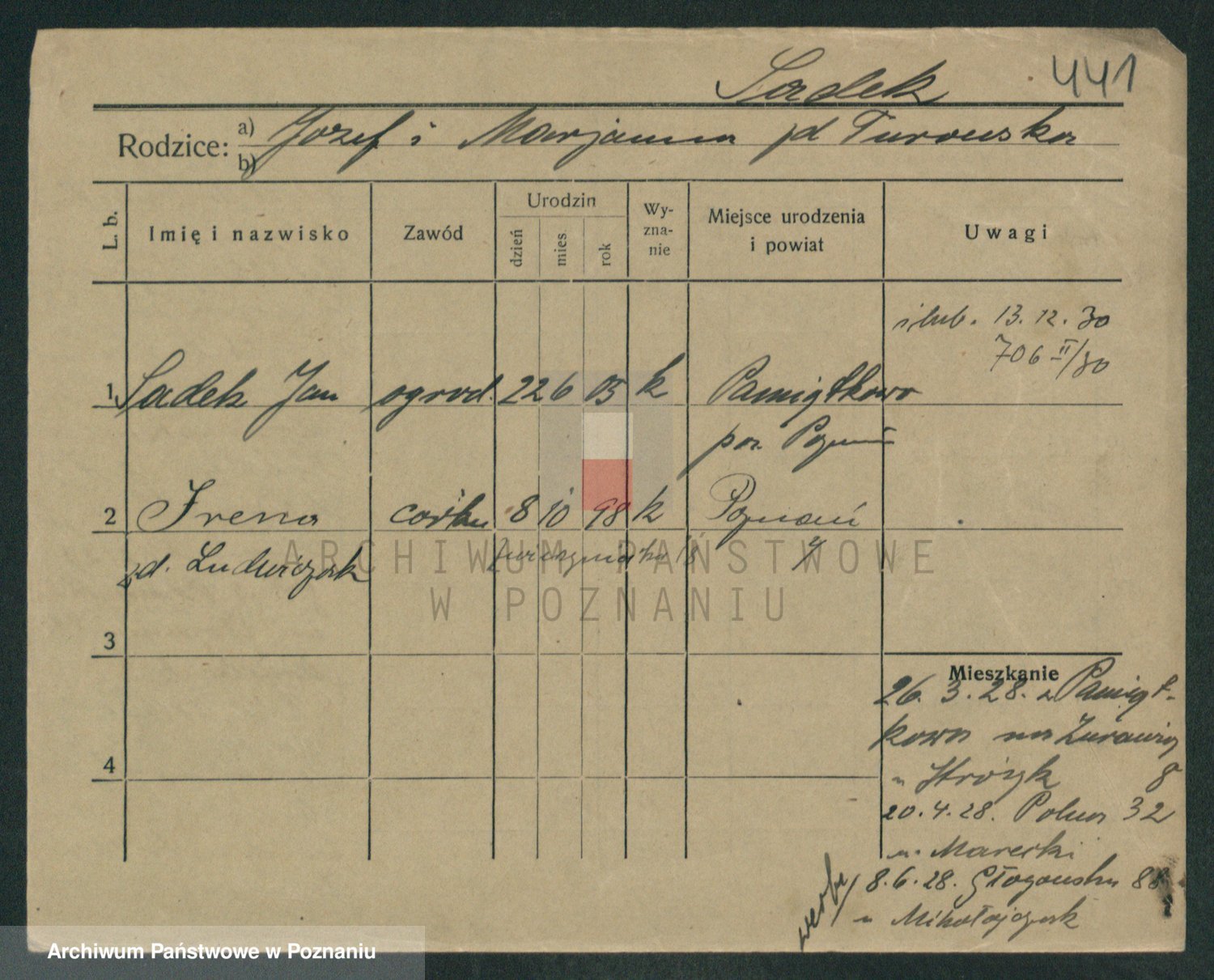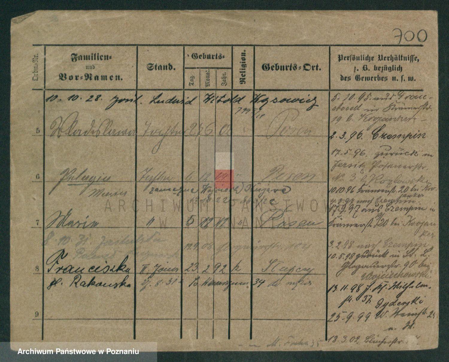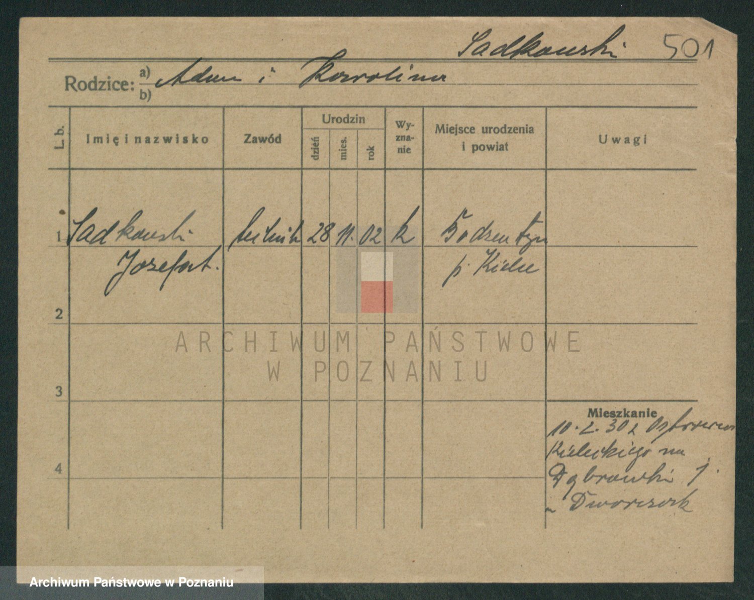 Podgląd karty osobowej dostępny jest po kliknięciu na nazwisko lub ikonkę karty. Można dokonywać powiększenia (ikony na górze) lub przechodzić między kolejnymi skanami (strzałki po bokach).
