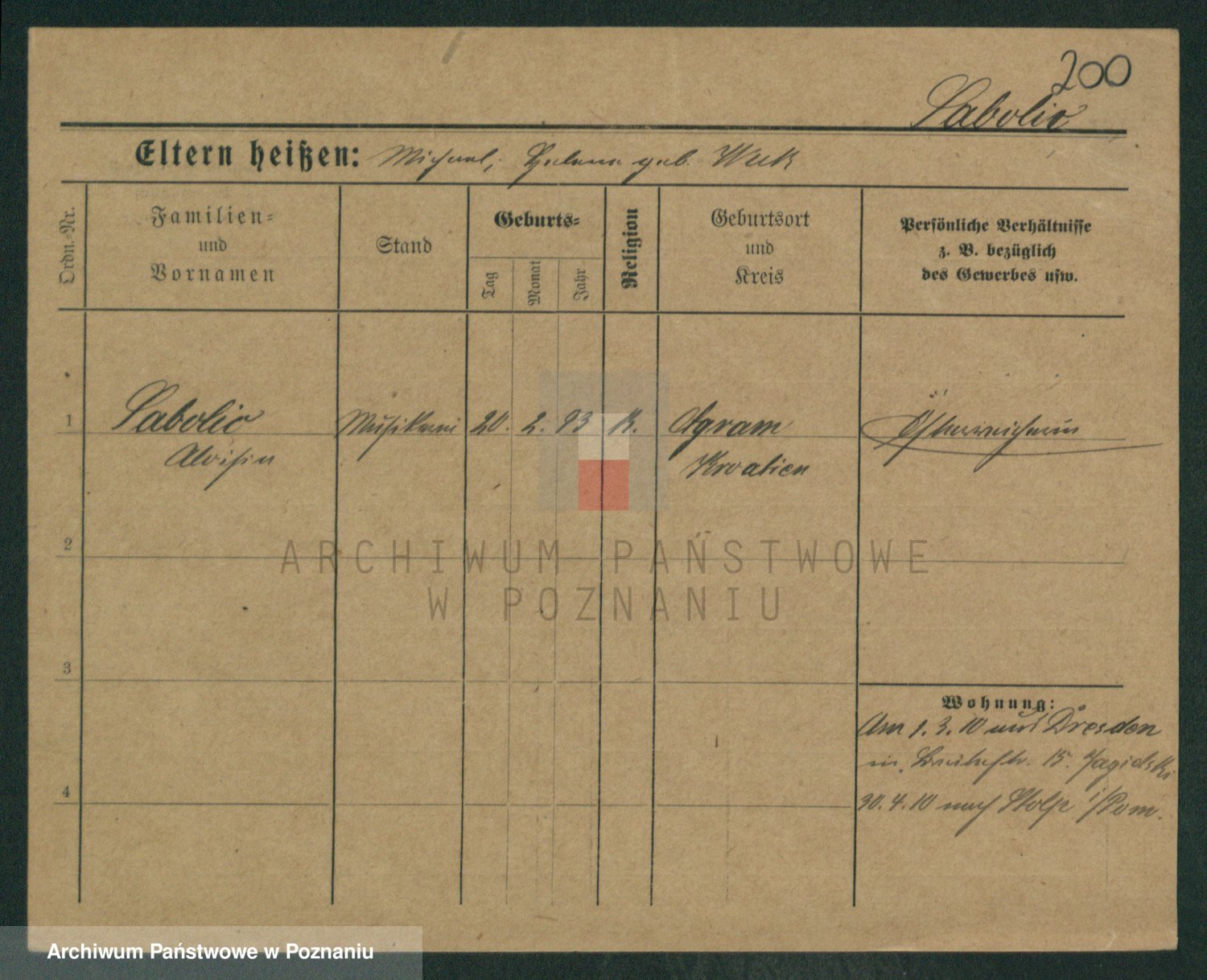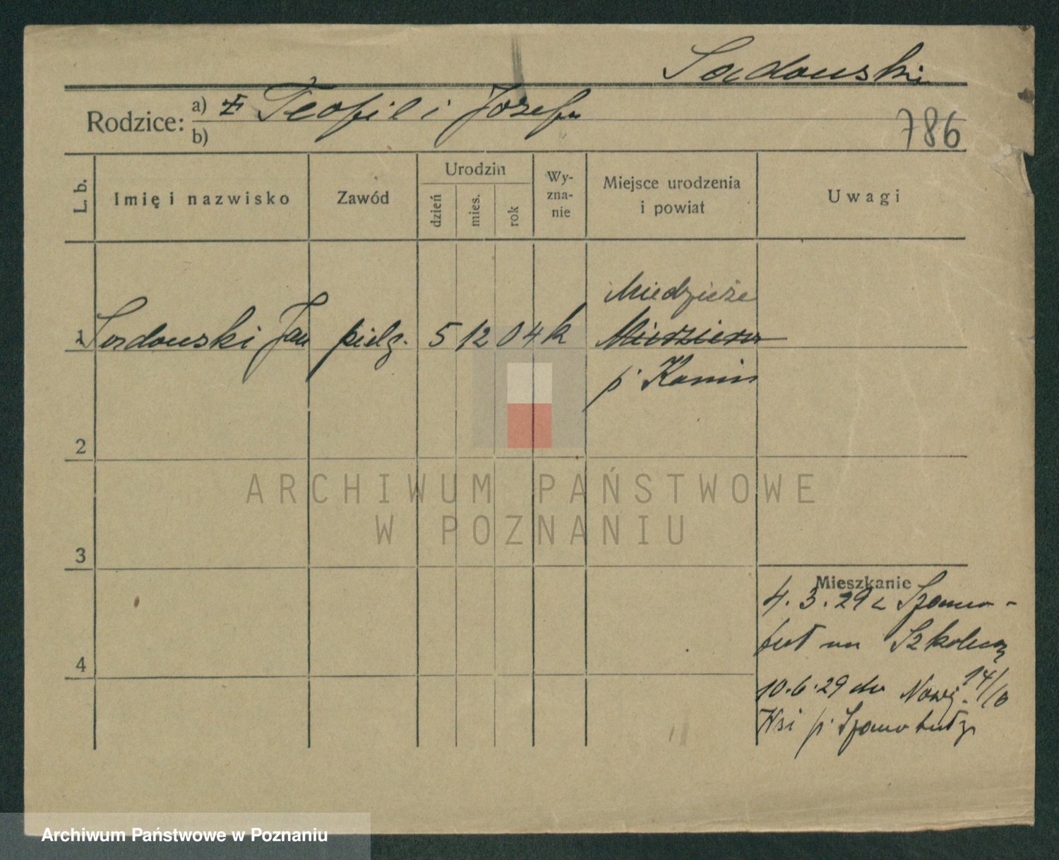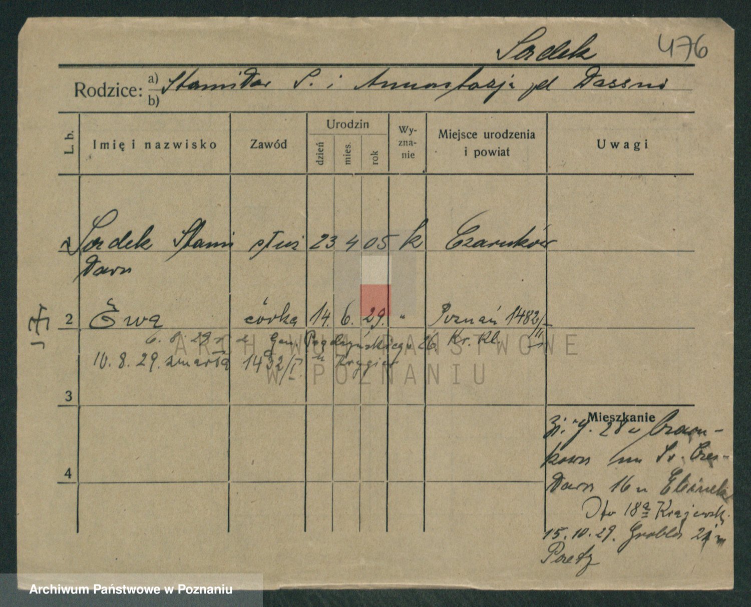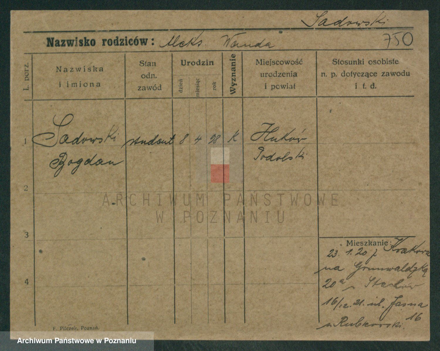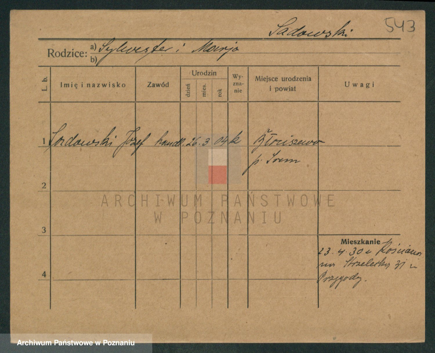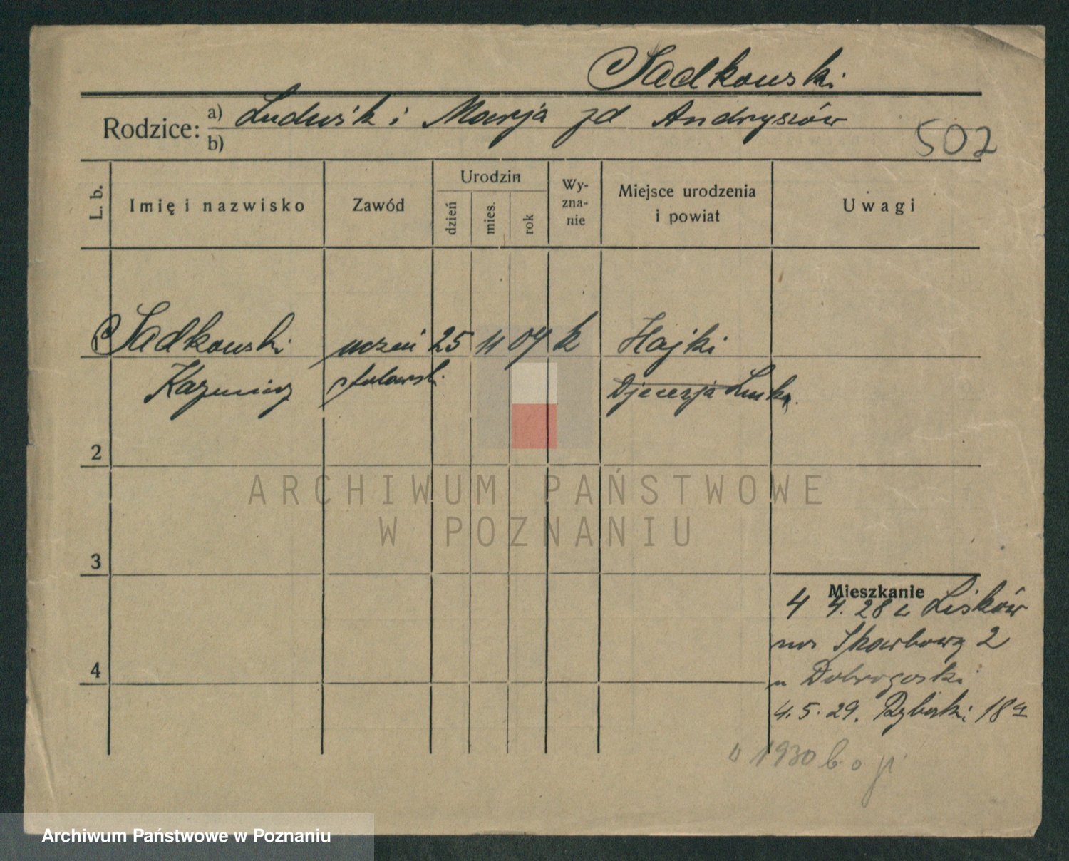 Podgląd karty osobowej dostępny jest po kliknięciu na nazwisko lub ikonkę karty. Można dokonywać powiększenia (ikony na górze) lub przechodzić między kolejnymi skanami (strzałki po bokach).