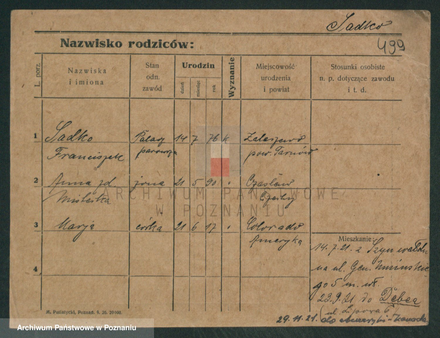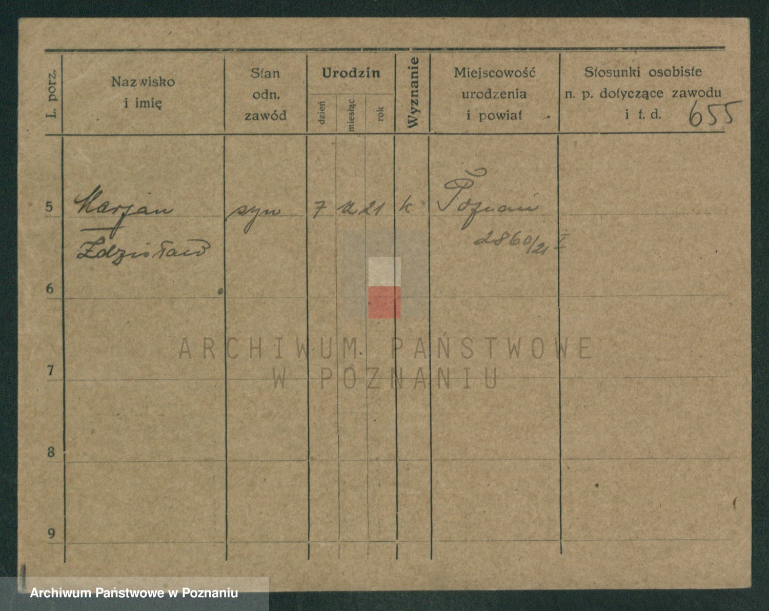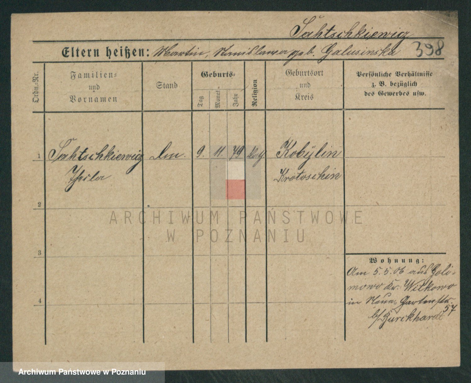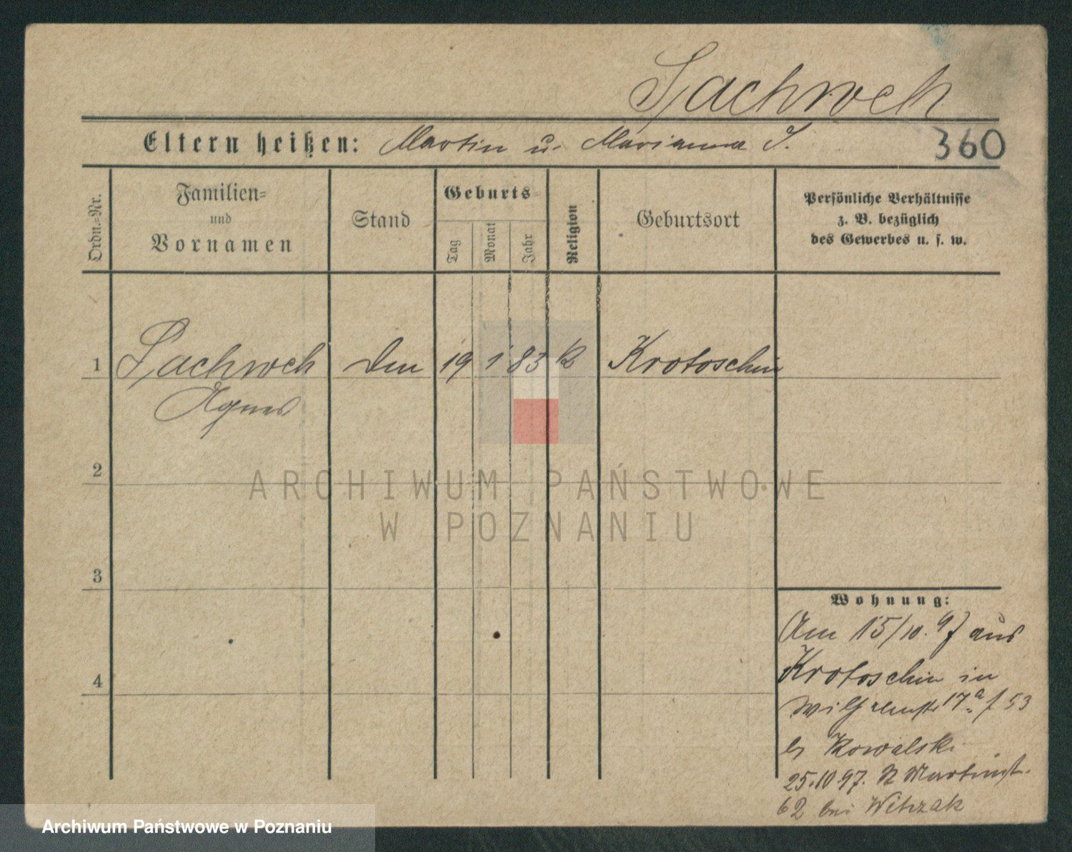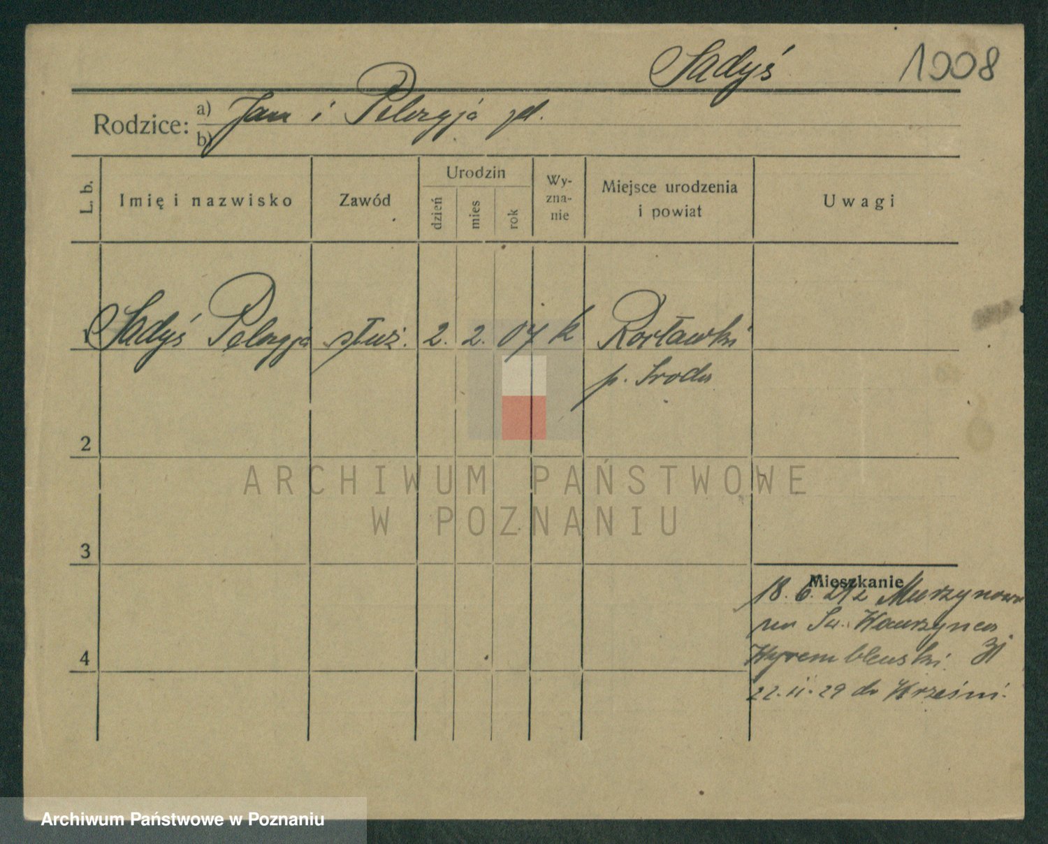 Podgląd karty osobowej dostępny jest po kliknięciu na nazwisko lub ikonkę karty. Można dokonywać powiększenia (ikony na górze) lub przechodzić między kolejnymi skanami (strzałki po bokach).