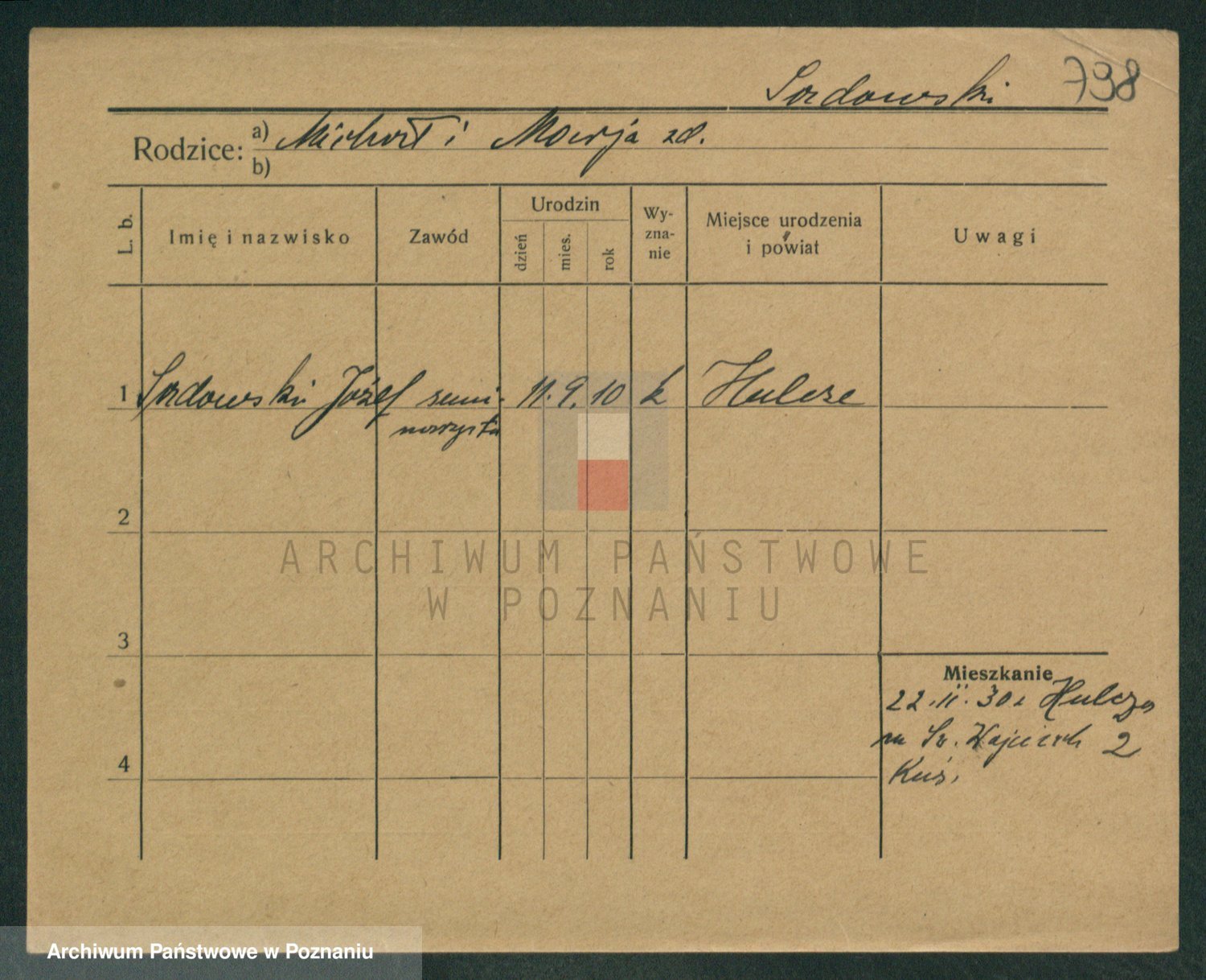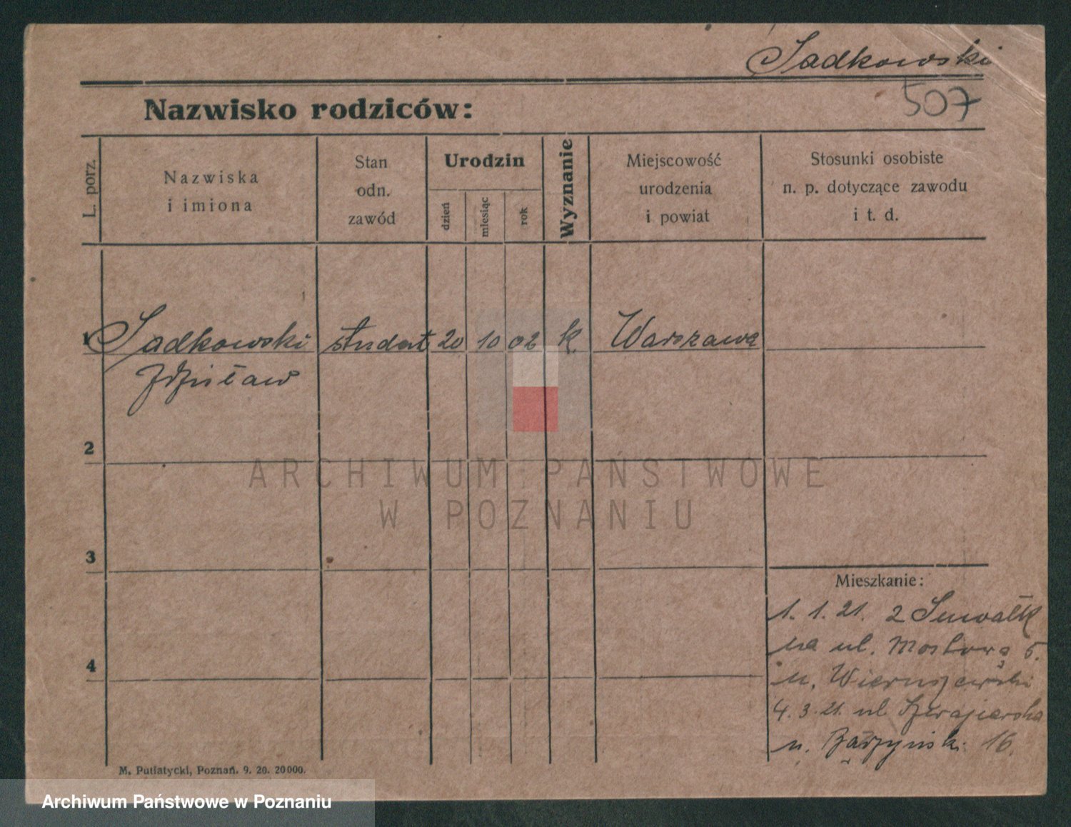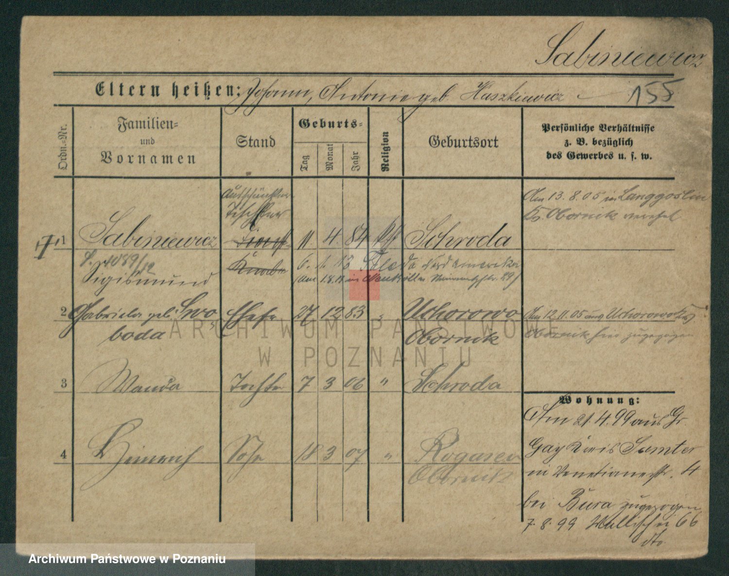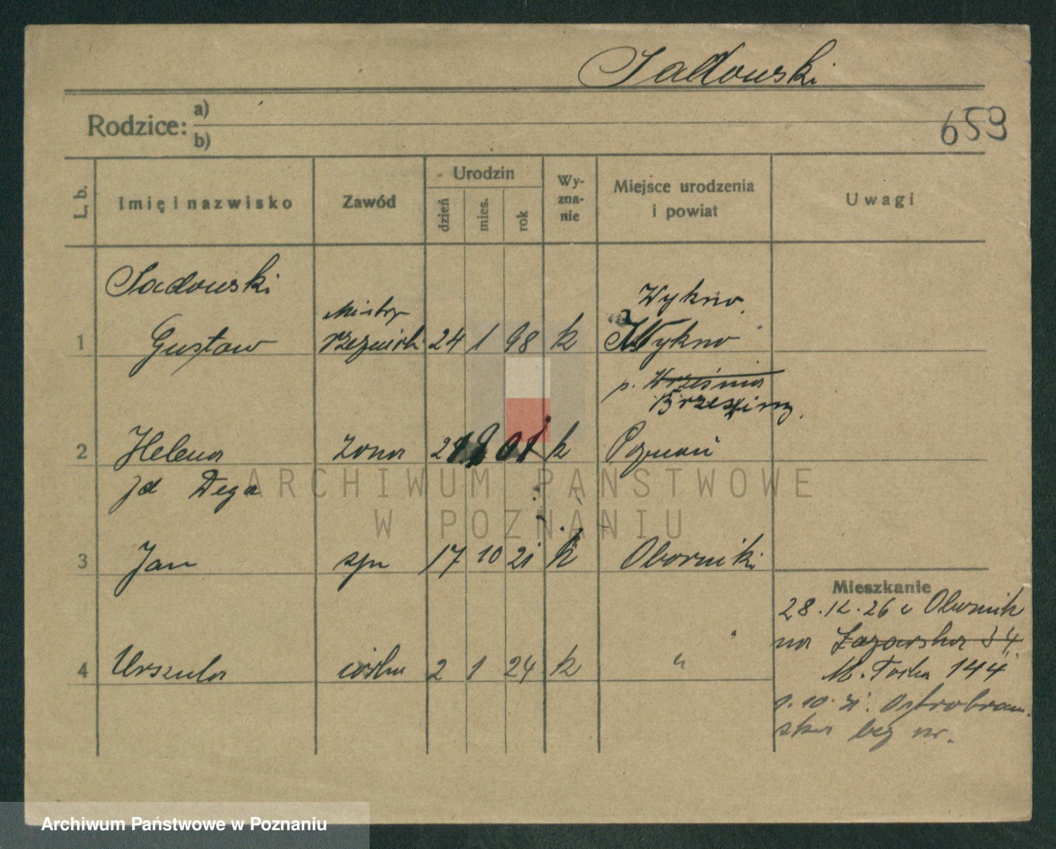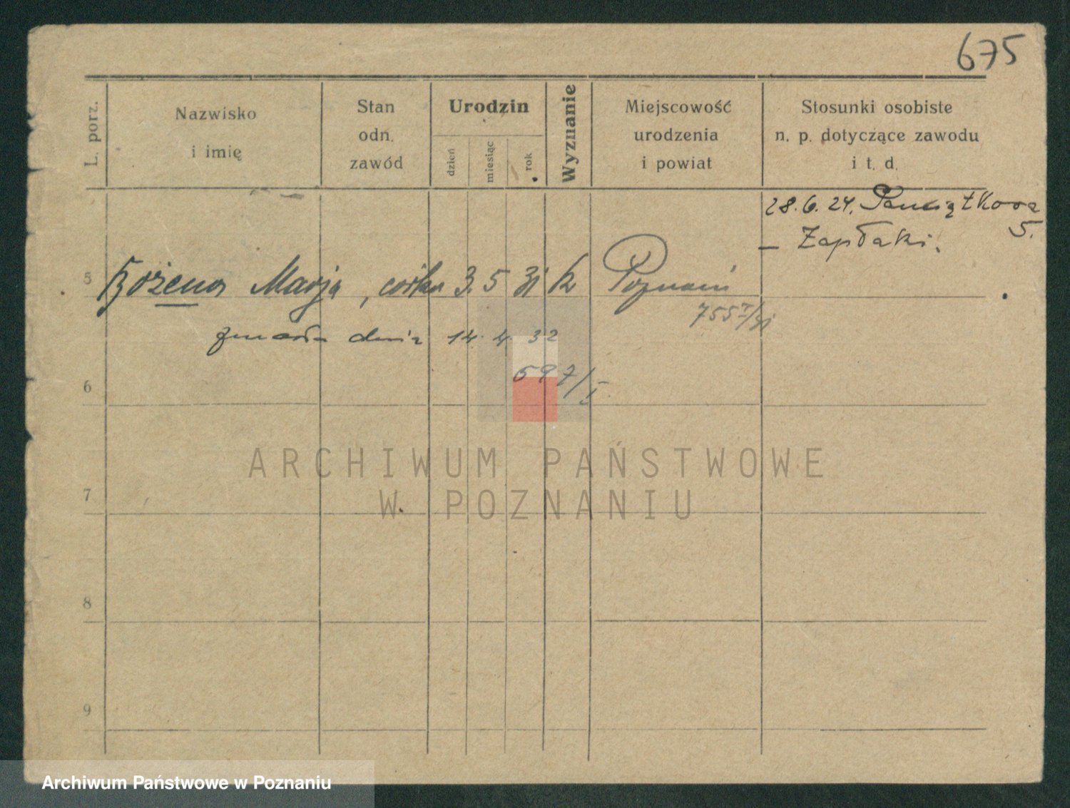 Podgląd karty osobowej dostępny jest po kliknięciu na nazwisko lub ikonkę karty. Można dokonywać powiększenia (ikony na górze) lub przechodzić między kolejnymi skanami (strzałki po bokach).