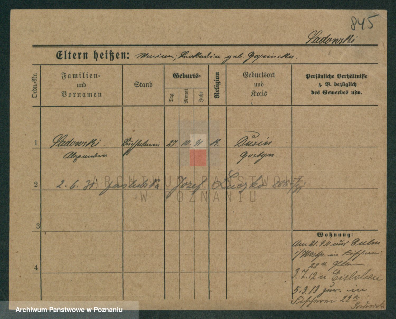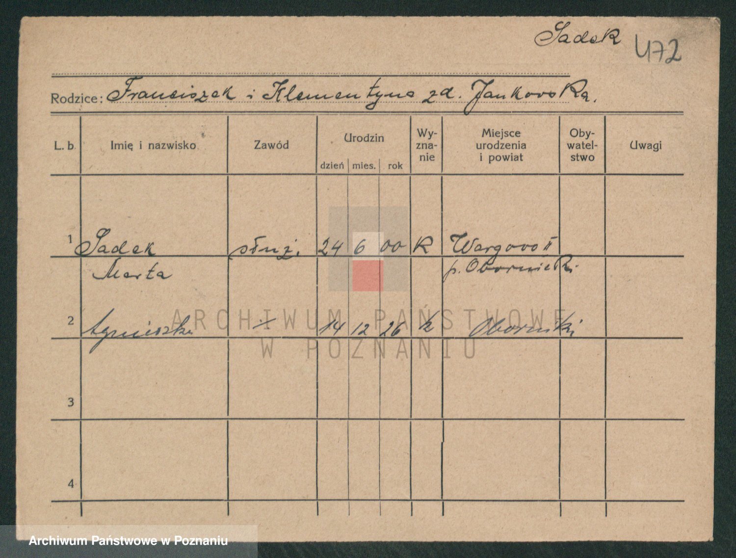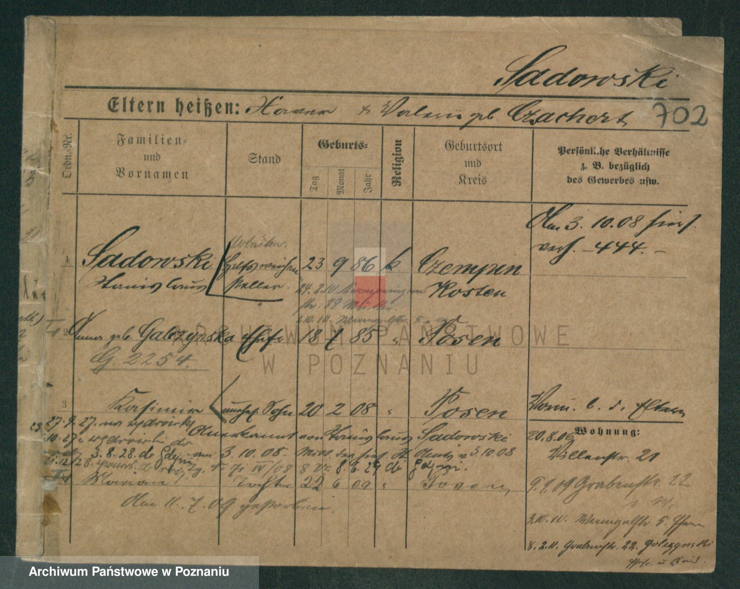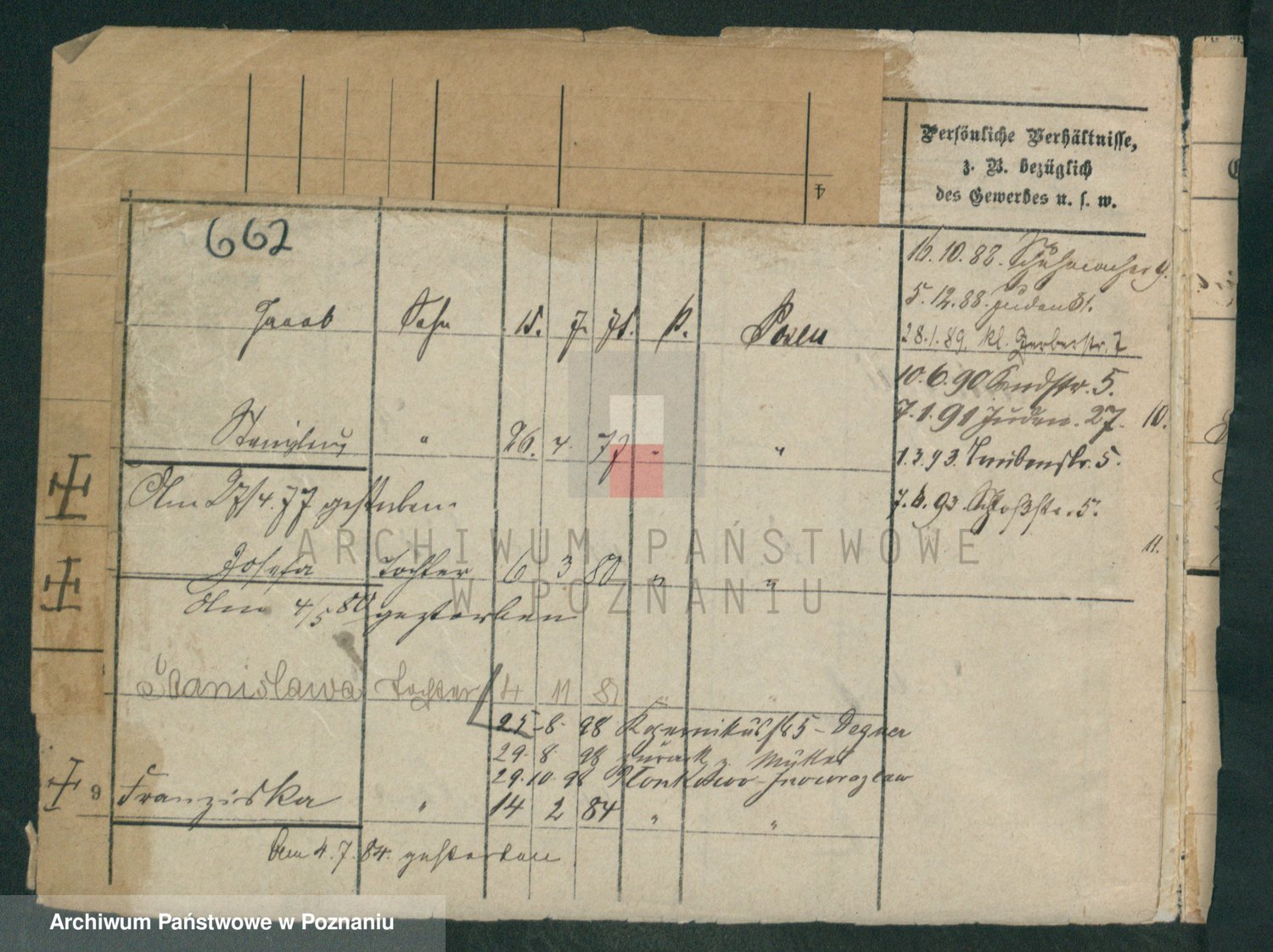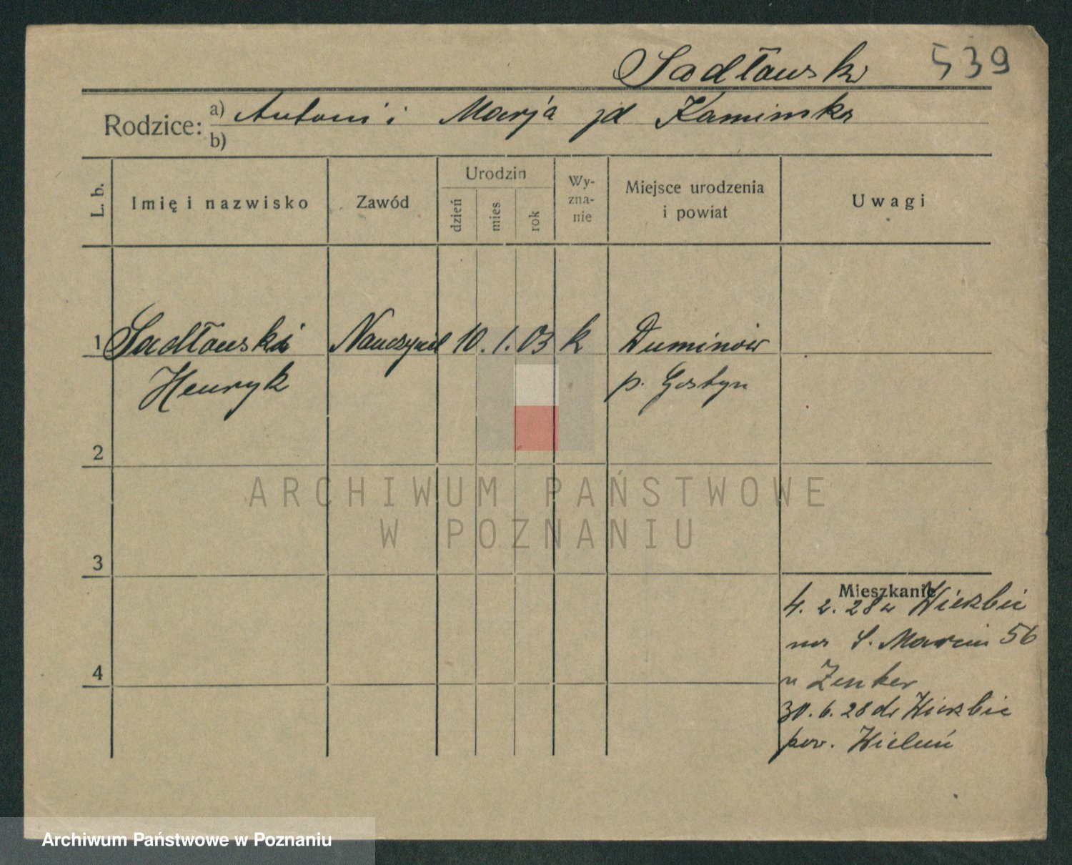 Podgląd karty osobowej dostępny jest po kliknięciu na nazwisko lub ikonkę karty. Można dokonywać powiększenia (ikony na górze) lub przechodzić między kolejnymi skanami (strzałki po bokach).
