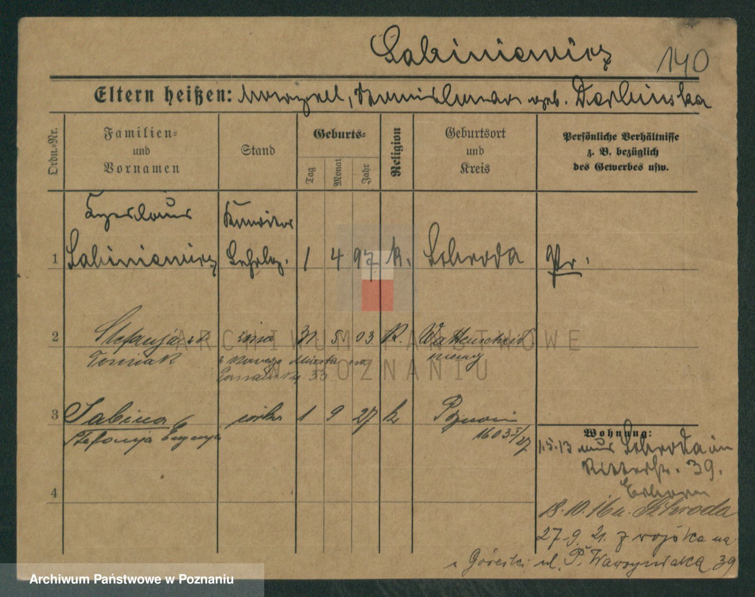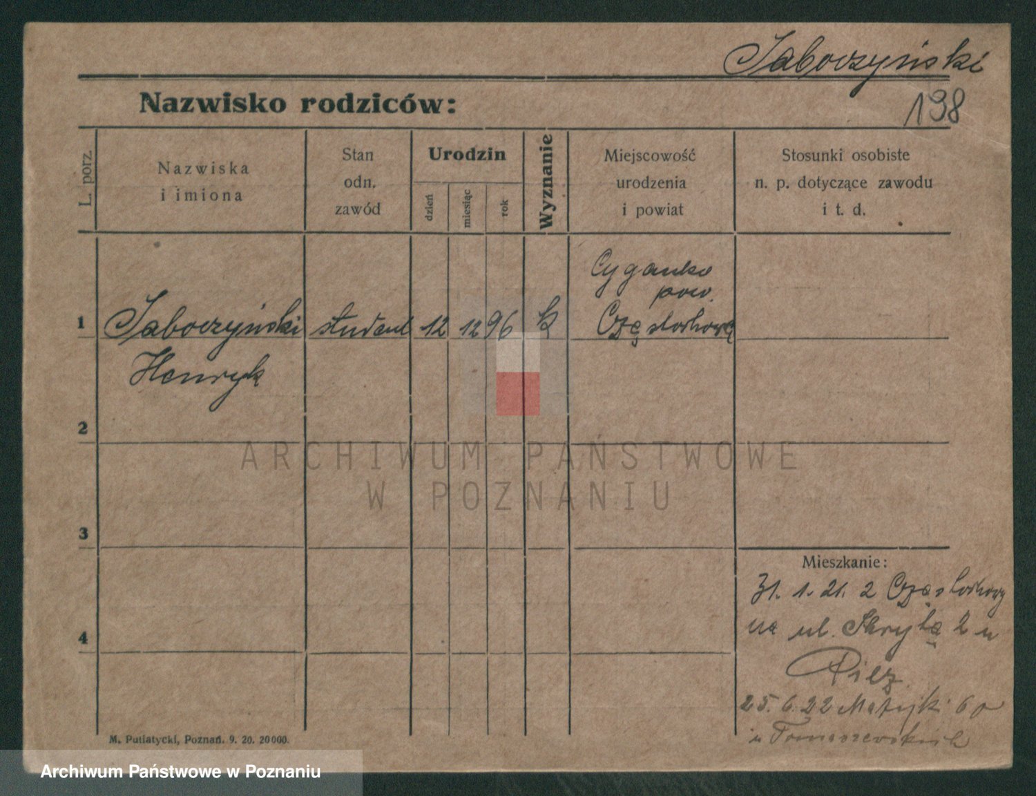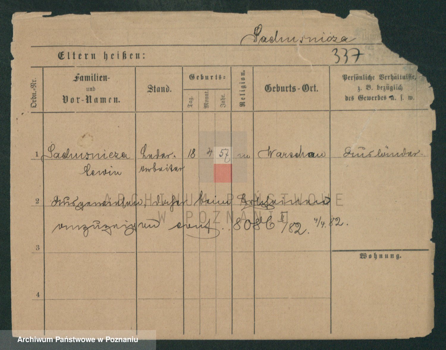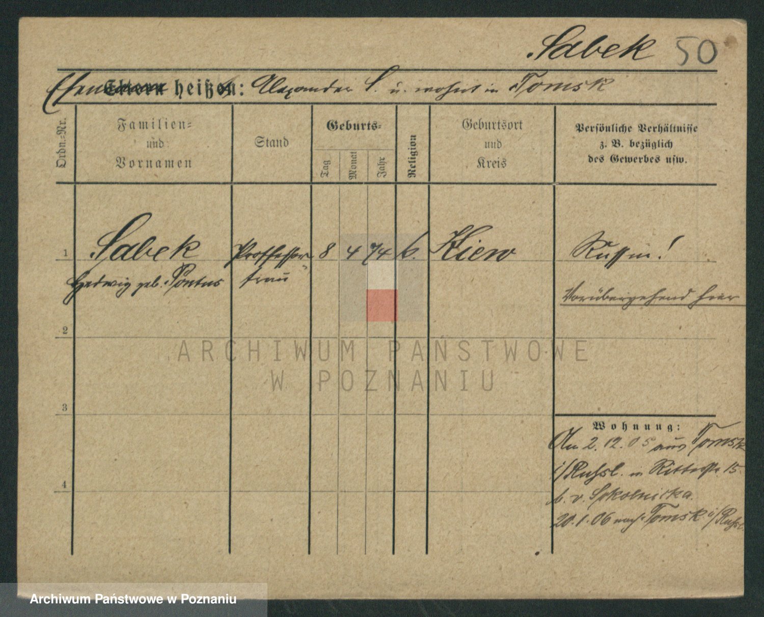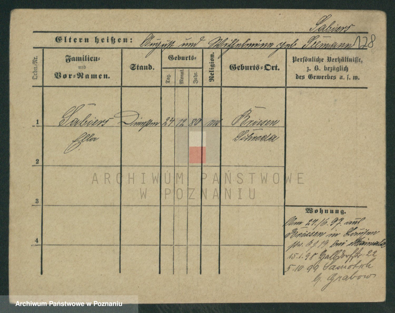 Podgląd karty osobowej dostępny jest po kliknięciu na nazwisko lub ikonkę karty. Można dokonywać powiększenia (ikony na górze) lub przechodzić między kolejnymi skanami (strzałki po bokach).
