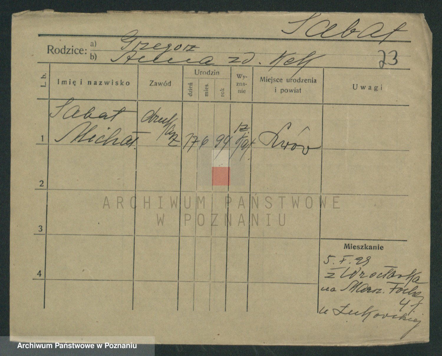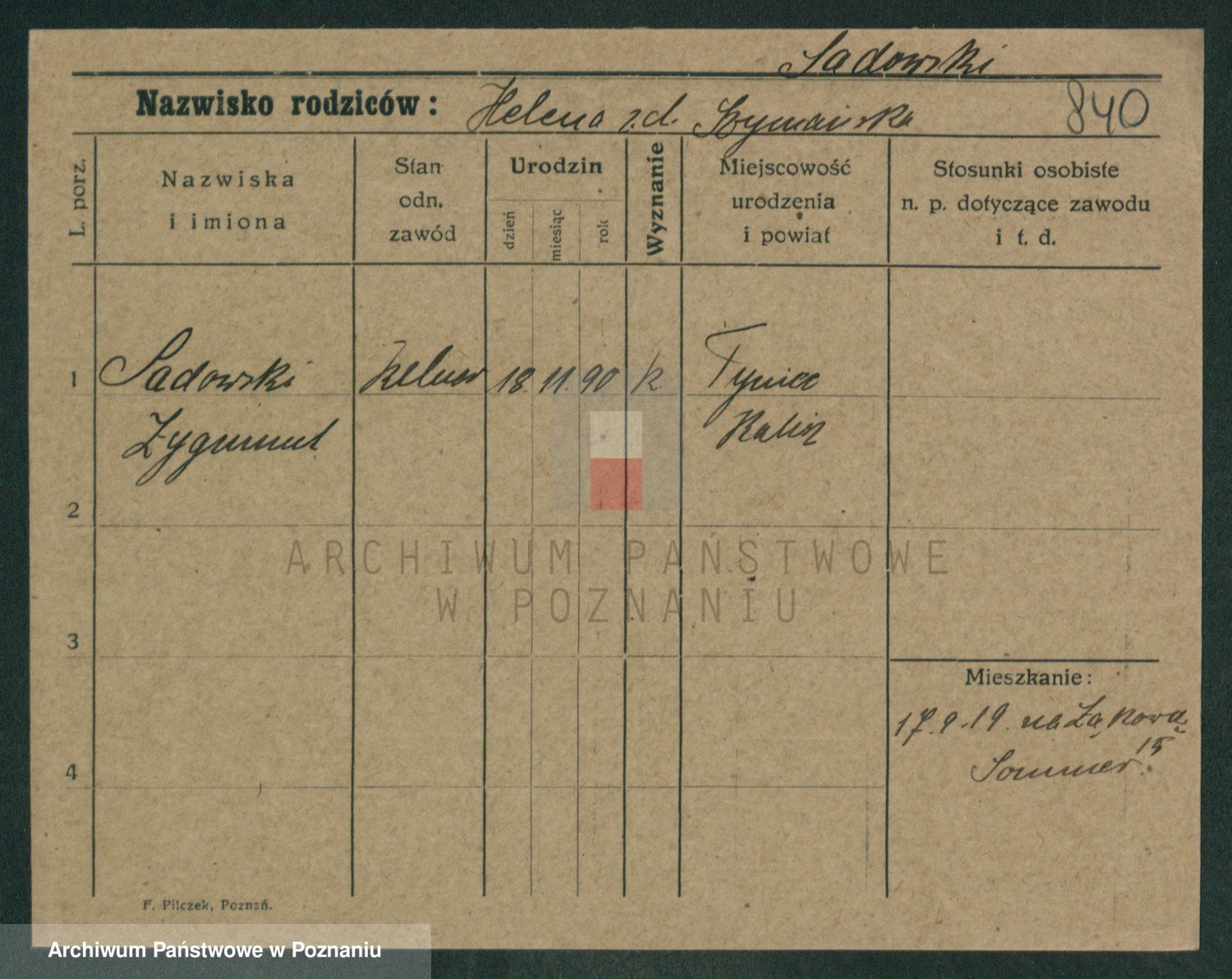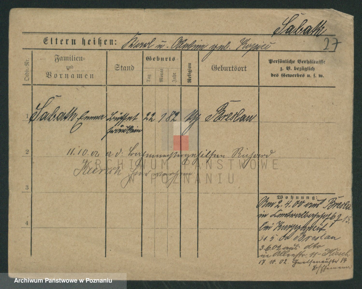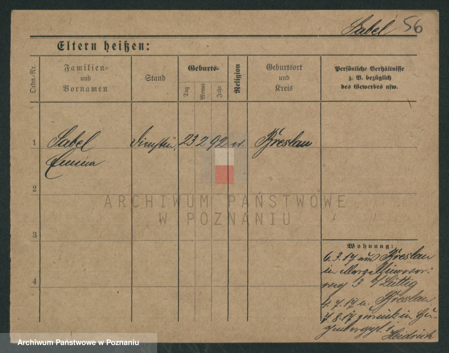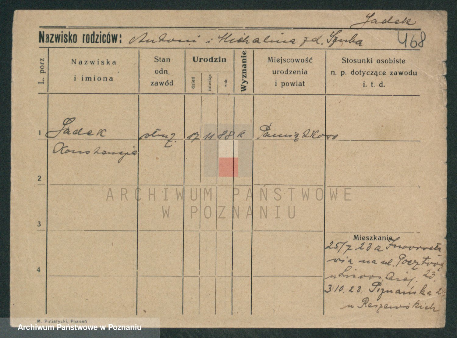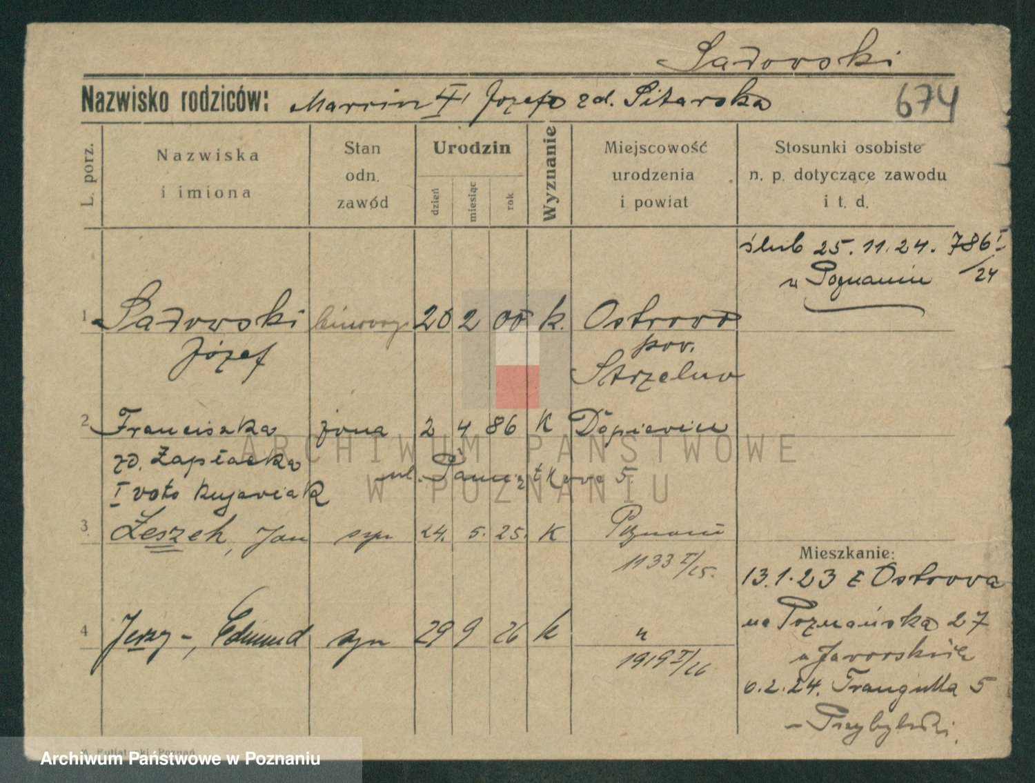 Podgląd karty osobowej dostępny jest po kliknięciu na nazwisko lub ikonkę karty. Można dokonywać powiększenia (ikony na górze) lub przechodzić między kolejnymi skanami (strzałki po bokach).