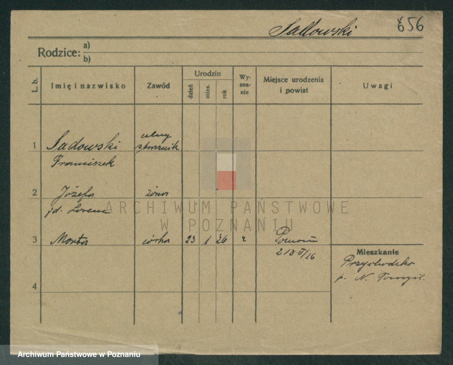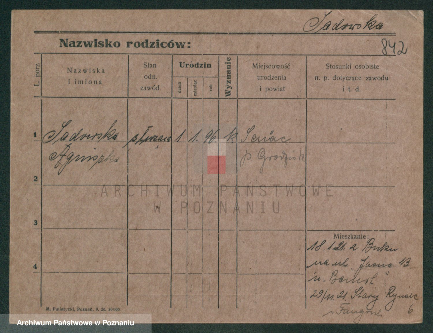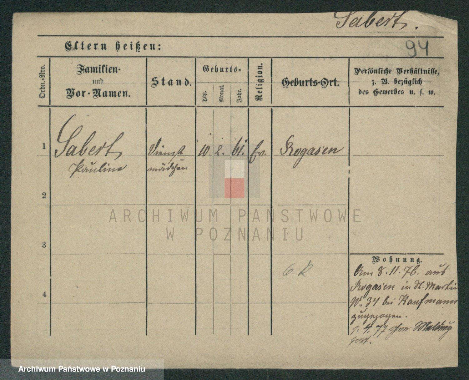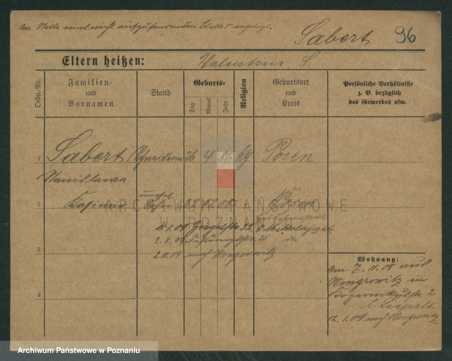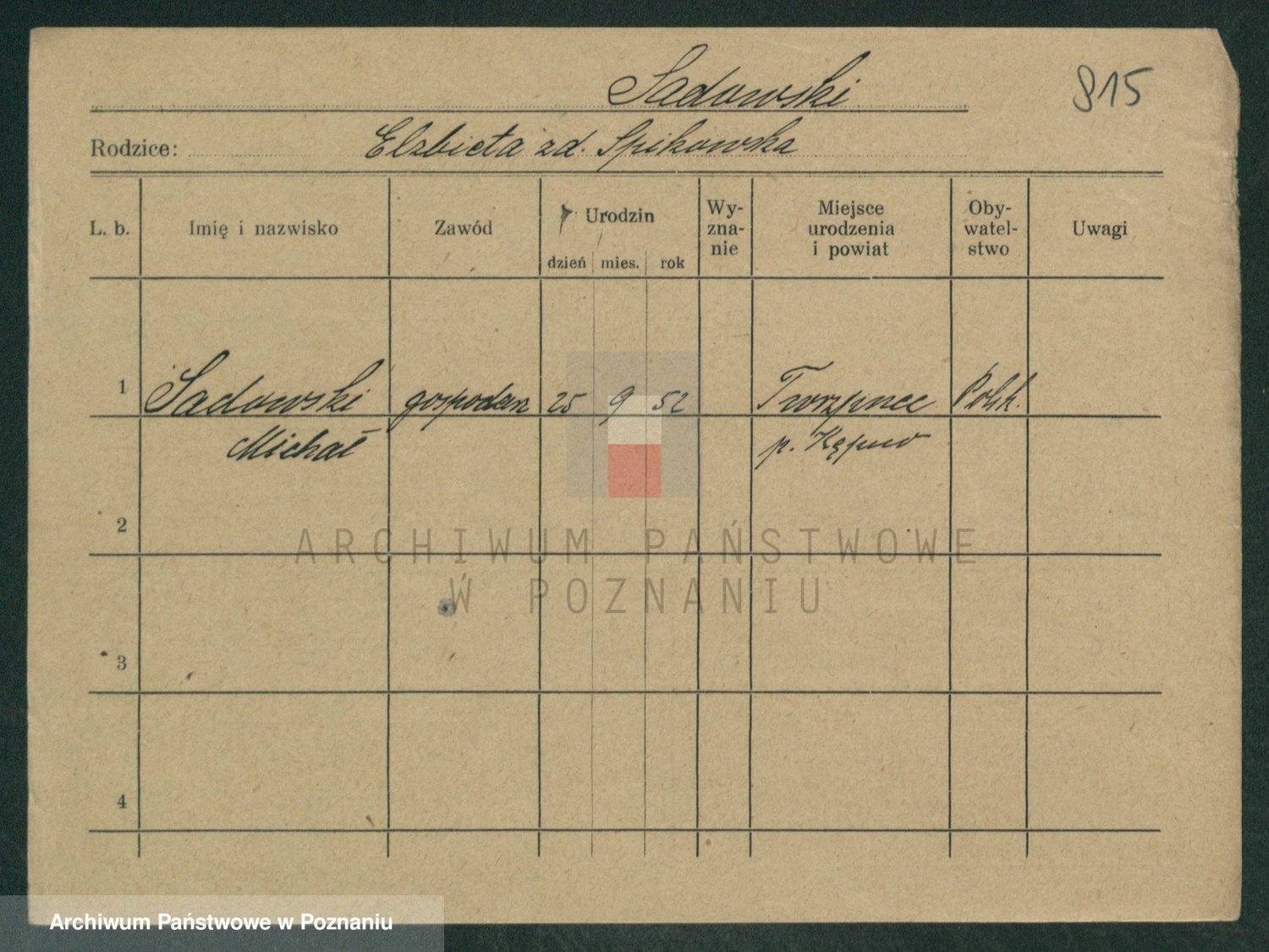 Podgląd karty osobowej dostępny jest po kliknięciu na nazwisko lub ikonkę karty. Można dokonywać powiększenia (ikony na górze) lub przechodzić między kolejnymi skanami (strzałki po bokach).