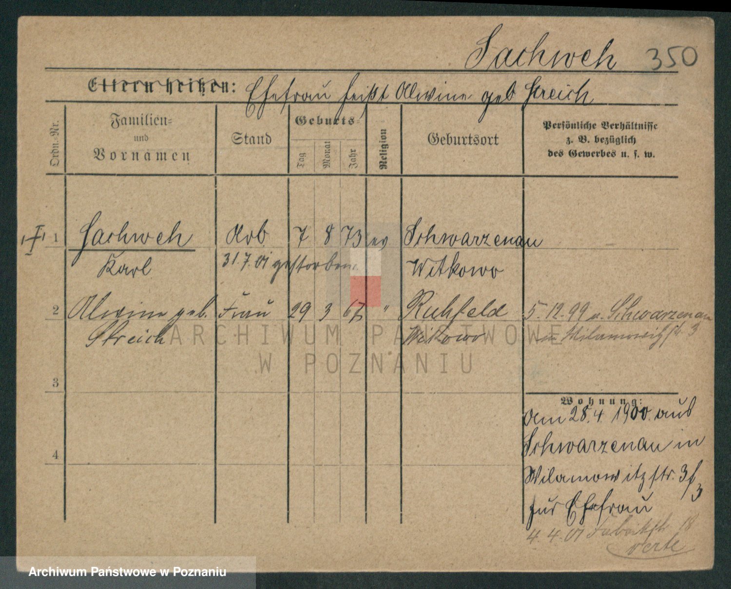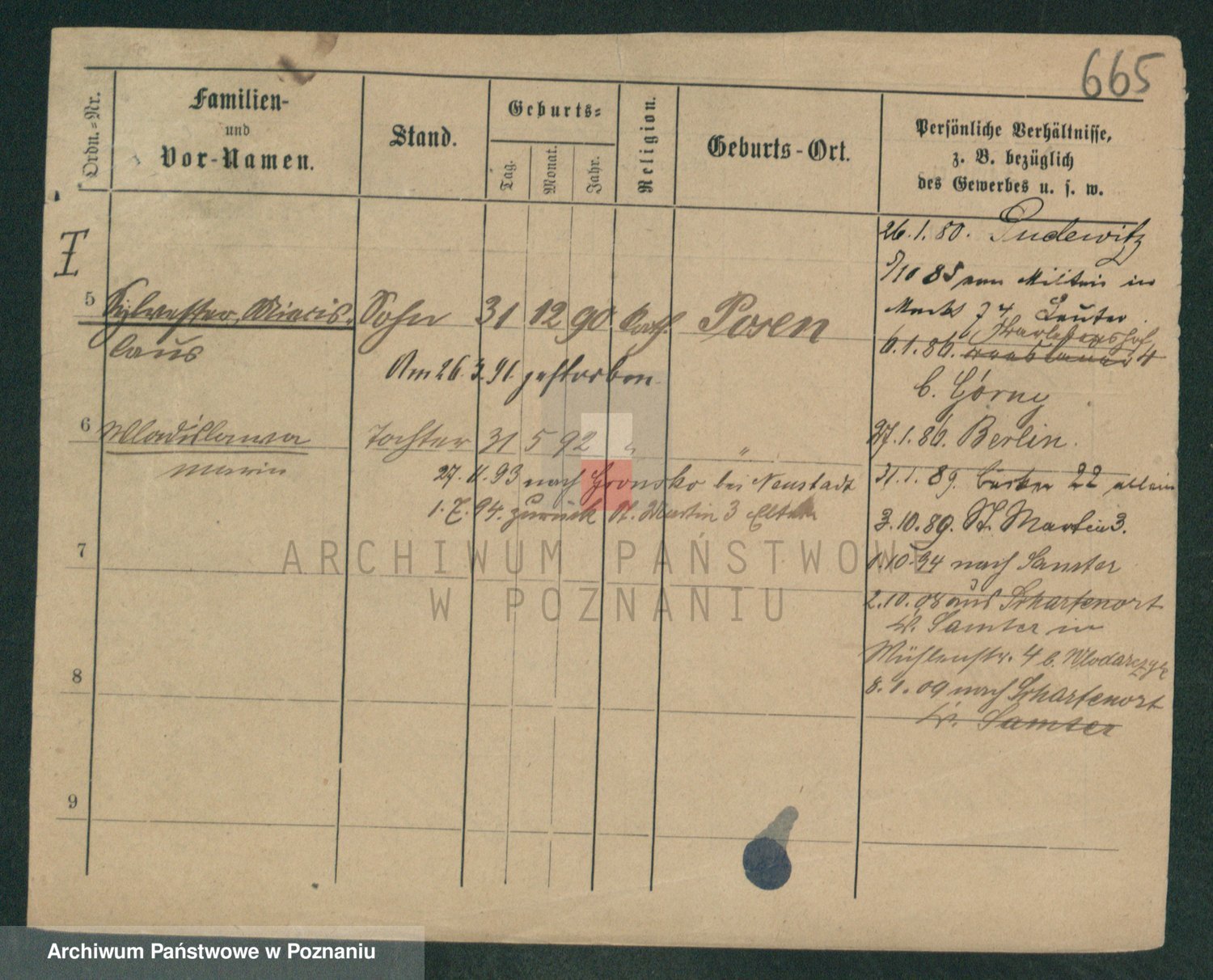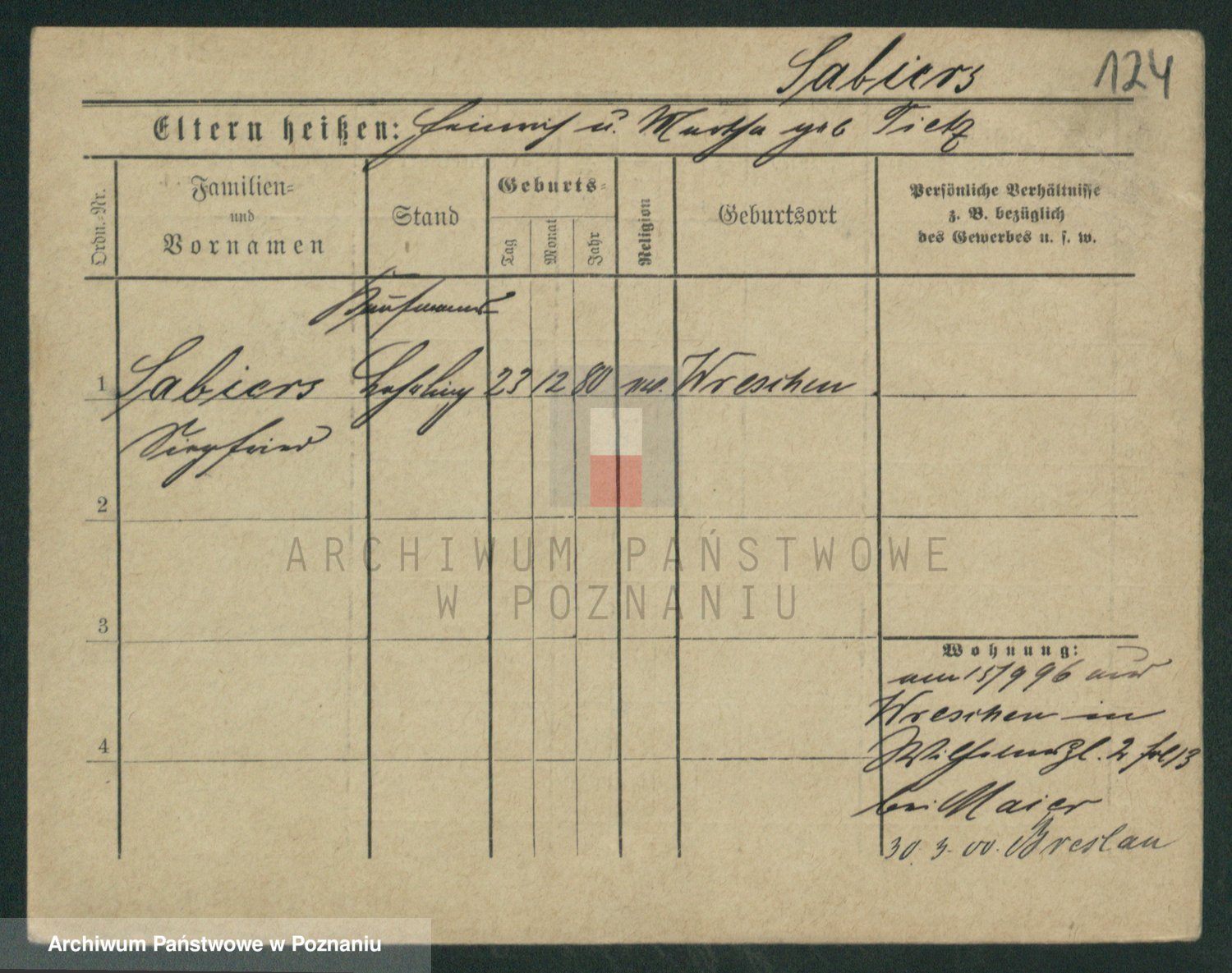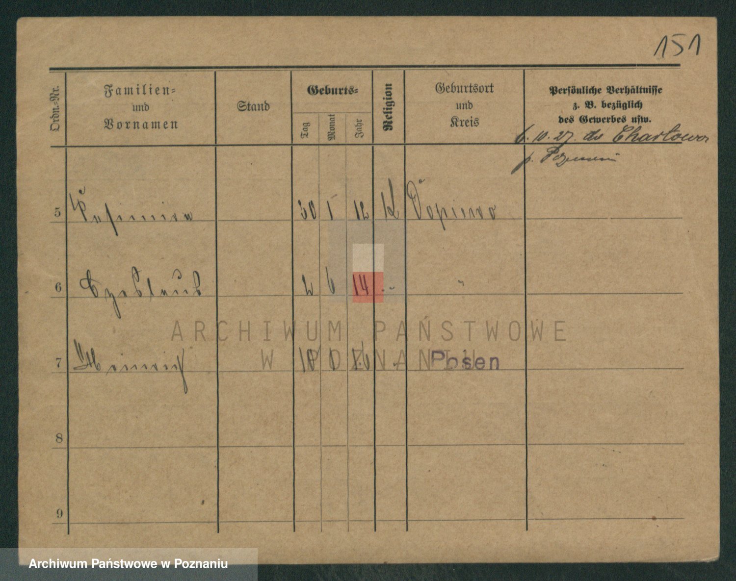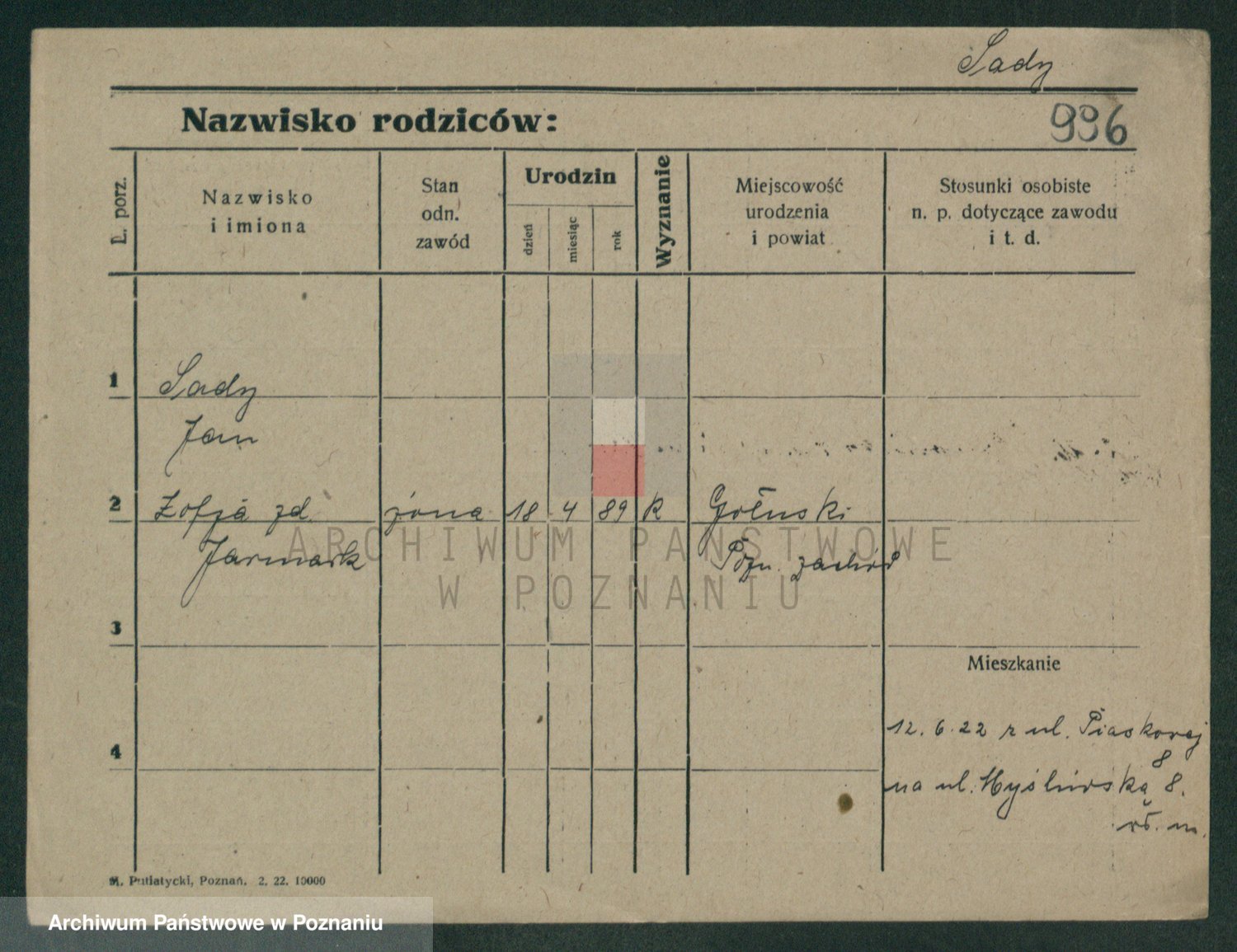 Podgląd karty osobowej dostępny jest po kliknięciu na nazwisko lub ikonkę karty. Można dokonywać powiększenia (ikony na górze) lub przechodzić między kolejnymi skanami (strzałki po bokach).