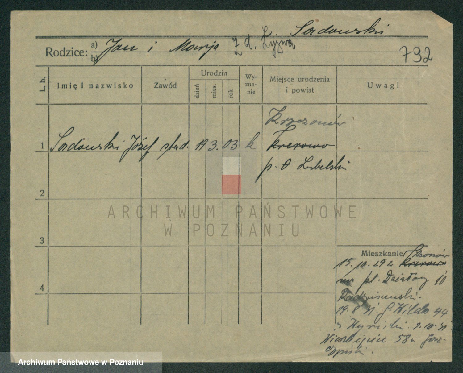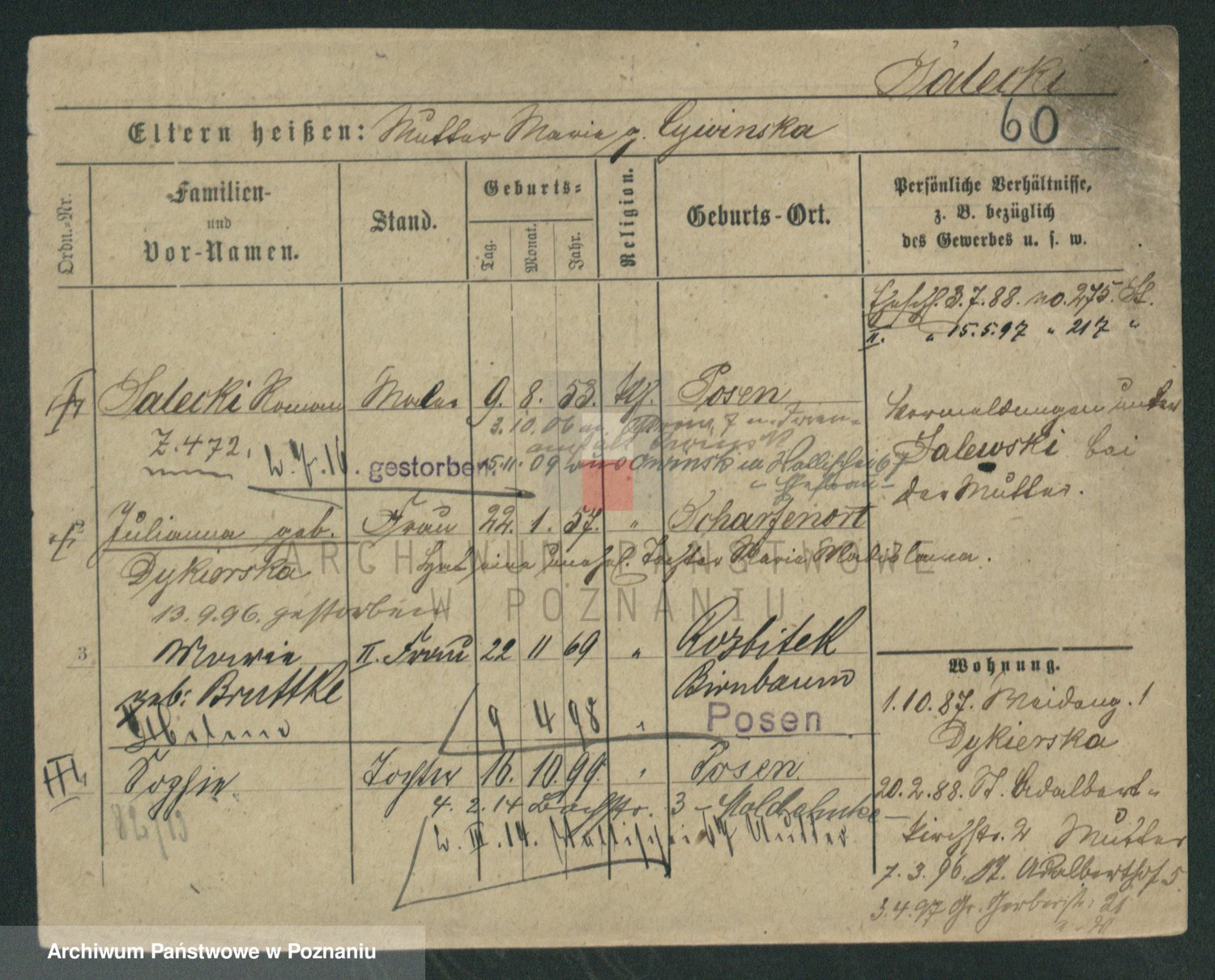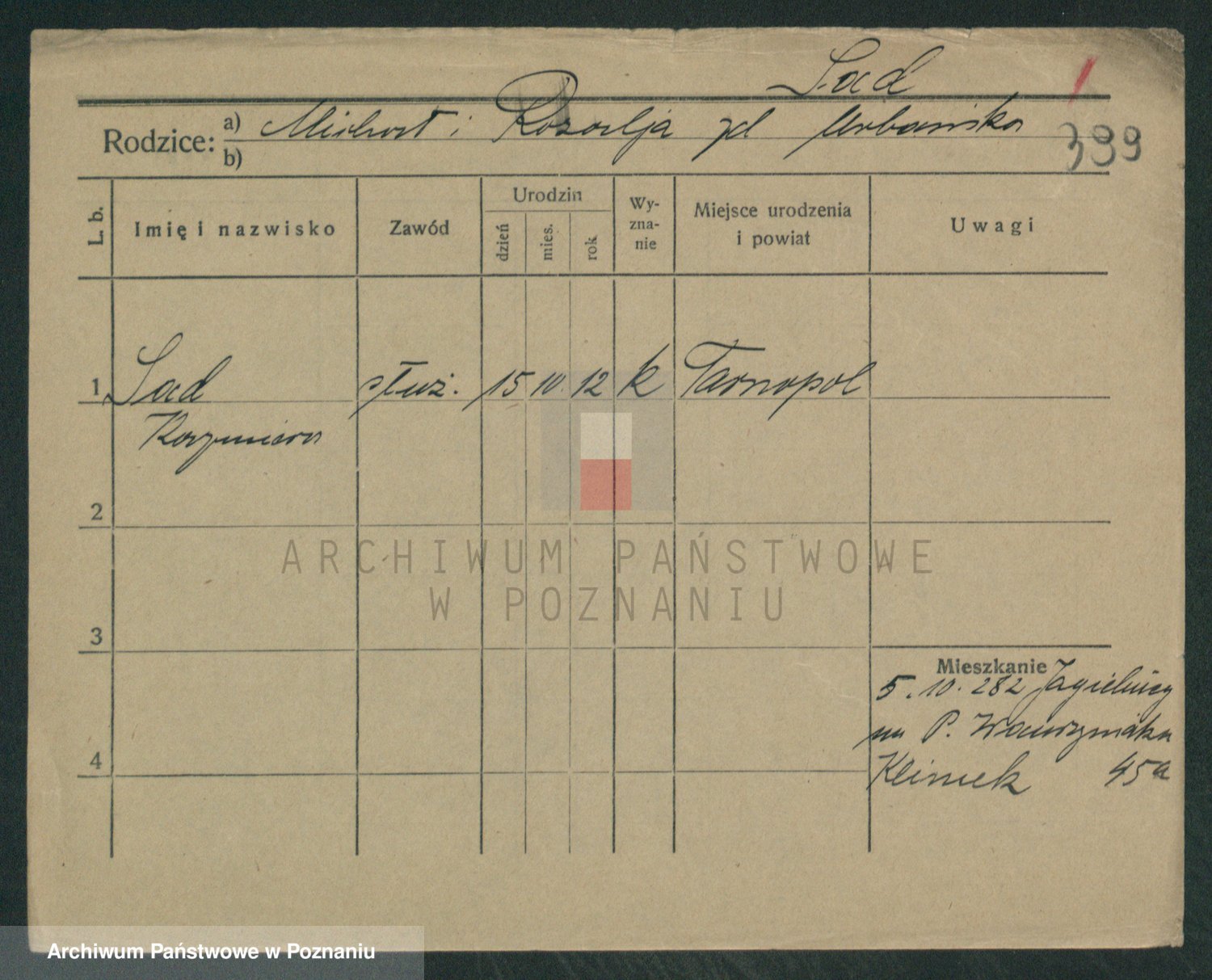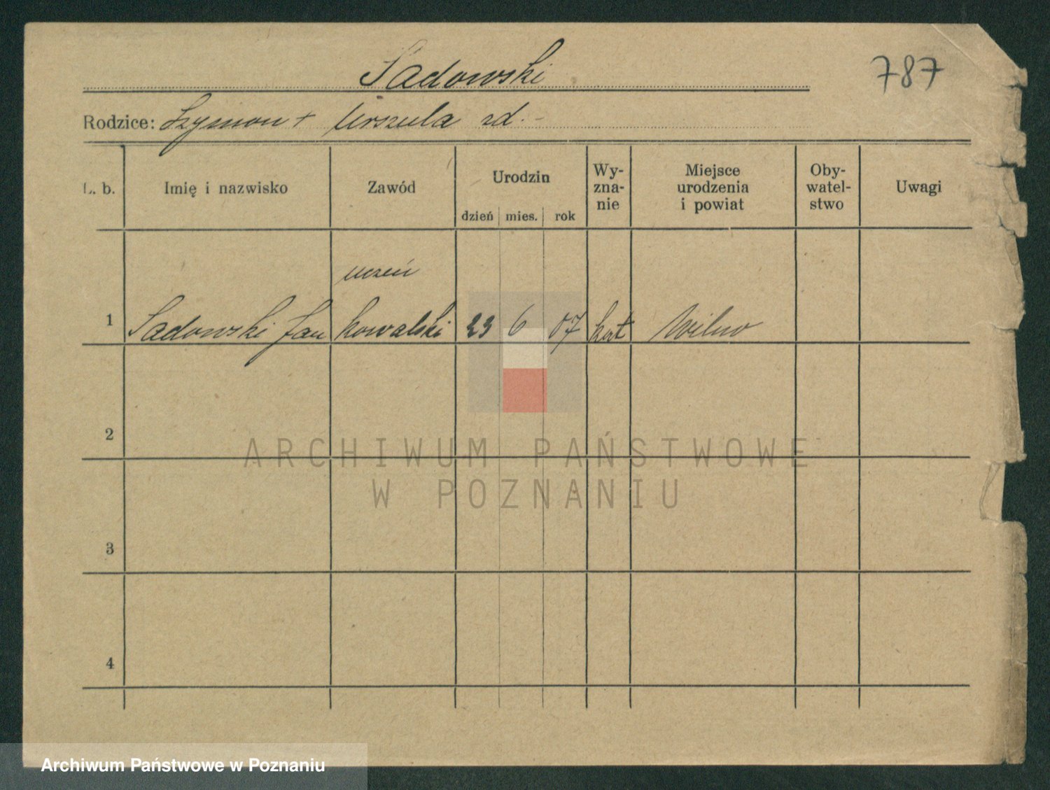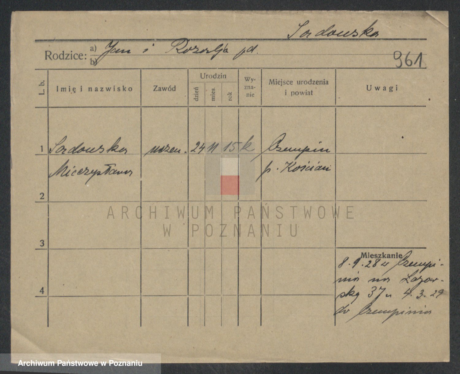Podgląd karty osobowej dostępny jest po kliknięciu na nazwisko lub ikonkę karty. Można dokonywać powiększenia (ikony na górze) lub przechodzić między kolejnymi skanami (strzałki po bokach).