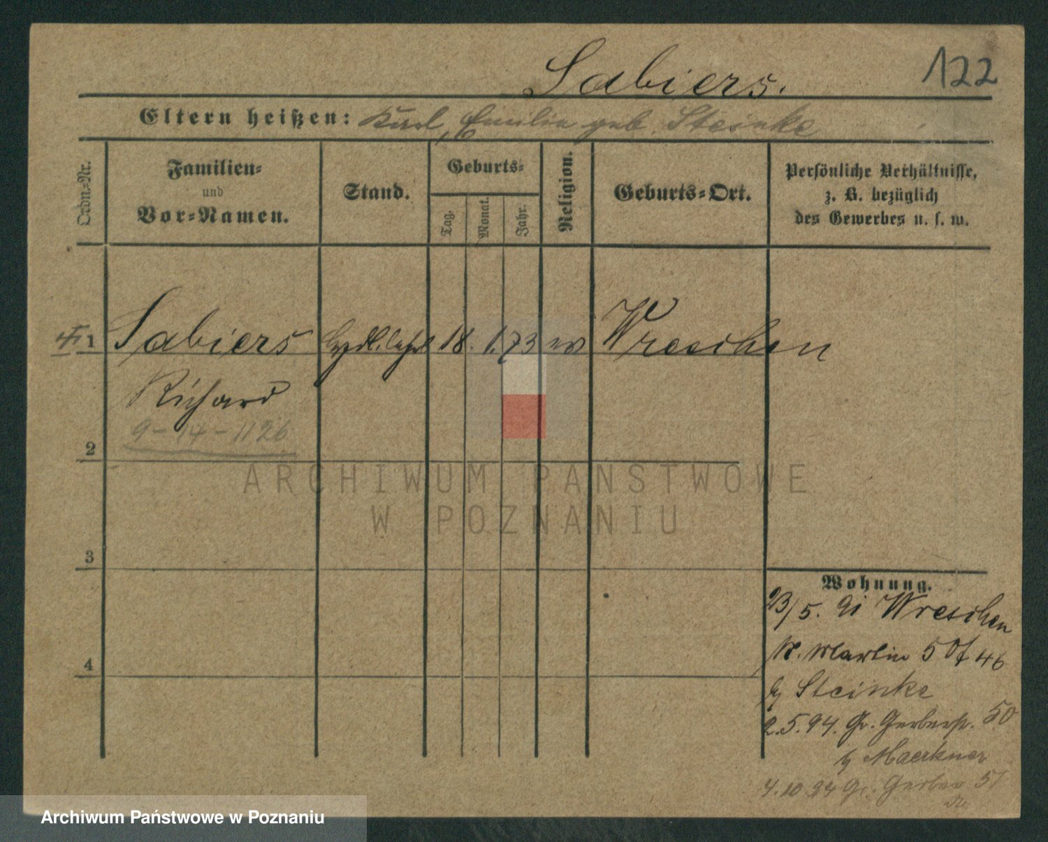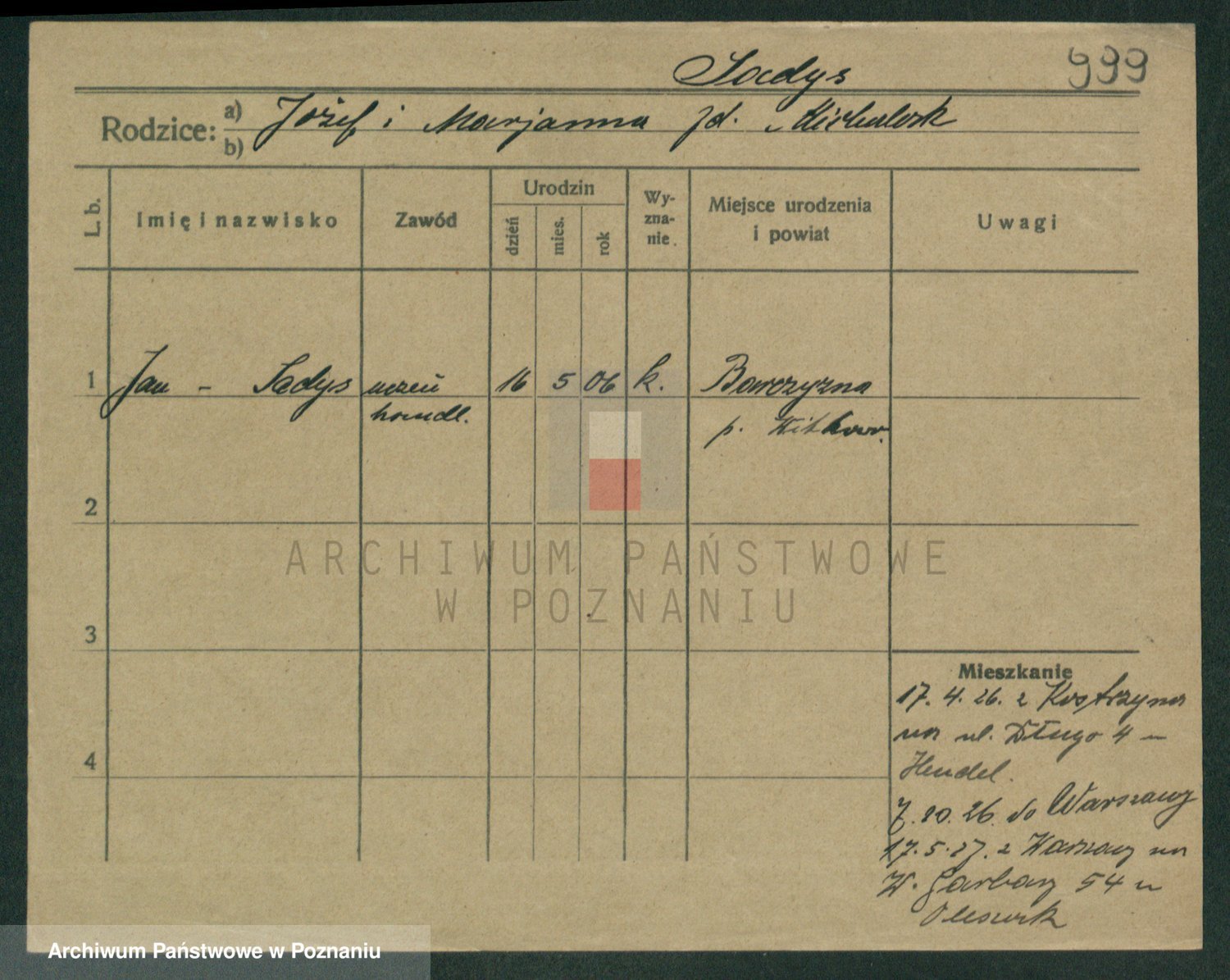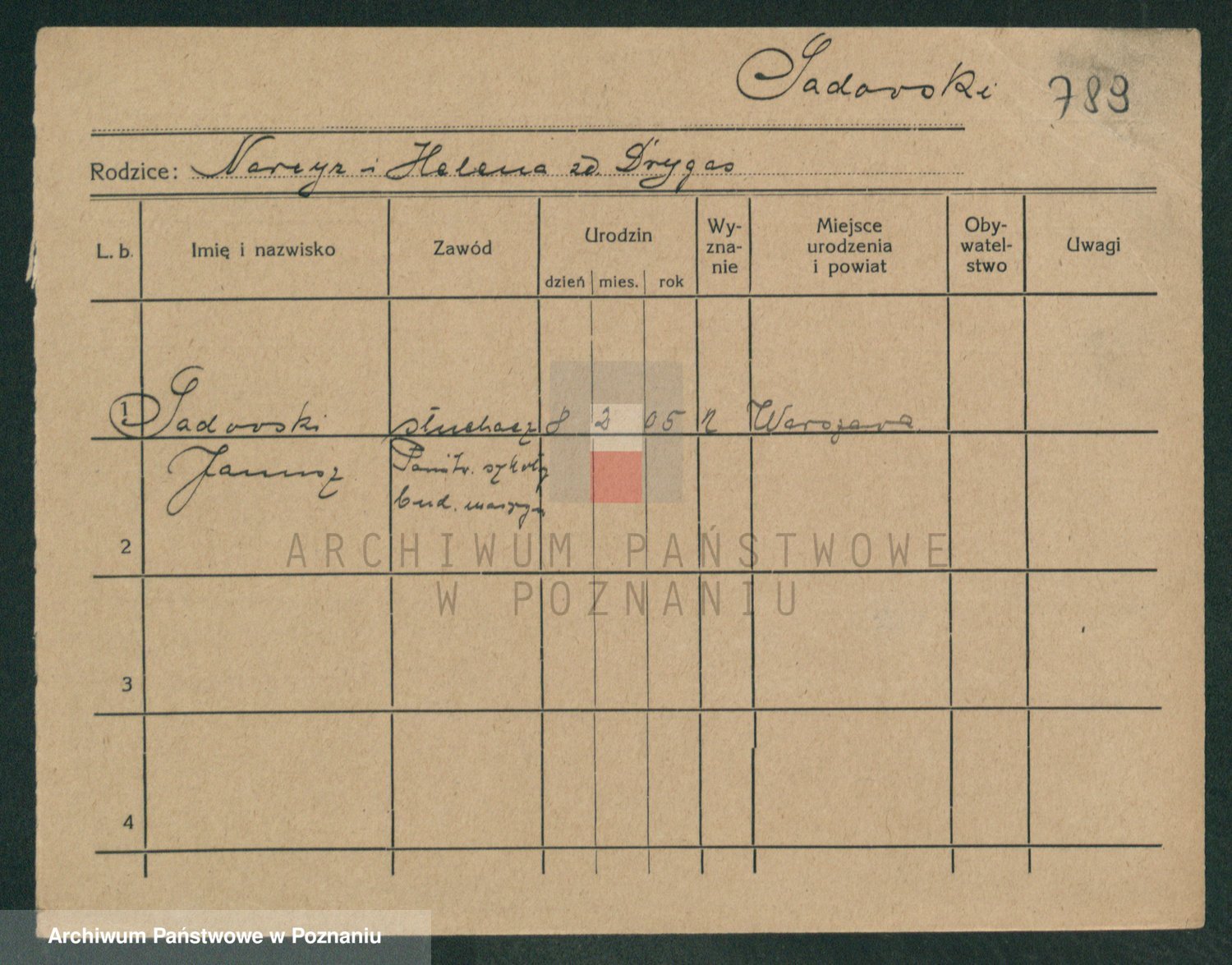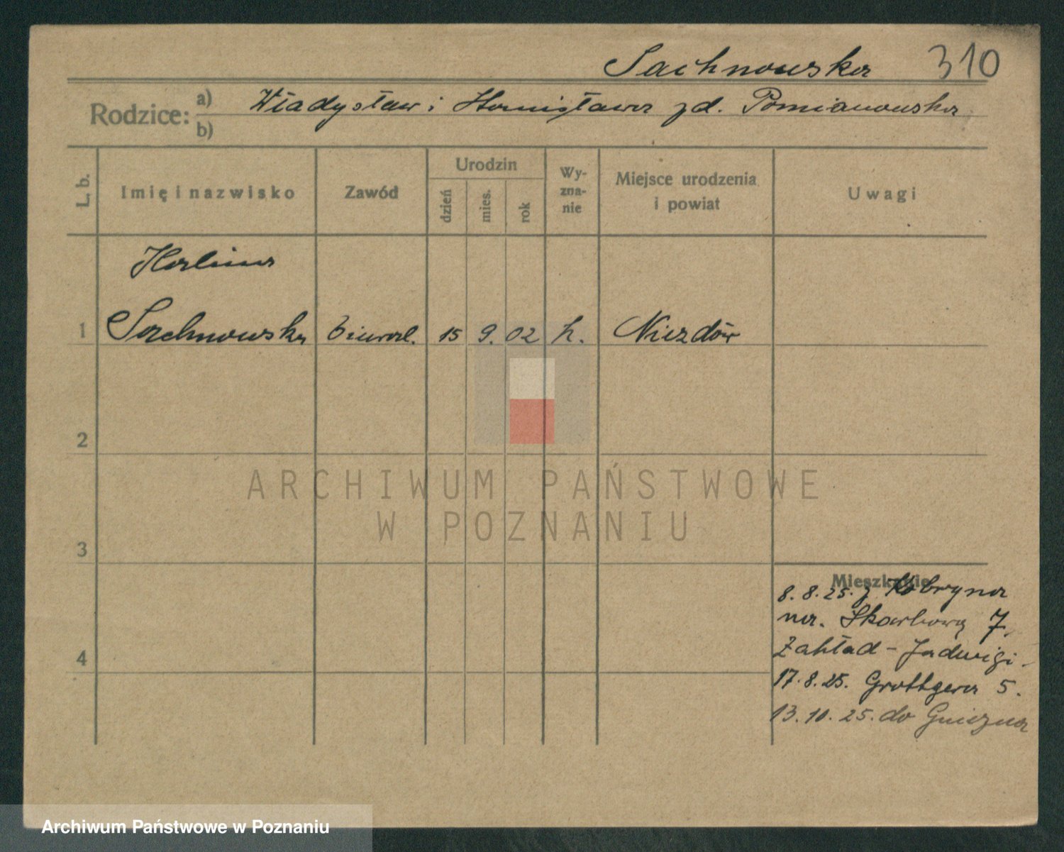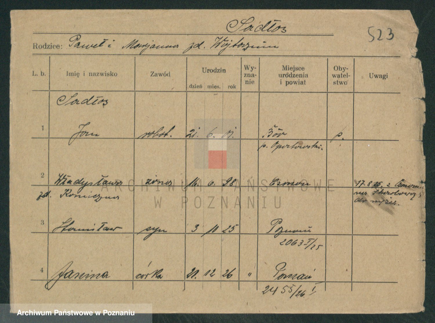 Podgląd karty osobowej dostępny jest po kliknięciu na nazwisko lub ikonkę karty. Można dokonywać powiększenia (ikony na górze) lub przechodzić między kolejnymi skanami (strzałki po bokach).
