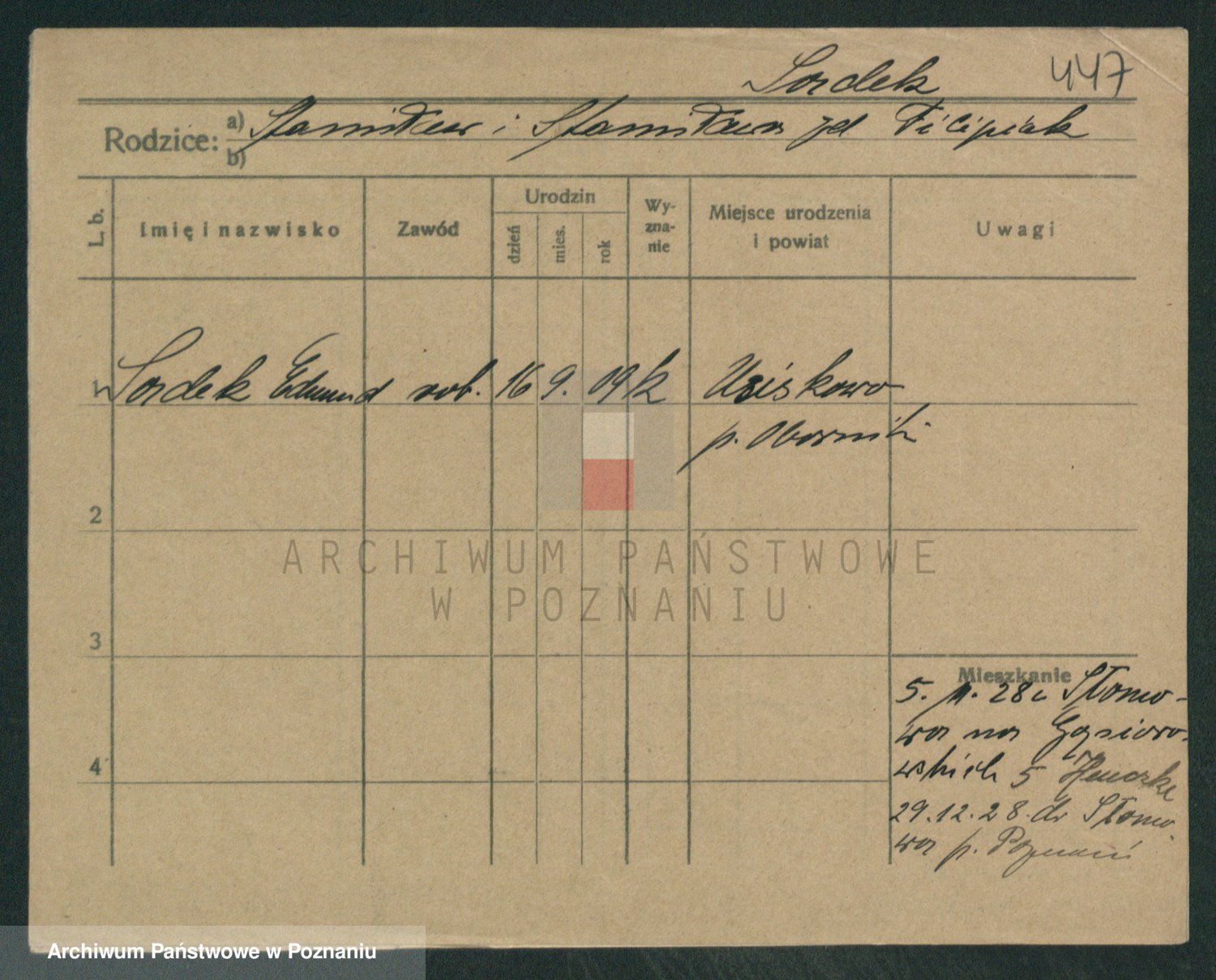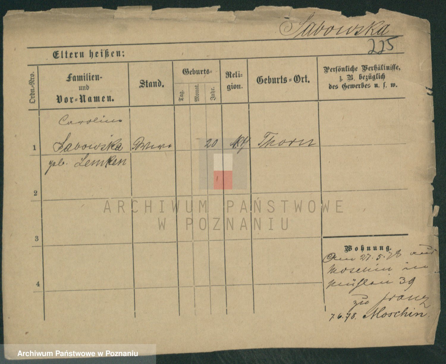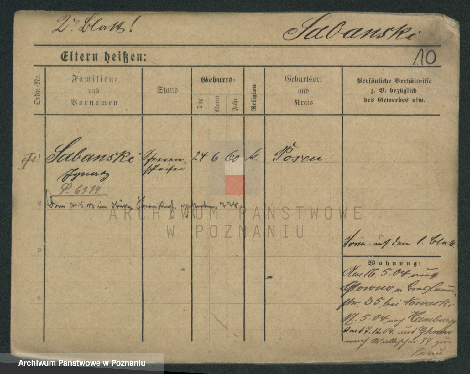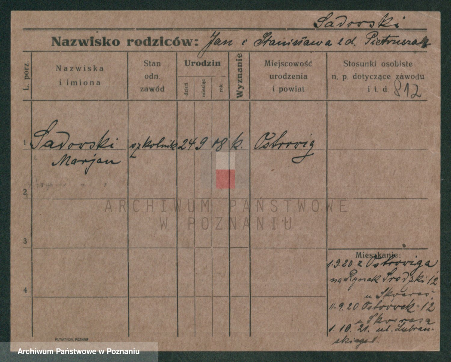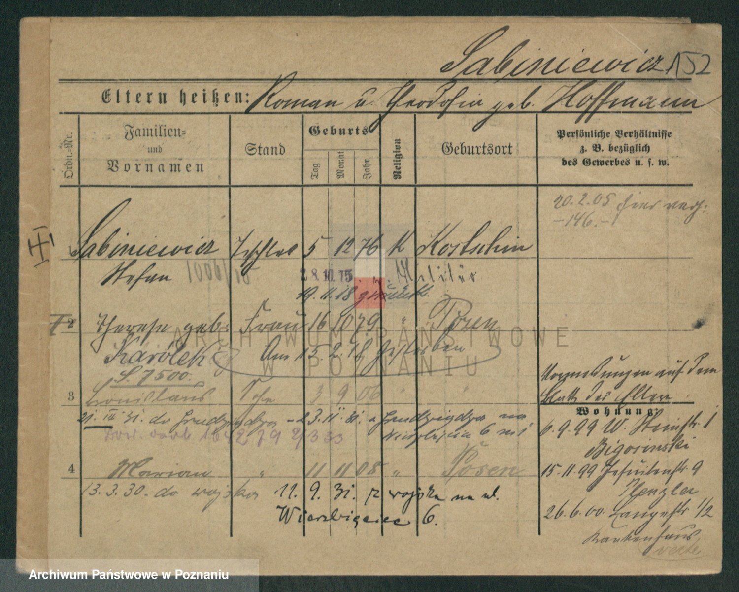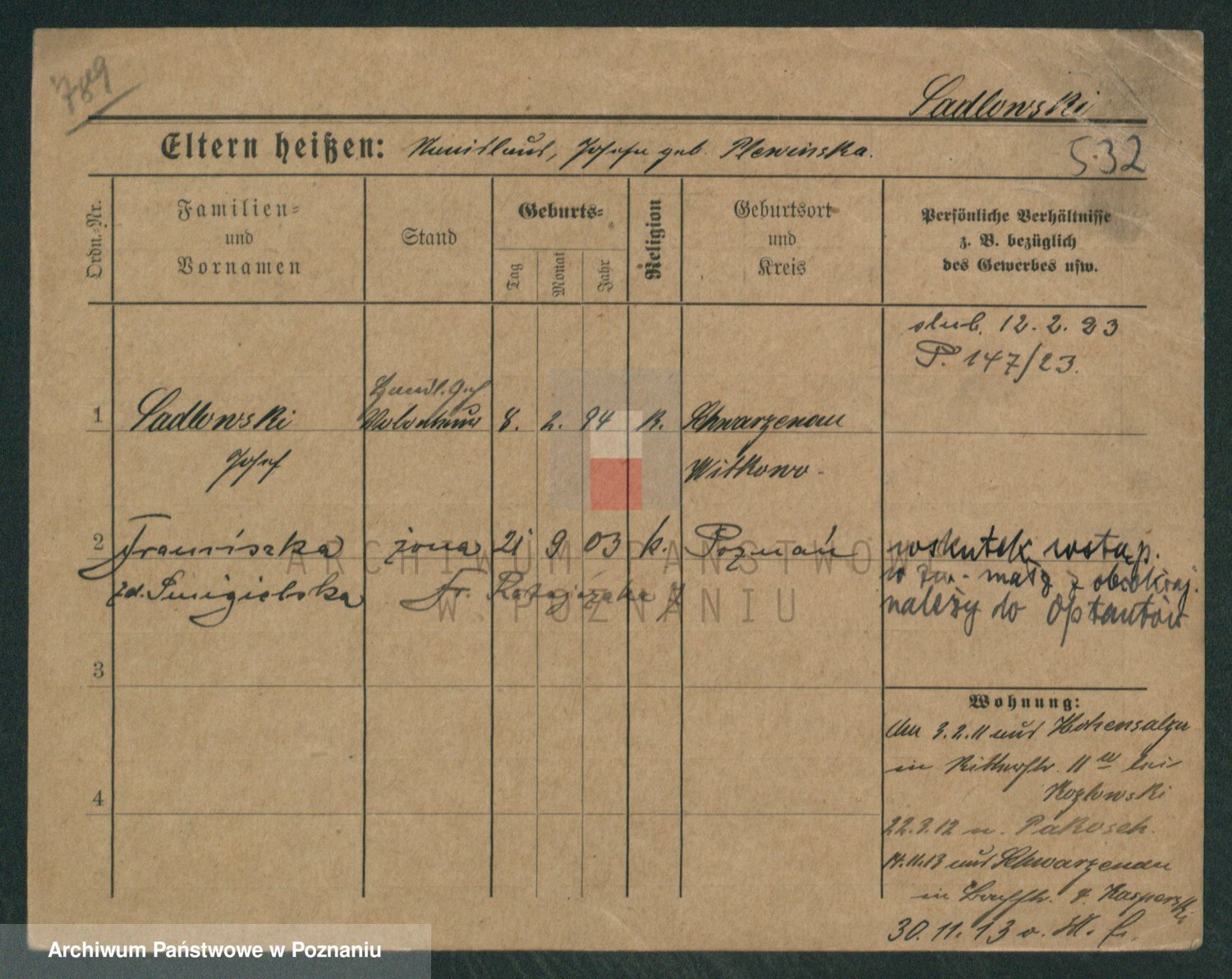 Podgląd karty osobowej dostępny jest po kliknięciu na nazwisko lub ikonkę karty. Można dokonywać powiększenia (ikony na górze) lub przechodzić między kolejnymi skanami (strzałki po bokach).